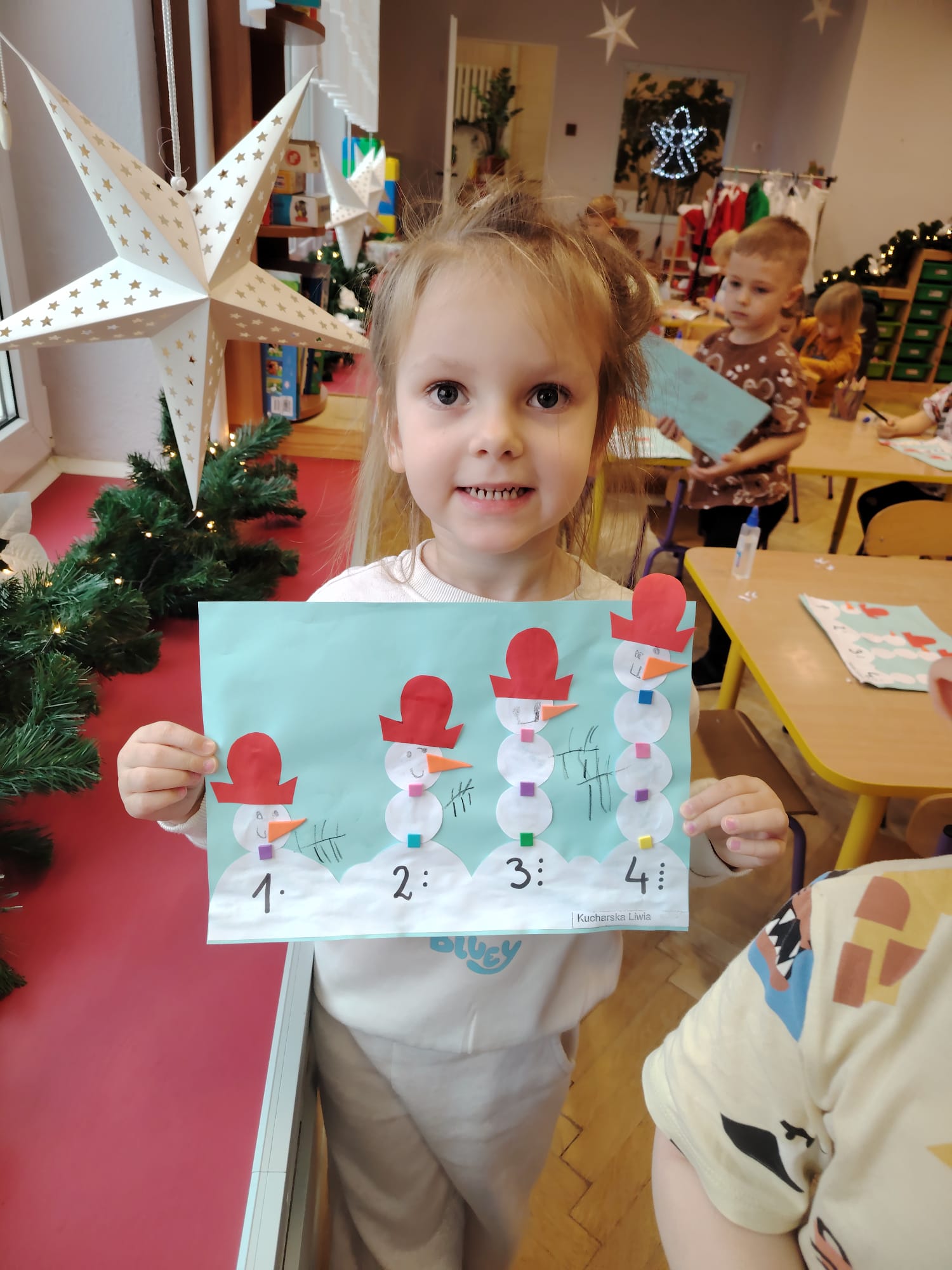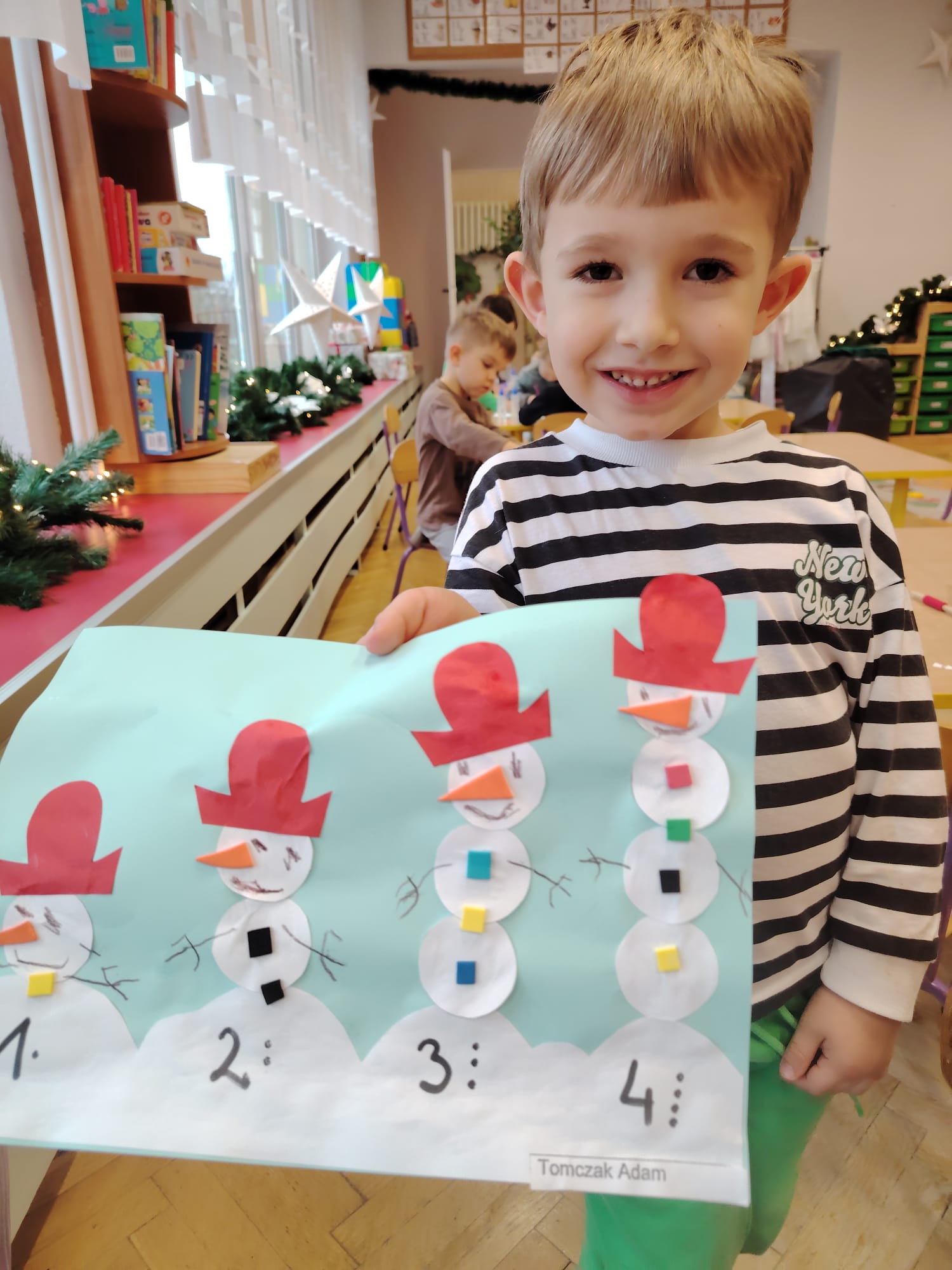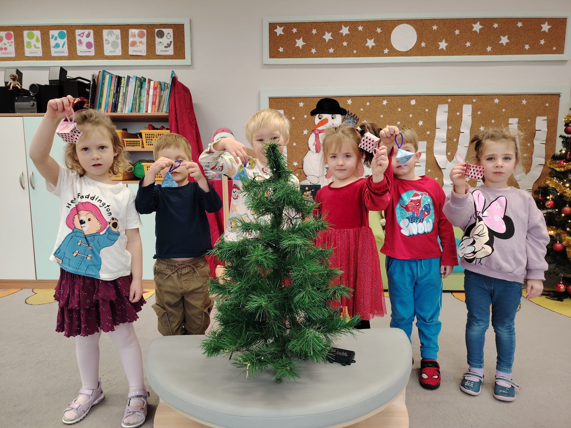 Grudzień w naszym przedszkolu był wyjątkowym czasem radosnego oczekiwania na Święta Bożego Narodzenia. Każdego dnia dzieci z wielkim zaciekawieniem odkrywały kolejne zadania ukryte w kalendarzu adwentowym. Codzienne niespodzianki wprowadzały wszystkich w świąteczny nastrój i sprawiały, że poranki rozpoczynały się z uśmiechem i entuzjazmem. Zadania adwentowe miały różnorodny charakter – były to zajęcia plastyczne, ruchowe, muzyczne oraz związane z rozwijaniem empatii i współpracy w grupie. Dzieci z ogromnym zaangażowaniem podejmowały wyzwania, rozwijając swoją kreatywność, samodzielność oraz umiejętność działania zespołowego. Wspólne wykonywanie zadań sprzyjało integracji grupy i budowaniu pozytywnych relacji rówieśniczych. Kalendarz adwentowy stanowił także doskonałą okazję do przybliżenia dzieciom tradycji i zwyczajów związanych z okresem świątecznym. Poprzez rozmowy, wspólne działania i zabawy dzieci uczyły się okazywania życzliwości, dzielenia się radością oraz dostrzegania potrzeb innych. Istotnym celem było również budowanie pozytywnych emocji związanych z oczekiwaniem, a nie tylko z samym dniem świąt. Czas spędzony z kalendarzem adwentowym był nie tylko atrakcyjną formą zabawy, ale również wartościowym doświadczeniem edukacyjnym i wychowawczym, które na długo pozostanie w pamięci dzieci, jako okres pełen magii, uśmiechów i wspólnych, pięknych chwil. Grupa II świątecznie zaprasza do galerii.
