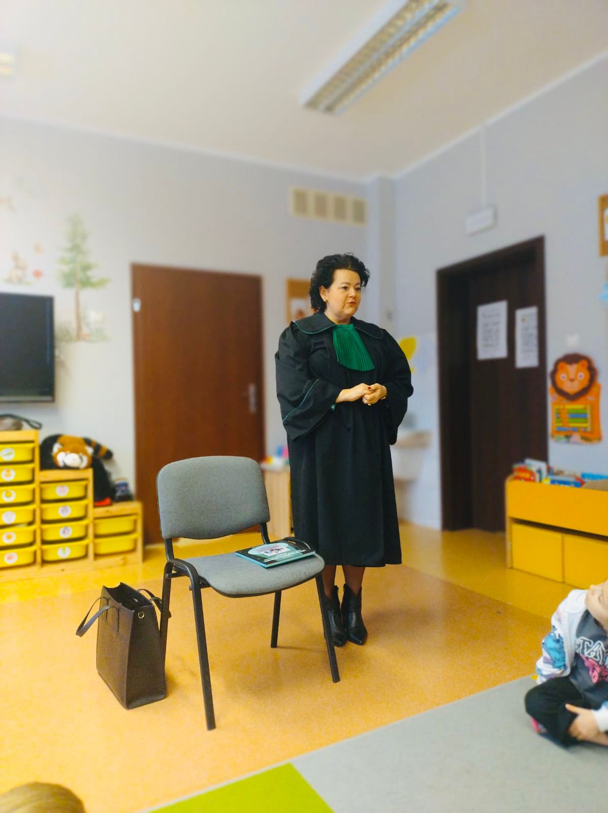 Przedszkolaki z gr. XI rozpoczęły tydzień od wizyty miłego gościa - Pani Beaty Kaliskiej. Pani Beata w niezwykle ciekawy i przyjazny sposób przedstawiła dzieciom zawód adwokata, który wykonuje na co dzień. Opowiedziała na czym polega jej praca i jaka jest jej rola w niesieniu pomocy innym ludziom i przestrzeganiu prawa. Poruszyła również temat miejsca swojej pracy- kancelarii i sądu. W trakcie spotkania poznaliśmy również historię pewnej Żabki z książeczki "Leśne sprawy aplikantów adwokackich". Bohaterka opowiadania miała niemały problem, ale na szczęście z pomocą ruszyli jej właśnie leśni adwokaci! W ten niezwykły sposób dzieci jeszcze lepiej mogły zrozumieć, na czym dokładnie polega praca prawnicza. Dziękujemy Pani Beacie za poświęcony czas, przekazanie cennej wiedzy i upominki oraz mamie naszej Weroniki, która pomogła zorganizować spotkanie w przedszkolu.