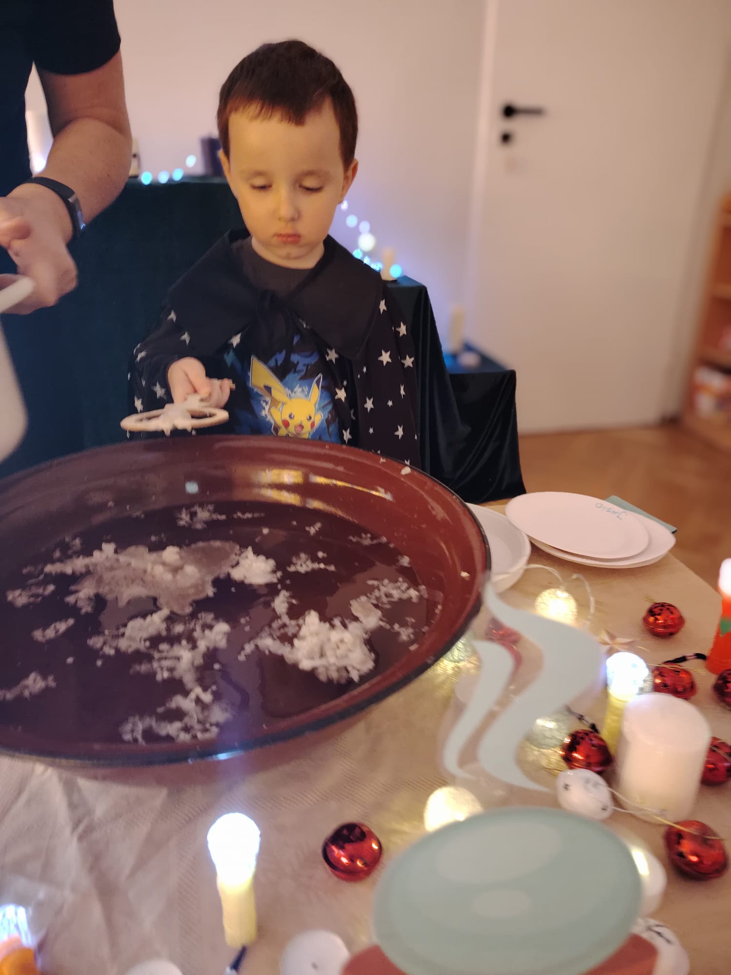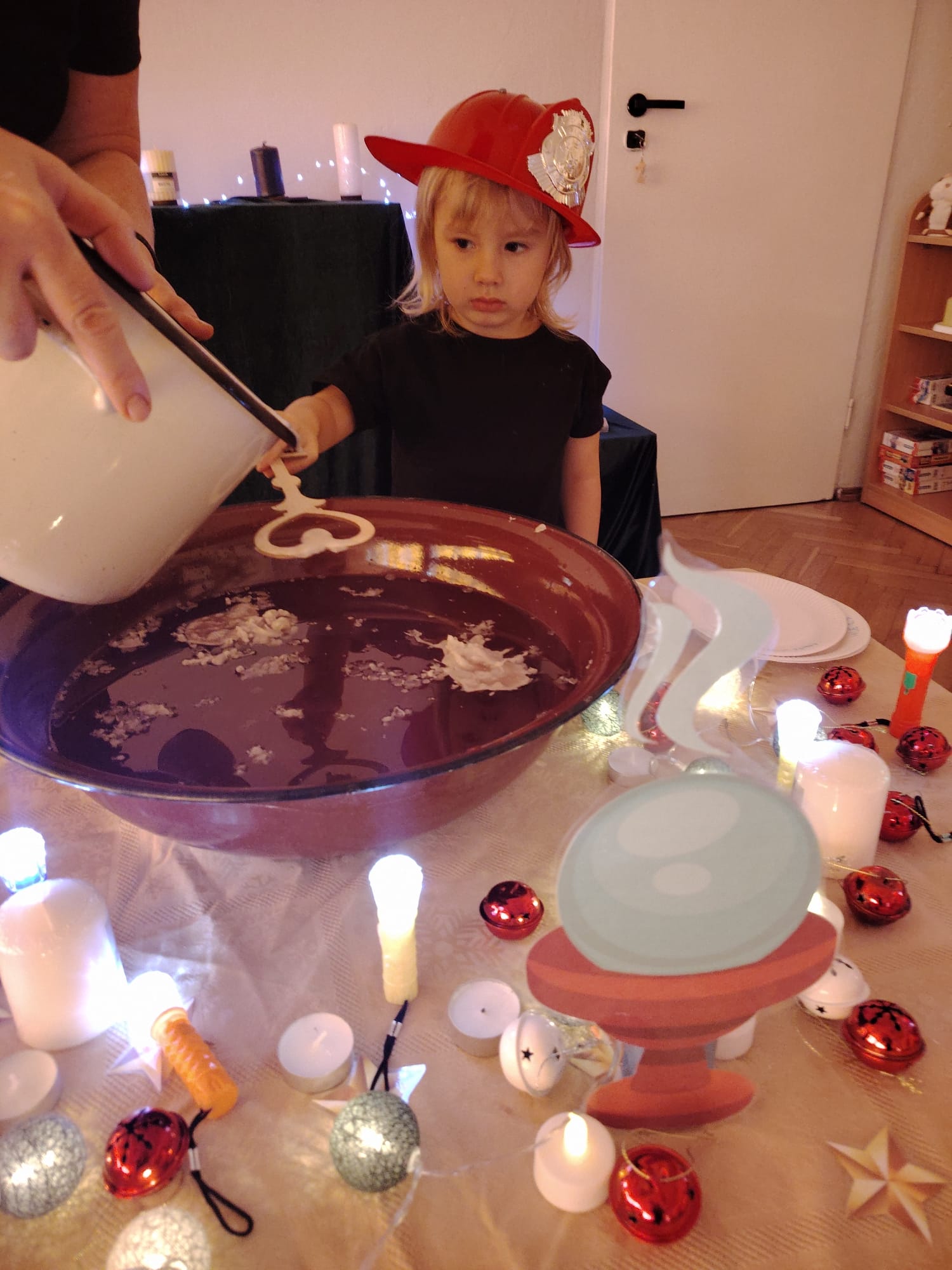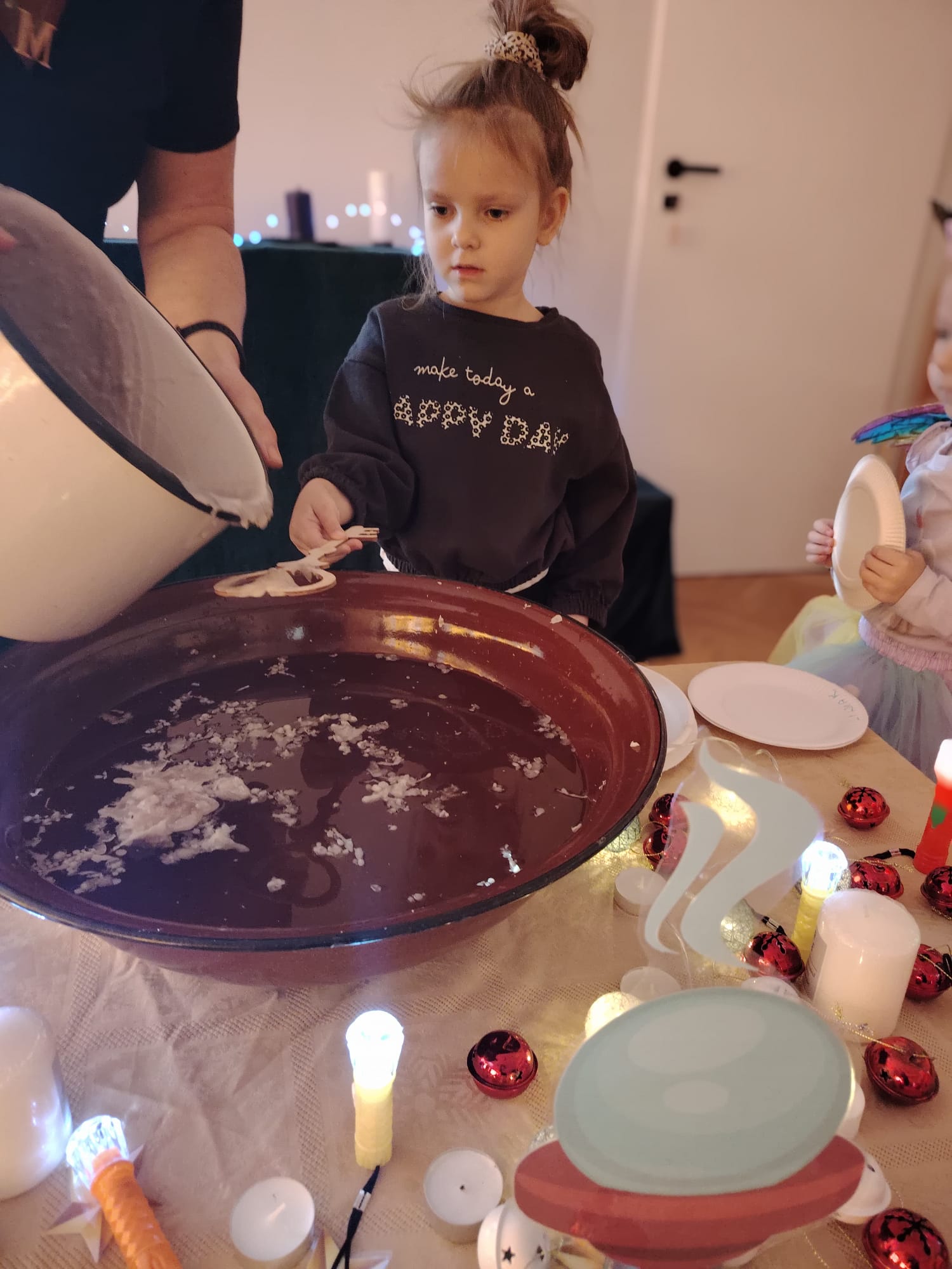W piątkowy poranek w naszym przedszkolu magia zagościła, bo pora Andrzejek właśnie nadeszła miła! Były wróżby, zabawy i śmiechu bez liku, a tajemnicze czary słychać było w każdym kąciku. Wosk się lał przez klucze stare, powstawały kształty – czary nie do wiary! Buty w rzędzie dzielnie stały, czyje do drzwi dotrą – dzieci zgadywały. Wróżki, czarodzieje i postacie bajkowe, uczyniły ten dzień wręcz wyjątkowym! Tańce, śpiew i uśmiechy szerokie, rozświetliły naszą salę jak gwiazdy wysokie. To był dzień pełen radości, magii i wrażeń, spełnionych dziecięcych marzeń. Takie chwile w pamięci na długo zostają, bo Andrzejki w przedszkolu serca rozgrzewają! Zapraszamy do obejrzenia zdjęć z naszej magicznej zabawy!