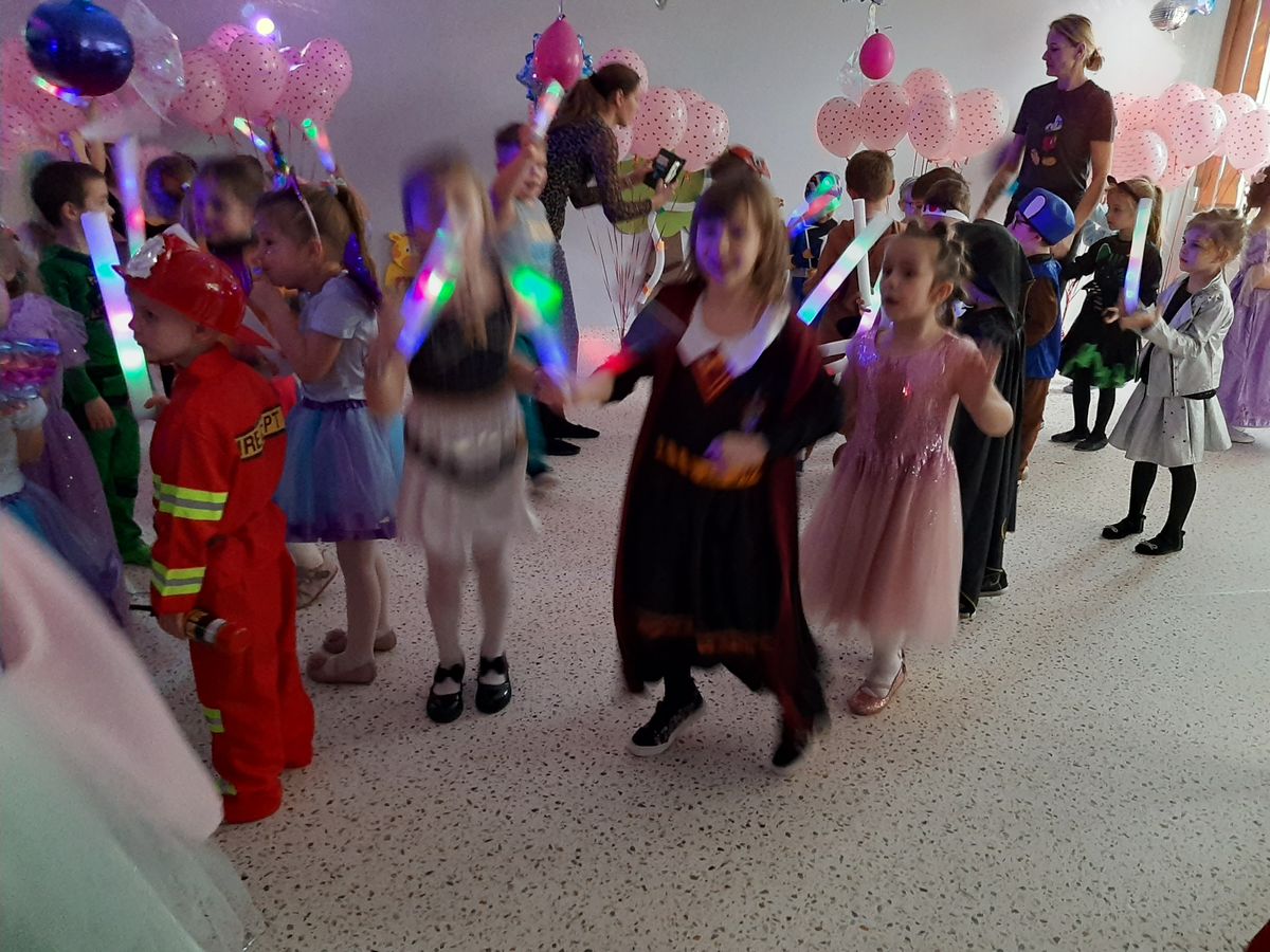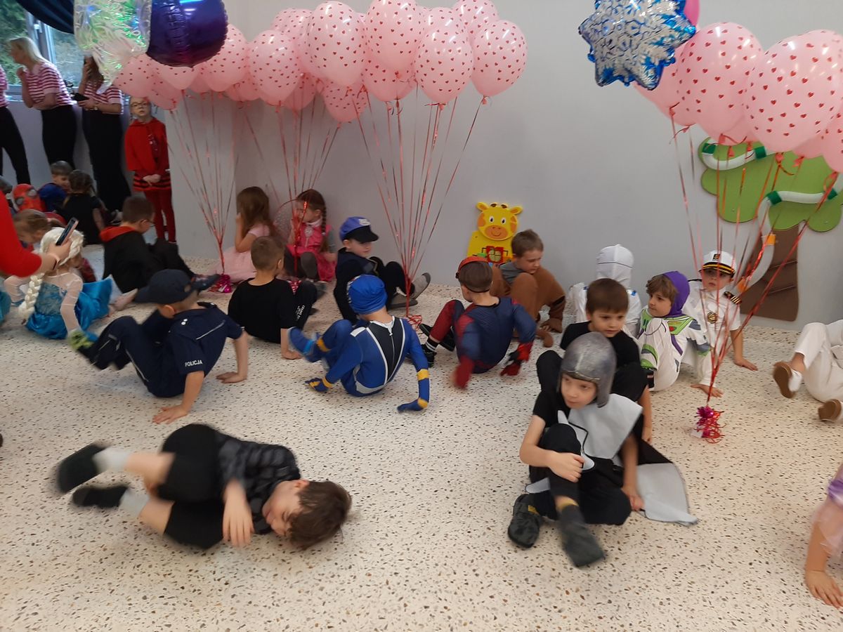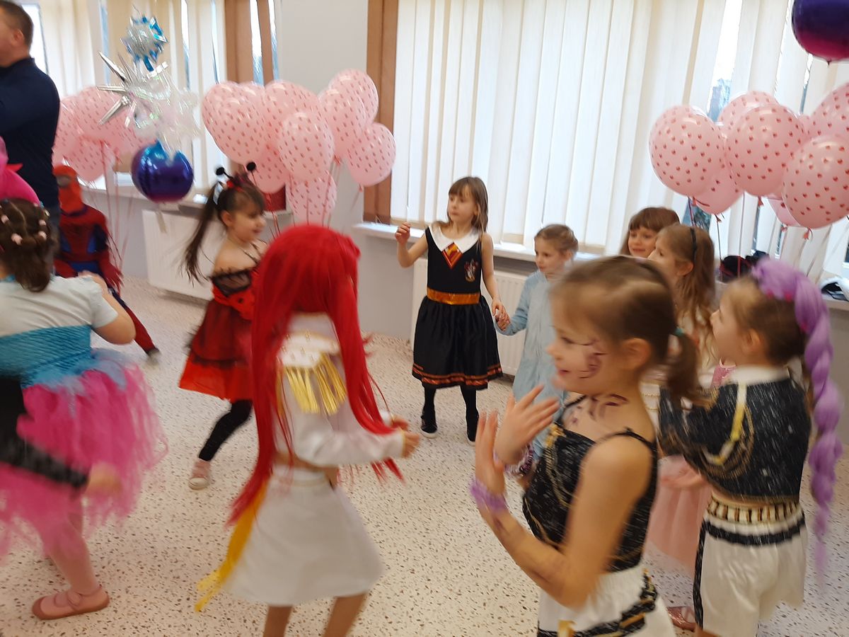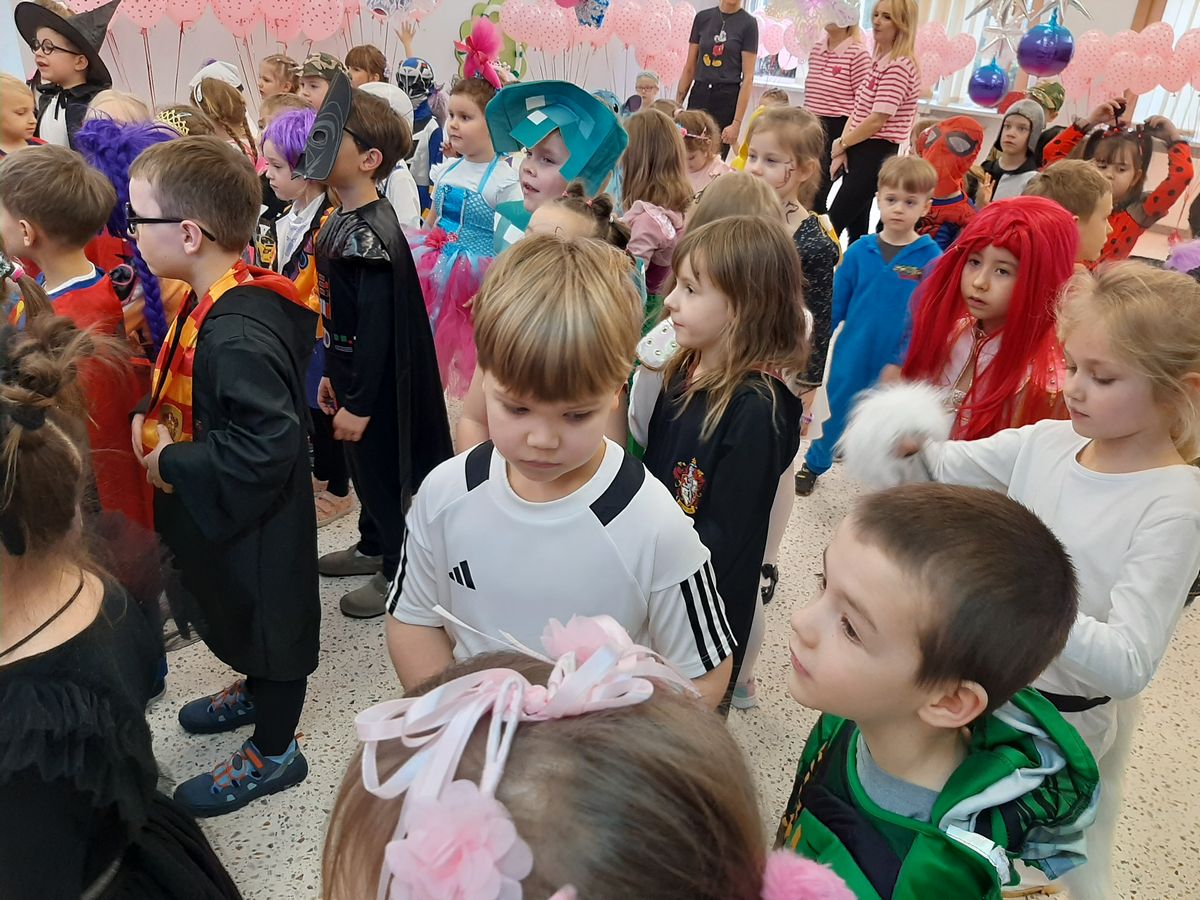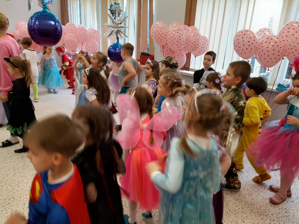 W tym roku obchodziliśmy niezwykły bal karnawałowy, ponieważ został on połączony z Walentynkami. Od samego rana w przedszkolu zrobiło się kolorowo – progi naszej sali przekroczyły wróżki, księżniczki, biedronki, a także rycerze, policjanci i strażacy. Dzieci z dumą prezentowały stroje ulubionych bajkowych bohaterów. Walentynkowe dekoracje sali stworzyły wyjątkowy klimat. Było mnóstwo śmiechu, ciekawych konkursów i tańców przy największych przebojach. Po zabawie na przedszkolaków czekał poczęstunek przygotowany przez rodziców – bardzo dziękujemy.