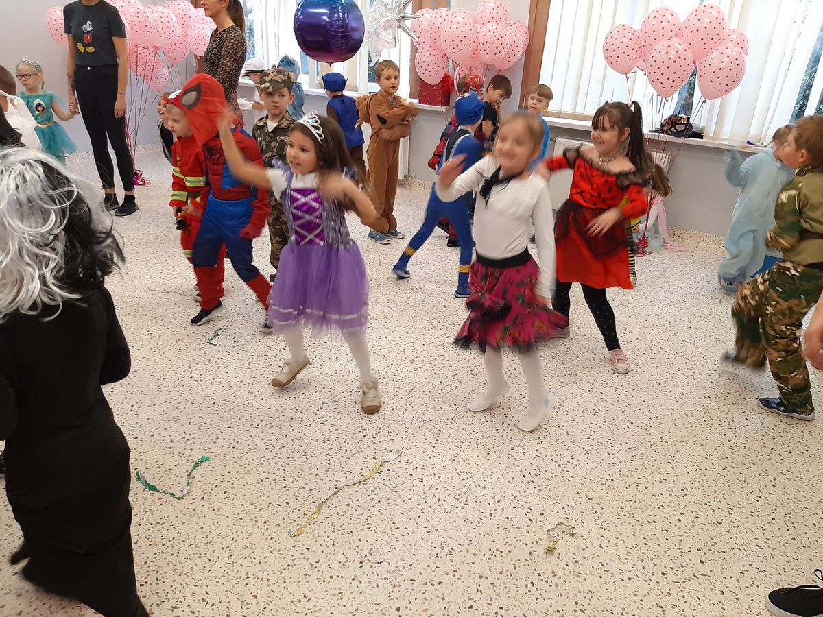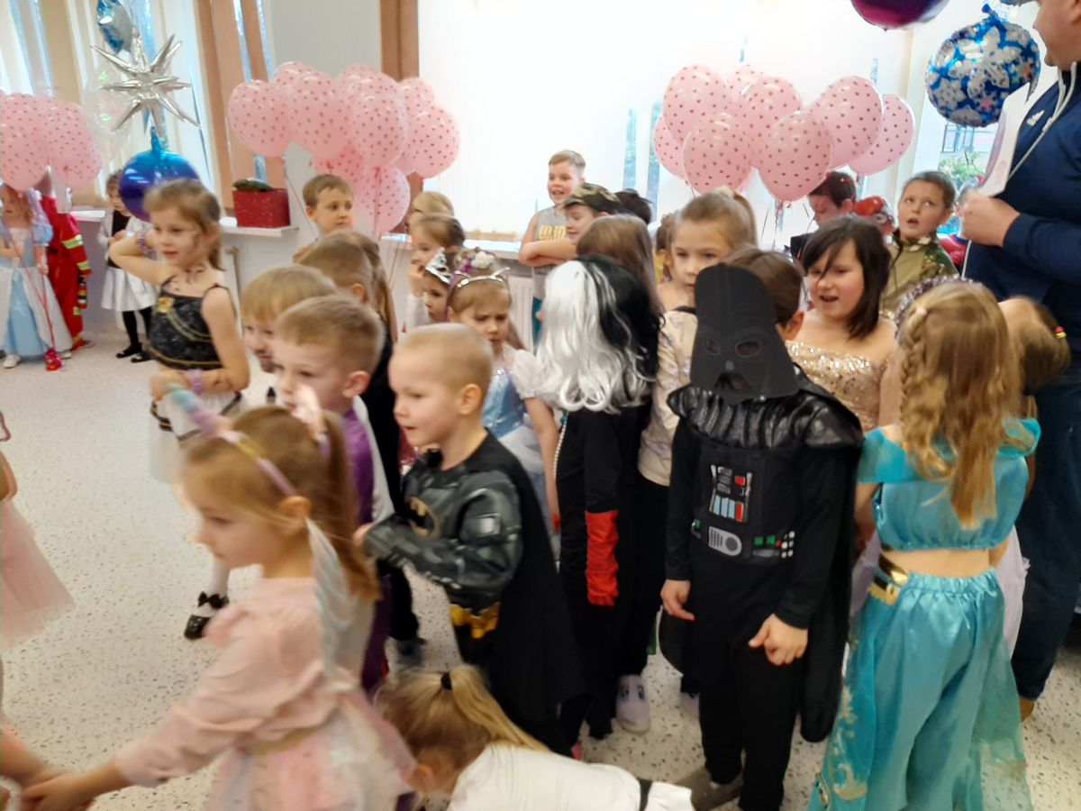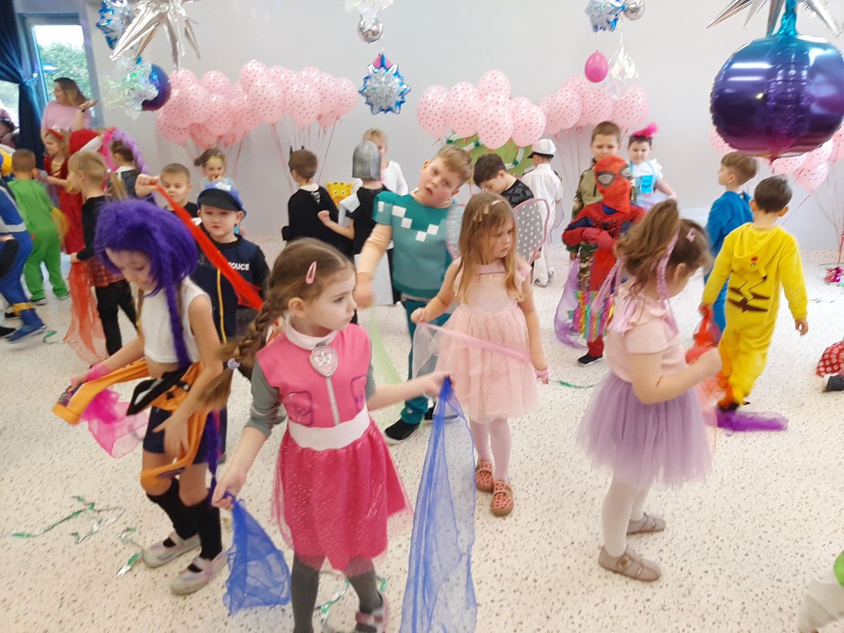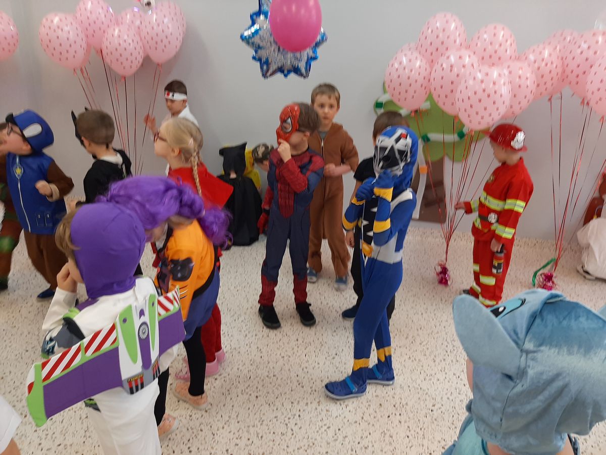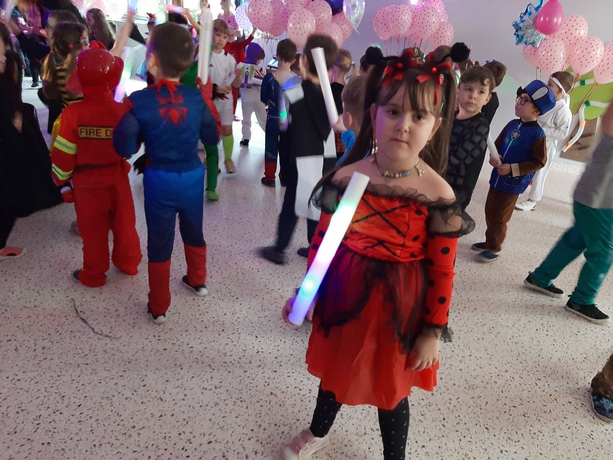 W tym roku obchodziliśmy niezwykły bal karnawałowy, ponieważ został on połączony z Walentynkami. Od samego rana w przedszkolu zrobiło się kolorowo – progi naszej sali przekroczyły wróżki, księżniczki, biedronki, a także rycerze, policjanci i strażacy. Dzieci z dumą prezentowały stroje ulubionych bajkowych bohaterów. Walentynkowe dekoracje sali stworzyły wyjątkowy klimat. Było mnóstwo śmiechu, ciekawych konkursów i tańców przy największych przebojach. Po zabawie na przedszkolaków czekał poczęstunek przygotowany przez rodziców – bardzo dziękujemy.