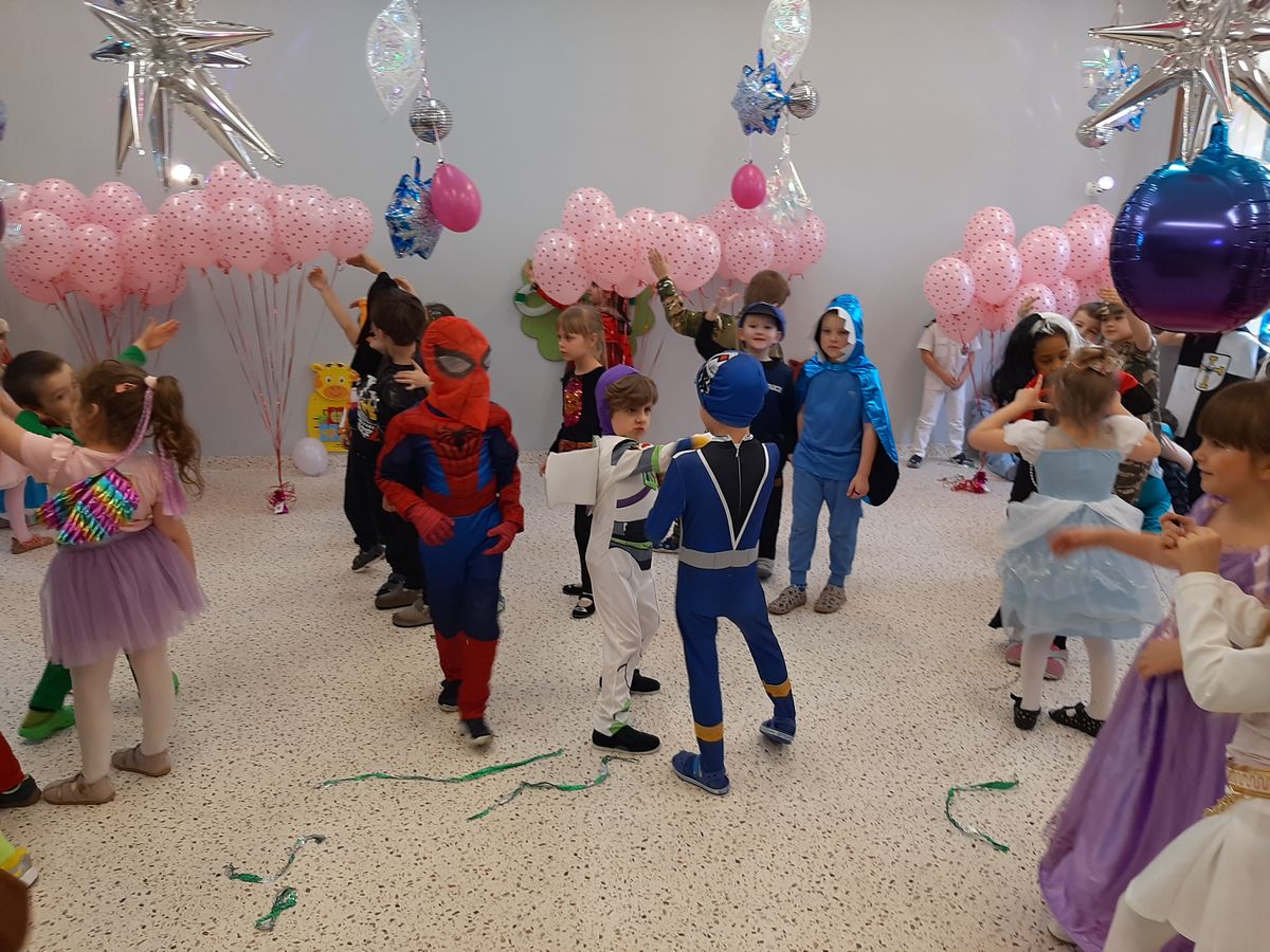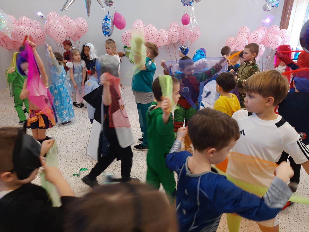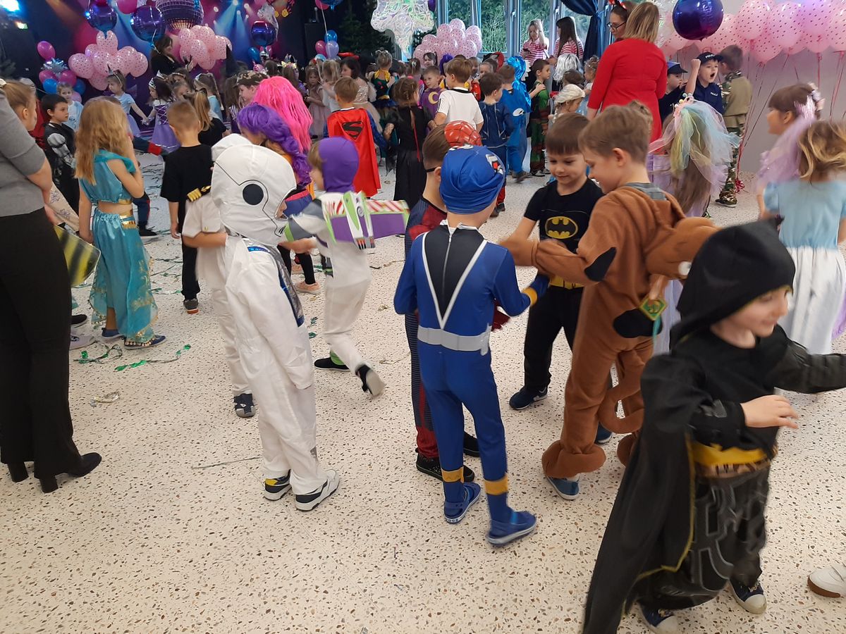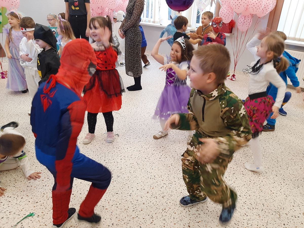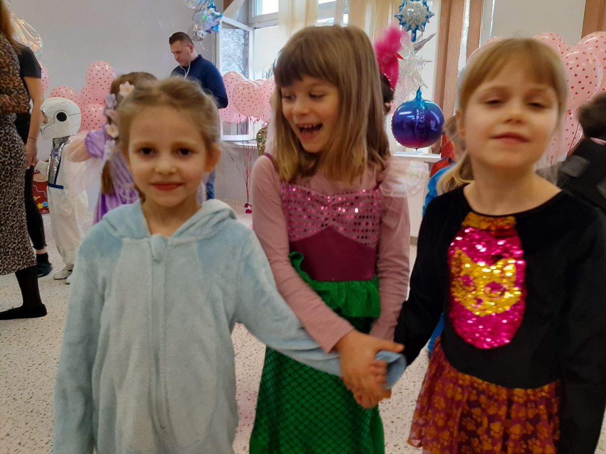 W tym roku obchodziliśmy niezwykły bal karnawałowy, ponieważ został on połączony z Walentynkami. Od samego rana w przedszkolu zrobiło się kolorowo – progi naszej sali przekroczyły wróżki, księżniczki, biedronki, a także rycerze, policjanci i strażacy. Dzieci z dumą prezentowały stroje ulubionych bajkowych bohaterów. Walentynkowe dekoracje sali stworzyły wyjątkowy klimat. Było mnóstwo śmiechu, ciekawych konkursów i tańców przy największych przebojach. Po zabawie na przedszkolaków czekał poczęstunek przygotowany przez rodziców – bardzo dziękujemy.