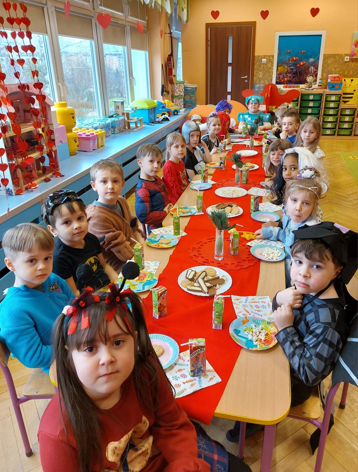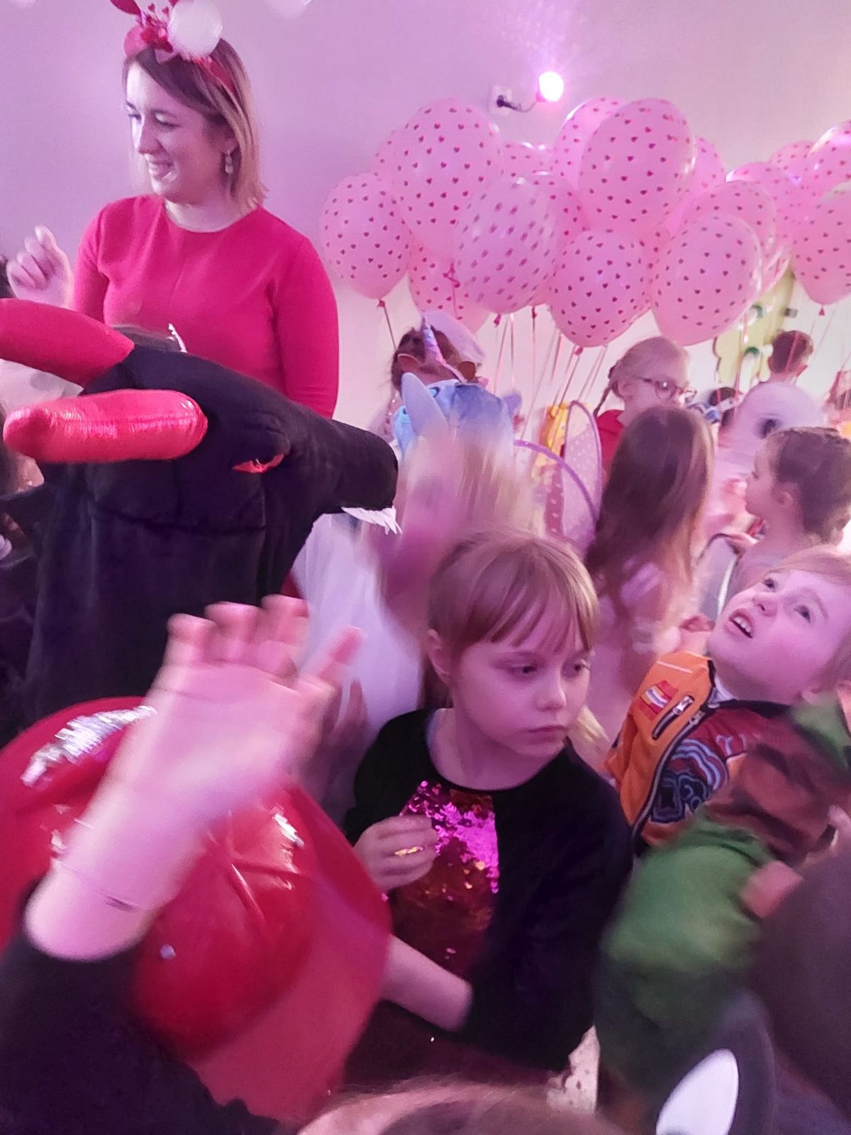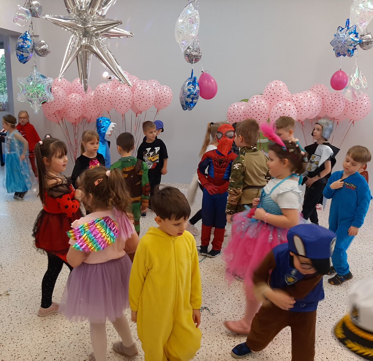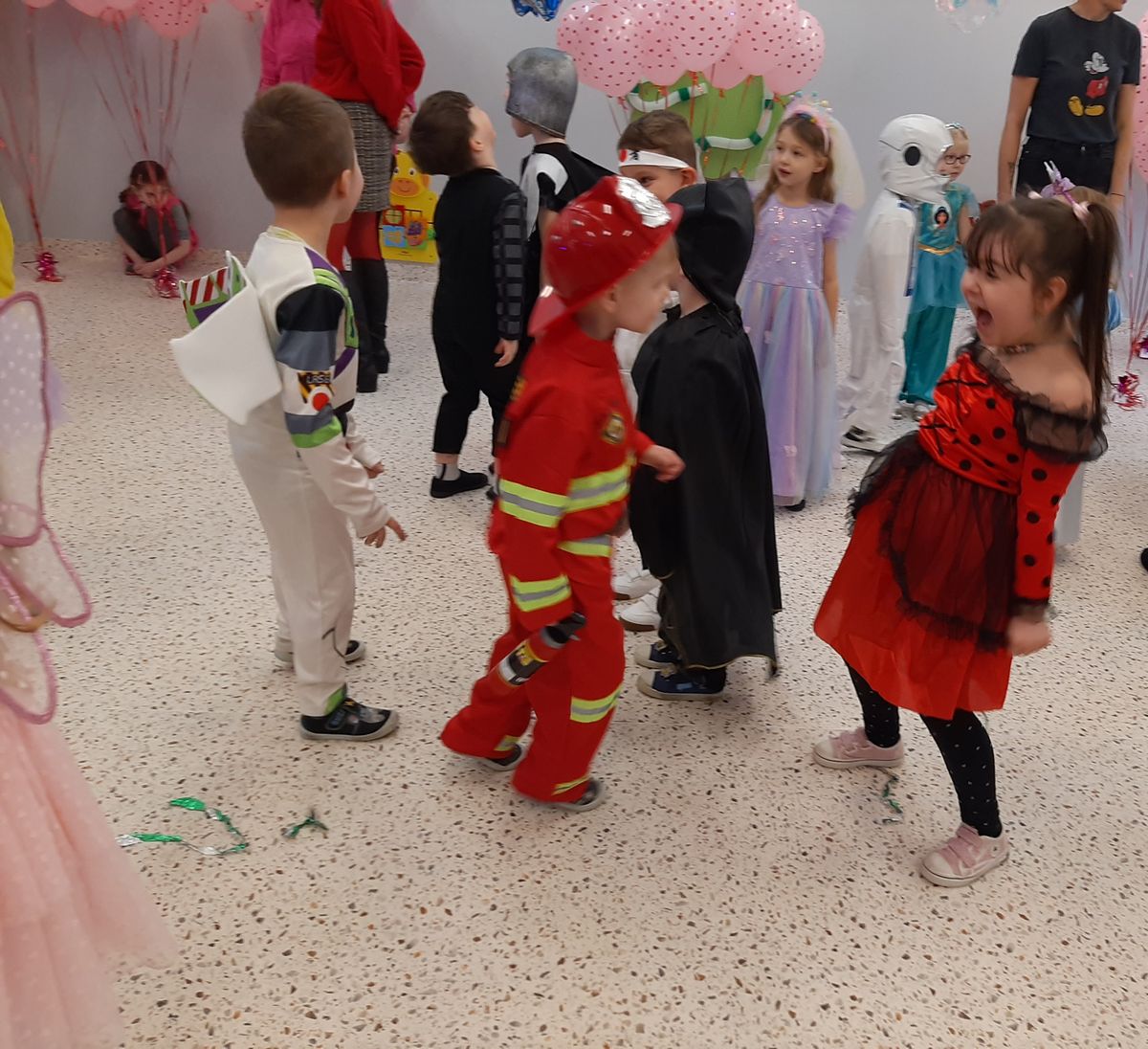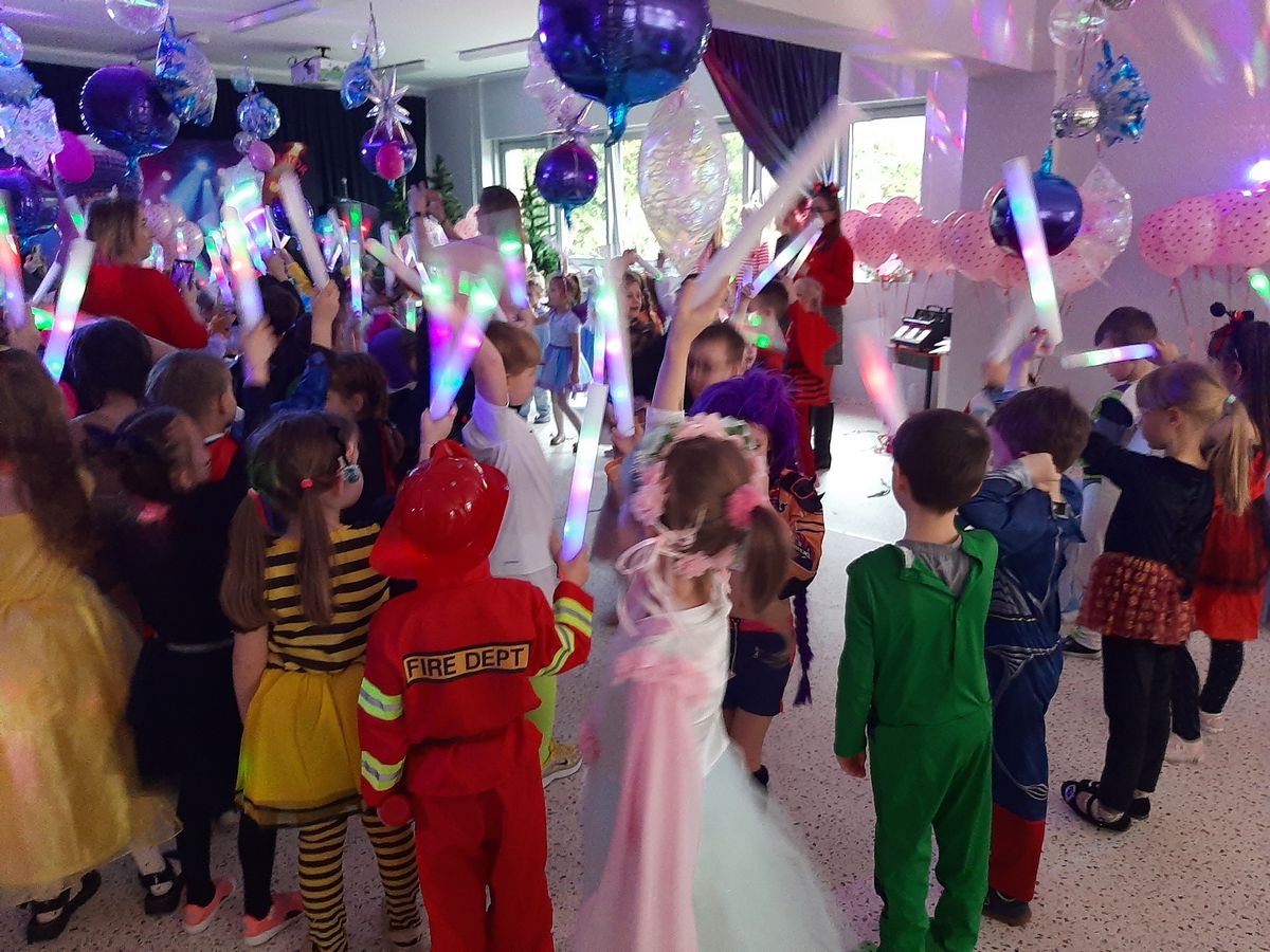 W tym roku obchodziliśmy niezwykły bal karnawałowy, ponieważ został on połączony z Walentynkami. Od samego rana w przedszkolu zrobiło się kolorowo – progi naszej sali przekroczyły wróżki, księżniczki, biedronki, a także rycerze, policjanci i strażacy. Dzieci z dumą prezentowały stroje ulubionych bajkowych bohaterów. Walentynkowe dekoracje sali stworzyły wyjątkowy klimat. Było mnóstwo śmiechu, ciekawych konkursów i tańców przy największych przebojach. Po zabawie na przedszkolaków czekał poczęstunek przygotowany przez rodziców – bardzo dziękujemy.