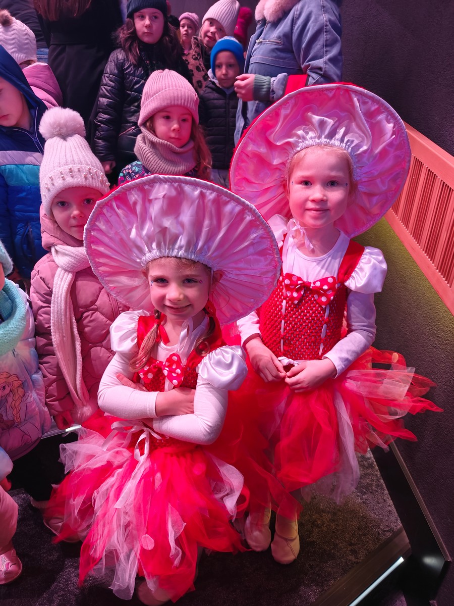 W dniu 8 grudnia przedszkolaki z grupy II i VI uczestniczyły w wyjątkowym spektaklu pt. "Bella i Bestia" inspirowany baśnią „Piękna i Bestia” z okazji 35-lecia działalności Studia Tańca Rytmix z Konina. Na scenie ożyły postacie z zaczarowanego zamku, a widzowie przeżyli wzruszającą historię miłości, odwagi i przemiany serca. To było niezwykle taneczne widowisko pełne emocji, piękna i magii… a tym bardziej ważne dla nas, ponieważ udział brały nasze koleżanki z przedszkola: Oliwka z grupy II i Zuzia z grupy VI. Jesteśmy z Was bardzo dumni i serdecznie gratulujemy cudownego występu! Brawo!
