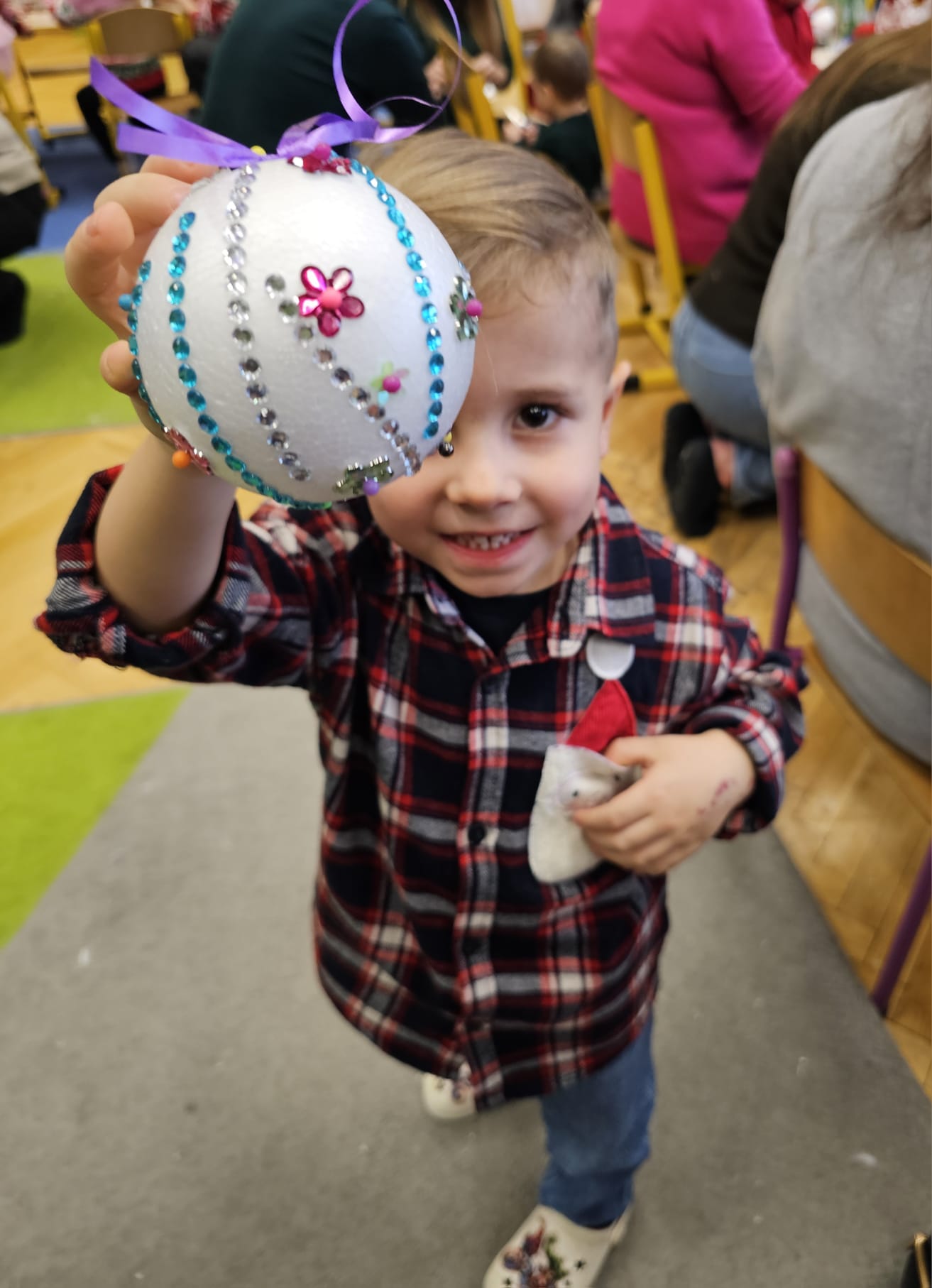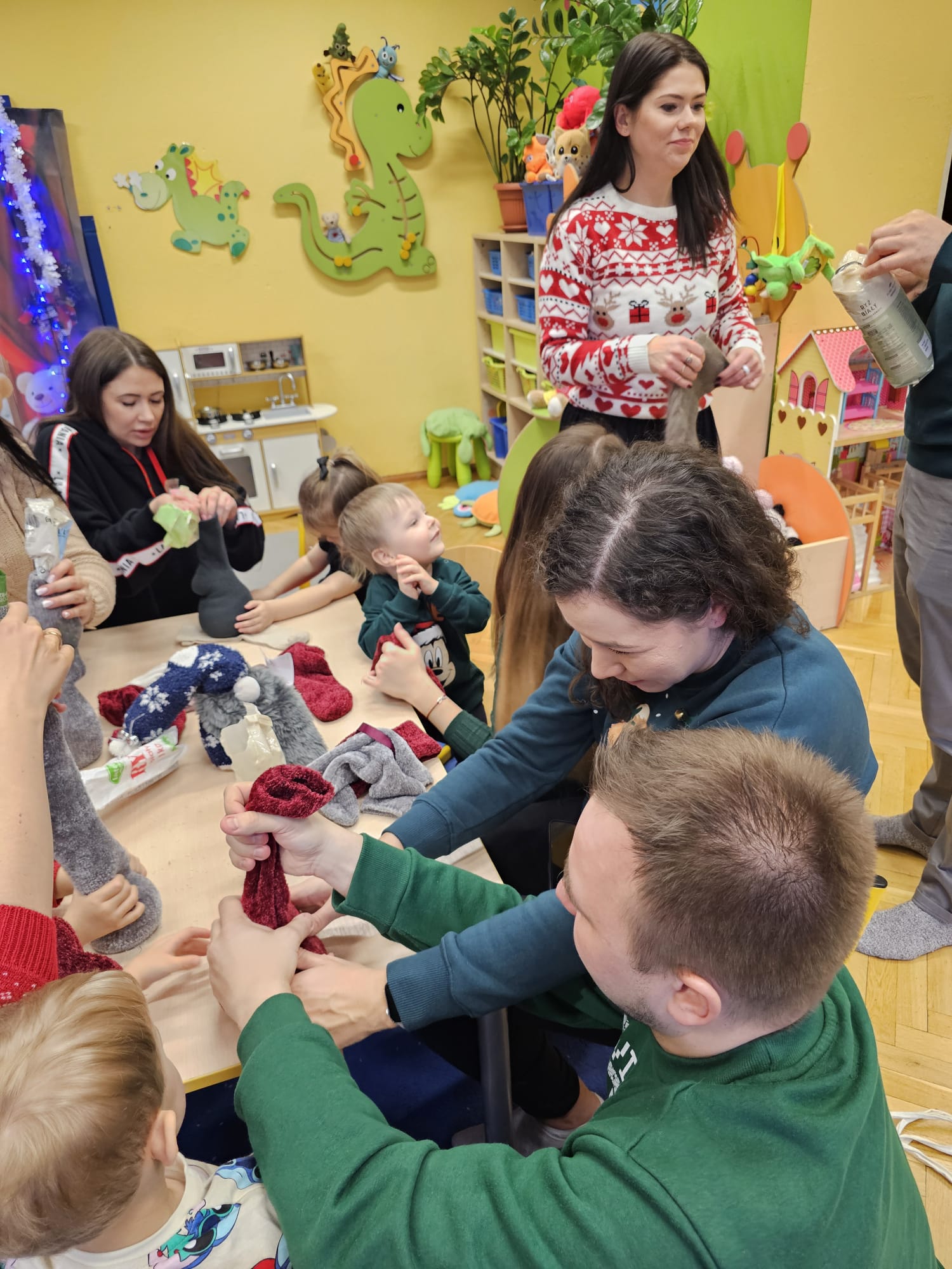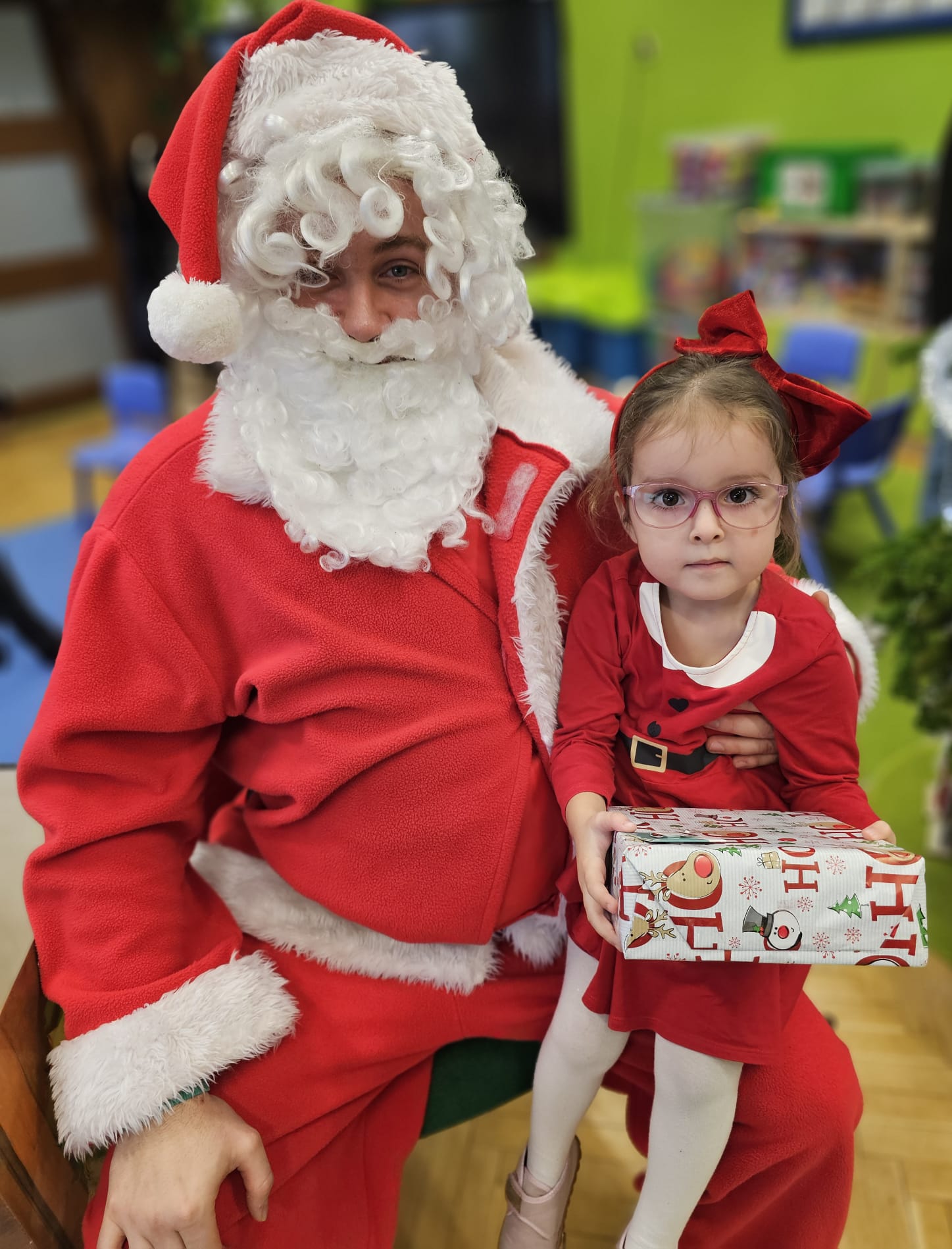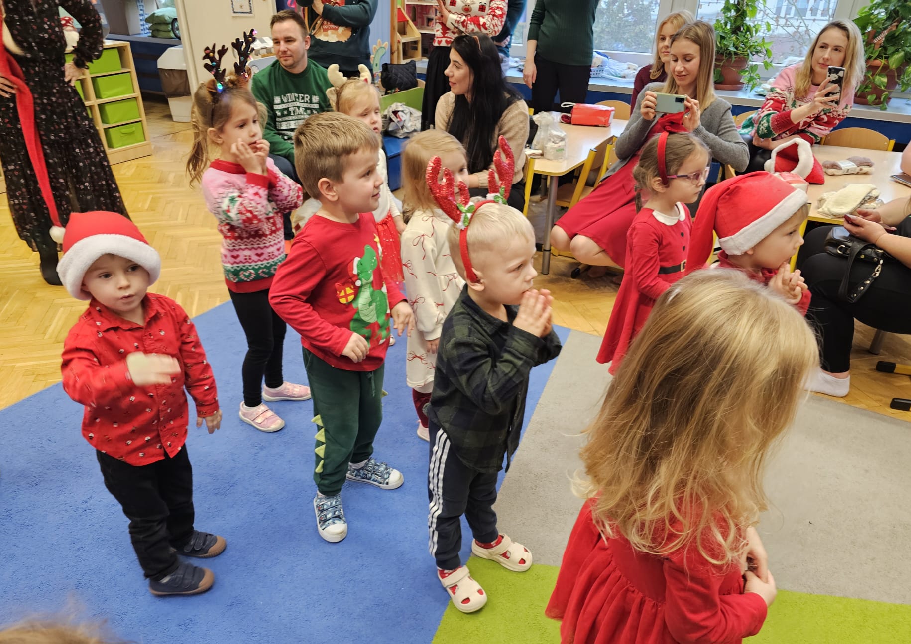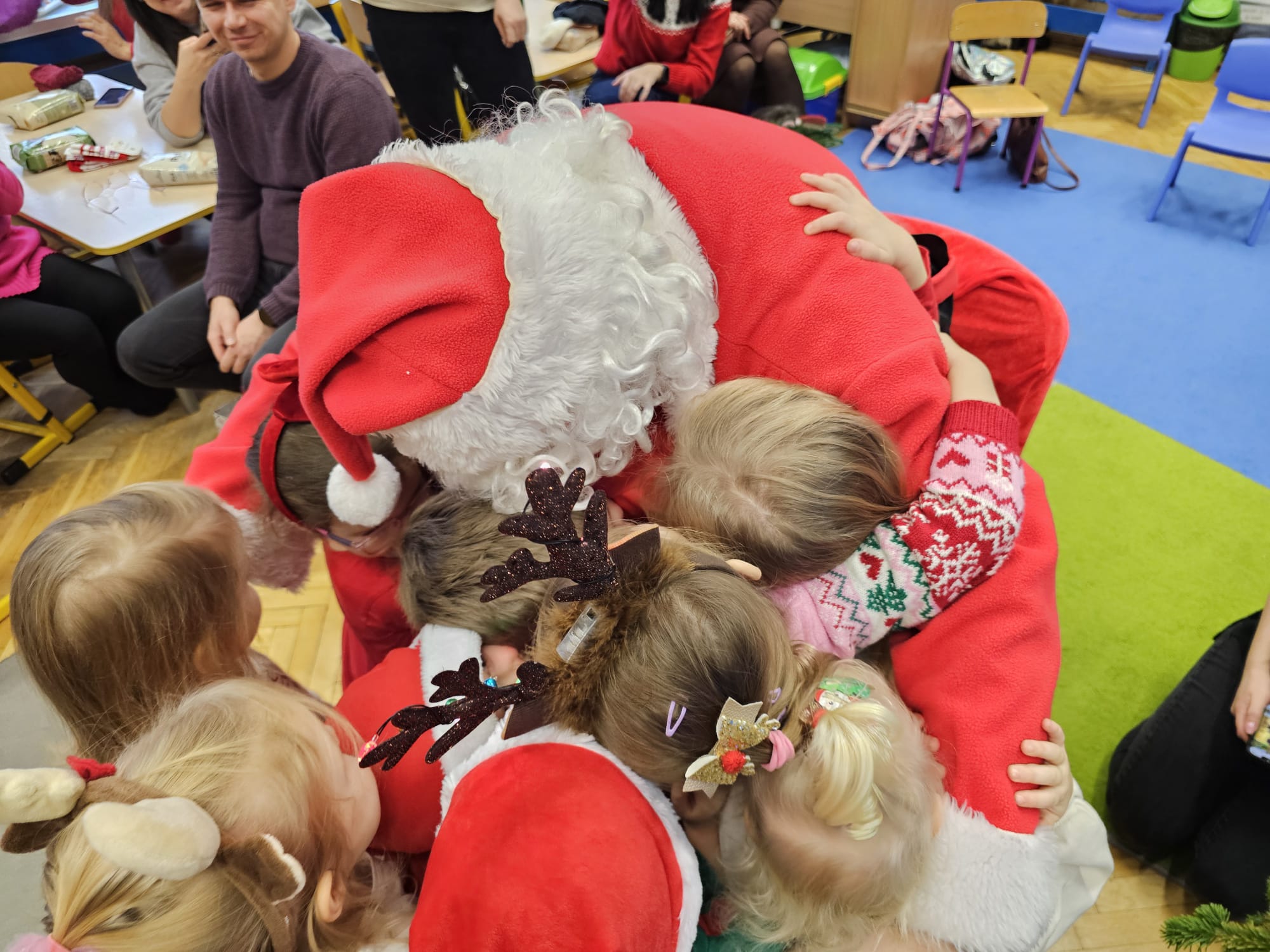 W magicznej, świątecznej atmosferze odbyły się warsztaty bożonarodzeniowe z udziałem dzieci  i ich rodziców. Spotkanie rozpoczęło się od wyjątkowej wizyty Świętego Mikołaja, który sprawił  dzieciom ogromną radość, wywołując uśmiechy i zachwyt na małych twarzach. Następnie dzieci zaprezentowały krótki występ artystyczny, przygotowany specjalnie na tę okazję. Był to wzruszający moment, pełen radości, świątecznych piosenek i wspólnego kolędowania.  Kolejnym punktem spotkania były warsztaty plastyczne, podczas których dzieci wspólnie z rodzicami wykonały świątecznego skrzata oraz bombkę na choinkę. Wspólna praca sprzyjała integracji , rozwijała kreatywność i pozwoliła spędzić czas w ciepłej, rodzinnej atmosferze.  Warsztaty były piękną okazją  do budowania więzi, dzielenia się radością i wprowadzenia wszystkich w wyjątkowy klimat Świąt Bożego Narodzenia. Dziękujemy dzieciom i rodzicom za obecność oraz wspólnie spędzony czas.