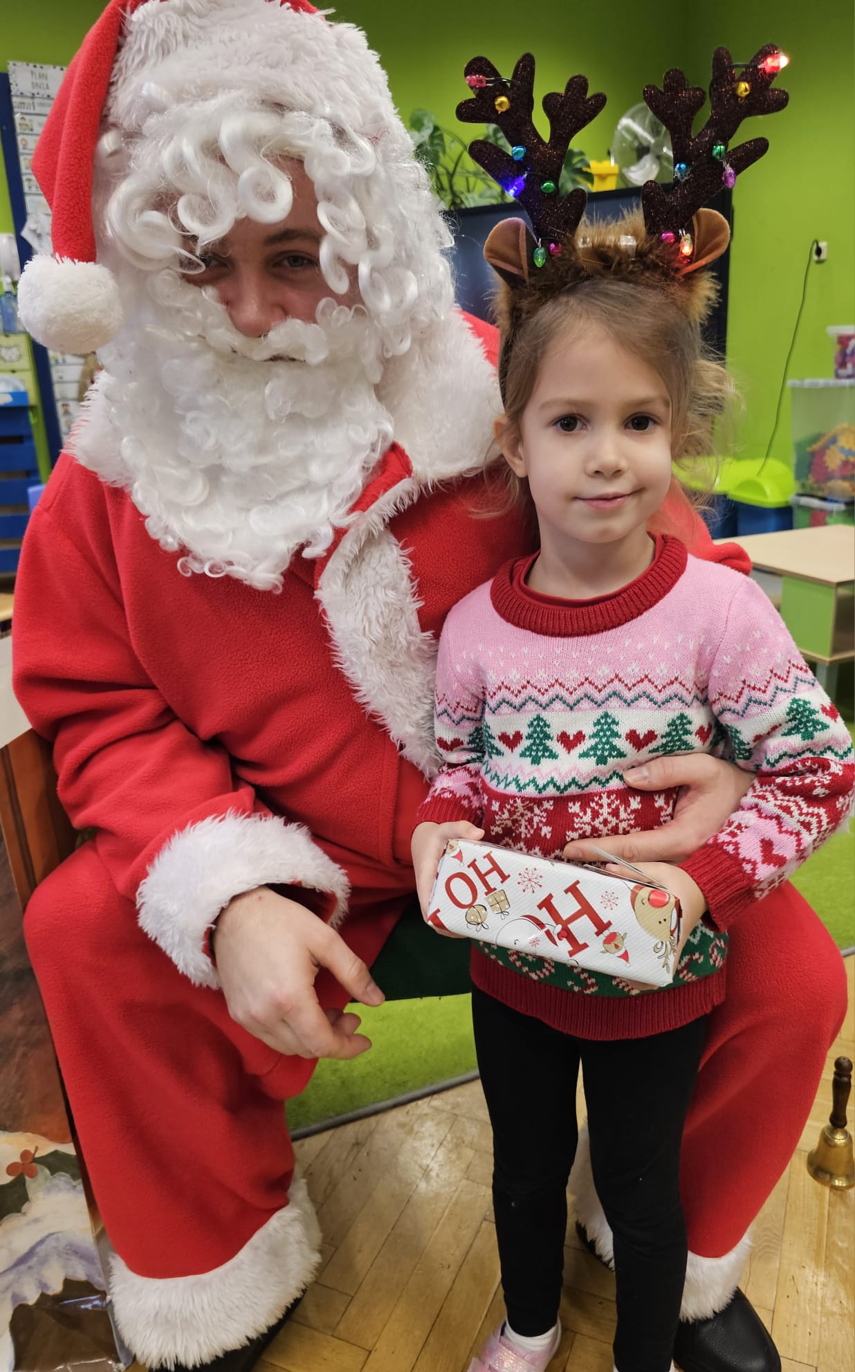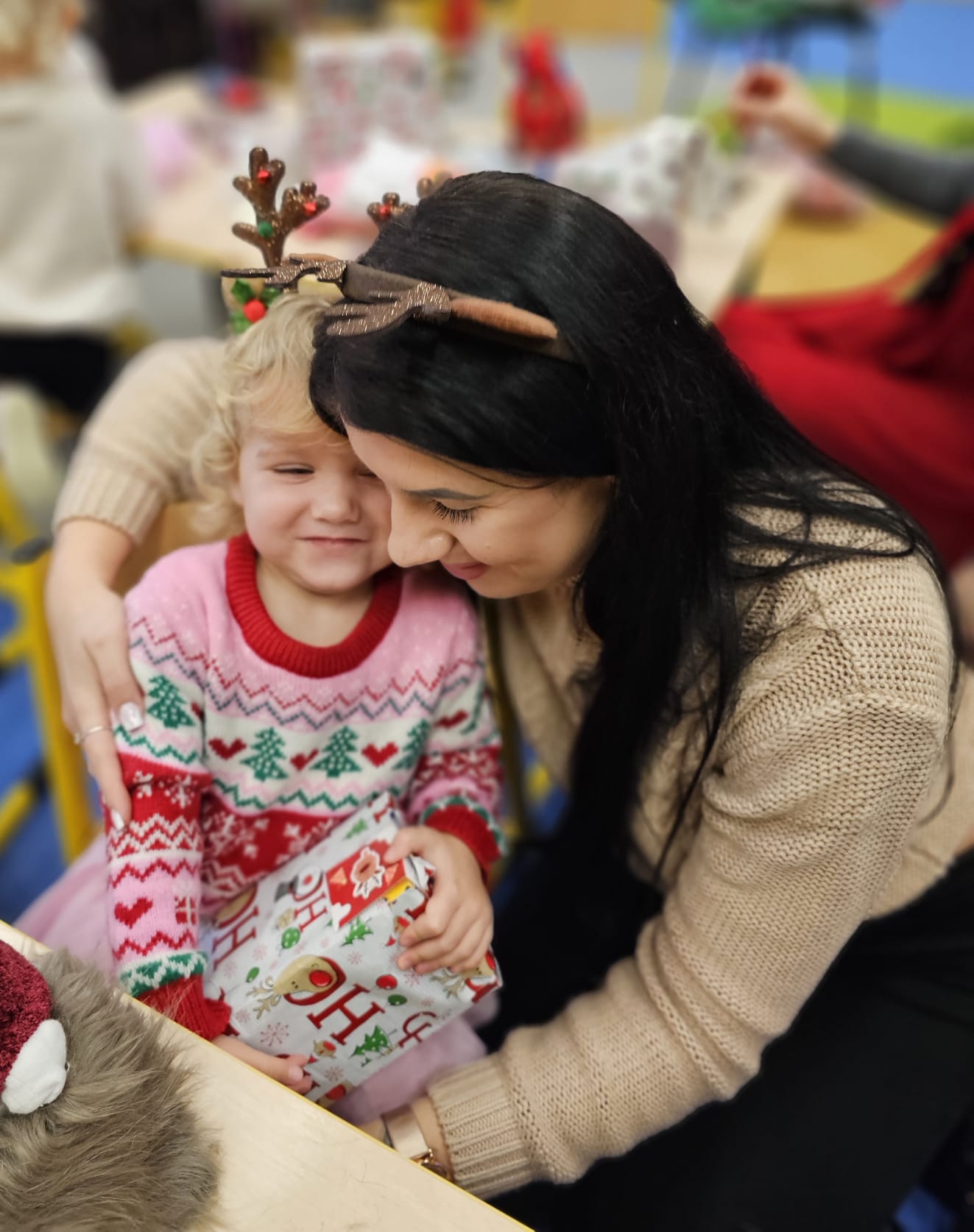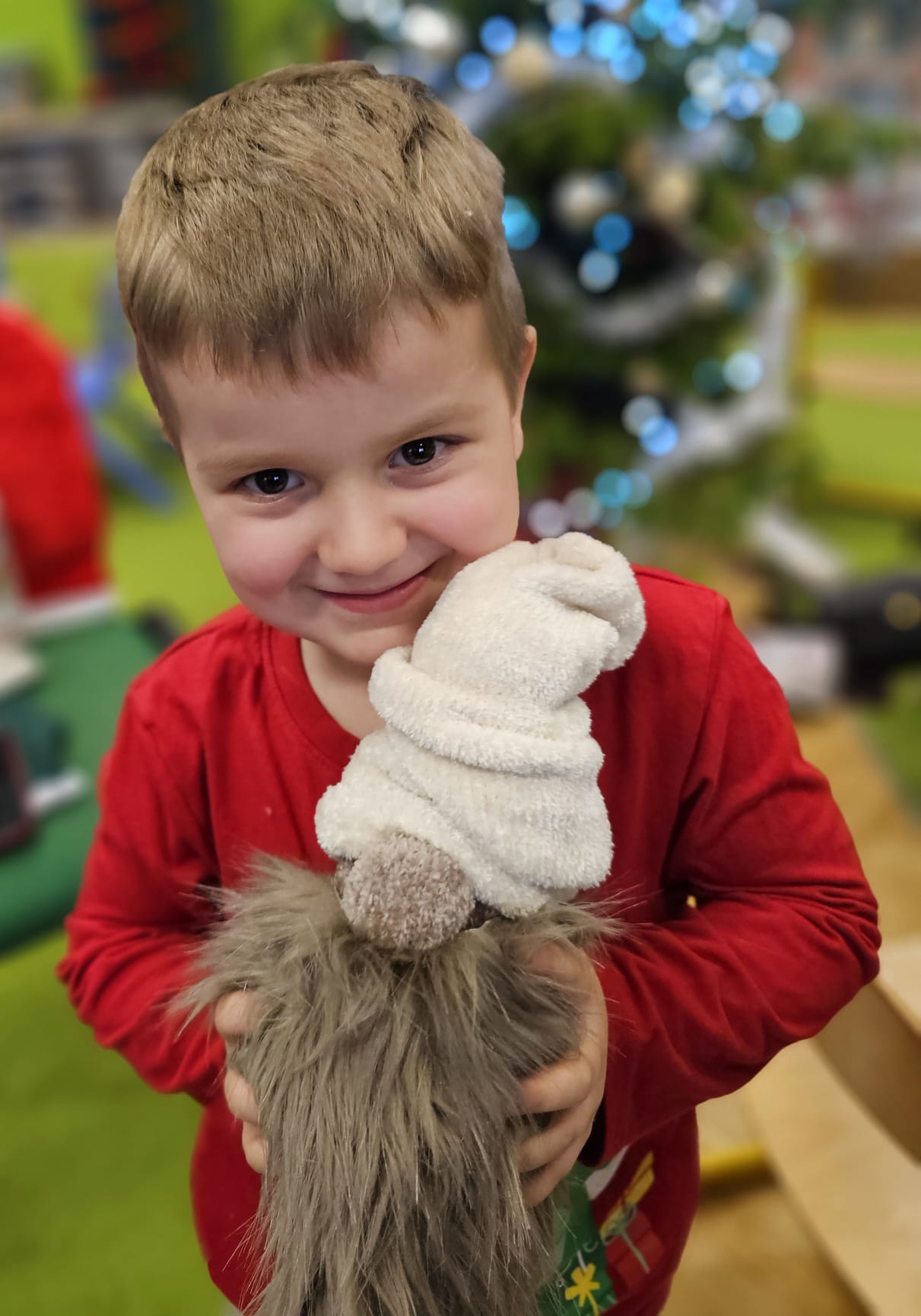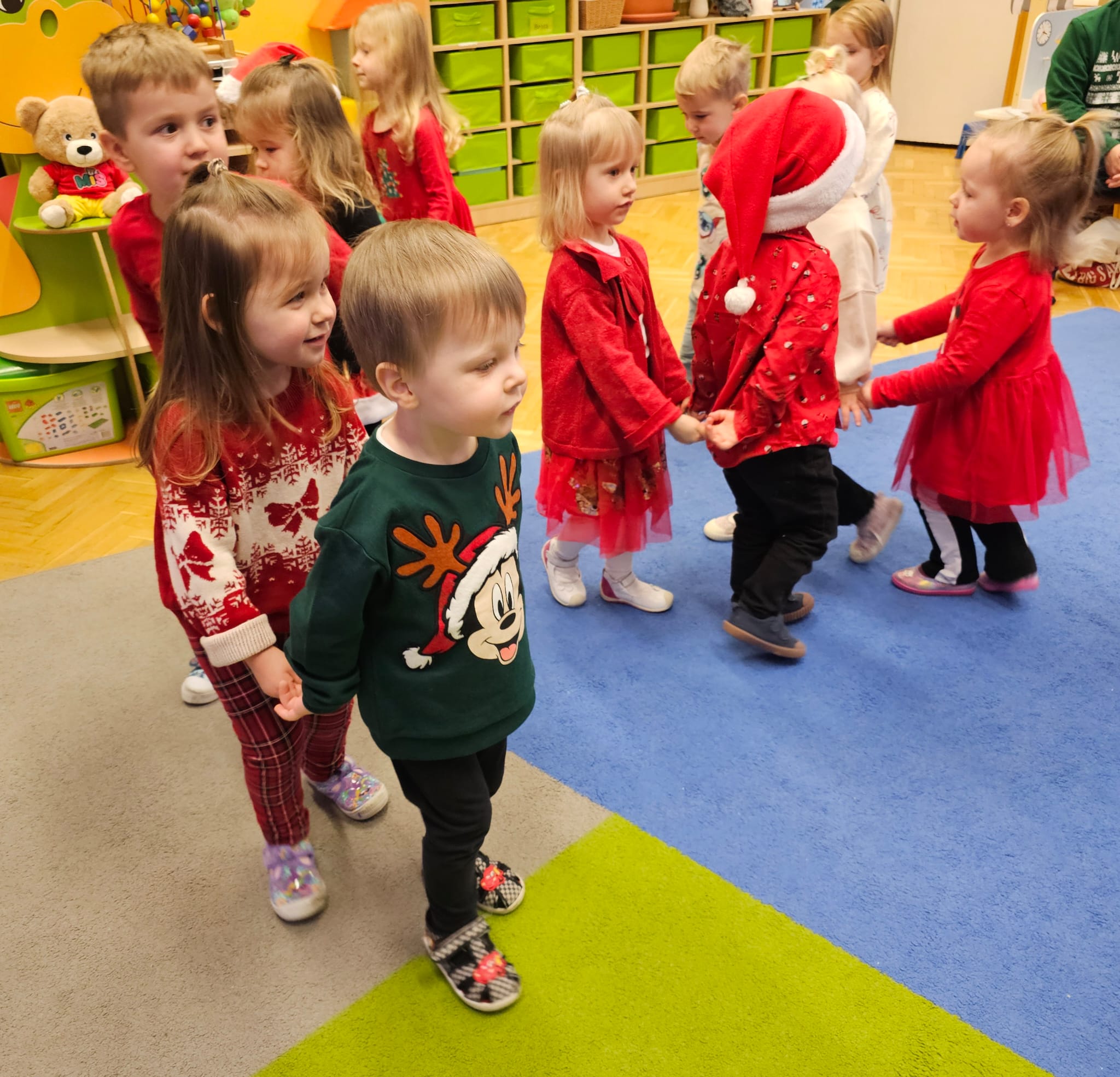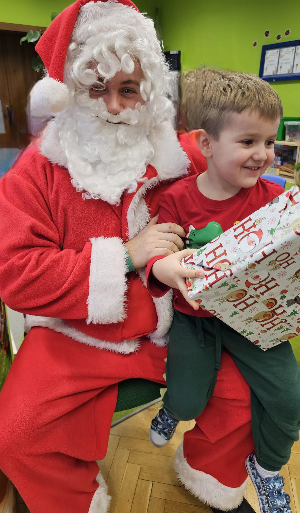 W magicznej, świątecznej atmosferze odbyły się warsztaty bożonarodzeniowe z udziałem dzieci  i ich rodziców. Spotkanie rozpoczęło się od wyjątkowej wizyty Świętego Mikołaja, który sprawił  dzieciom ogromną radość, wywołując uśmiechy i zachwyt na małych twarzach. Następnie dzieci zaprezentowały krótki występ artystyczny, przygotowany specjalnie na tę okazję. Był to wzruszający moment, pełen radości, świątecznych piosenek i wspólnego kolędowania.  Kolejnym punktem spotkania były warsztaty plastyczne, podczas których dzieci wspólnie z rodzicami wykonały świątecznego skrzata oraz bombkę na choinkę. Wspólna praca sprzyjała integracji , rozwijała kreatywność i pozwoliła spędzić czas w ciepłej, rodzinnej atmosferze.  Warsztaty były piękną okazją  do budowania więzi, dzielenia się radością i wprowadzenia wszystkich w wyjątkowy klimat Świąt Bożego Narodzenia. Dziękujemy dzieciom i rodzicom za obecność oraz wspólnie spędzony czas.