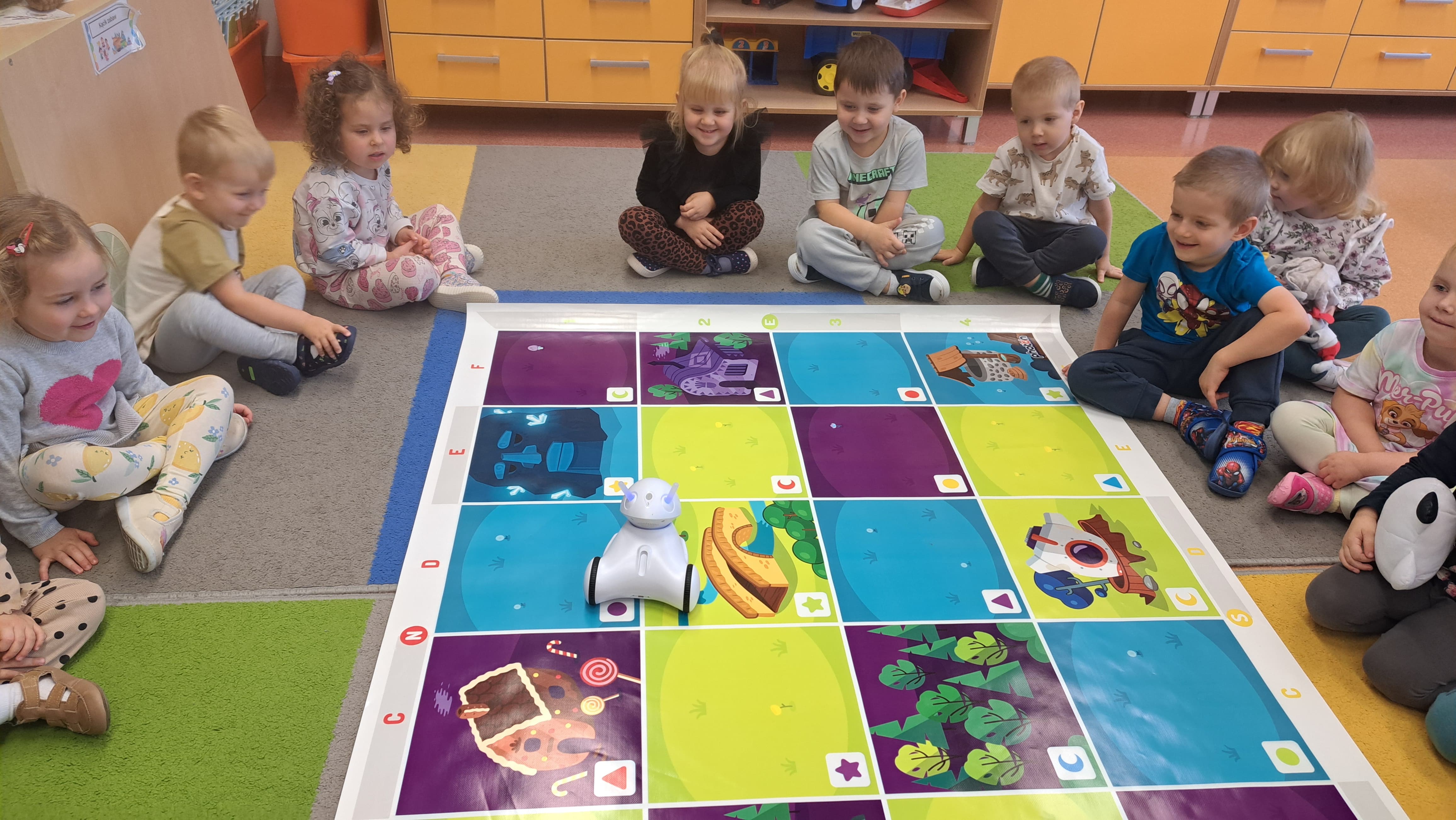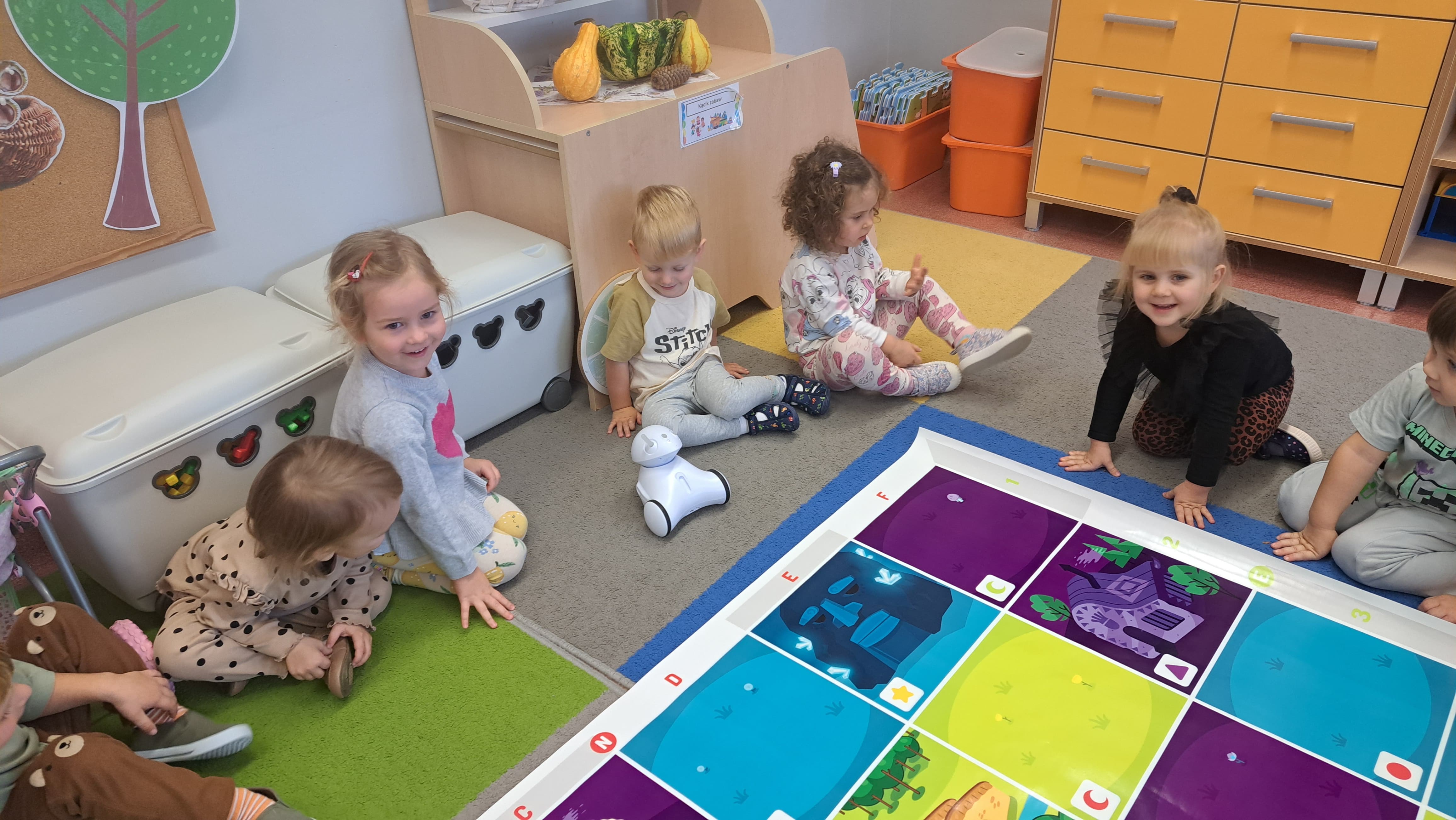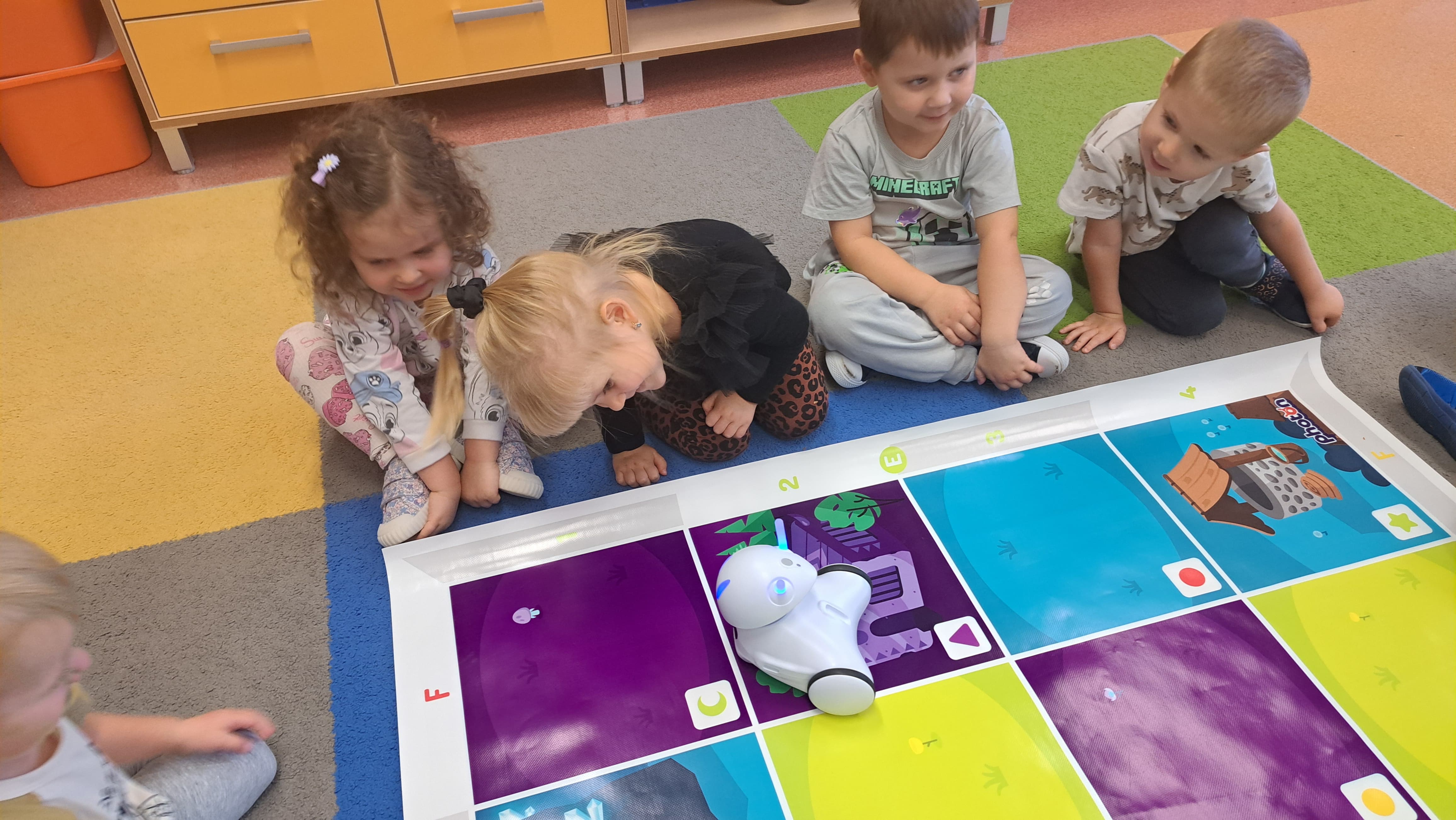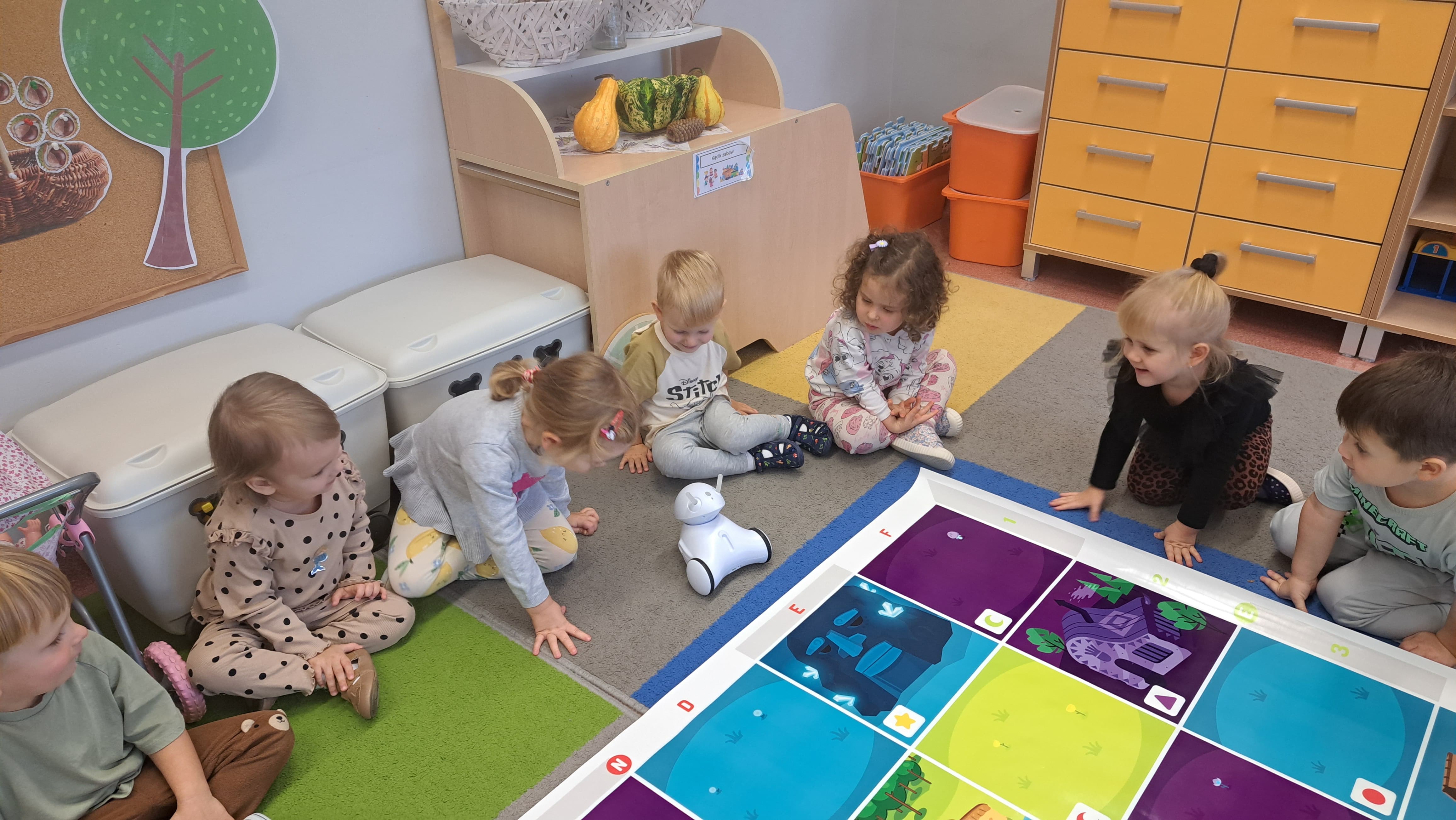 Niewątpliwą atrakcją było pierwsze spotkanie z Photonem - interaktywnym robotem edukacyjnym. Dzieci uczyły go poruszania się w określonych kierunkach, ćwicząc orientację w przestrzeni. Zabawy w kodowanie były doskonałą okazją do wzbogacenia wiedzy o jesieni i jej darach. Sprawiły też dzieciom dużą frajdę, dlatego z pewnością będziemy kontynuować przygodę z kodowaniem przez kolejne miesiące.