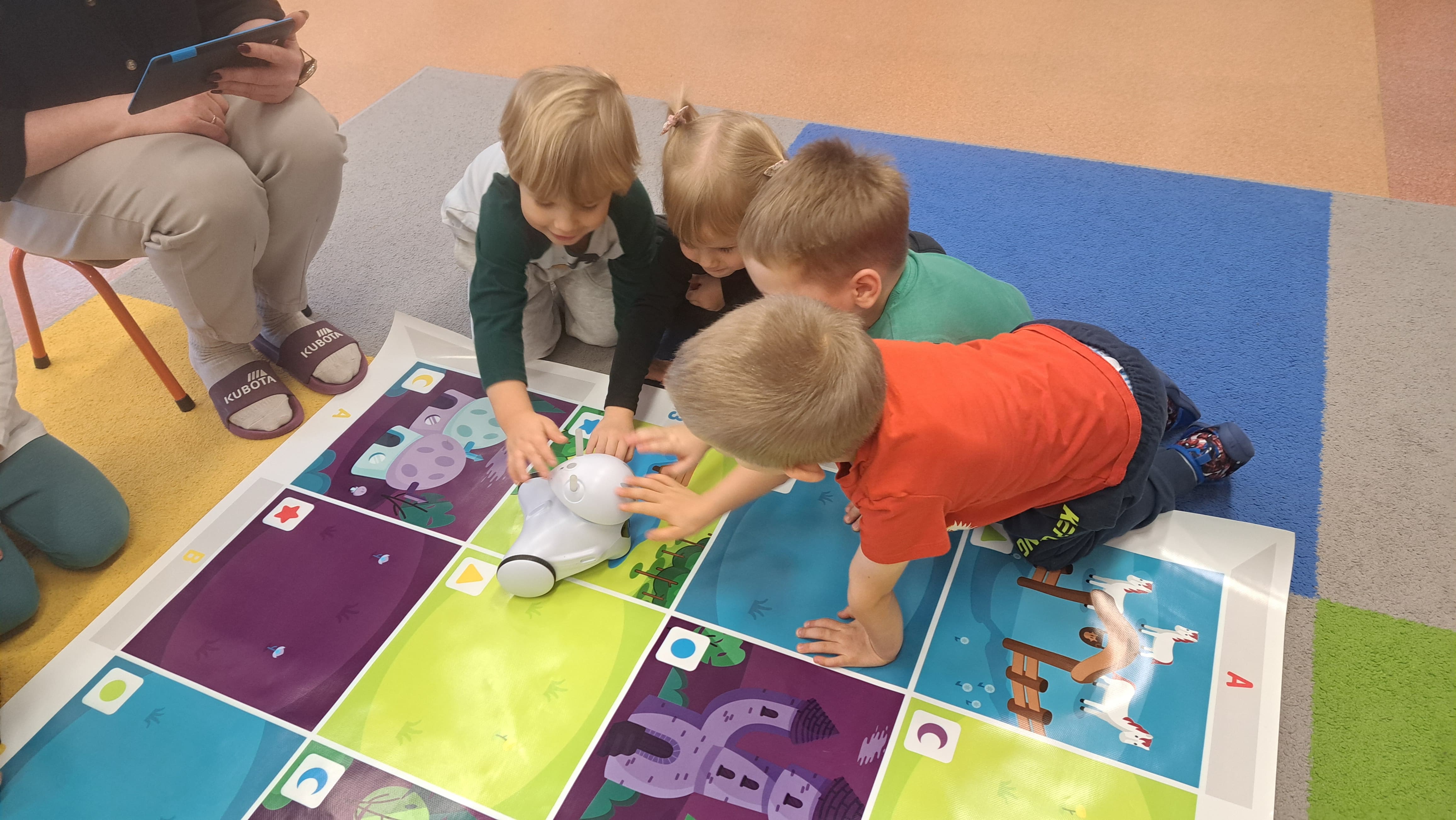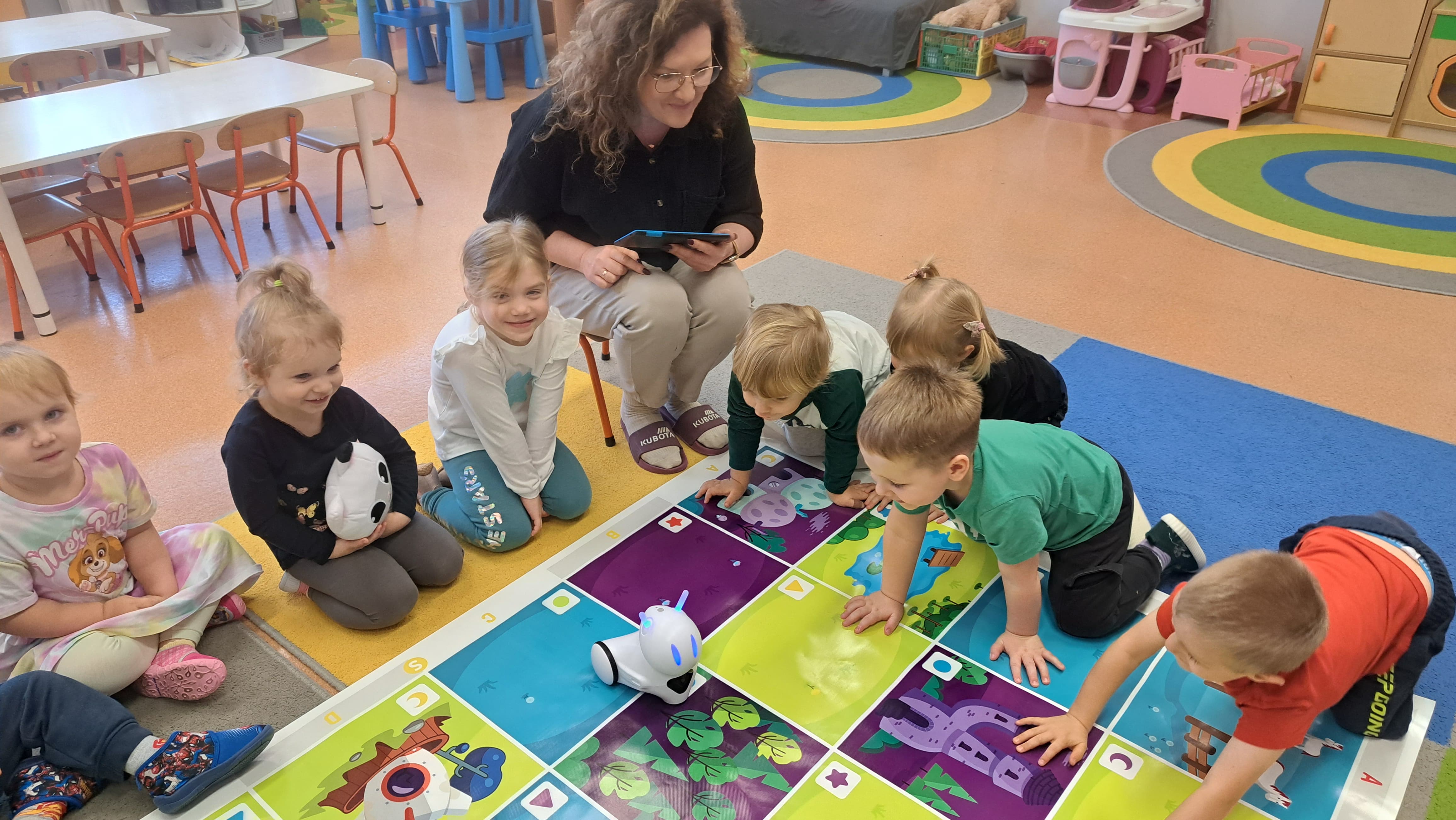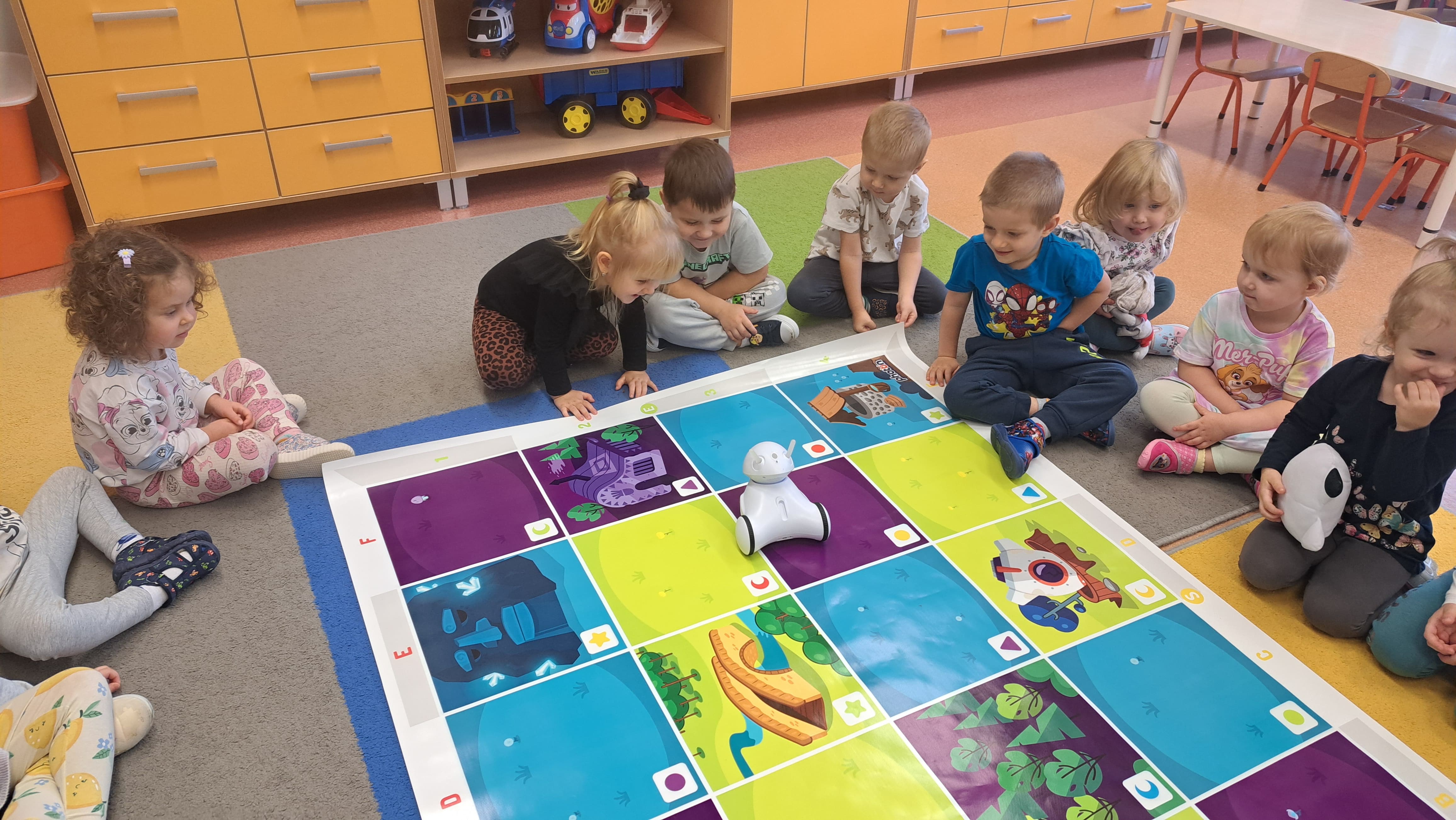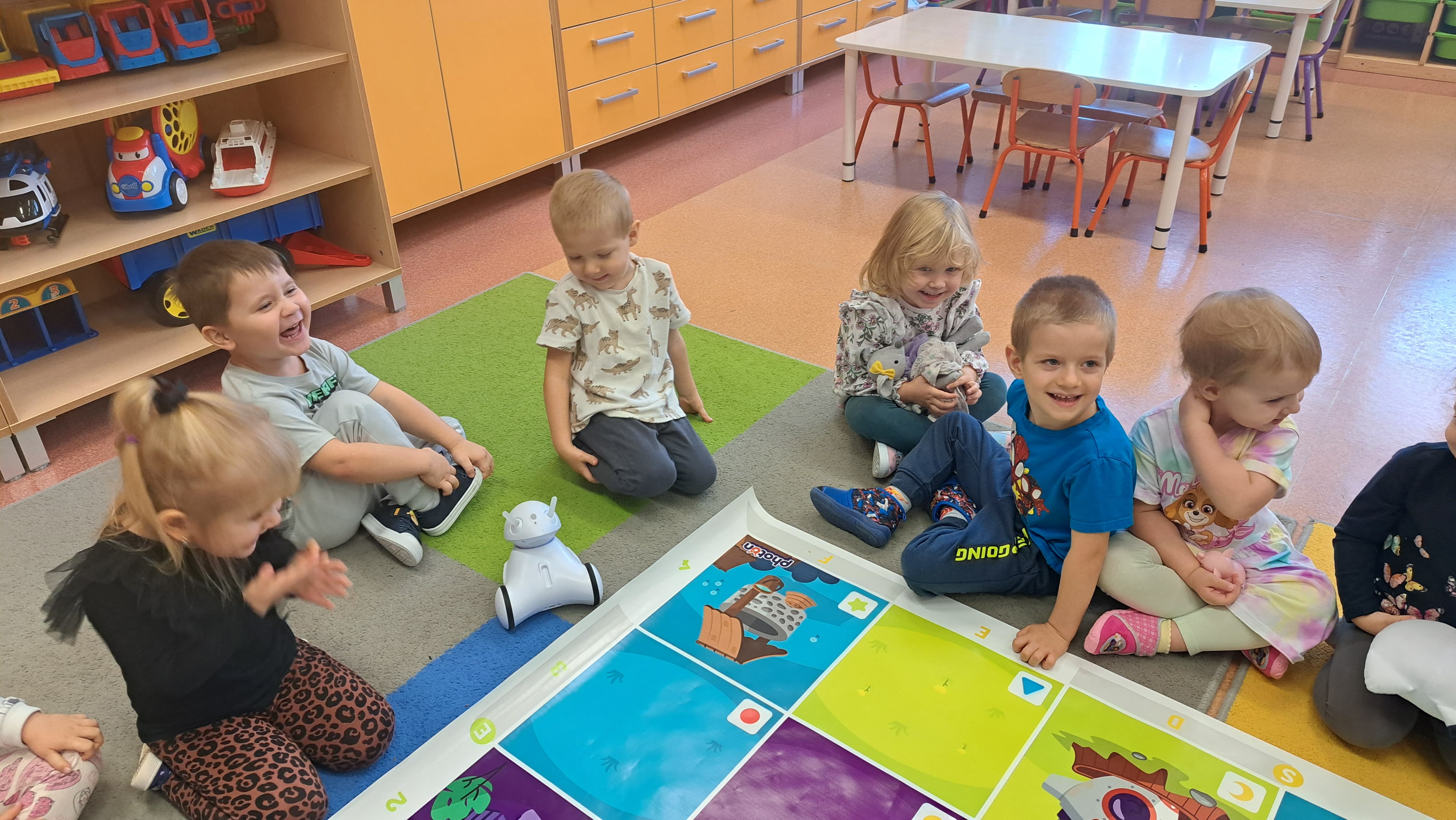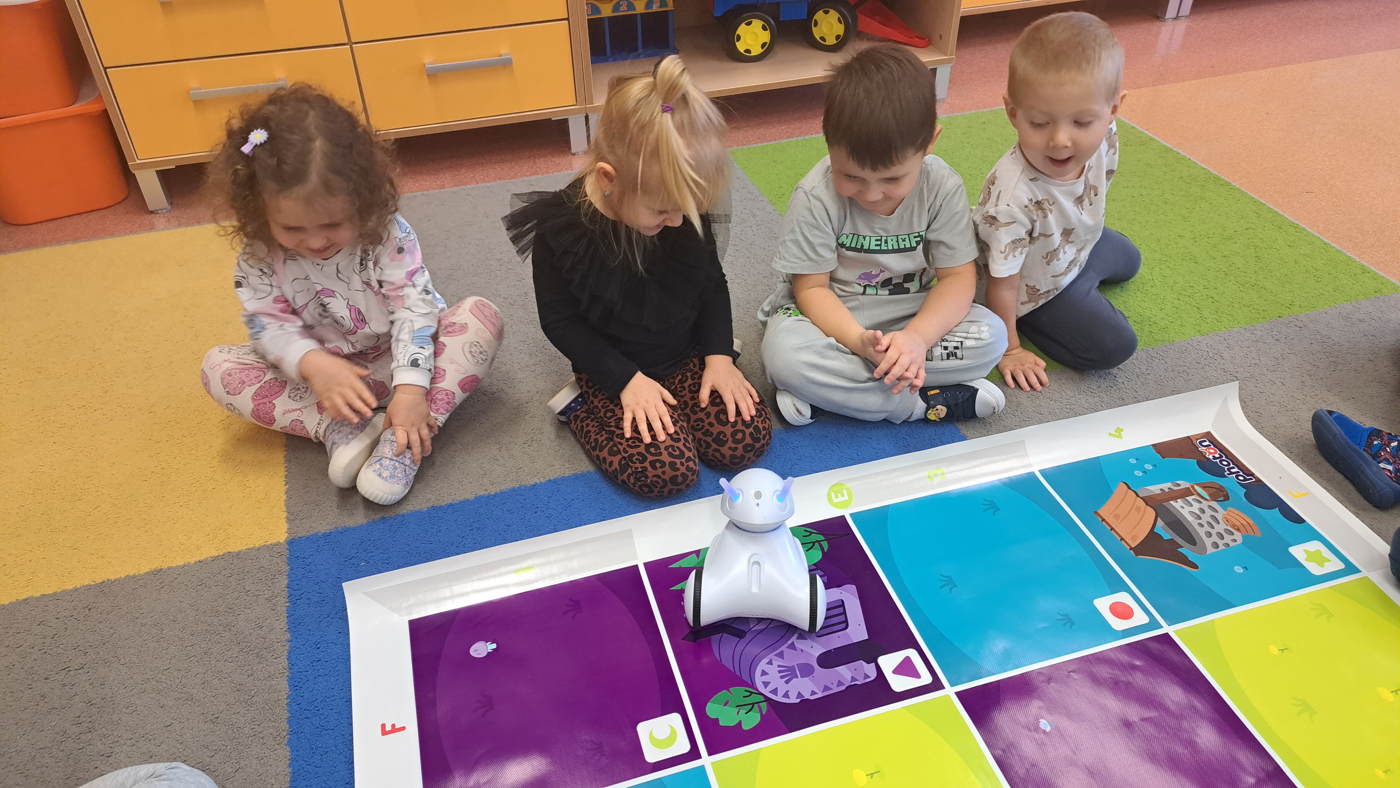 Niewątpliwą atrakcją było pierwsze spotkanie z Photonem - interaktywnym robotem edukacyjnym. Dzieci uczyły go poruszania się w określonych kierunkach, ćwicząc orientację w przestrzeni. Zabawy w kodowanie były doskonałą okazją do wzbogacenia wiedzy o jesieni i jej darach. Sprawiły też dzieciom dużą frajdę, dlatego z pewnością będziemy kontynuować przygodę z kodowaniem przez kolejne miesiące.