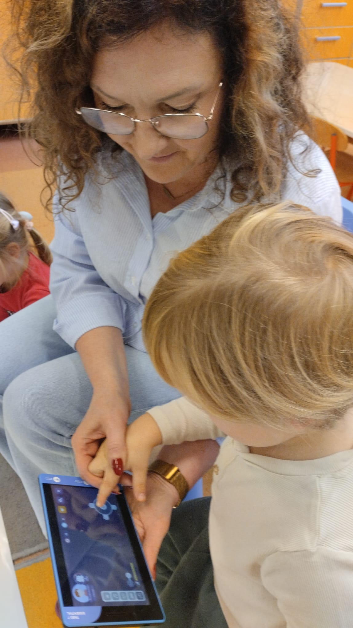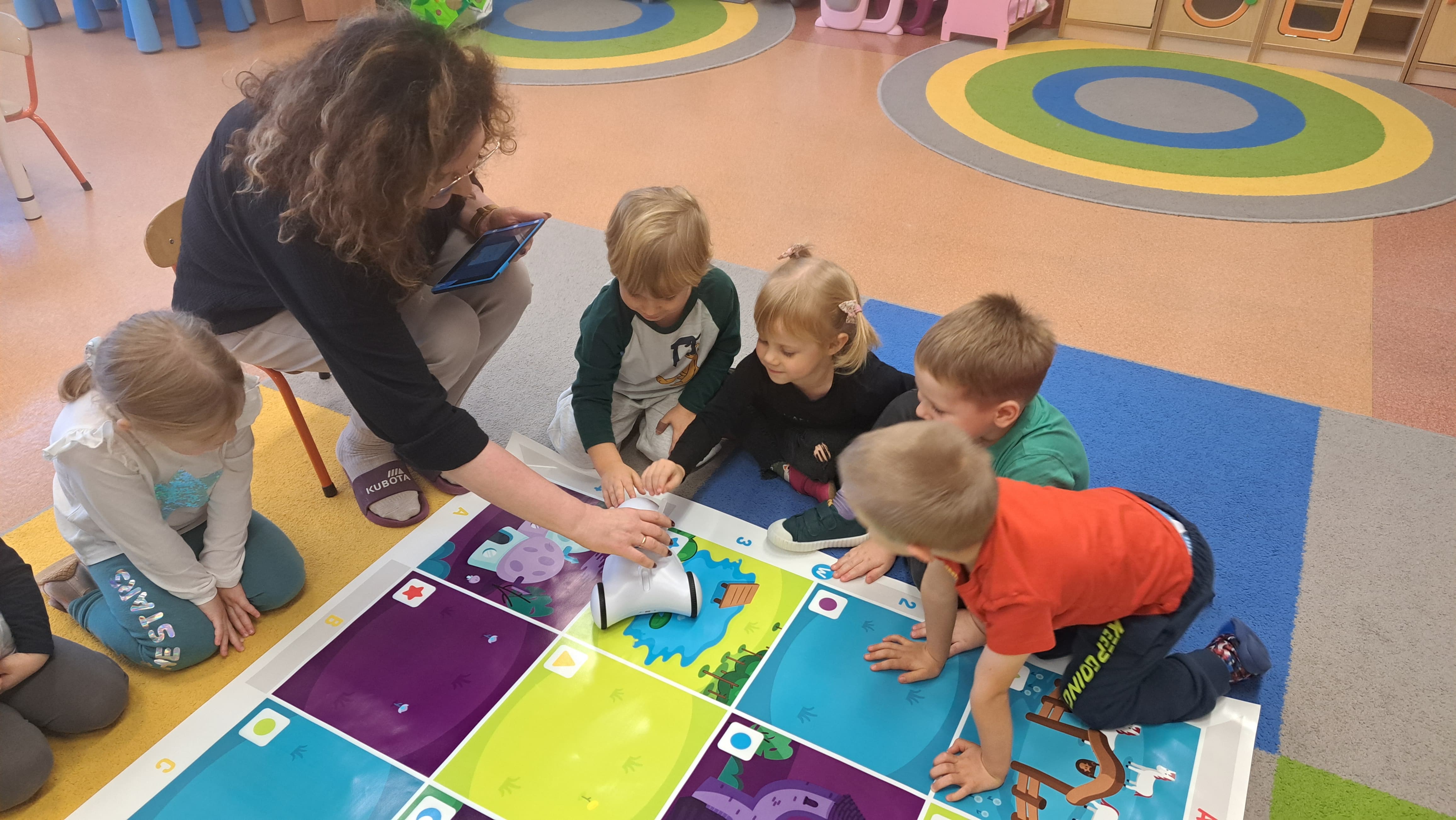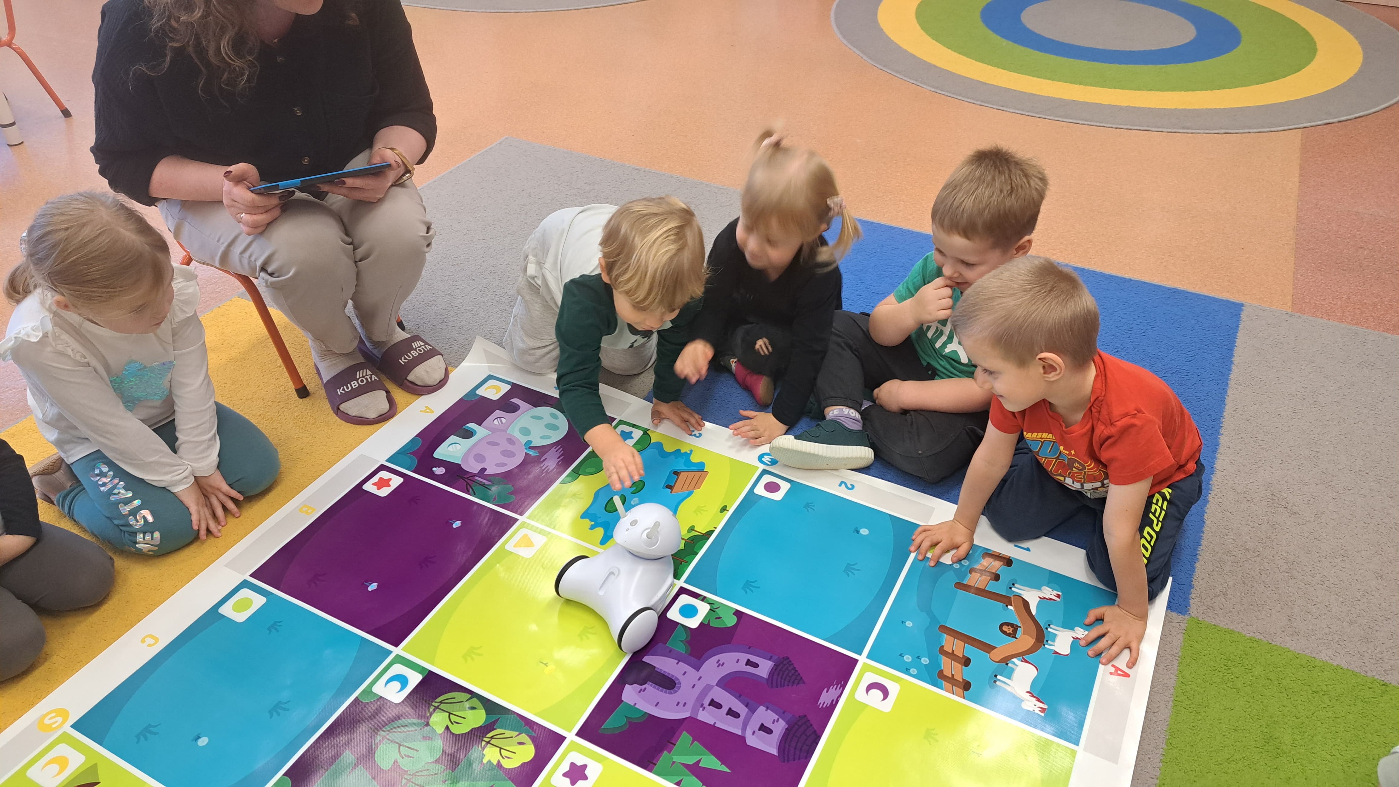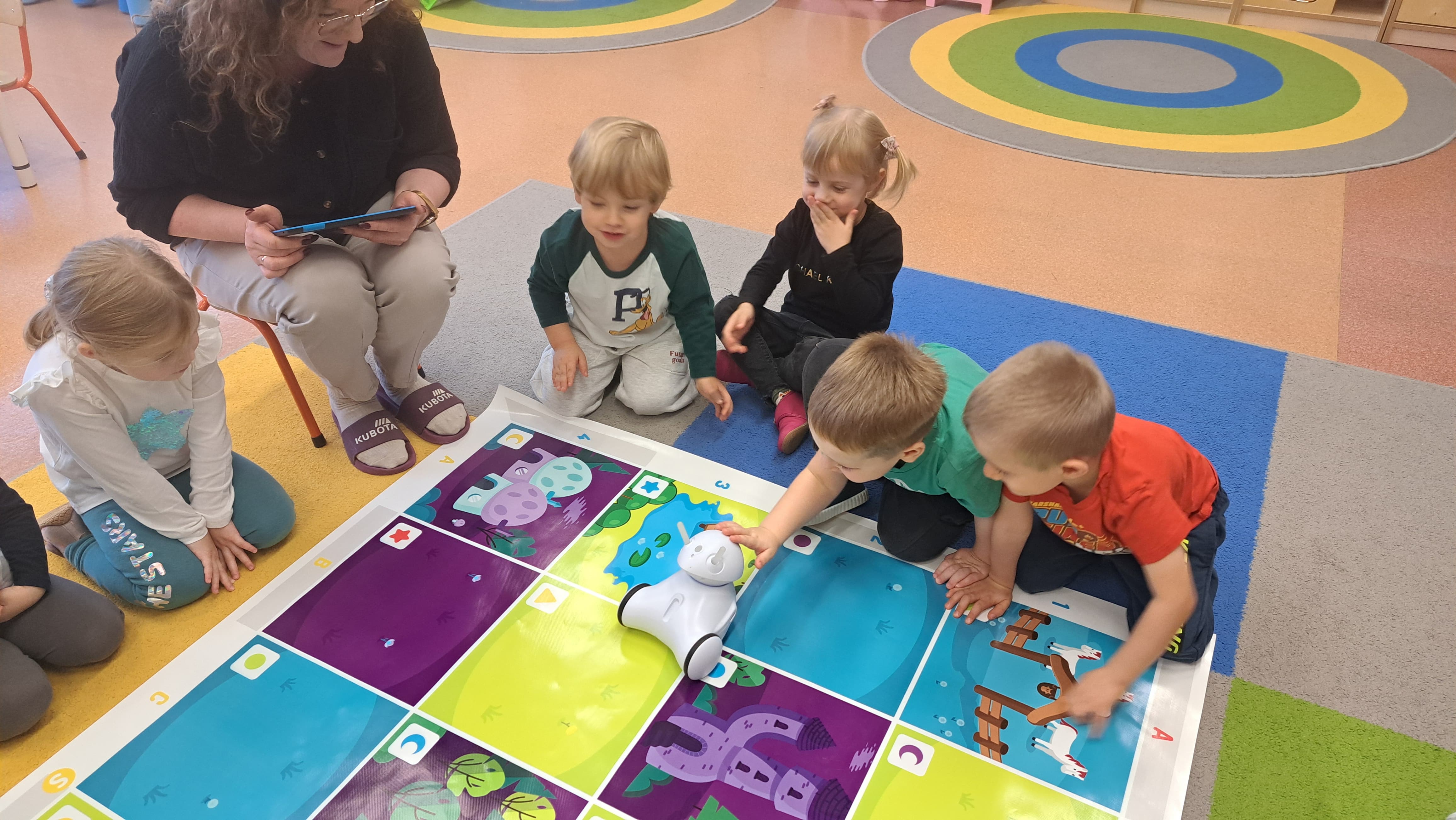 Niewątpliwą atrakcją było pierwsze spotkanie z Photonem - interaktywnym robotem edukacyjnym. Dzieci uczyły go poruszania się w określonych kierunkach, ćwicząc orientację w przestrzeni. Zabawy w kodowanie były doskonałą okazją do wzbogacenia wiedzy o jesieni i jej darach. Sprawiły też dzieciom dużą frajdę, dlatego z pewnością będziemy kontynuować przygodę z kodowaniem przez kolejne miesiące.