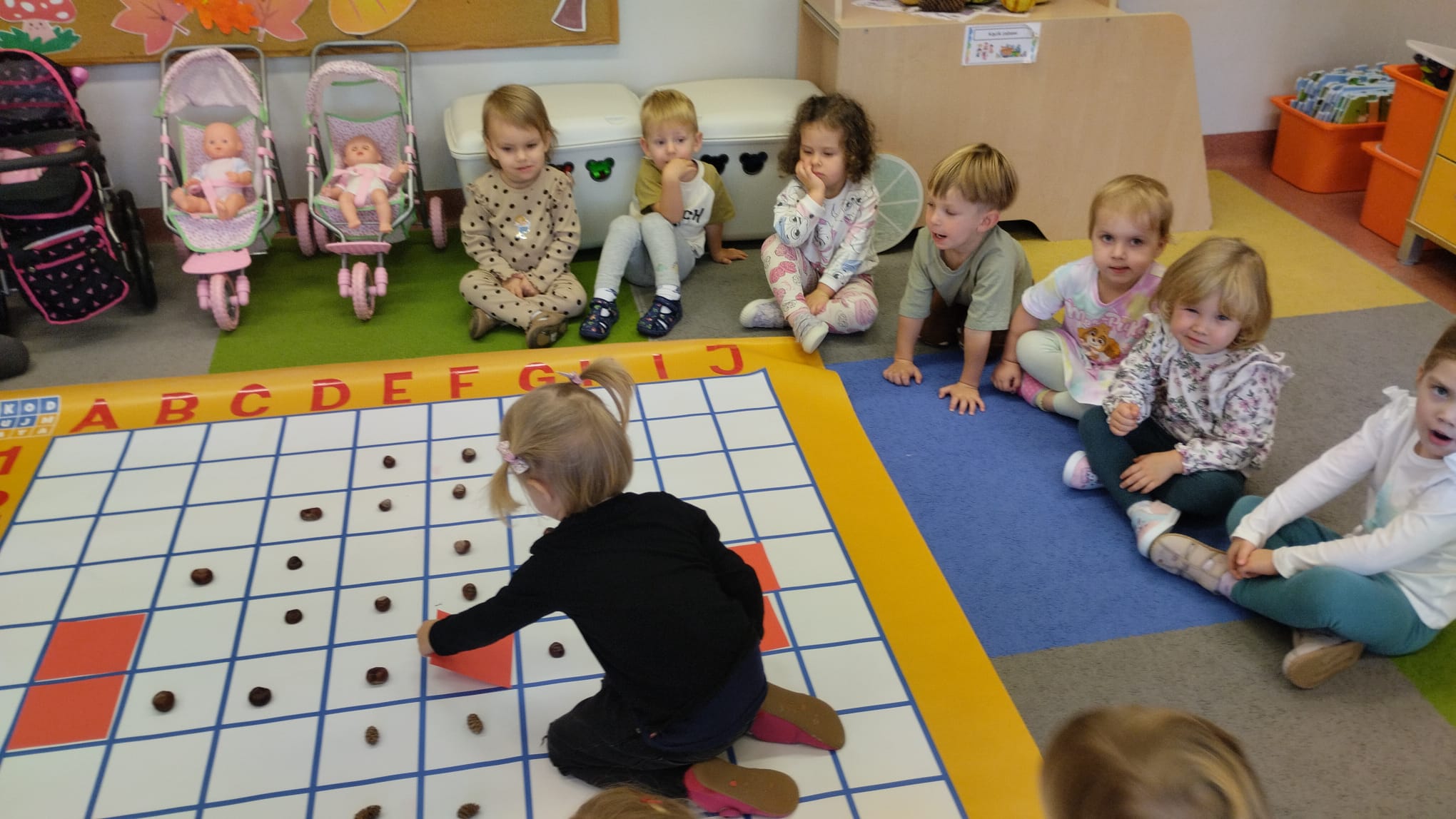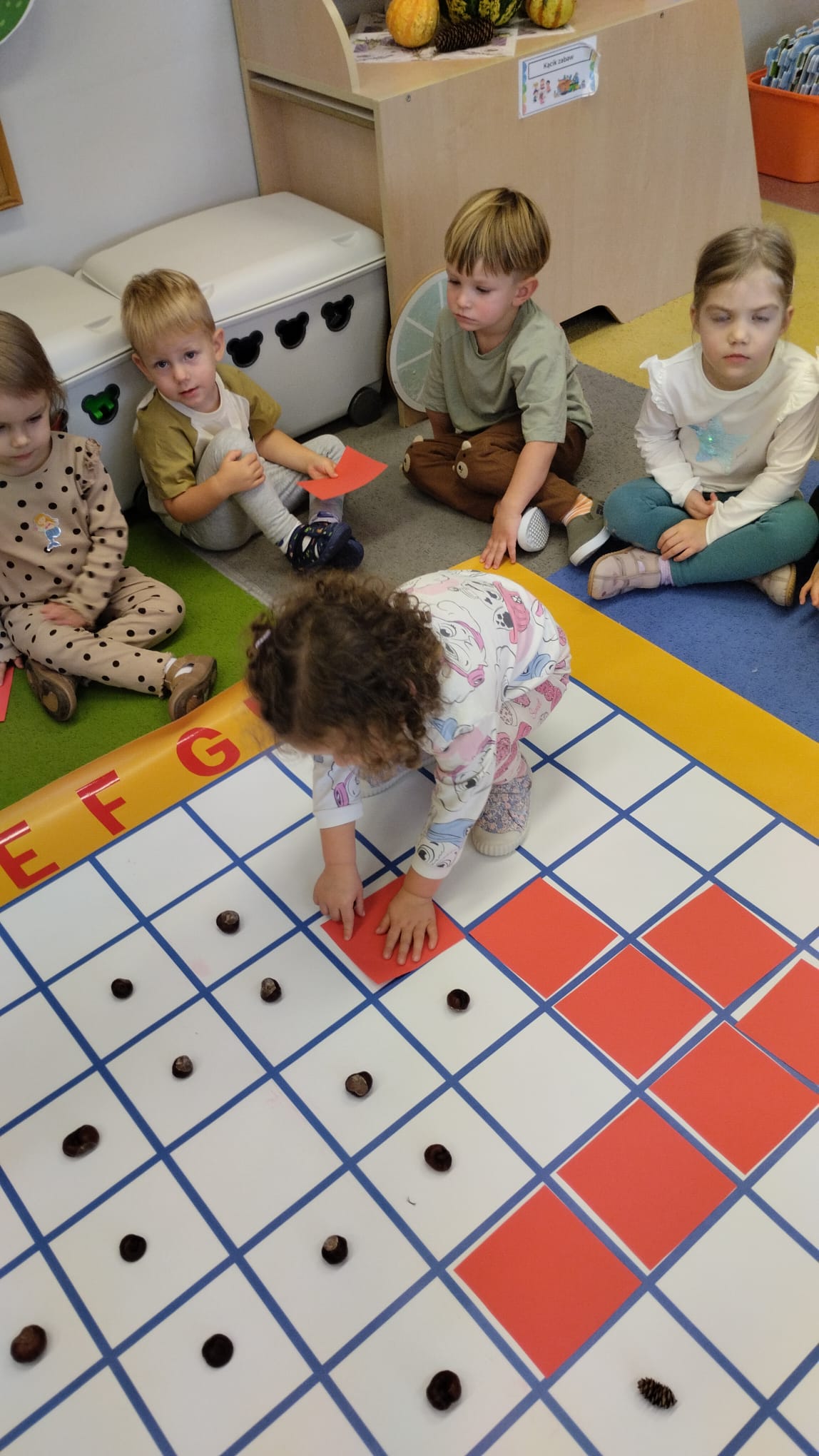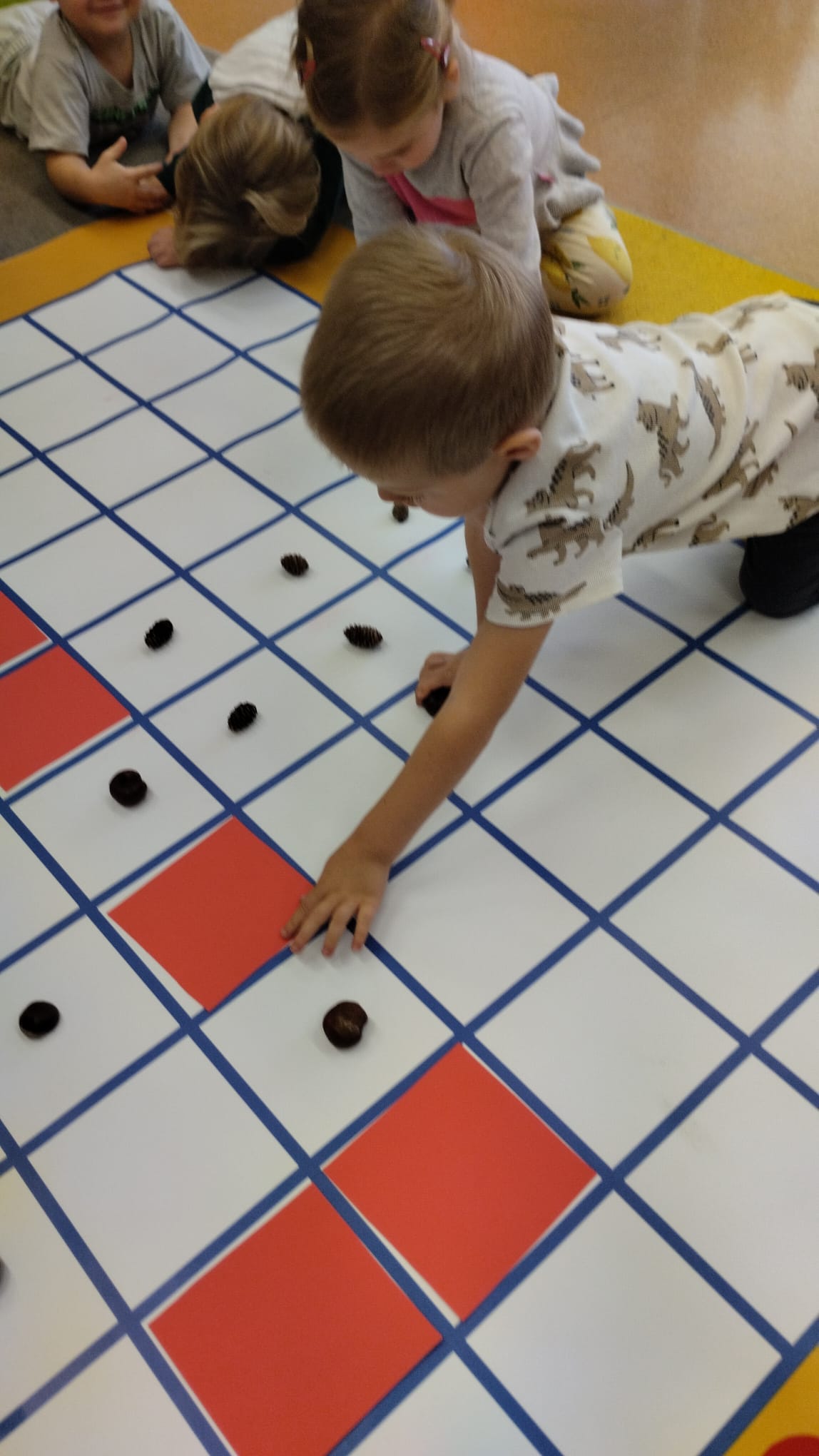 Maluszki z grupy IX z dużą przyjemnością wzięły po raz pierwszy udział w kodowaniu na dywanie. Wykorzystując specjalną matę ruszyły na kodowane „grzybobranie”… Ćwiczyły spostrzegawczość zastępując materiał przyrodniczy kartonikiem w odpowiednim kolorze.