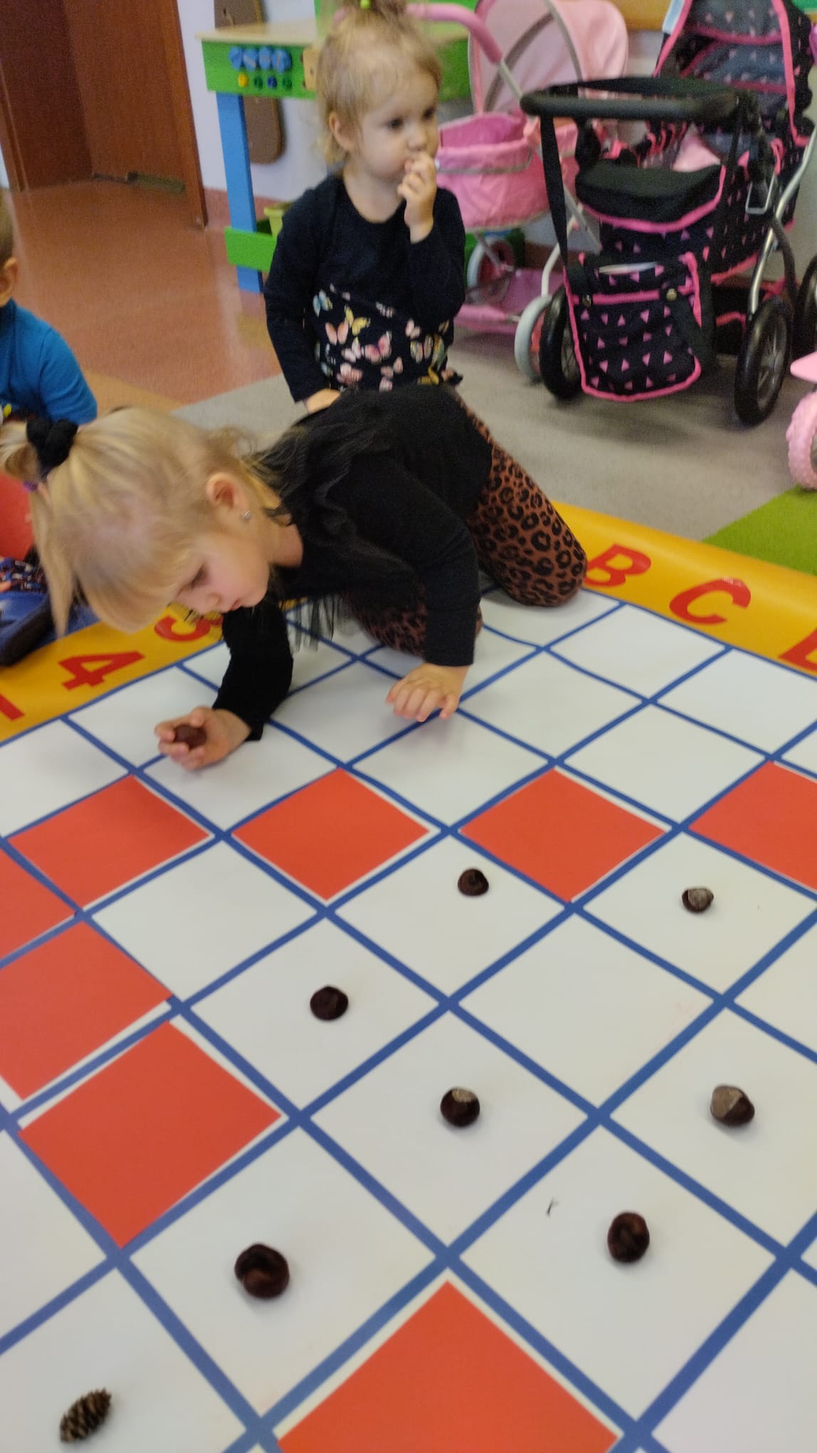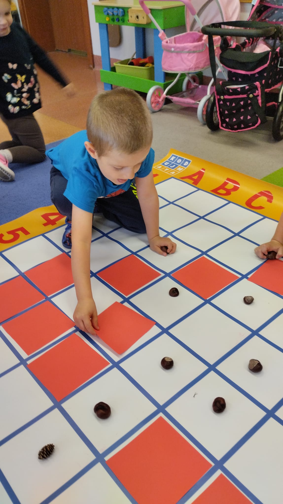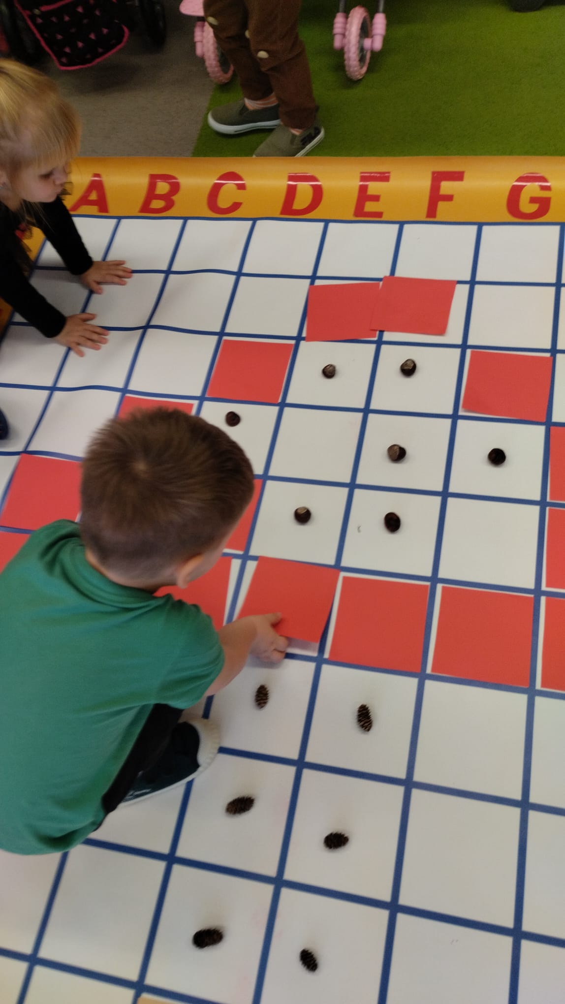 Maluszki z grupy IX z dużą przyjemnością wzięły po raz pierwszy udział w kodowaniu na dywanie. Wykorzystując specjalną matę ruszyły na kodowane „grzybobranie”… Ćwiczyły spostrzegawczość zastępując materiał przyrodniczy kartonikiem w odpowiednim kolorze.