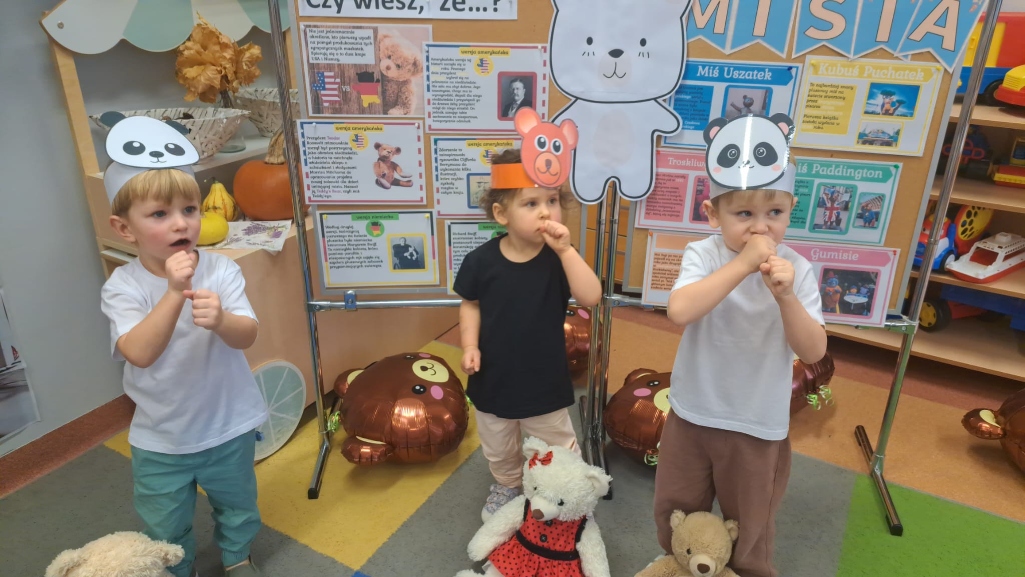 Miękki, puchaty i taki z łatką, nasz wyjątkowy, nasz ukochany, który nie jest zwykłą zabawką - 25 listopada obchodzi swoje święto. Zapytacie o kim mowa ? Otóż o PLUSZOWYM MISIU …. najmilszej zabawce, najlepszym przyjacielu dzieci i niezastąpionej przytulance podczas zasypiania. Mimo coraz nowocześniejszych i coraz bardziej atrakcyjnych zabawek, moda na misie nie przemija, bo „czy to jutro, czy to dziś, wszystkim jest potrzebny Miś!”. Światowy Dzień Pluszowego Misia ustanowiono dokładnie w setną rocznicę powstania maskotki – w 2002 roku…. Ta sympatyczna postać stała się bohaterem wielu opowieści, bajek, filmów. Dość wymienić kilka najbardziej popularnych pluszowych bohaterów, jak Kubuś Puchatek, Miś Colargol, Miś Yogi, Miś Uszatek czy Miś Paddington.No i jak przystało na wielbicieli Pluszowego Misia, maluszki z grupy IX baaardzo hucznie świętowały ten dzień... Aby zobaczyć jak bardzo „misiowo” i zabawowo było w tym dniu w naszej grupie zapraszamy do obejrzenia galerii zdjęć.