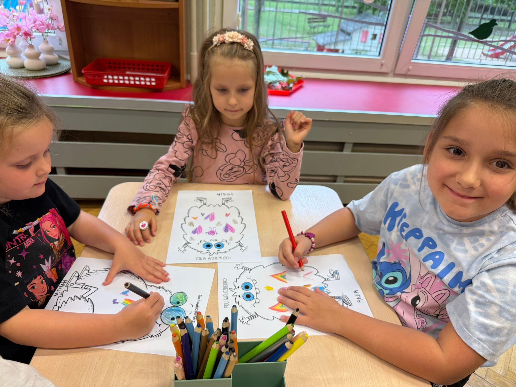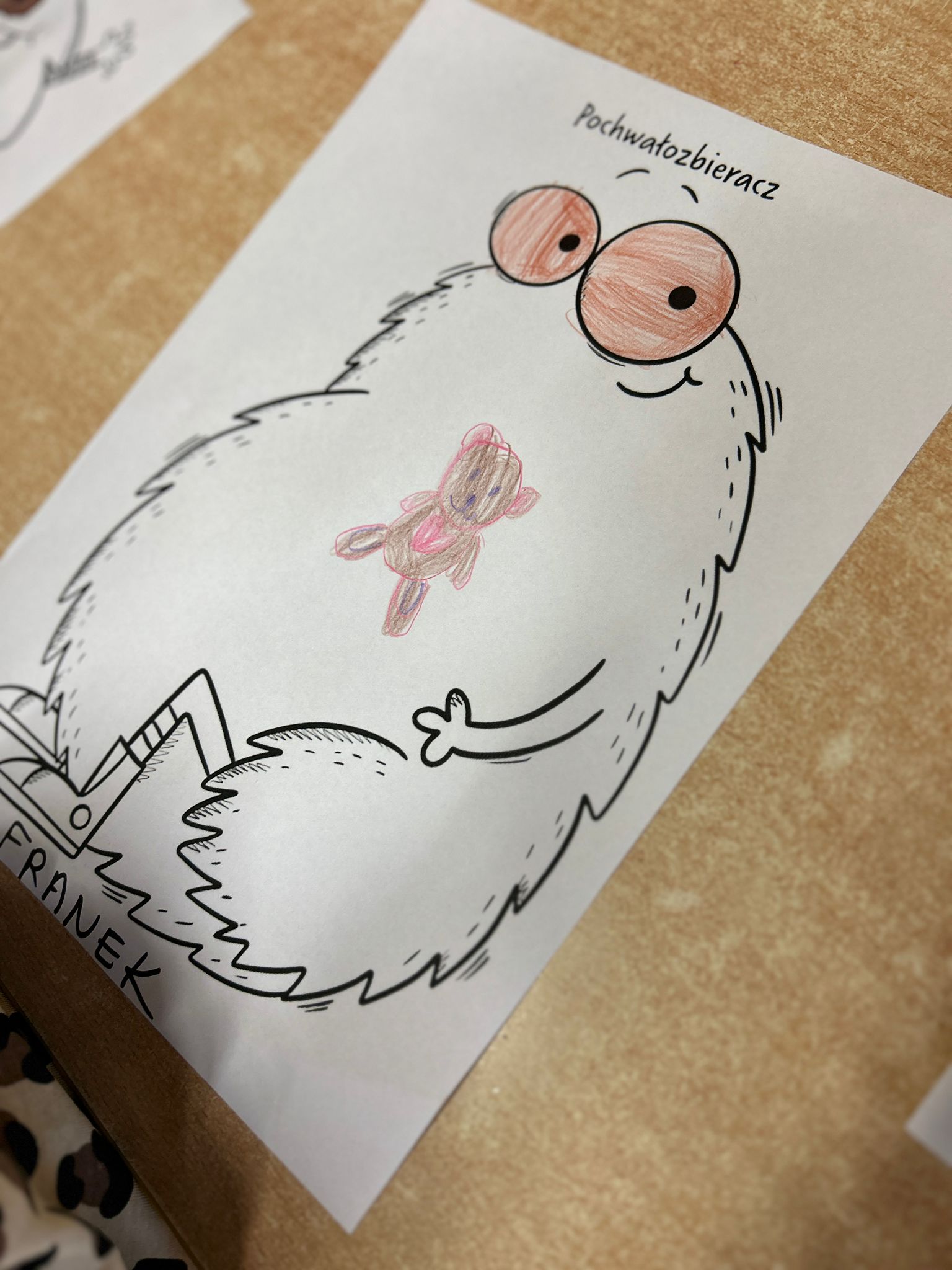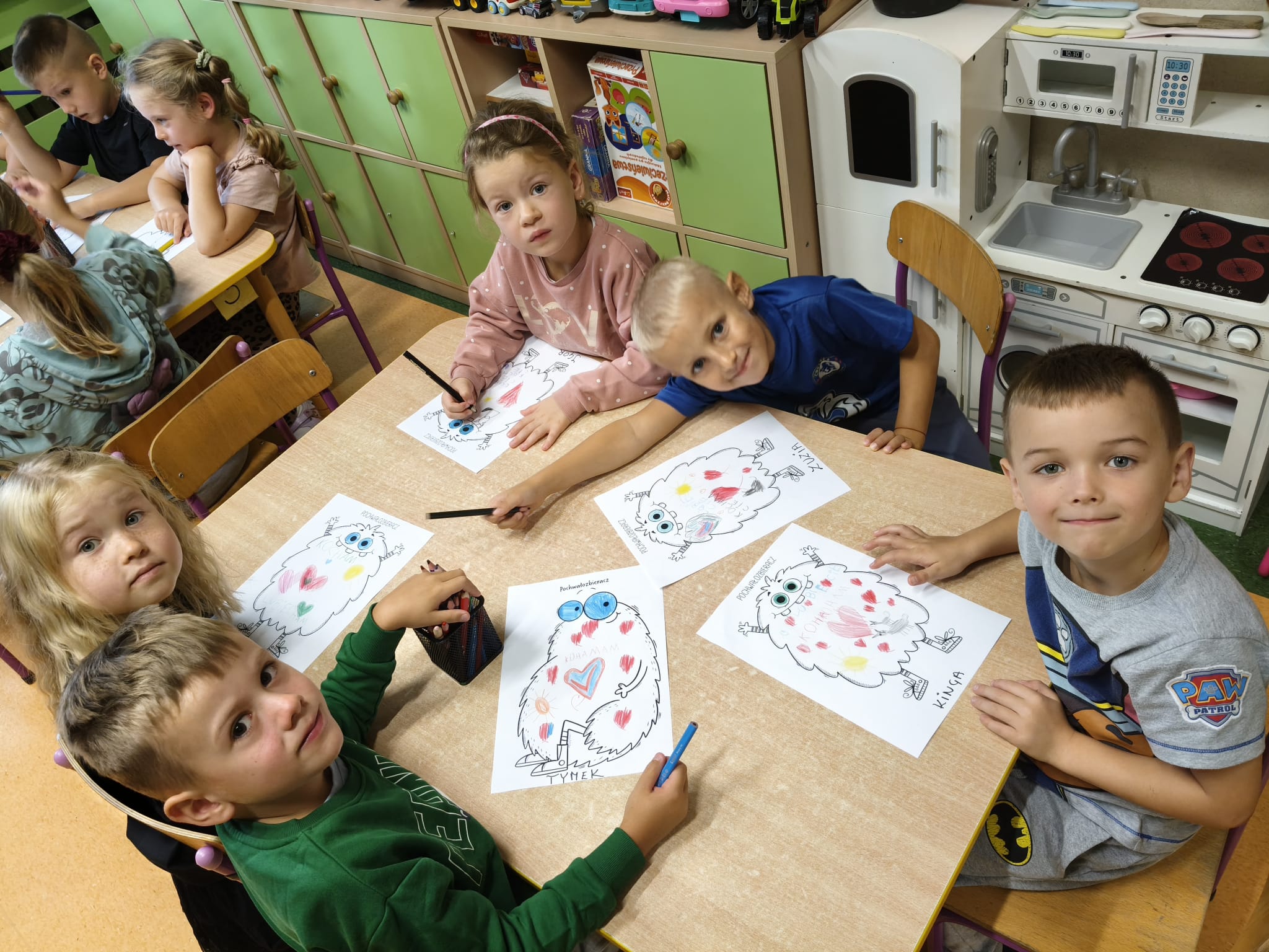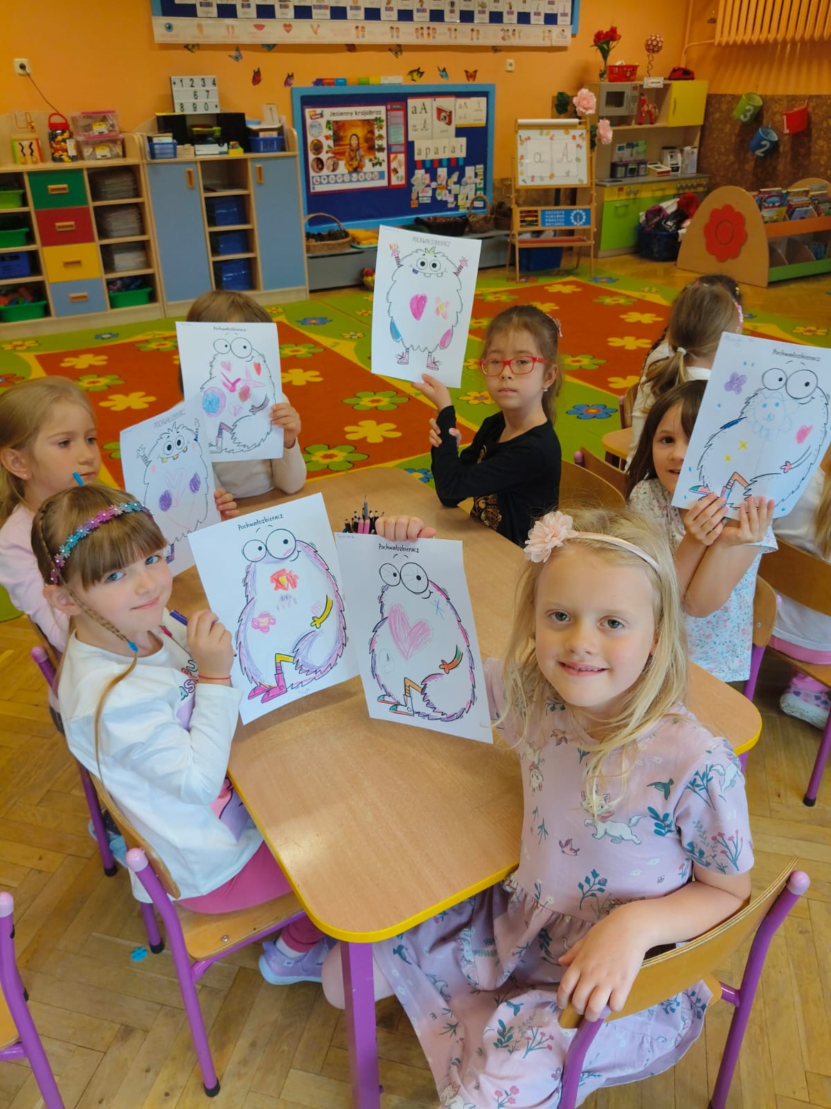- wymieniały się "pochwałozbieraczami", na których malowały coś miłego dla innych. Celem było nauczenie się, czym są miłe gesty i jak przyjemnie jest je otrzymywać.