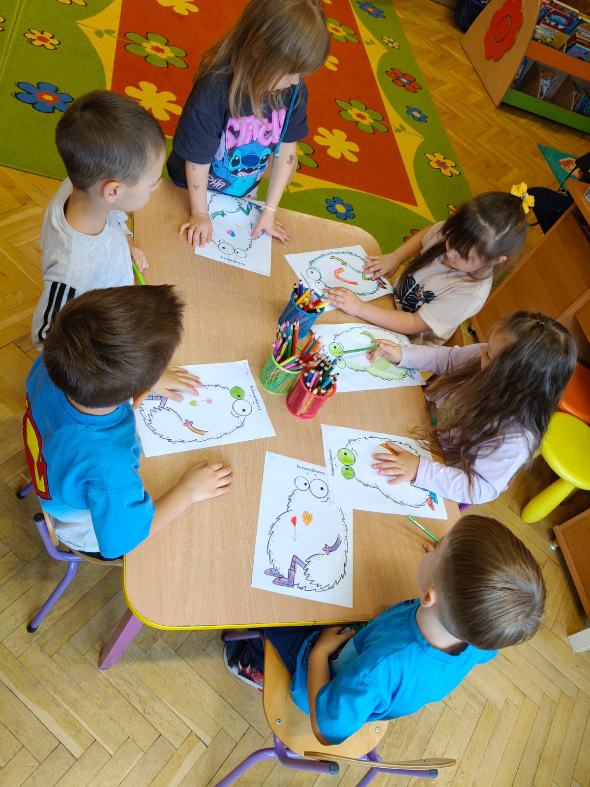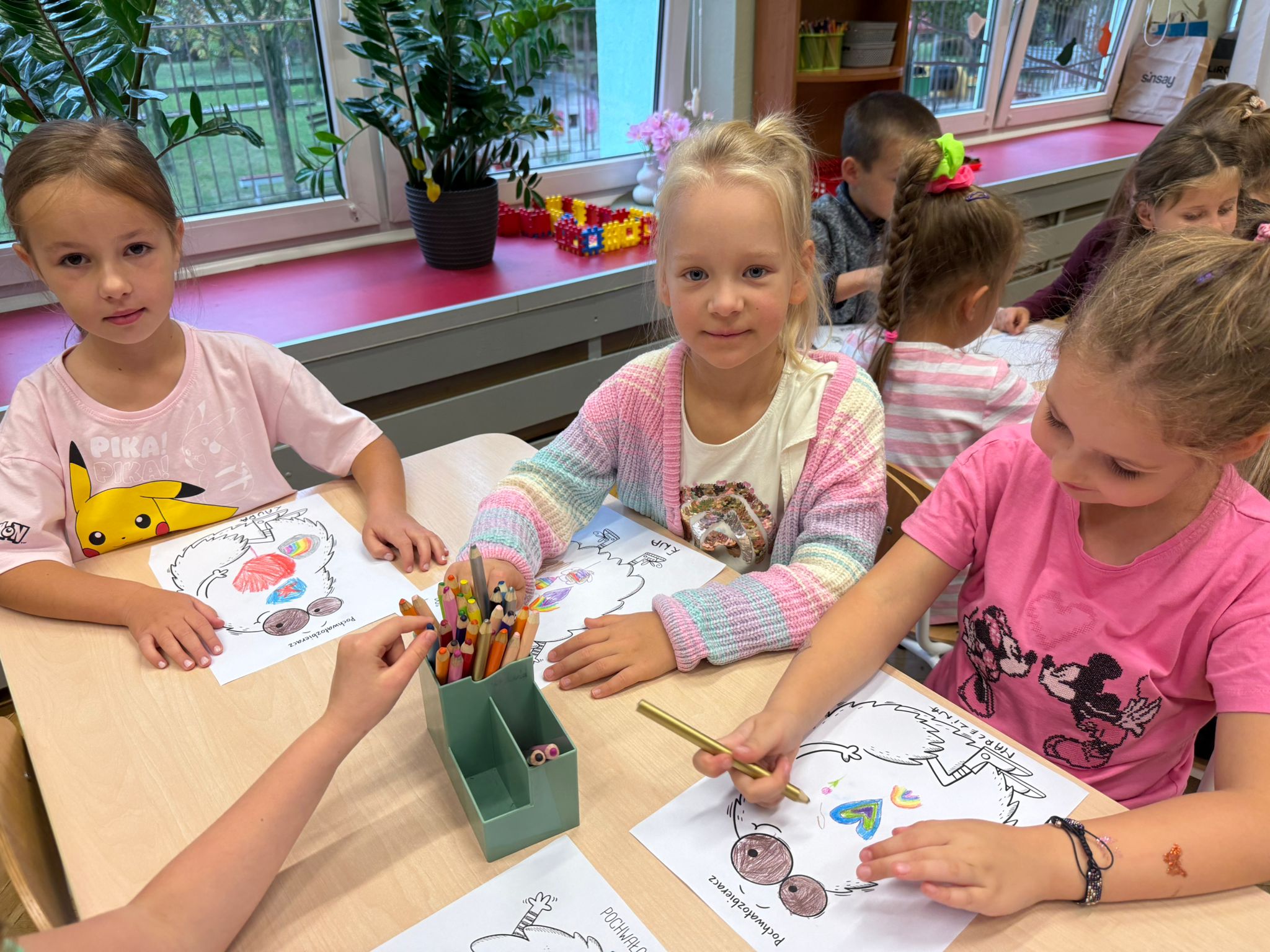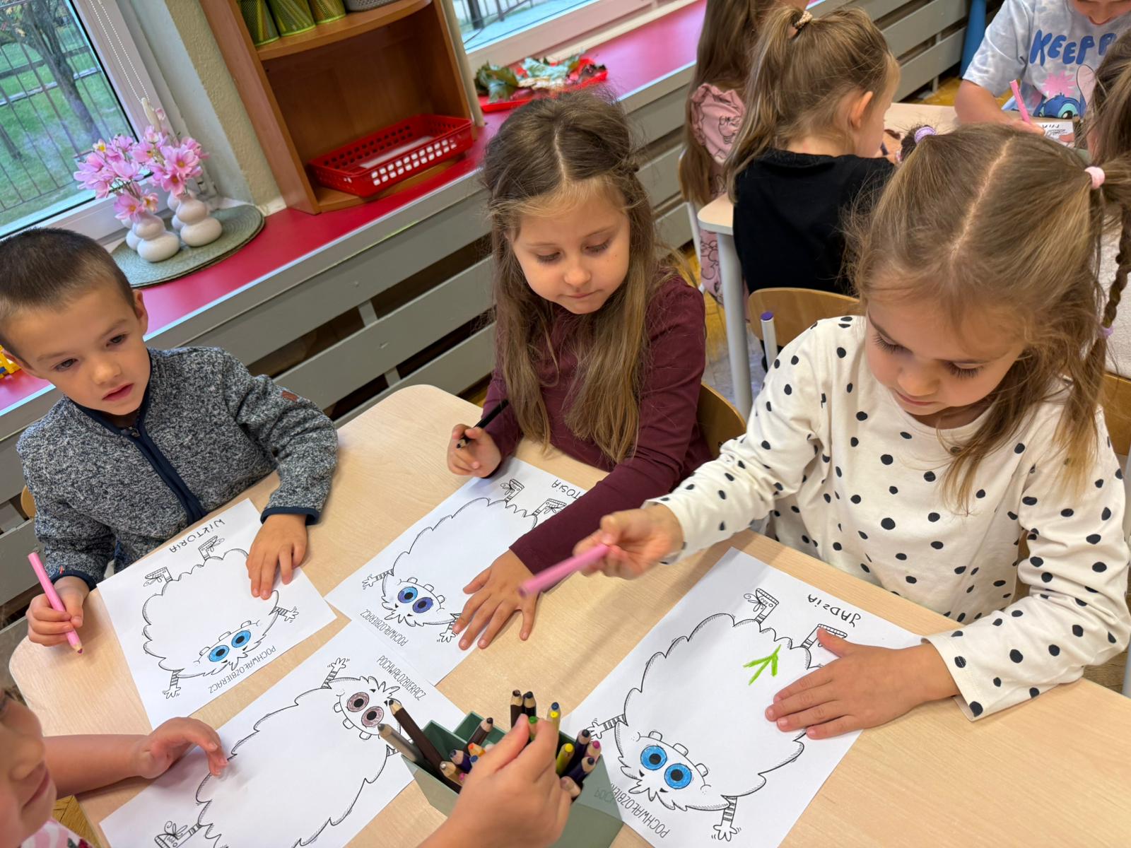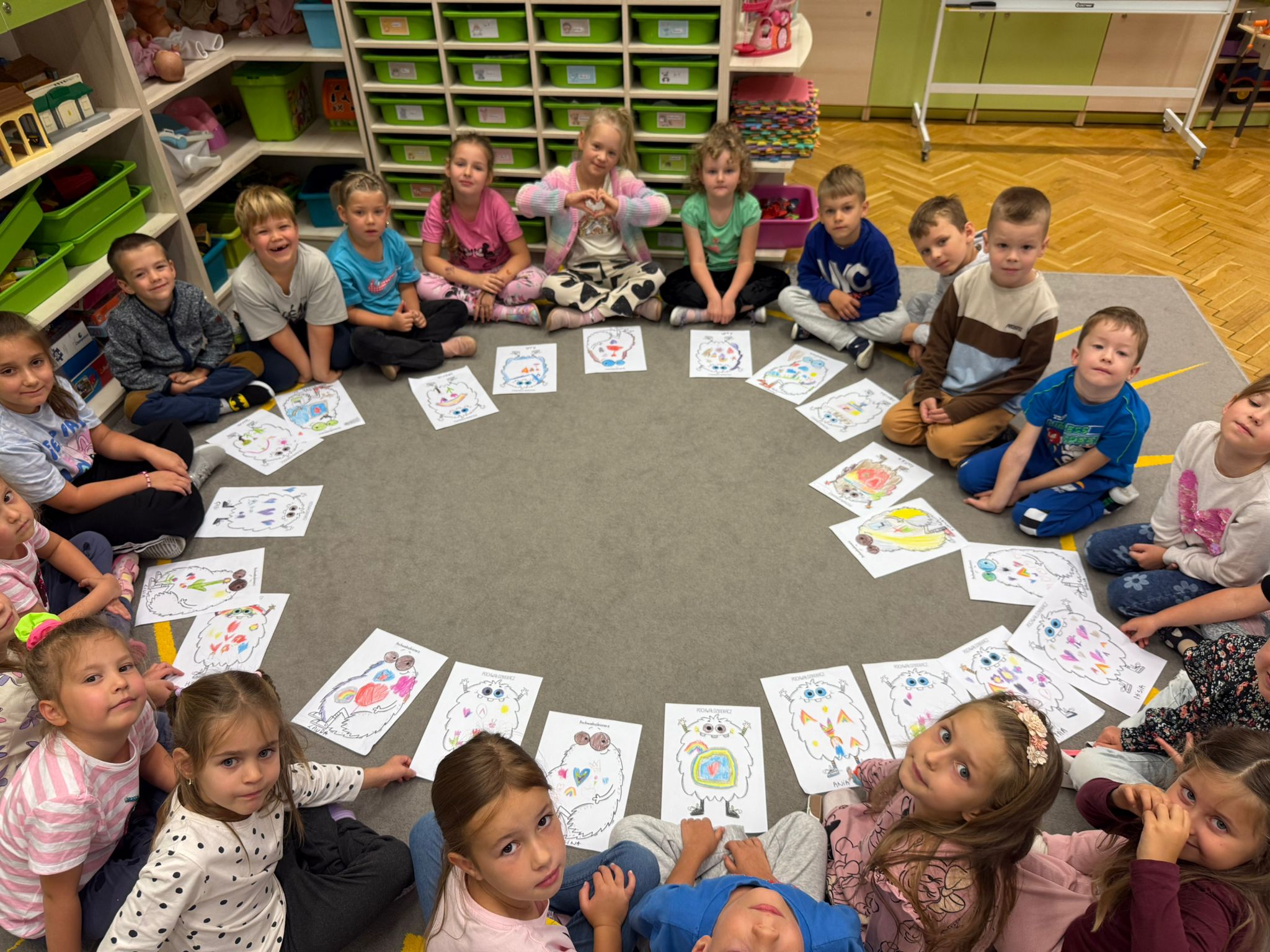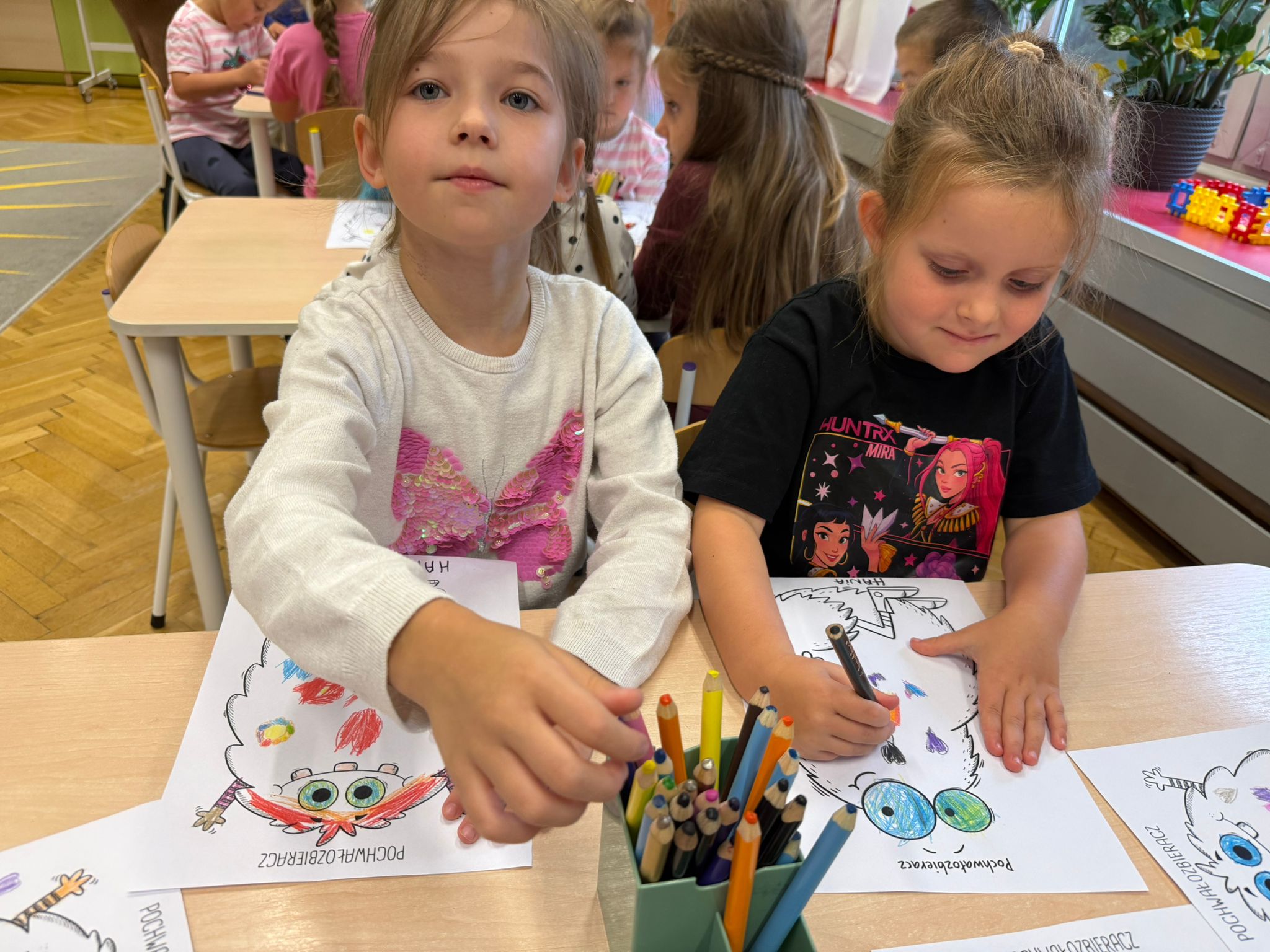 - wymieniały się "pochwałozbieraczami", na których malowały coś miłego dla innych. Celem było nauczenie się, czym są miłe gesty i jak przyjemnie jest je otrzymywać.