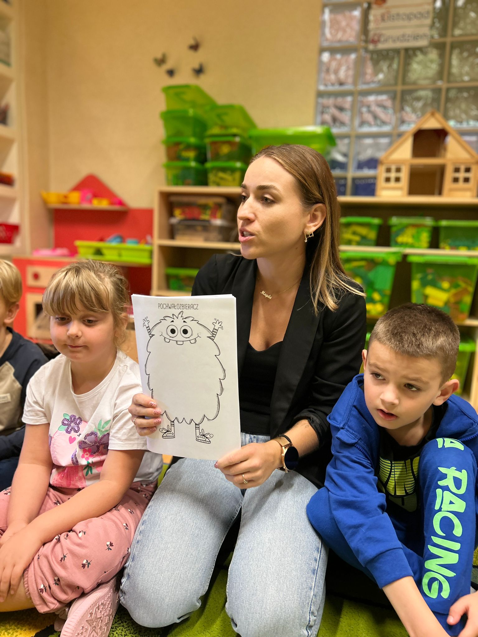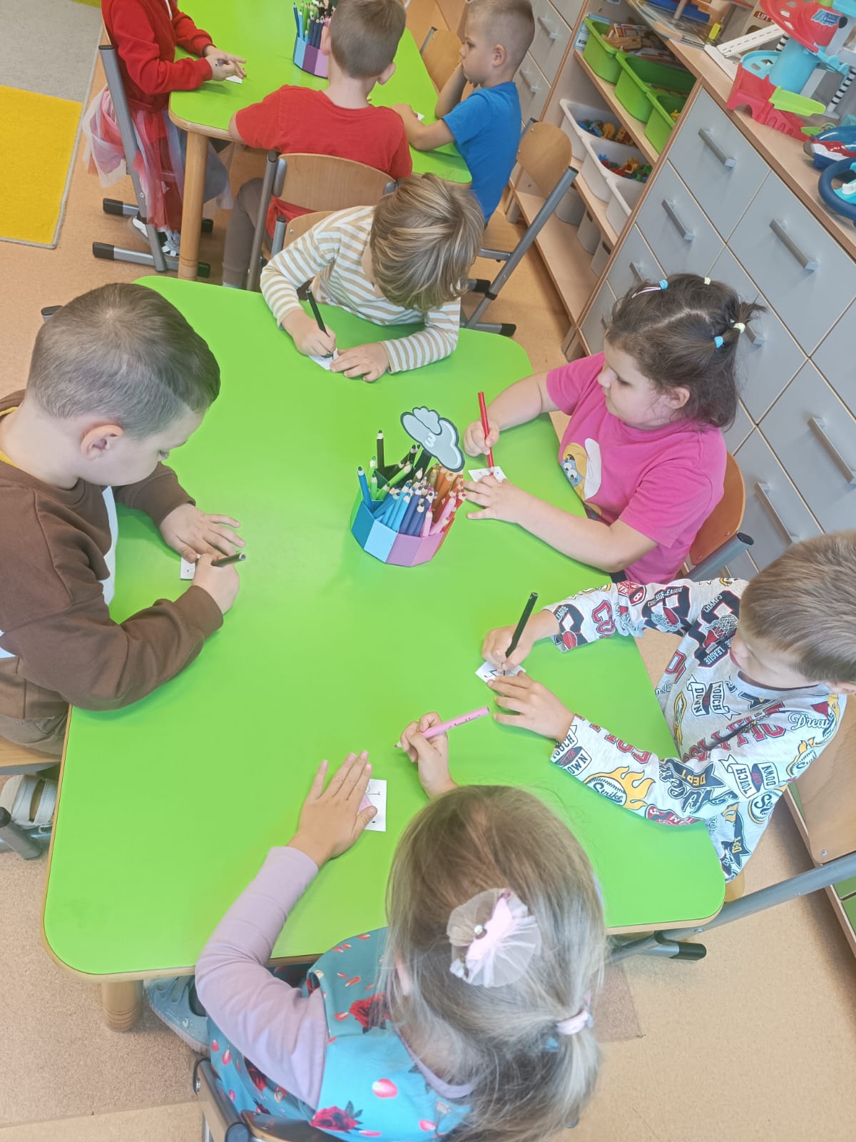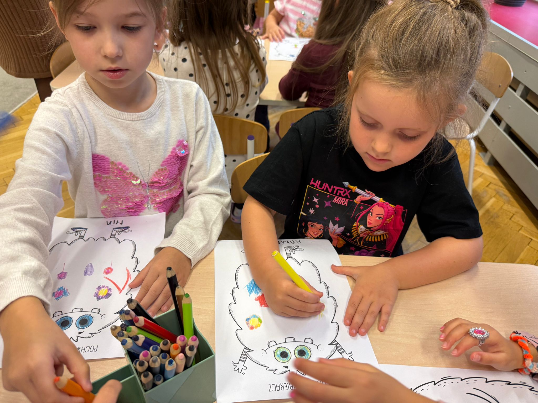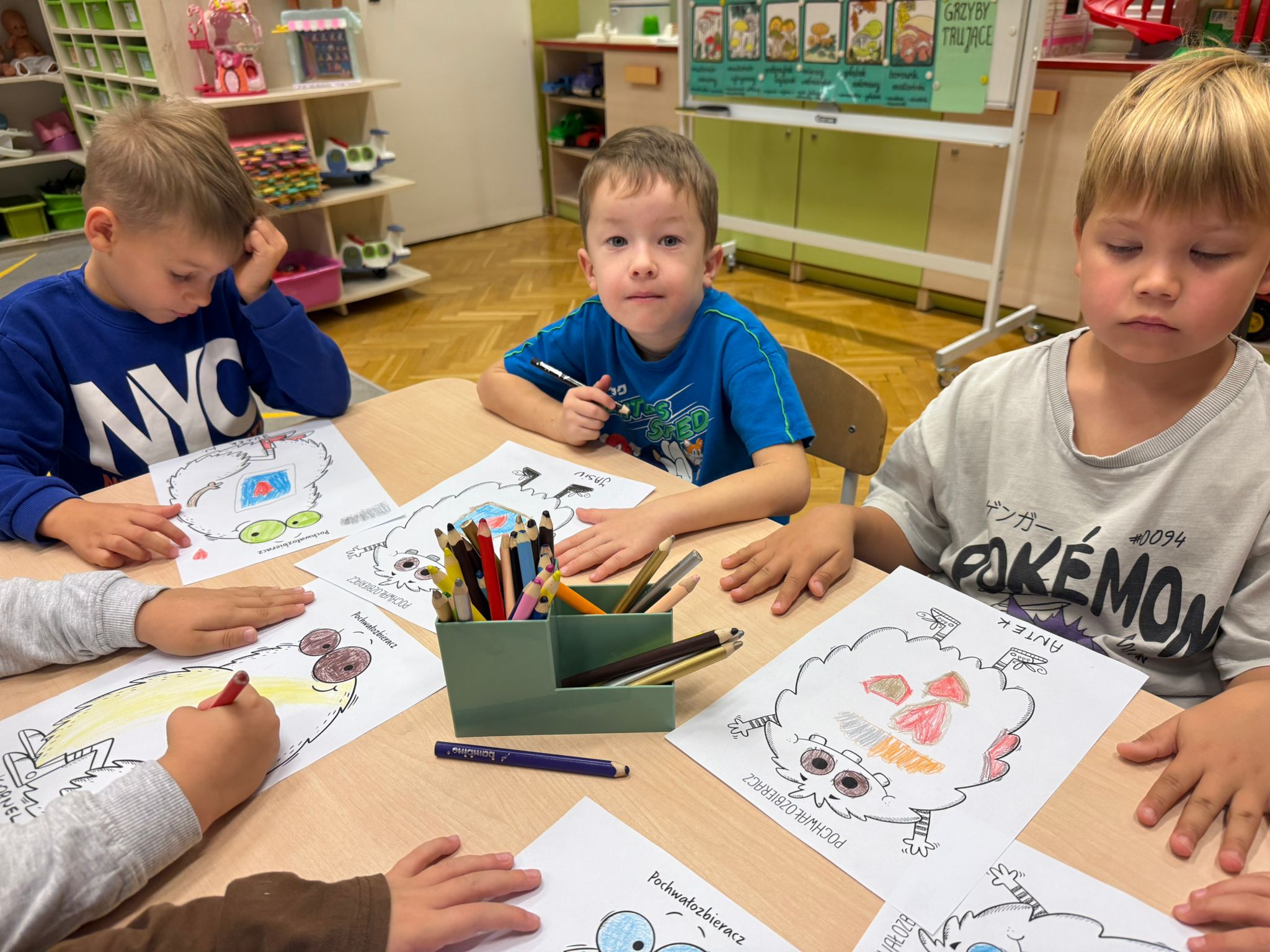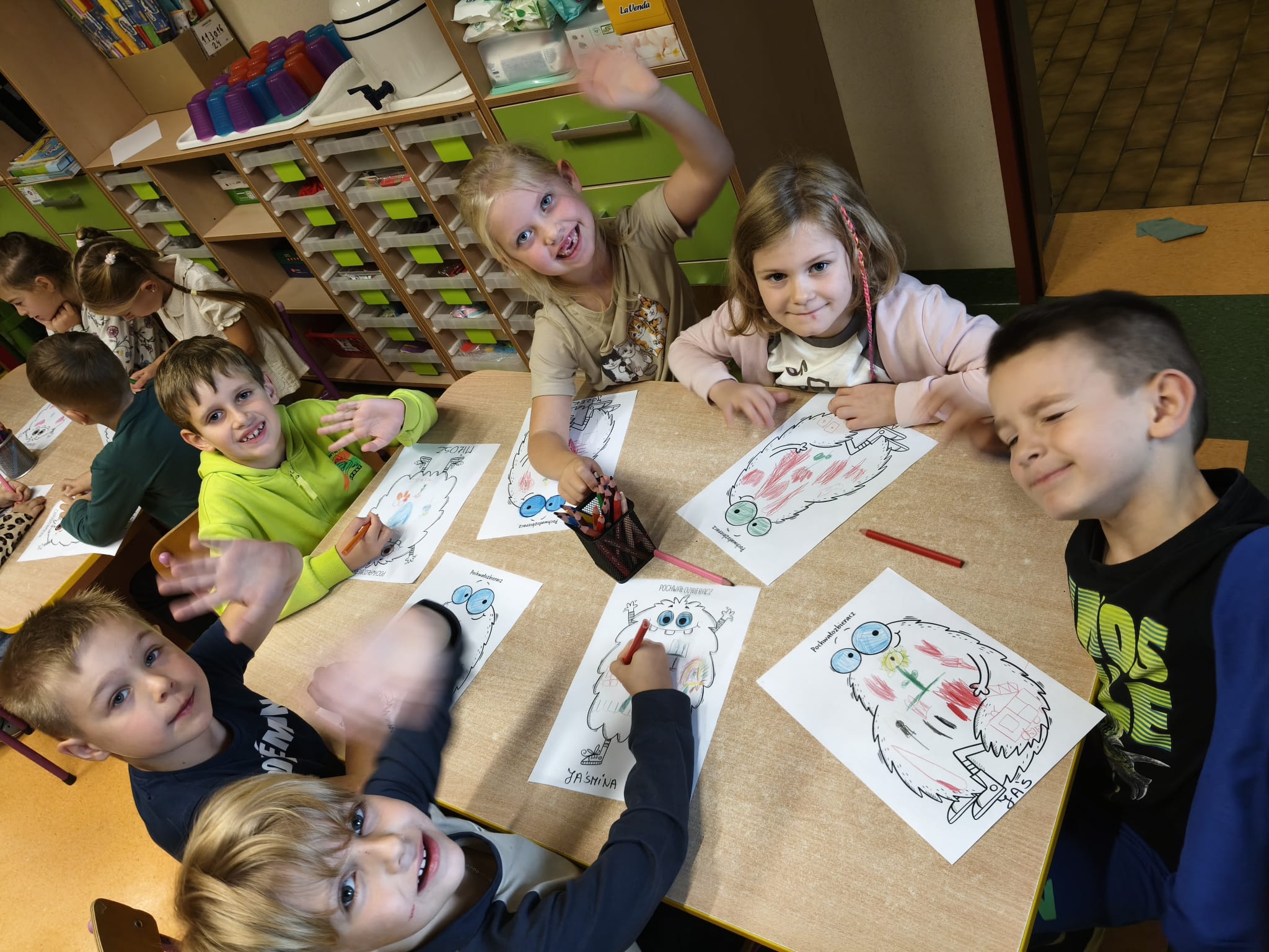 - wymieniały się "pochwałozbieraczami", na których malowały coś miłego dla innych. Celem było nauczenie się, czym są miłe gesty i jak przyjemnie jest je otrzymywać.