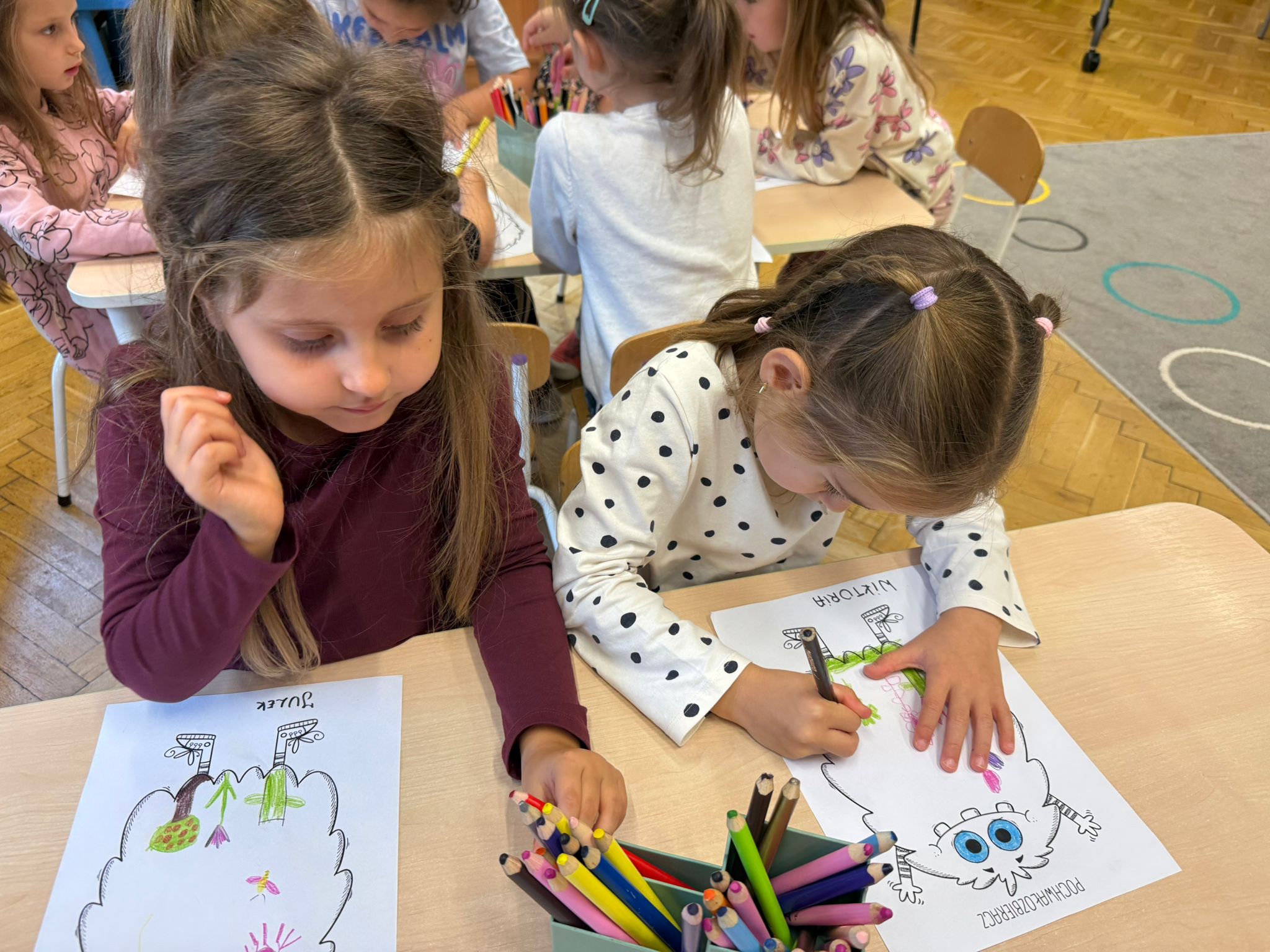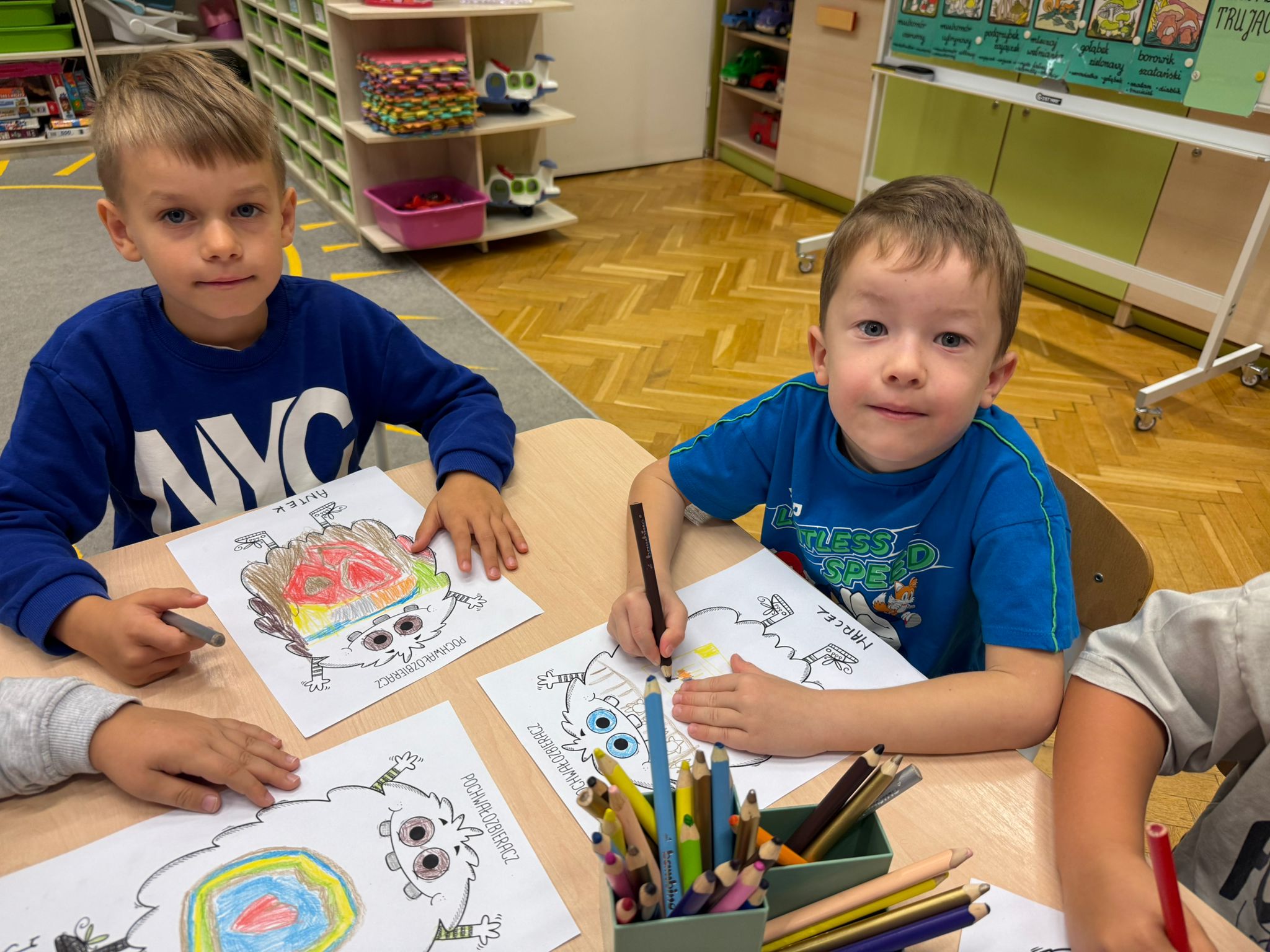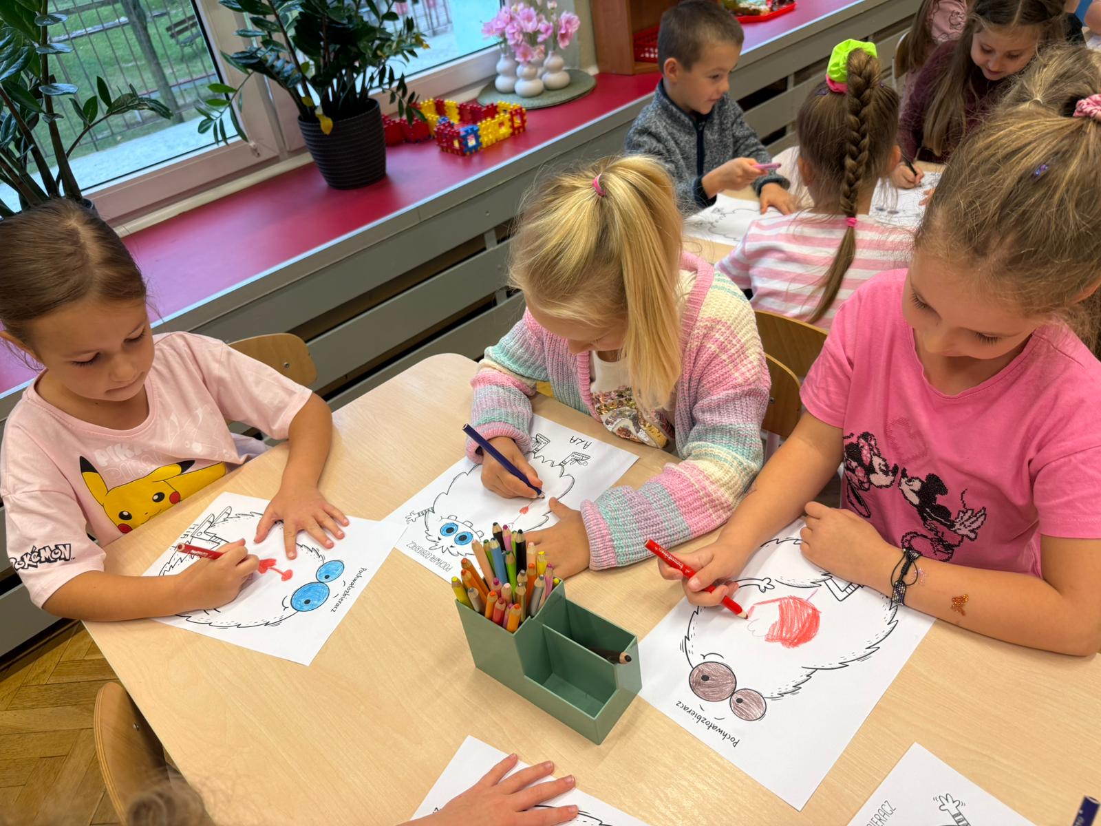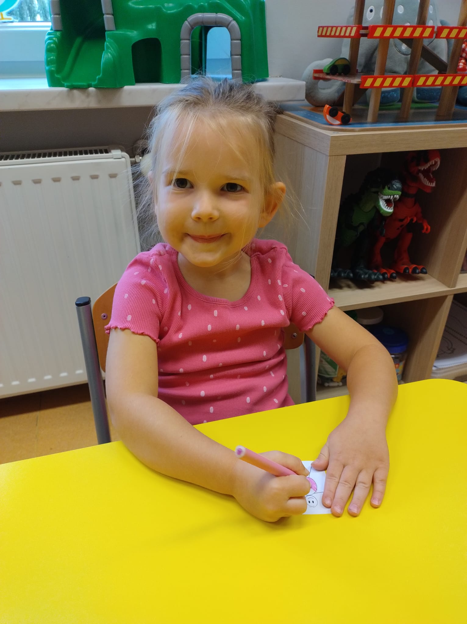 - wymieniały się "pochwałozbieraczami", na których malowały coś miłego dla innych. Celem było nauczenie się, czym są miłe gesty i jak przyjemnie jest je otrzymywać.