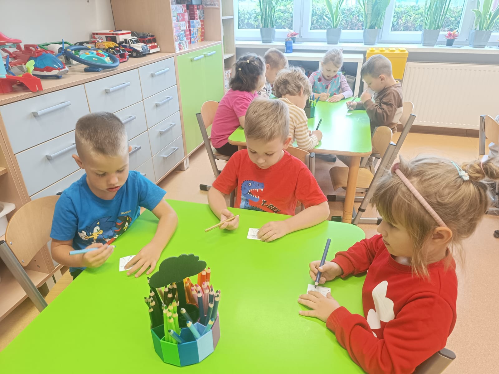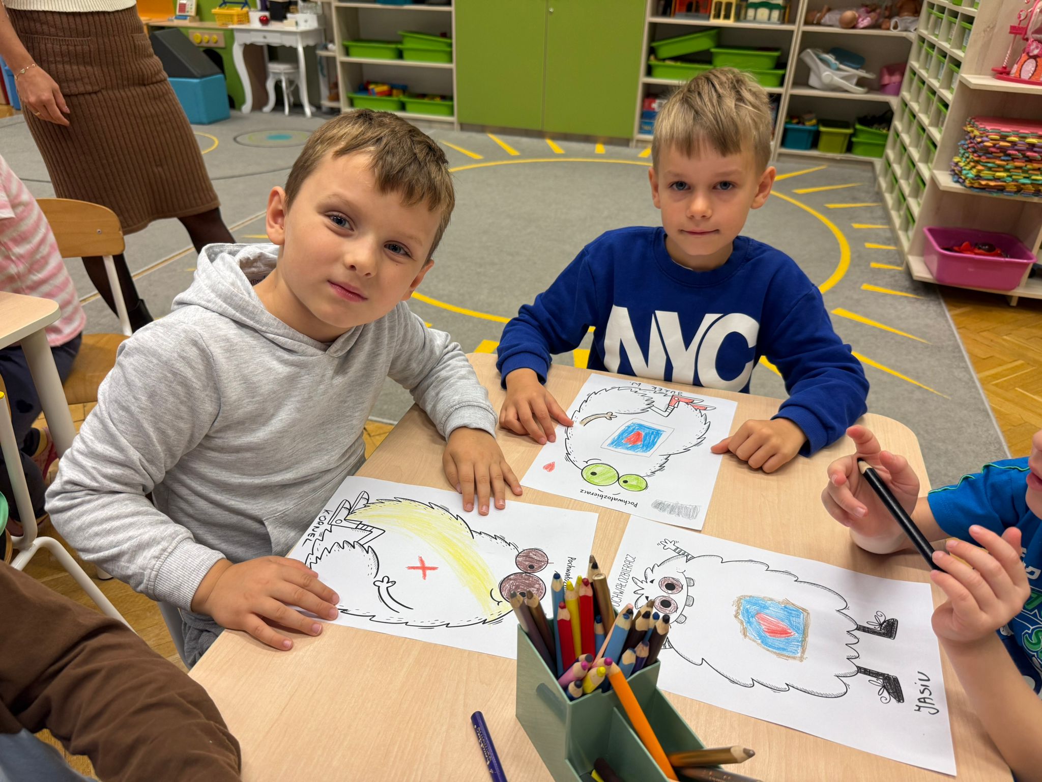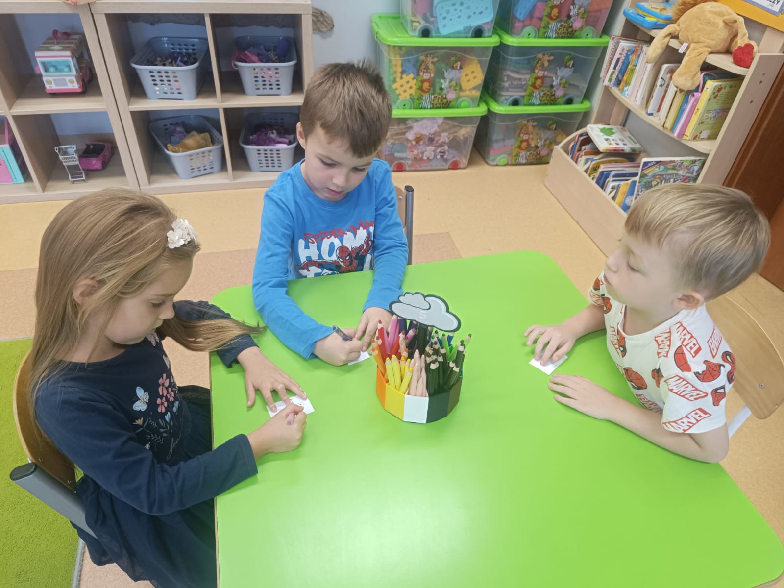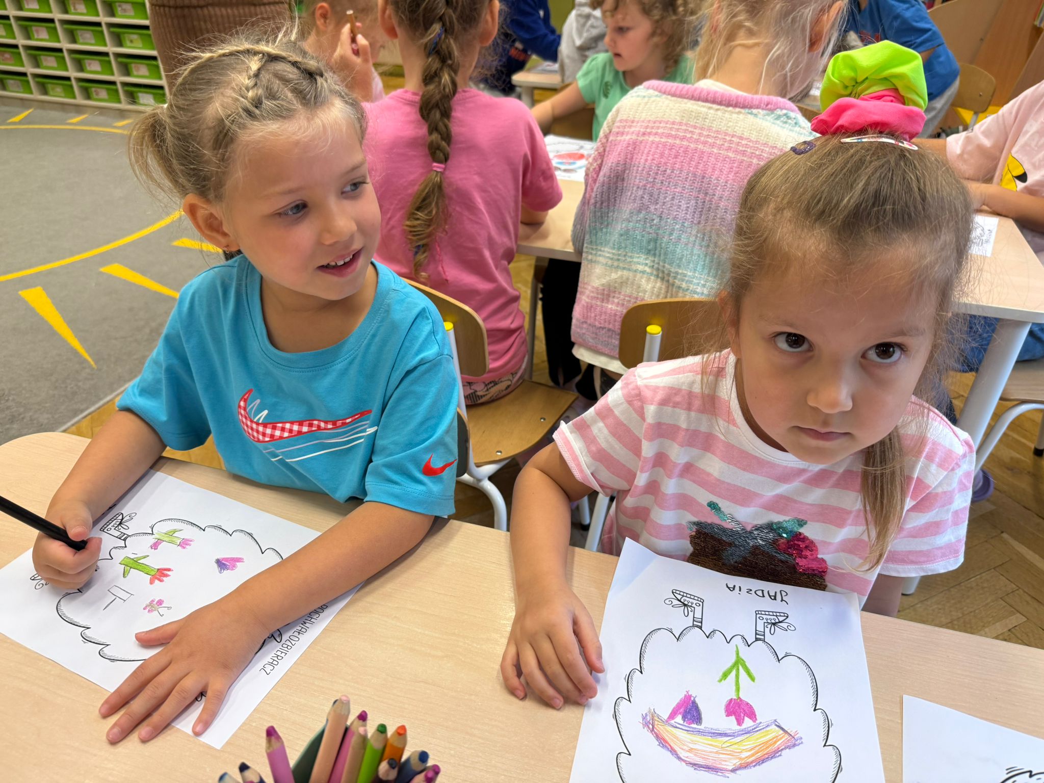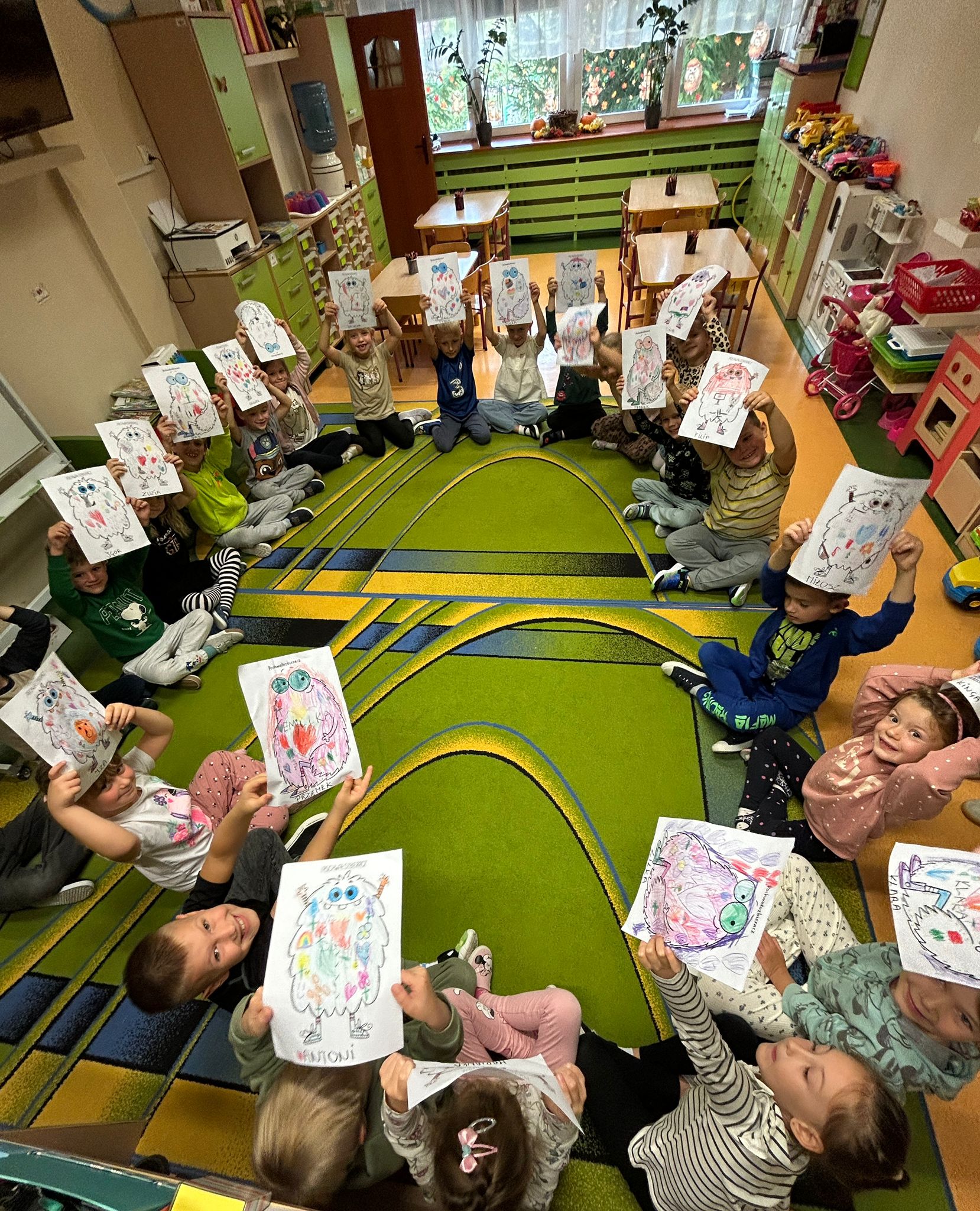 - wymieniały się "pochwałozbieraczami", na których malowały coś miłego dla innych. Celem było nauczenie się, czym są miłe gesty i jak przyjemnie jest je otrzymywać.