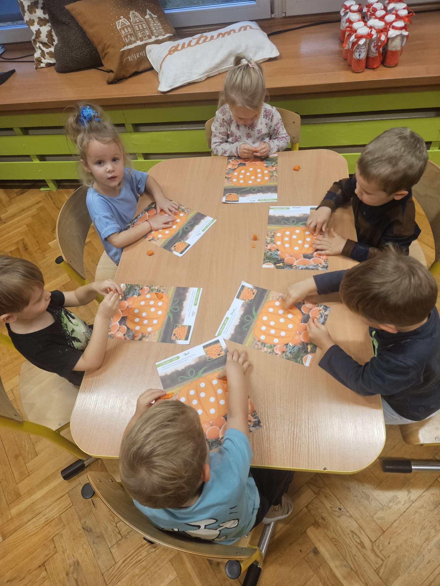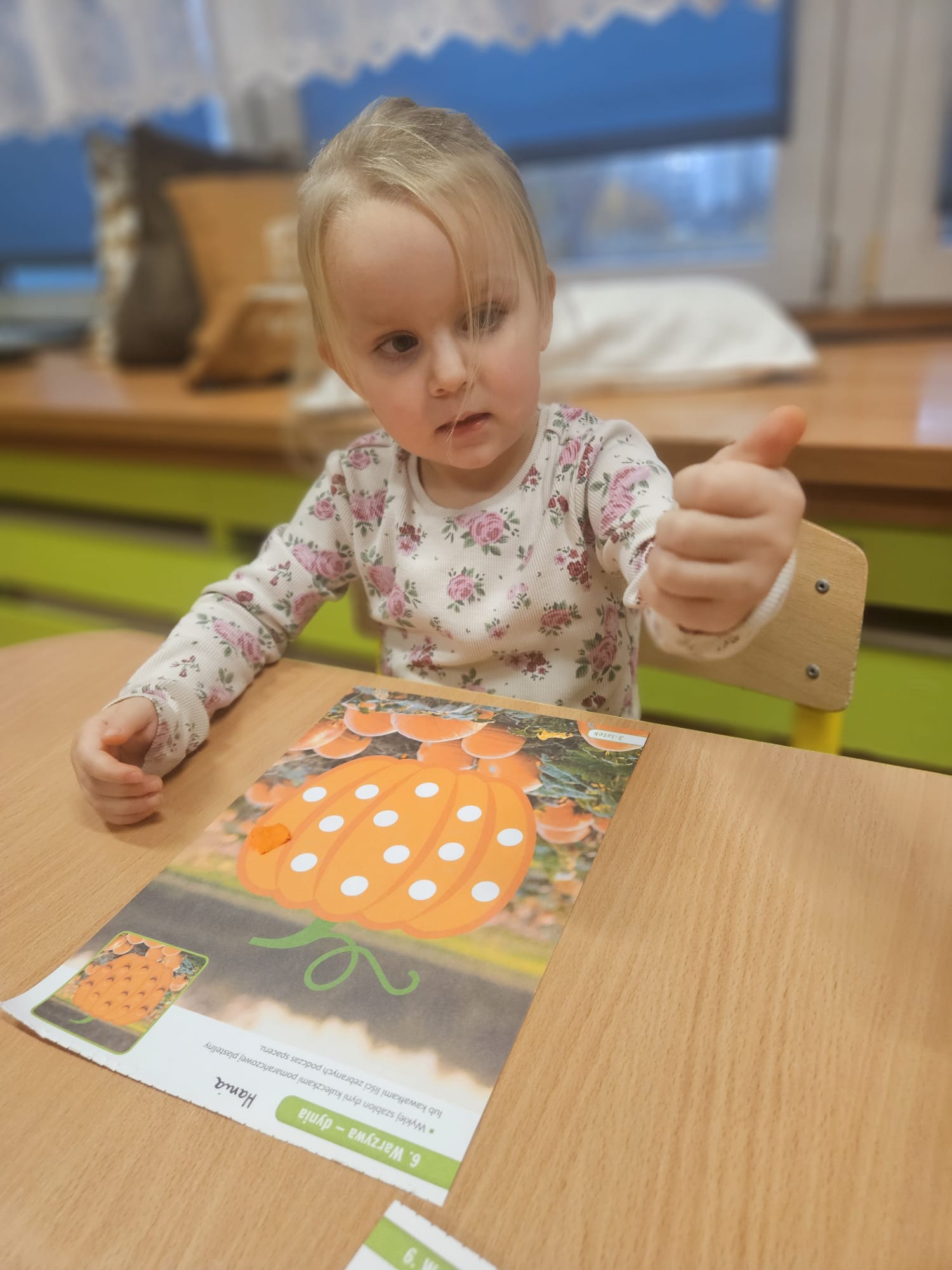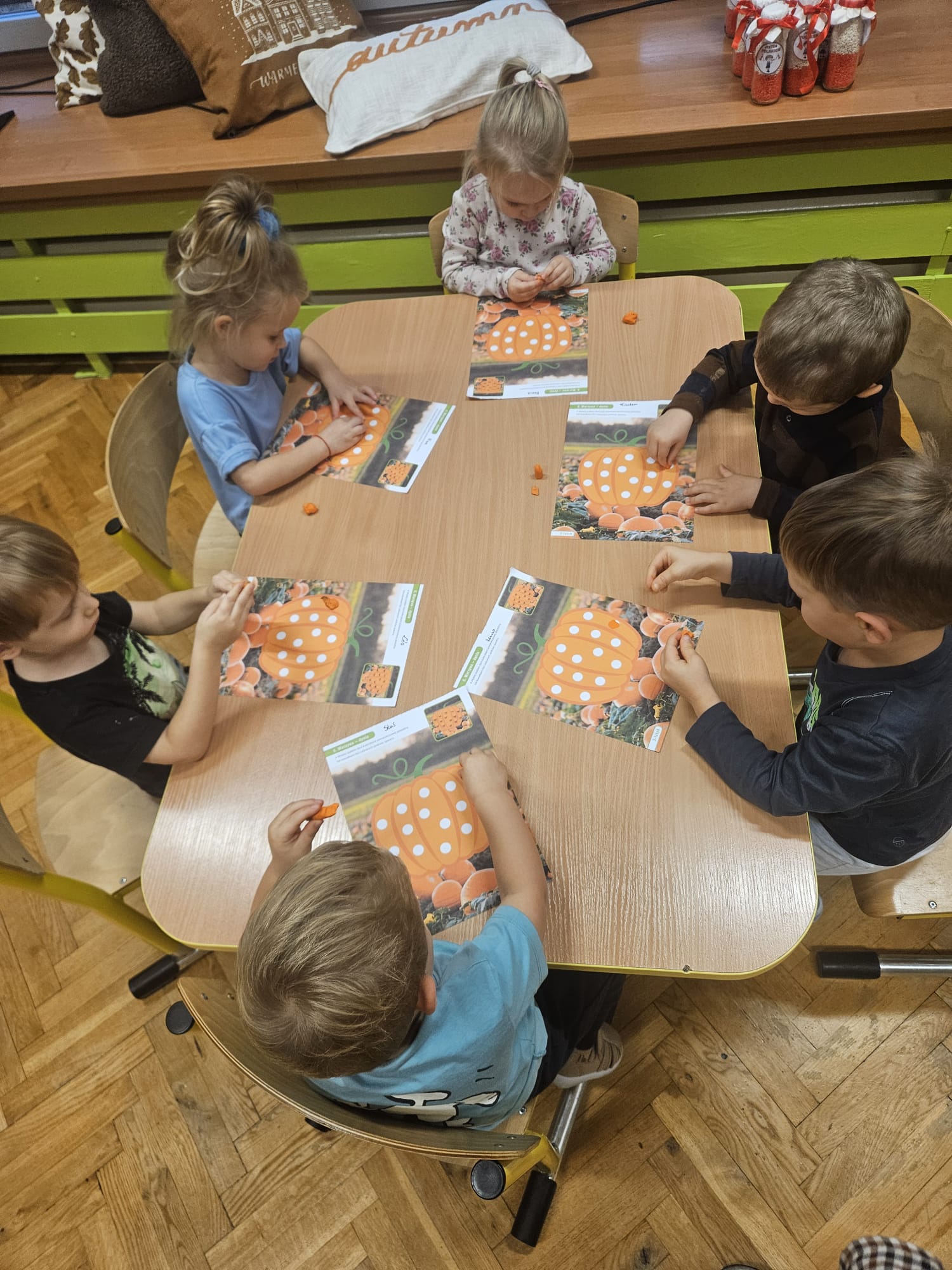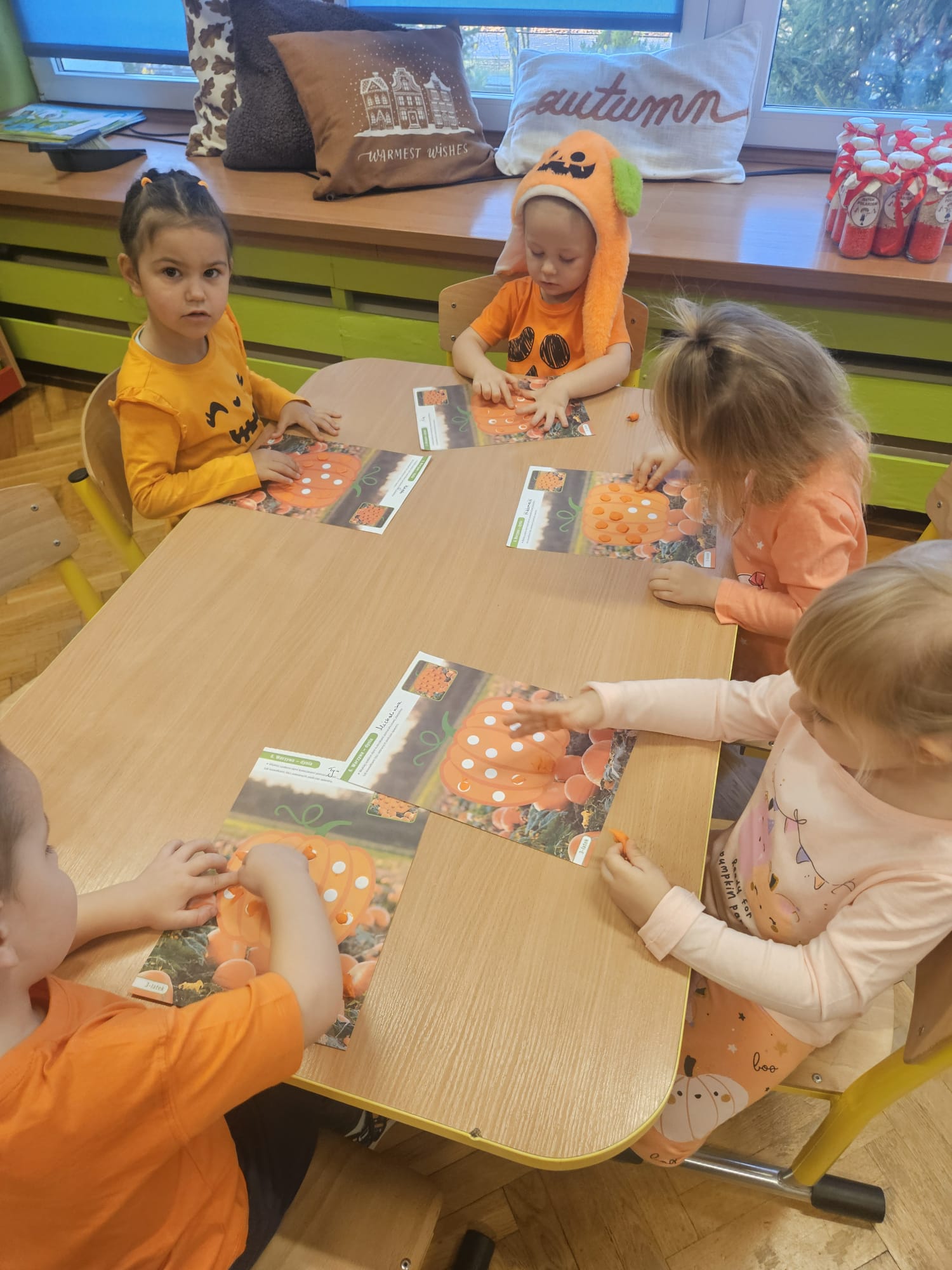 W dniu 31 października w grupie VII odbyła się wyjątkowa sesja zdjęciowa z okazji Dnia Dyni. Dzieci przyszły do przedszkola ubrane w pomarańczowe stroje oraz dyniowe akcesoria, które wprowadziły wszystkich w jesienny nastrój. W tle znalazły się jesienne dekoracje: kolorowe liście, dynie różnych rozmiarów przyniesione przez dzieci. Celem wydarzenia było utrwalenie wspólnych chwil oraz rozwijanie poczucia przynależności do grupy.