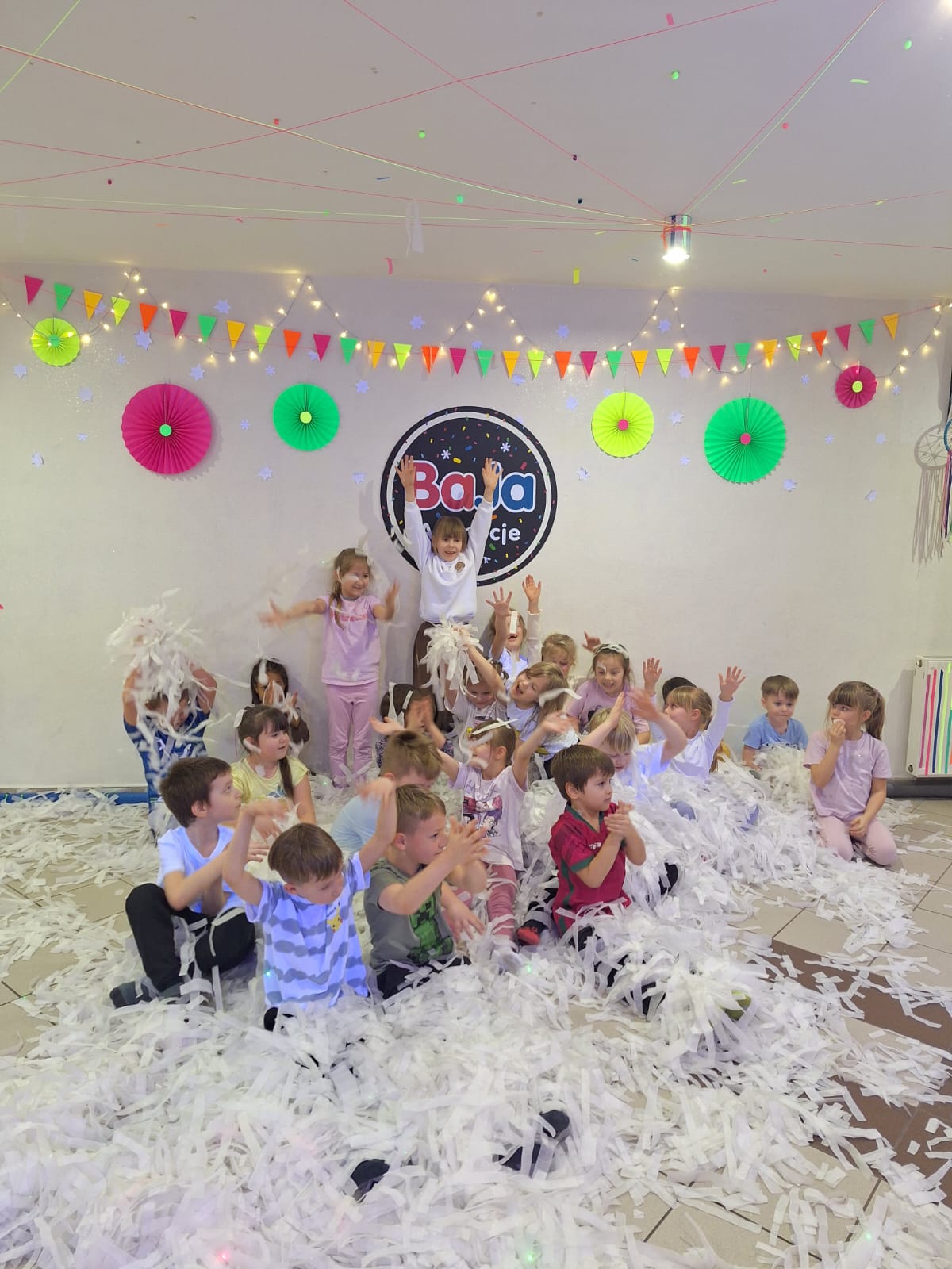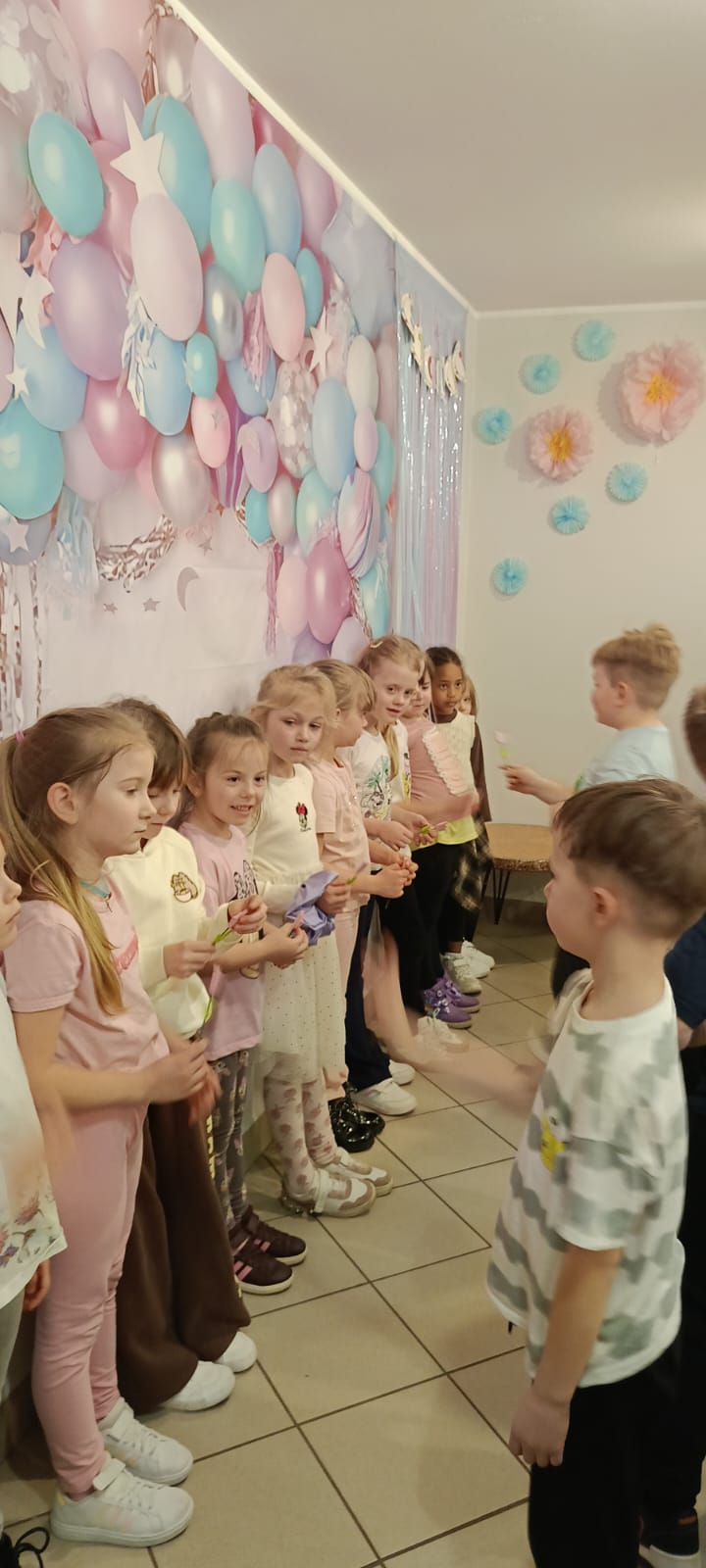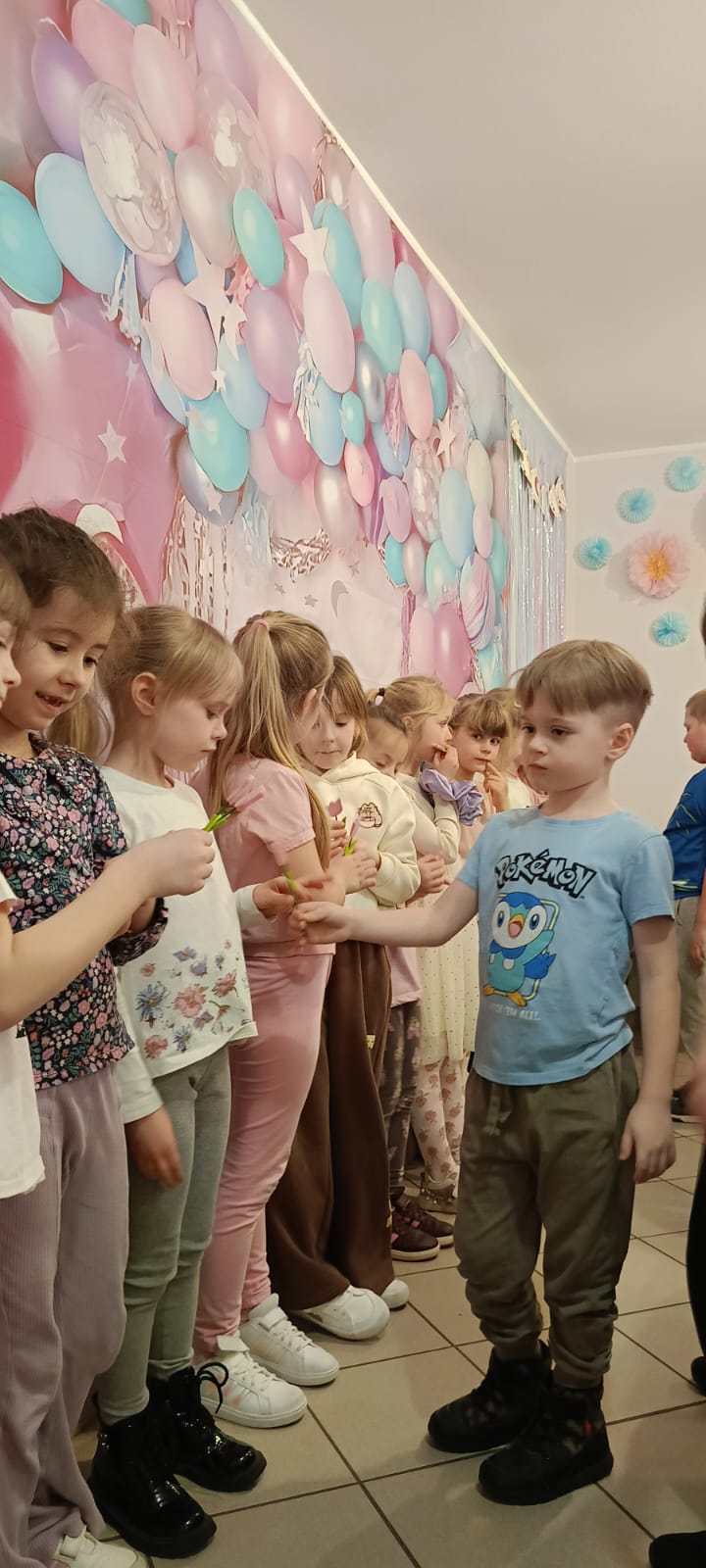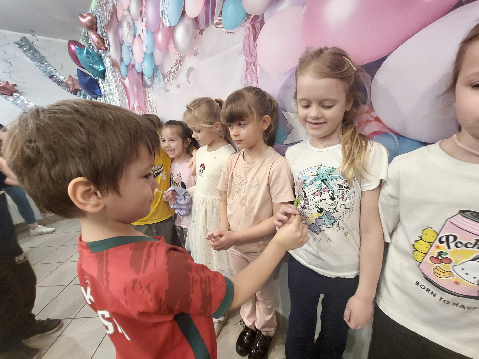 Dzień Kobiet w przedszkolu to wyjątkowa okazja do budowania wśród najmłodszych postaw szacunku, życzliwości i empatii. Choć 8 marca kojarzy się głównie z kwiatami i drobnymi upominkami, w przestrzeni przedszkolnej może stać się inspirującym dniem pełnym rozmów, zabawy i twórczych aktywności. Dziewczynki i chłopcy z grupy V dziś wybrały się do sali animacyjnej BaJa w Koninie. Był to dzień pełen wrażeń, wspólnych atrakcji i świetnej muzycznej zabawy. Dzieci wykonały swojego piankoslajma, którego mogły zabrać do domu, była biała taneczna dyskoteka, zabawy z piłkami i ,,różową panterą”, na koniec chłopcy złożyli dziewczynkom serdeczne życzenia i wręczyli im pięknego tulipanka. Był to bardzo miły moment, który wywołał wiele uśmiechów. Dzień Kobie to nie tylko święto dziewczynek, ale moment, w którym uczymy dzieci wzajemnego doceniania, współpracy i uprzejmości wobec siebie nawzajem. Ten dzień na pewno na długo zostanie w pamięci starszaków.