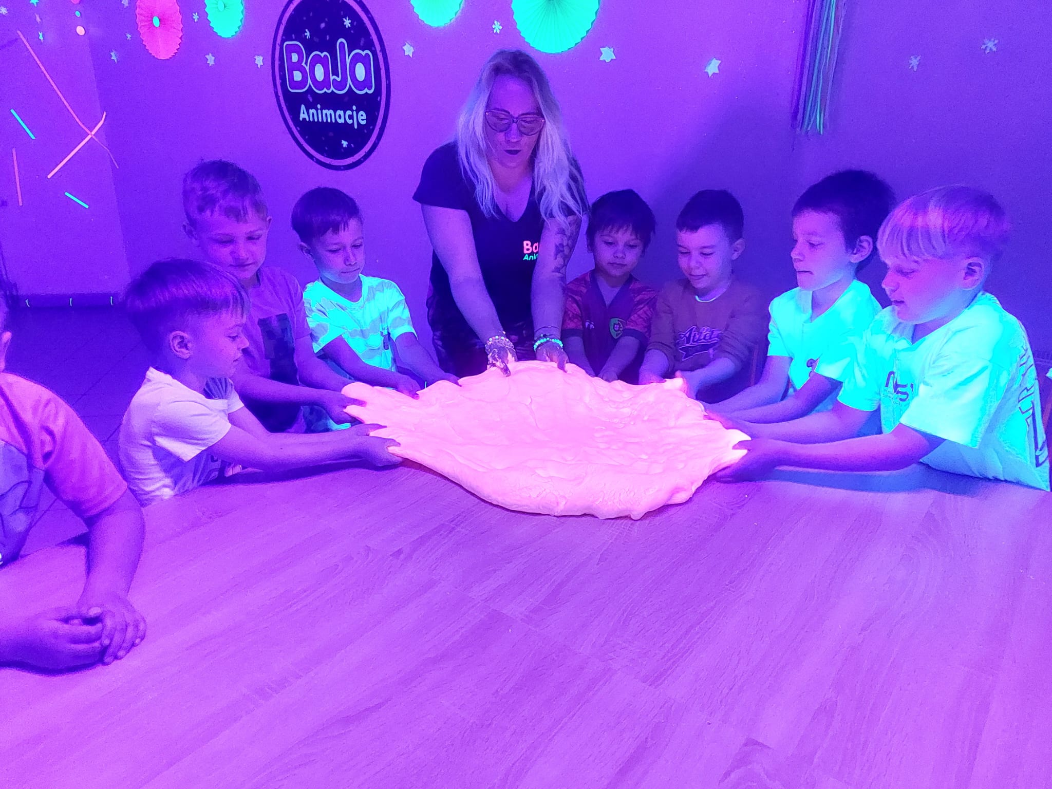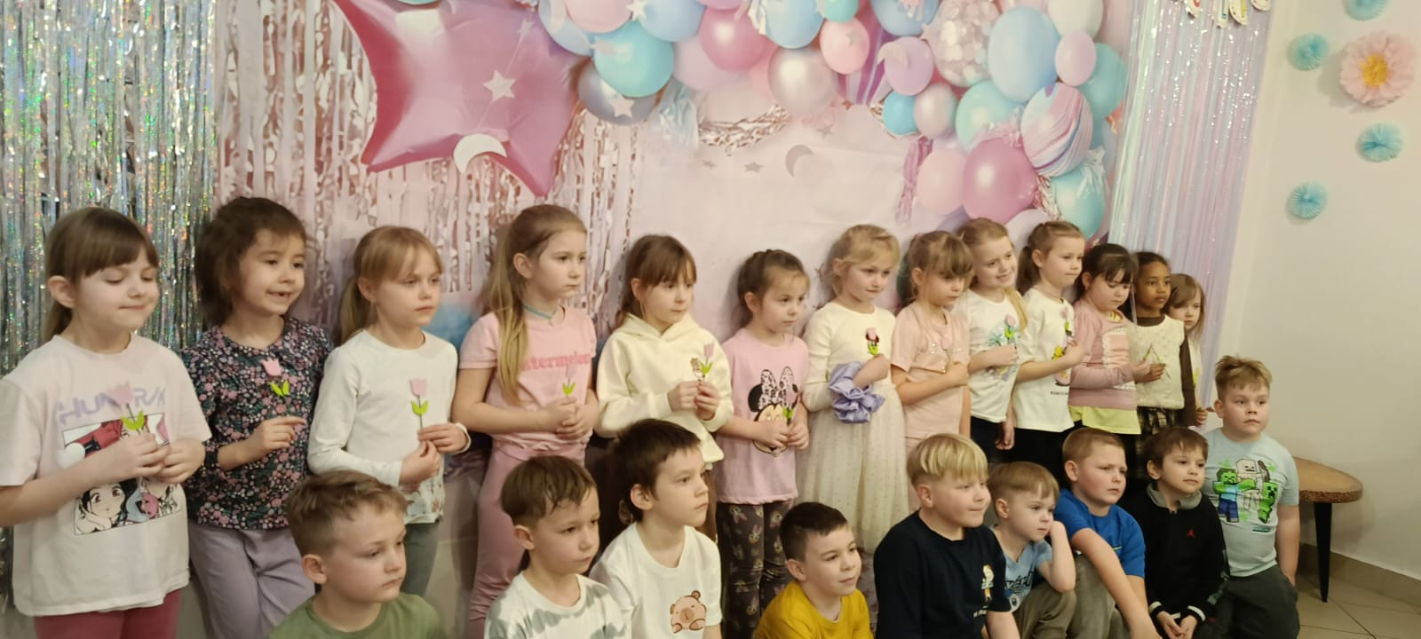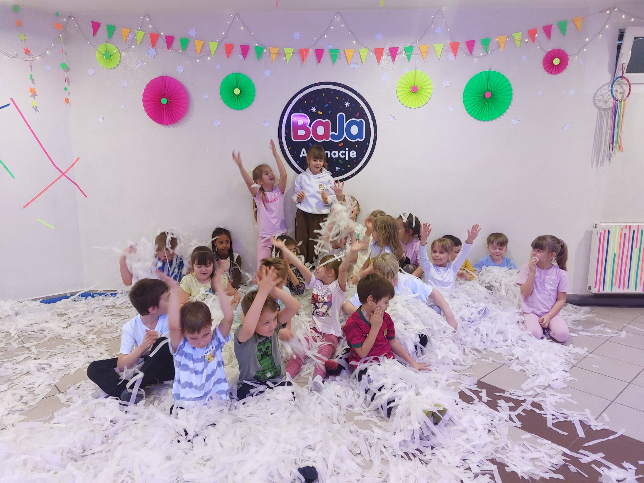 Dzień Kobiet w przedszkolu to wyjątkowa okazja do budowania wśród najmłodszych postaw szacunku, życzliwości i empatii. Choć 8 marca kojarzy się głównie z kwiatami i drobnymi upominkami, w przestrzeni przedszkolnej może stać się inspirującym dniem pełnym rozmów, zabawy i twórczych aktywności. Dziewczynki i chłopcy z grupy V dziś wybrały się do sali animacyjnej BaJa w Koninie. Był to dzień pełen wrażeń, wspólnych atrakcji i świetnej muzycznej zabawy. Dzieci wykonały swojego piankoslajma, którego mogły zabrać do domu, była biała taneczna dyskoteka, zabawy z piłkami i ,,różową panterą”, na koniec chłopcy złożyli dziewczynkom serdeczne życzenia i wręczyli im pięknego tulipanka. Był to bardzo miły moment, który wywołał wiele uśmiechów. Dzień Kobie to nie tylko święto dziewczynek, ale moment, w którym uczymy dzieci wzajemnego doceniania, współpracy i uprzejmości wobec siebie nawzajem. Ten dzień na pewno na długo zostanie w pamięci starszaków.