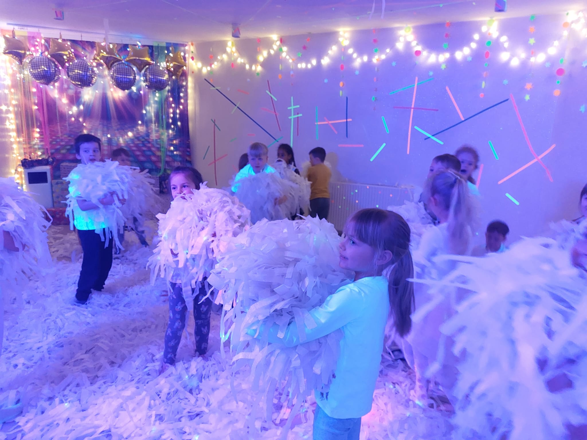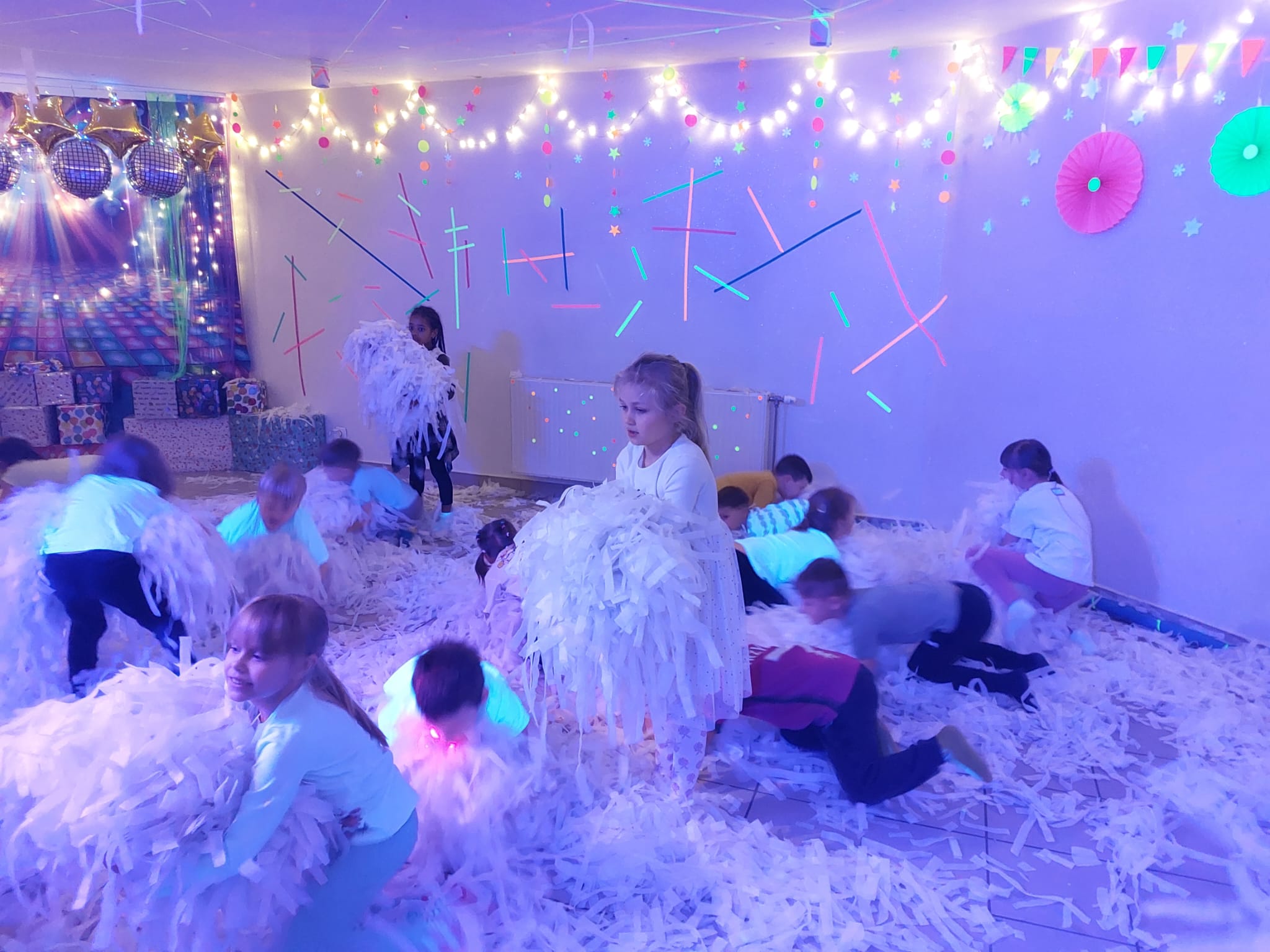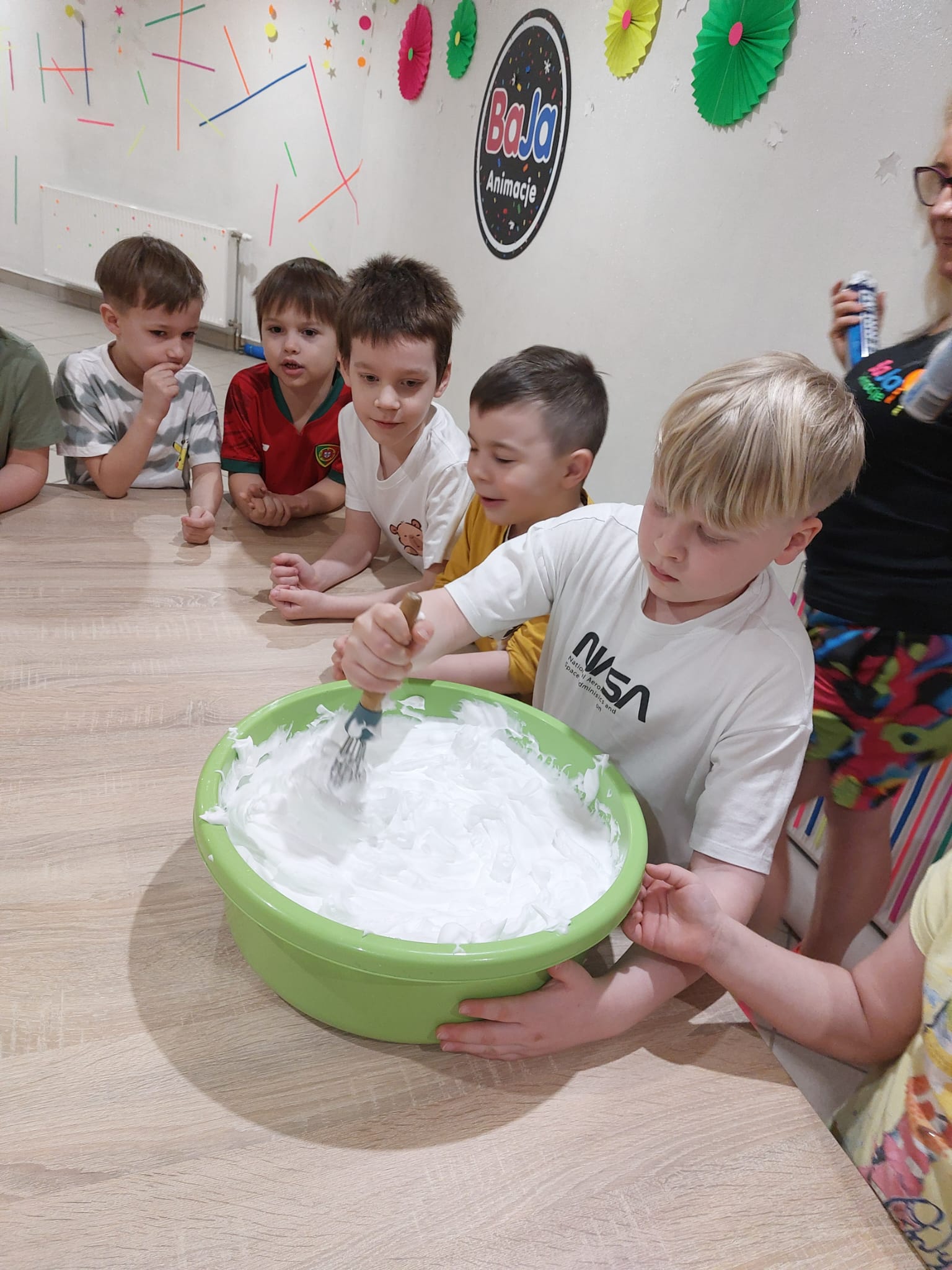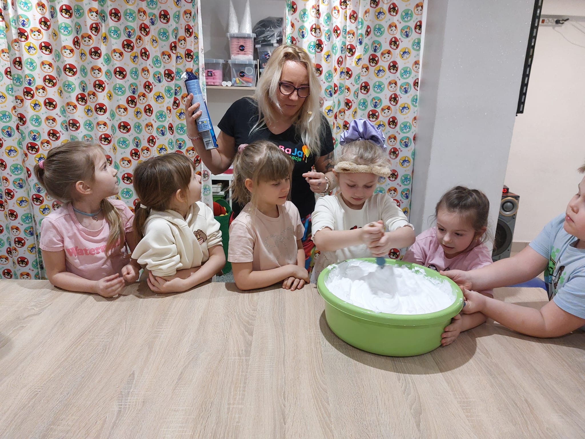 Dzień Kobiet w przedszkolu to wyjątkowa okazja do budowania wśród najmłodszych postaw szacunku, życzliwości i empatii. Choć 8 marca kojarzy się głównie z kwiatami i drobnymi upominkami, w przestrzeni przedszkolnej może stać się inspirującym dniem pełnym rozmów, zabawy i twórczych aktywności. Dziewczynki i chłopcy z grupy V dziś wybrały się do sali animacyjnej BaJa w Koninie. Był to dzień pełen wrażeń, wspólnych atrakcji i świetnej muzycznej zabawy. Dzieci wykonały swojego piankoslajma, którego mogły zabrać do domu, była biała taneczna dyskoteka, zabawy z piłkami i ,,różową panterą”, na koniec chłopcy złożyli dziewczynkom serdeczne życzenia i wręczyli im pięknego tulipanka. Był to bardzo miły moment, który wywołał wiele uśmiechów. Dzień Kobie to nie tylko święto dziewczynek, ale moment, w którym uczymy dzieci wzajemnego doceniania, współpracy i uprzejmości wobec siebie nawzajem. Ten dzień na pewno na długo zostanie w pamięci starszaków.