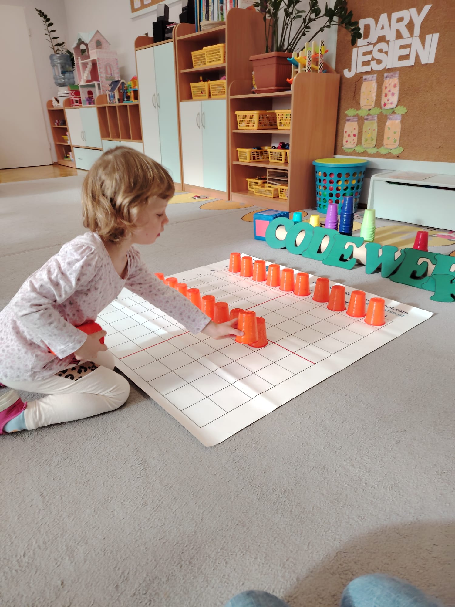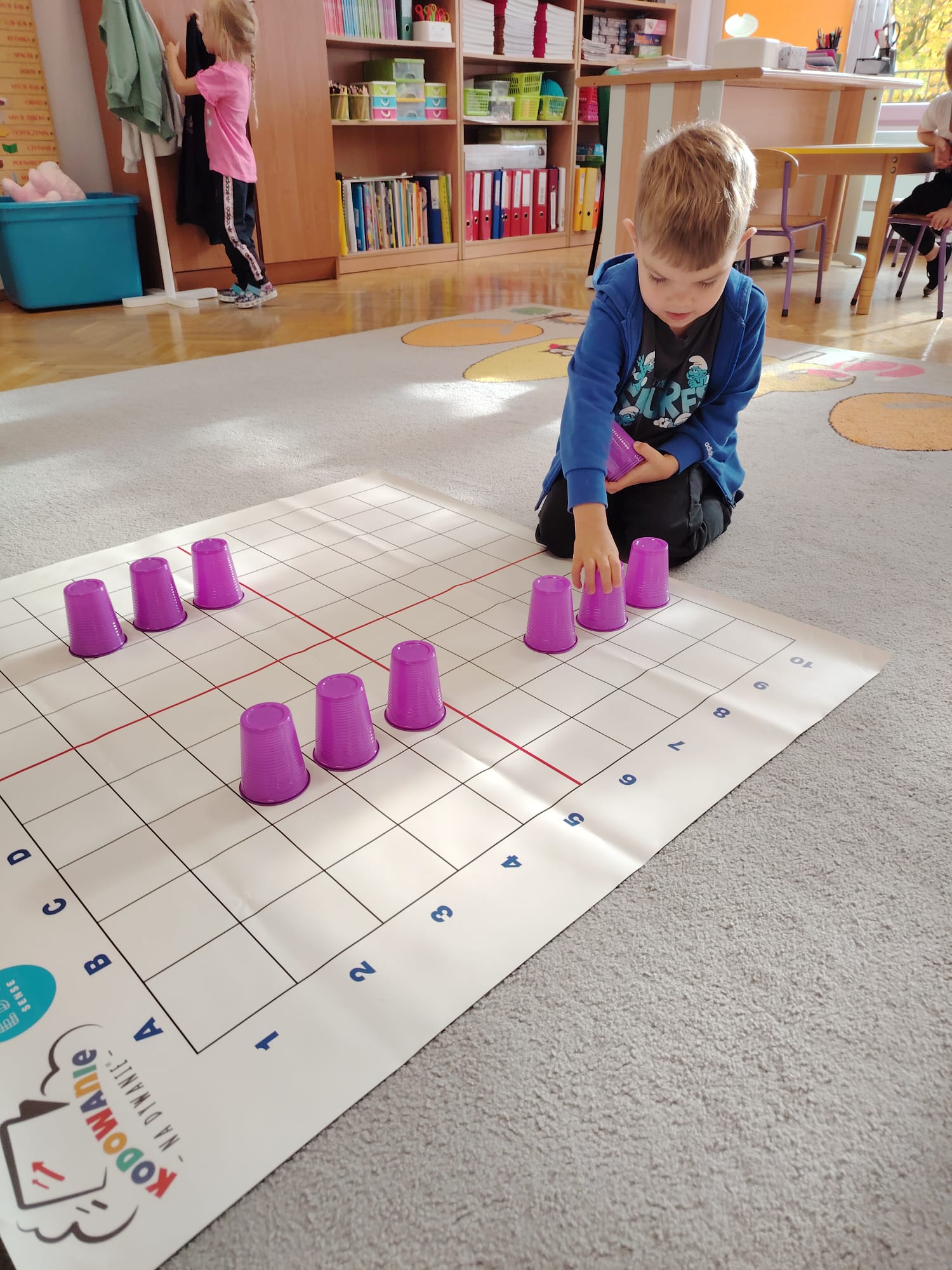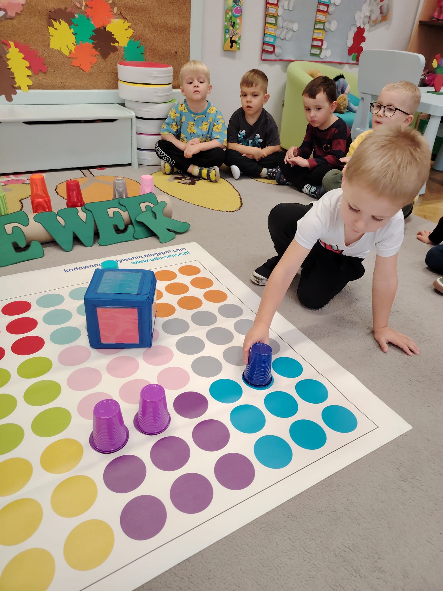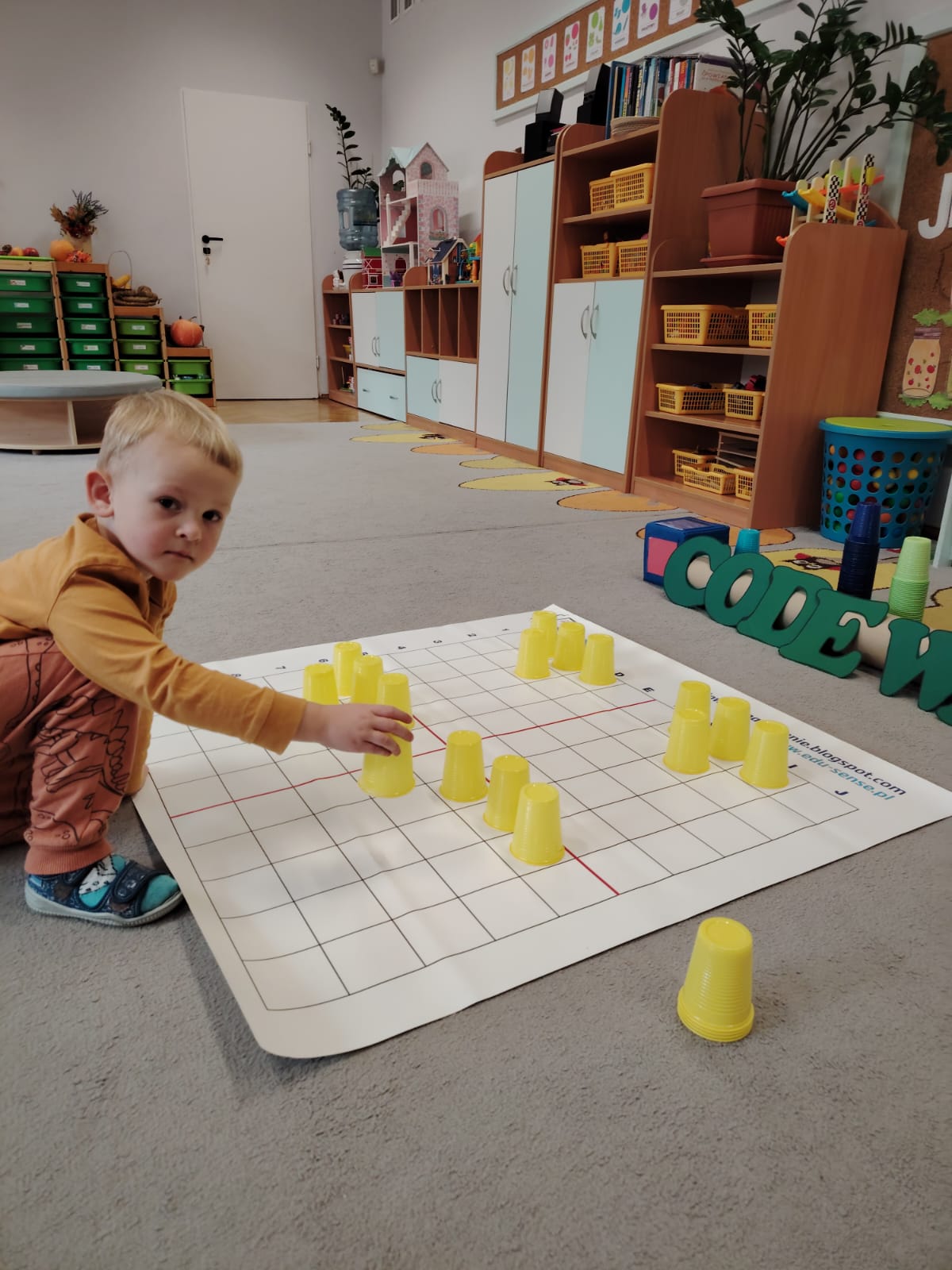 W ramach ogólnoeuropejskiej inicjatywy CodeWeek nasze przedszkolaki z grupy II wzięły udział w wyjątkowych zajęciach wprowadzających w świat kodowania i logicznego myślenia! Patrząc w kalendarz, w grupie II minął już rok pracy z kolorowymi kubeczkami oraz matą edukacyjną. Są to wspaniałe pomoce do opanowania umiejętności układania rytmów, segregowania kolorów, porównywania liczebności zbiorów, doskonalenia logicznego myślenia, ćwiczenia spostrzegawczości wzrokowej. To ekscytująca, wielka przygoda, która w przyszłości ułatwi dzieciom naukę matematyki. Dziś z racji aktualnie trwającego Tygodnia Kodowania mieliśmy nieograniczone możliwości, by dać upust swojej wyobraźni. Pierwszym etapem zabaw z kodowaniem było układanie kubków na macie, zgodnie z podanymi warunkami; odwzorowywanie układów - kodów kubeczkowych, układanie ich pod dyktando- określanie położenia przedmiotów. Następnie tworzyliśmy zakodowane wieże i piramidy. Odkodowaliśmy również jesienne drzewo na tablicy interaktywnej i poszło nam całkiem nieźle. Zajęcia były pełne śmiechu, ruchu i ciekawych wyzwań – a dzieci już nie mogą się doczekać kolejnych przygód z kodowaniem! Do galerii zapraszają przedszkolaki z Białego konika!