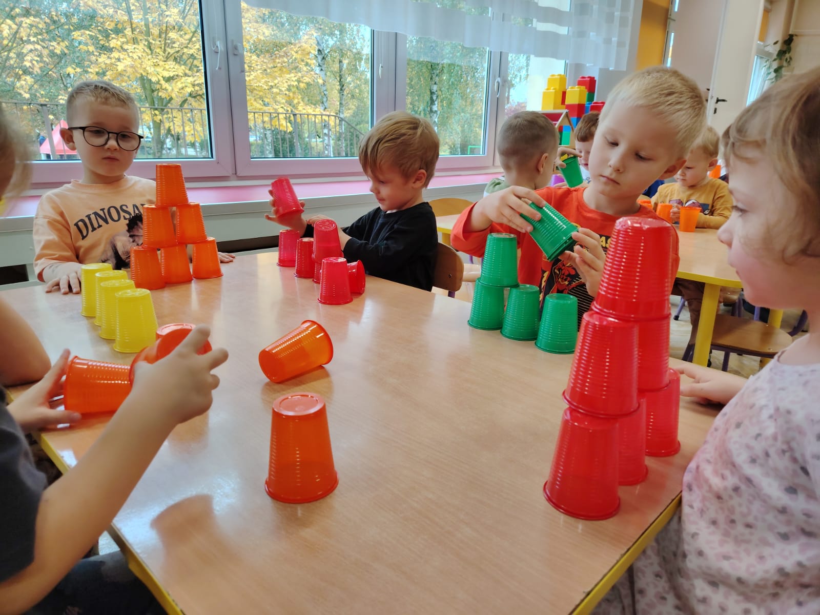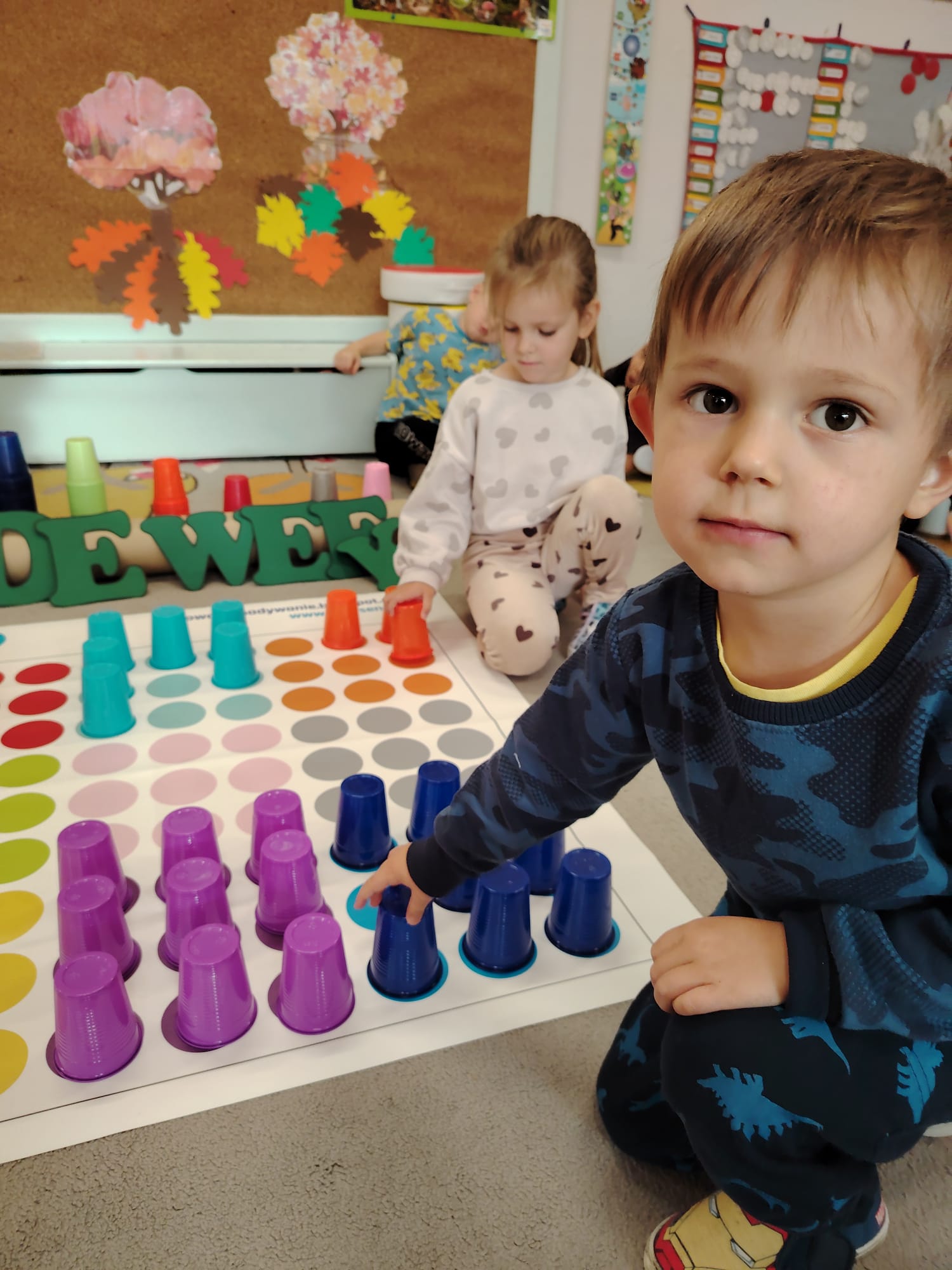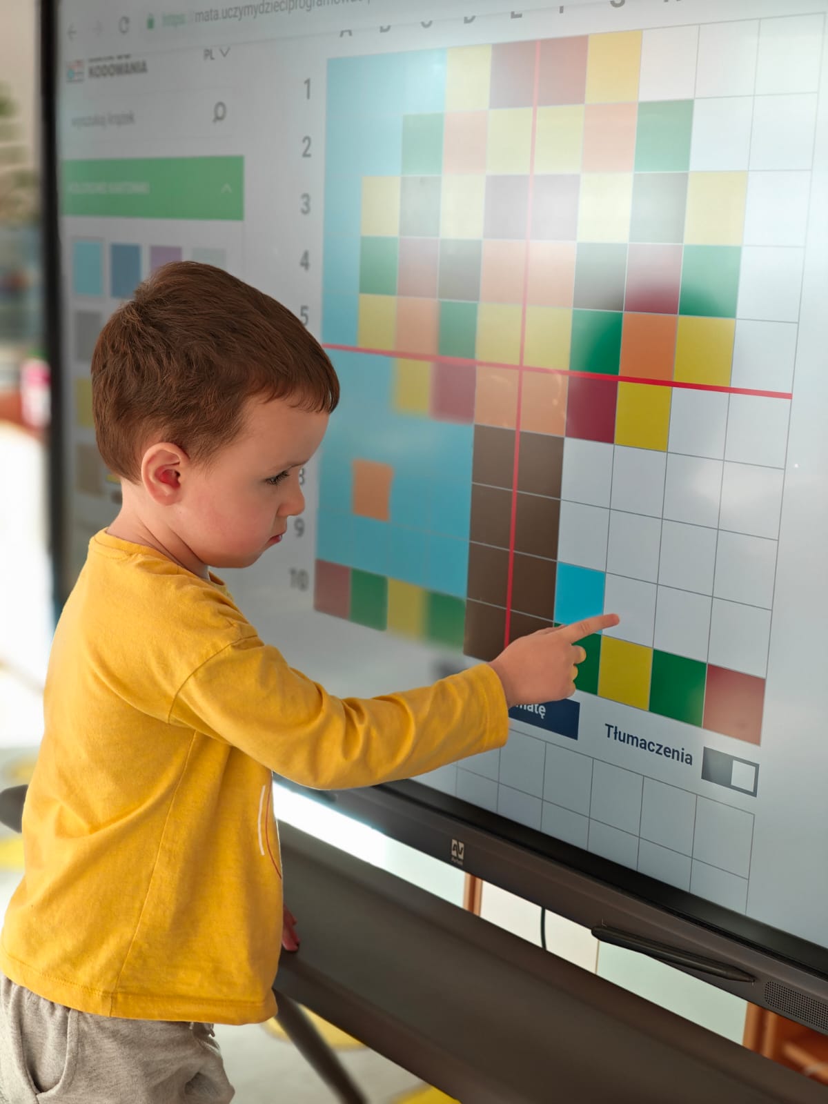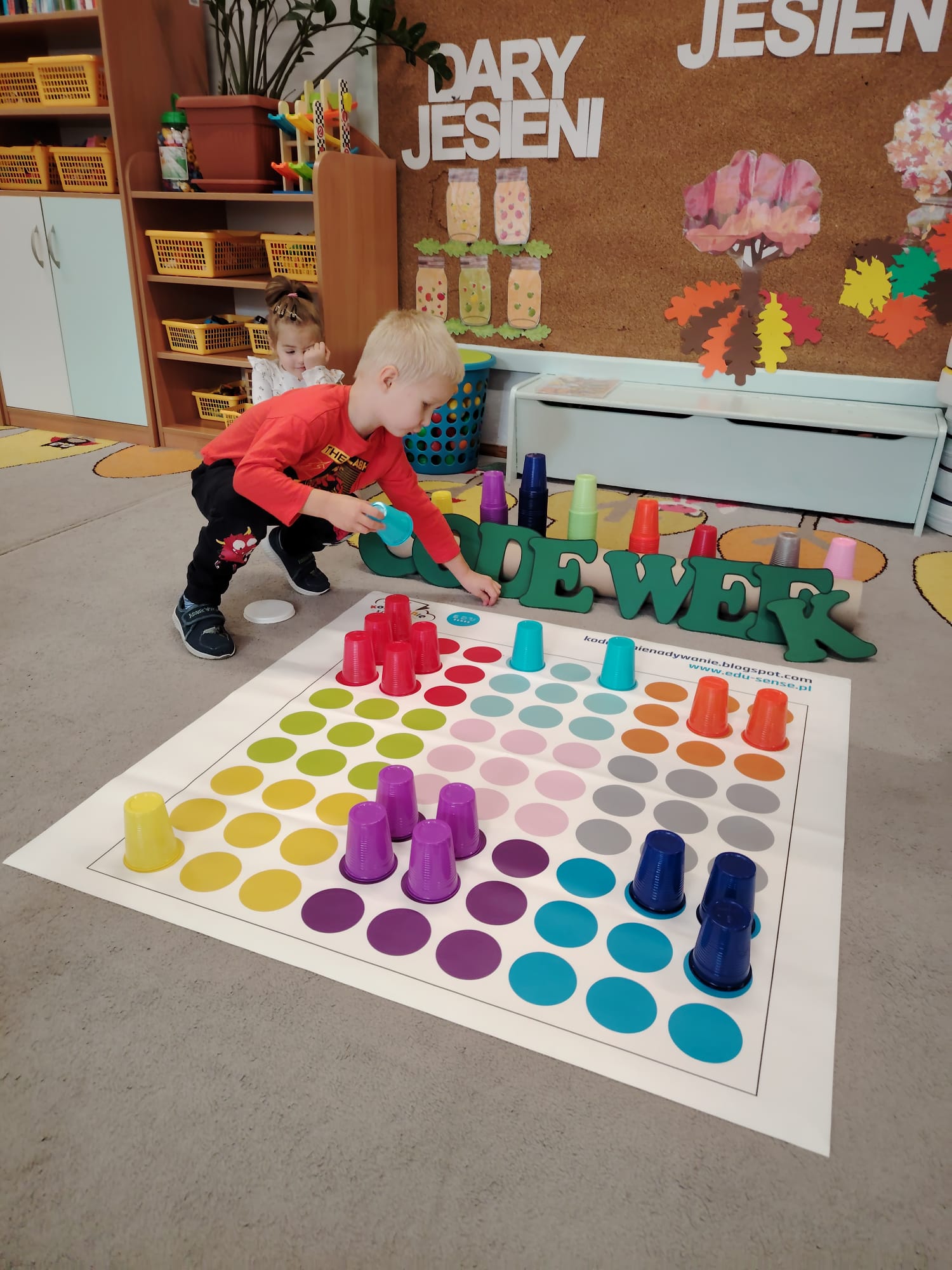 W ramach ogólnoeuropejskiej inicjatywy CodeWeek nasze przedszkolaki z grupy II wzięły udział w wyjątkowych zajęciach wprowadzających w świat kodowania i logicznego myślenia! Patrząc w kalendarz, w grupie II minął już rok pracy z kolorowymi kubeczkami oraz matą edukacyjną. Są to wspaniałe pomoce do opanowania umiejętności układania rytmów, segregowania kolorów, porównywania liczebności zbiorów, doskonalenia logicznego myślenia, ćwiczenia spostrzegawczości wzrokowej. To ekscytująca, wielka przygoda, która w przyszłości ułatwi dzieciom naukę matematyki. Dziś z racji aktualnie trwającego Tygodnia Kodowania mieliśmy nieograniczone możliwości, by dać upust swojej wyobraźni. Pierwszym etapem zabaw z kodowaniem było układanie kubków na macie, zgodnie z podanymi warunkami; odwzorowywanie układów - kodów kubeczkowych, układanie ich pod dyktando- określanie położenia przedmiotów. Następnie tworzyliśmy zakodowane wieże i piramidy. Odkodowaliśmy również jesienne drzewo na tablicy interaktywnej i poszło nam całkiem nieźle. Zajęcia były pełne śmiechu, ruchu i ciekawych wyzwań – a dzieci już nie mogą się doczekać kolejnych przygód z kodowaniem! Do galerii zapraszają przedszkolaki z Białego konika!