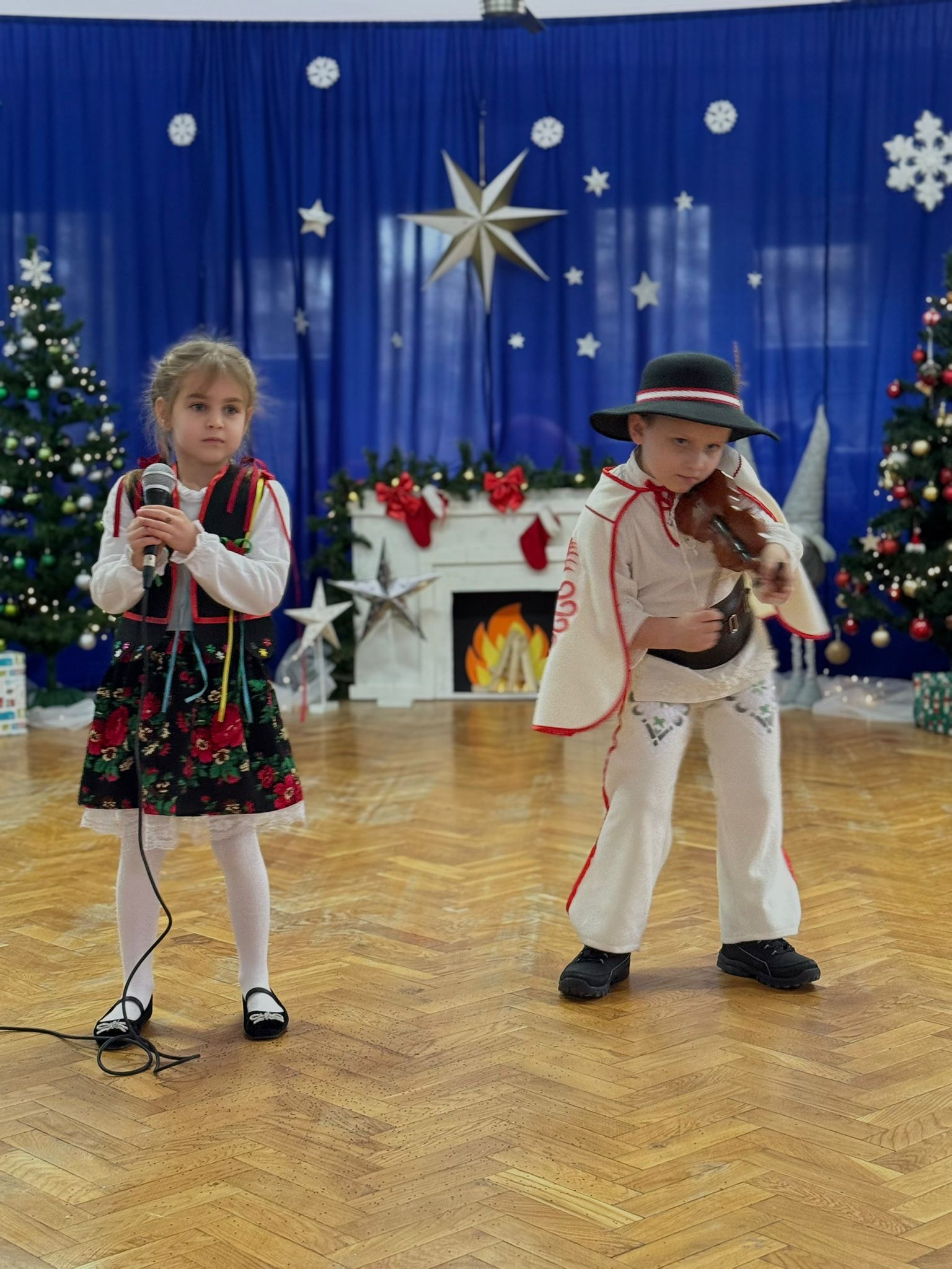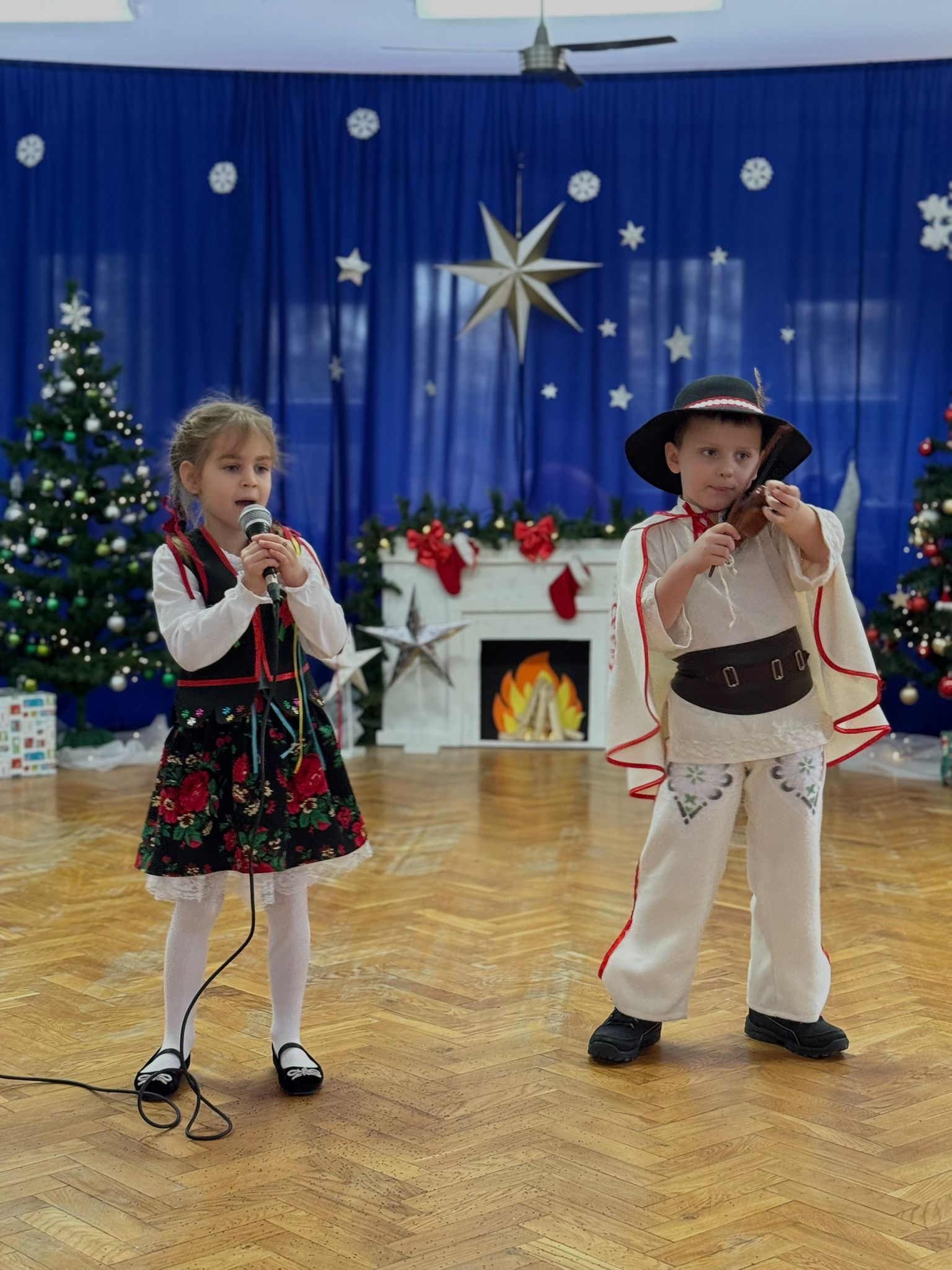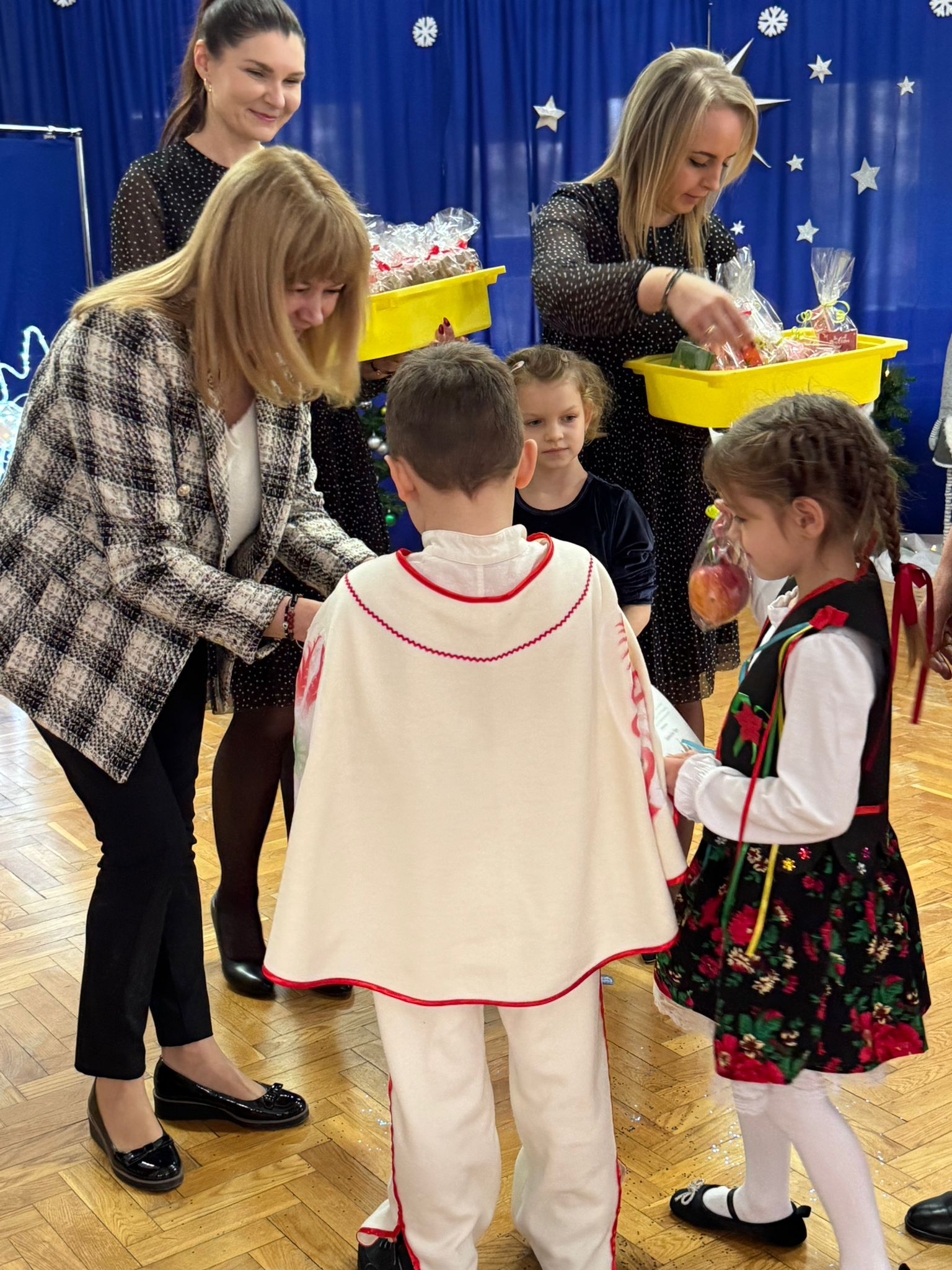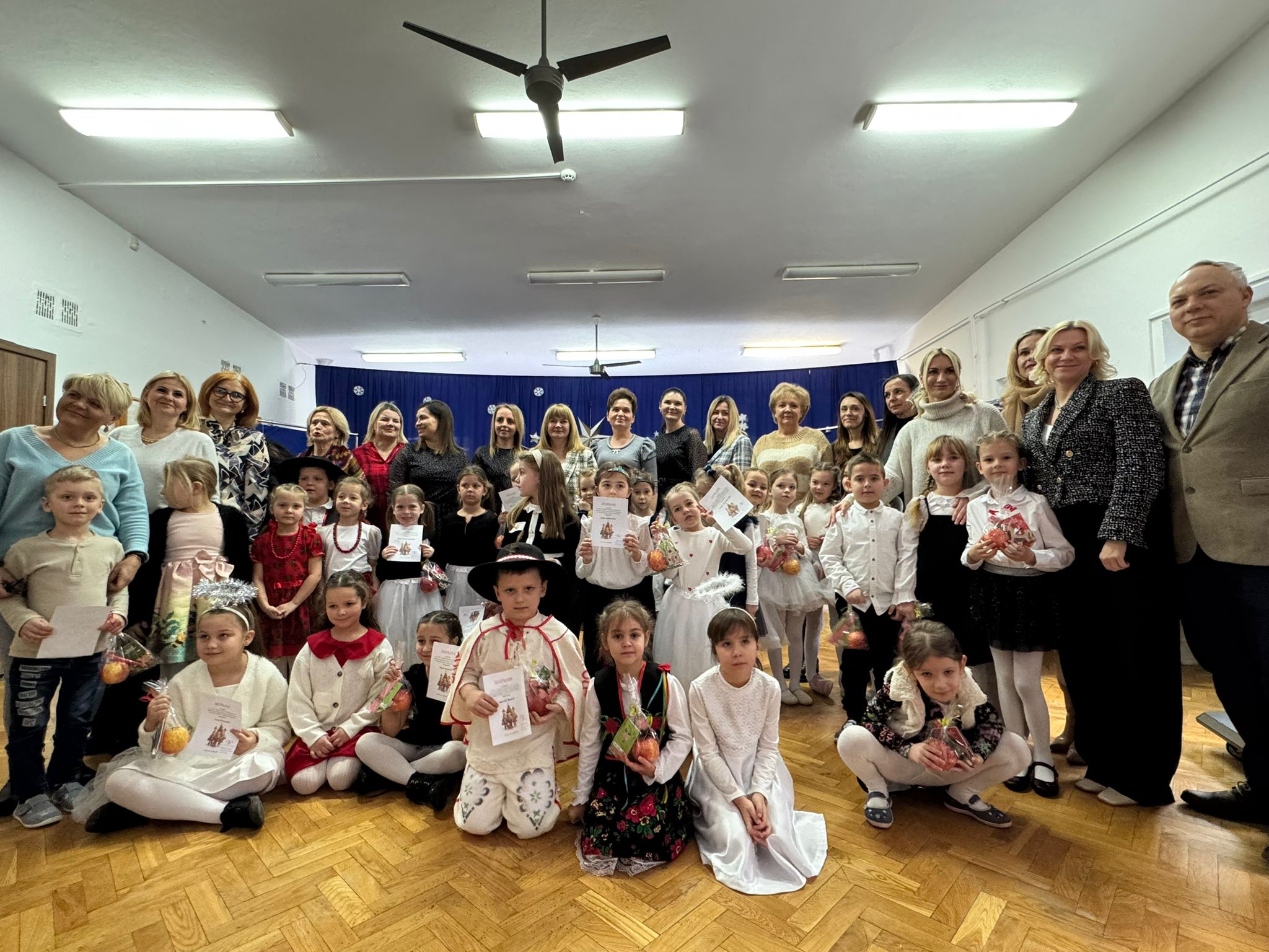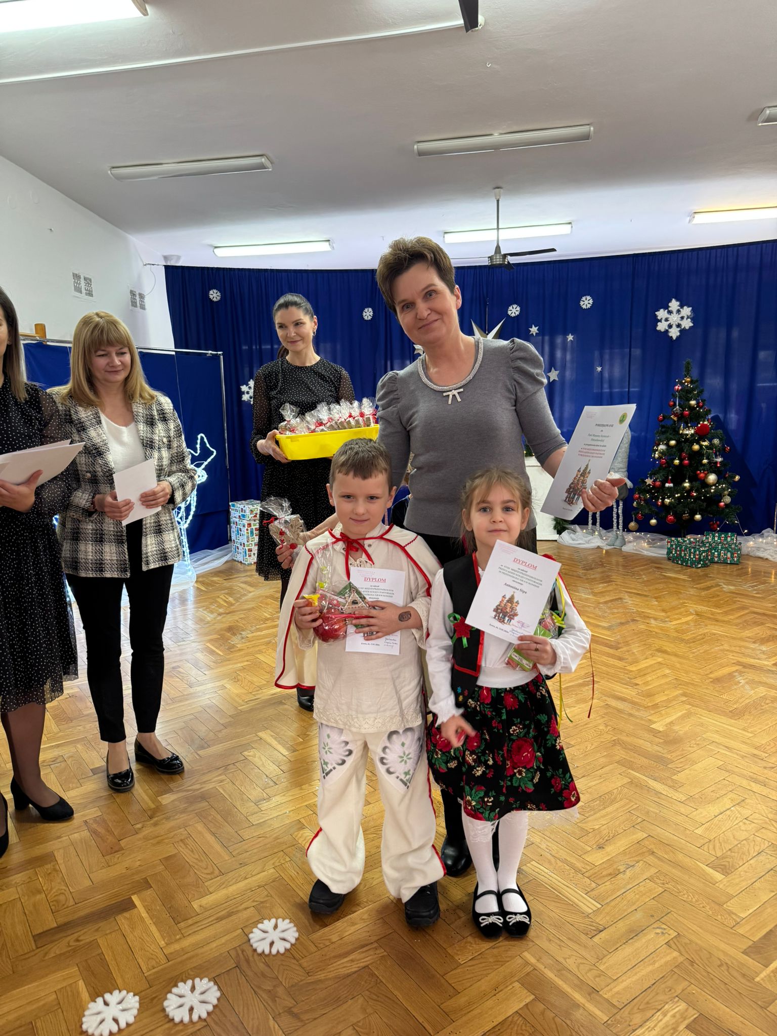 W dniu dzisiejszym dzieci z grupy IV wzięły udział w XVIII Międzyprzedszkolnym Przeglądzie Kolęd i Pastorałek, który odbył się w Przedszkolu nr 8 w Koninie. Celem przeglądu była m.in. prezentacja umiejętności wokalnych dzieci w wieku przedszkolnym, promowanie aktywności twórczej wśród dzieci, promocja nowych talentów, podtrzymanie w młodym pokoleniu tradycji śpiewania kolęd i pastorałek, poszerzenie wiedzy na temat tradycji bożonarodzeniowych, popularyzacja śpiewu wśród dzieci jako jednej z przyjemniejszych form spędzania wolnego czasu. Podczas przeglądu Antosia S. zachwyciła publiczność kolędą „Tylko jedna jest taka noc”, a Marcelek B. „grą” na skrzypcach niczym prawdziwy wirtuoz. Dzieci wystąpiły w pięknych strojach góralskich, co dodatkowo podkreśliło wyjątkowy charakter występu. Wykonanie naszych przedszkolaków spotkało się z ogromnym uznaniem i aplauzem. Dzieci nie tylko zaprezentowały swoje umiejętności, ale również wniosły do wspólnego świętowania prawdziwy, świąteczny klimat.