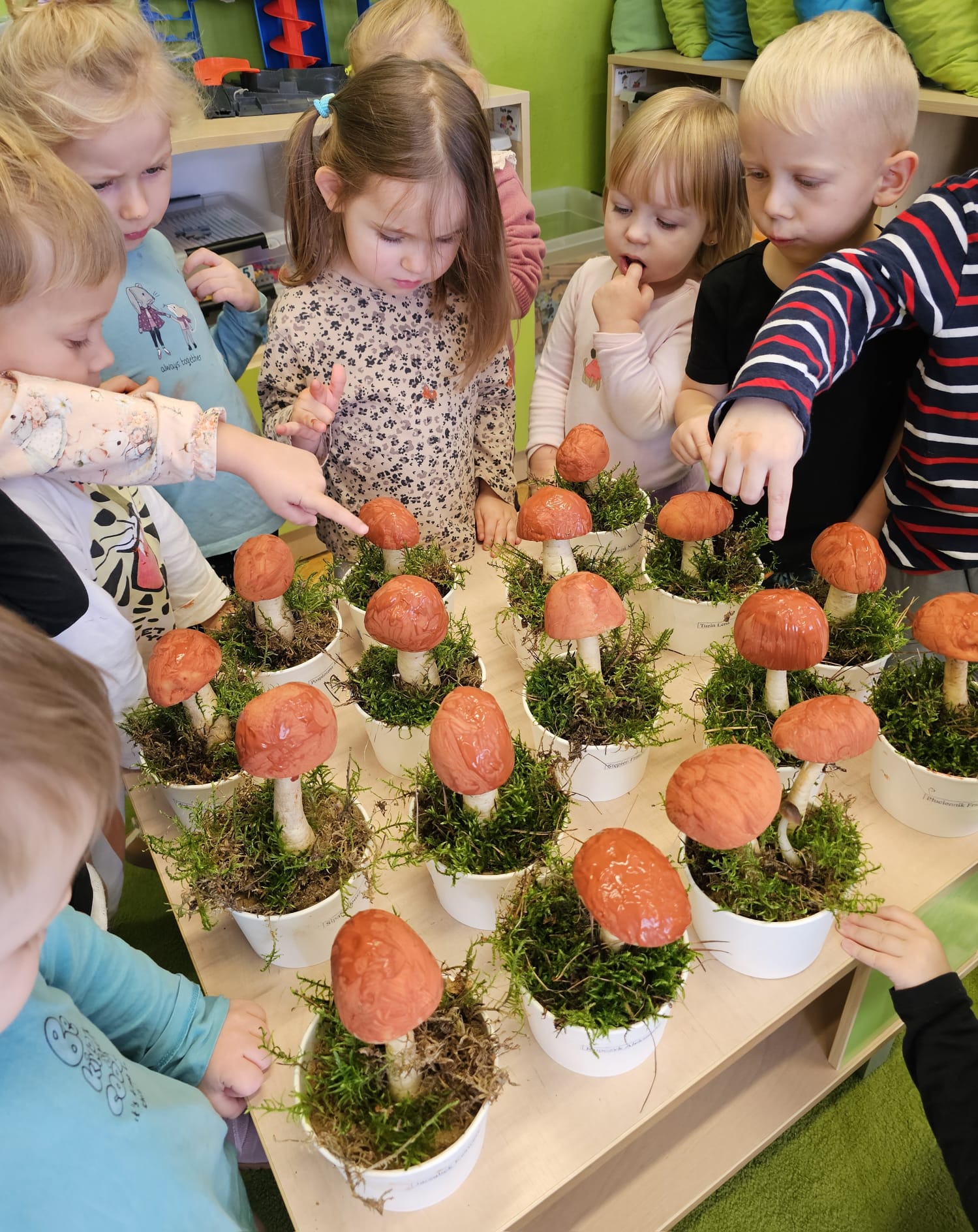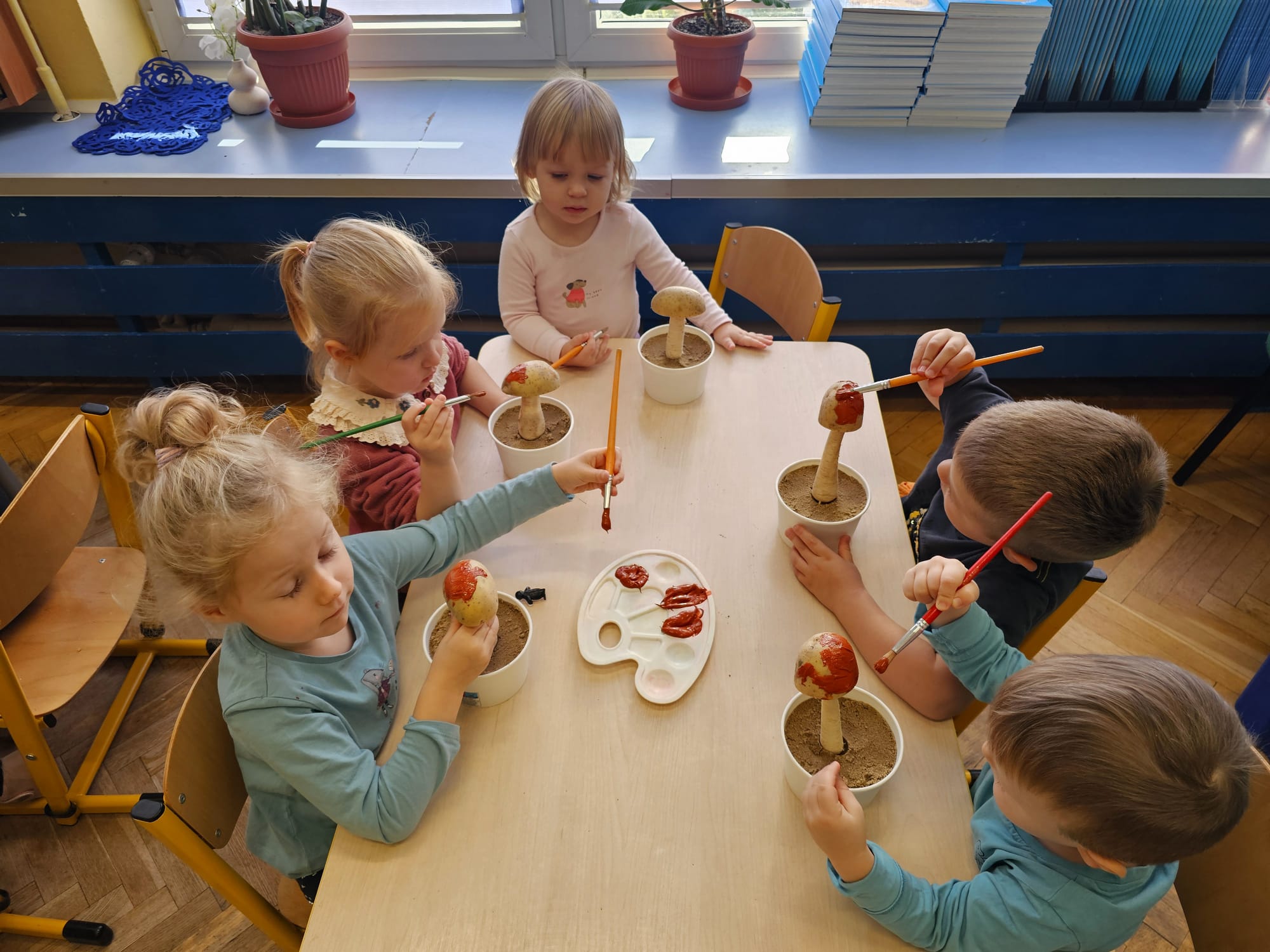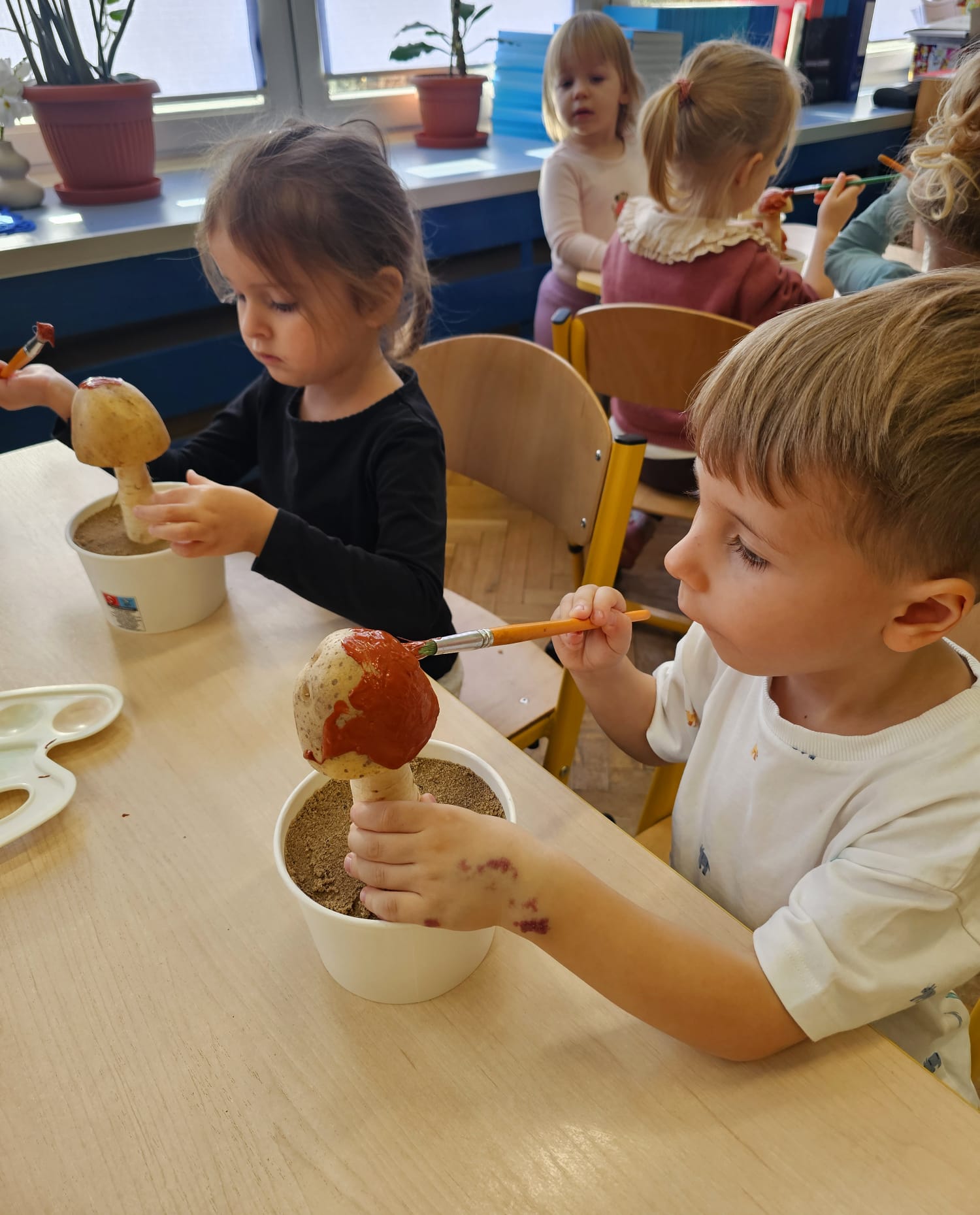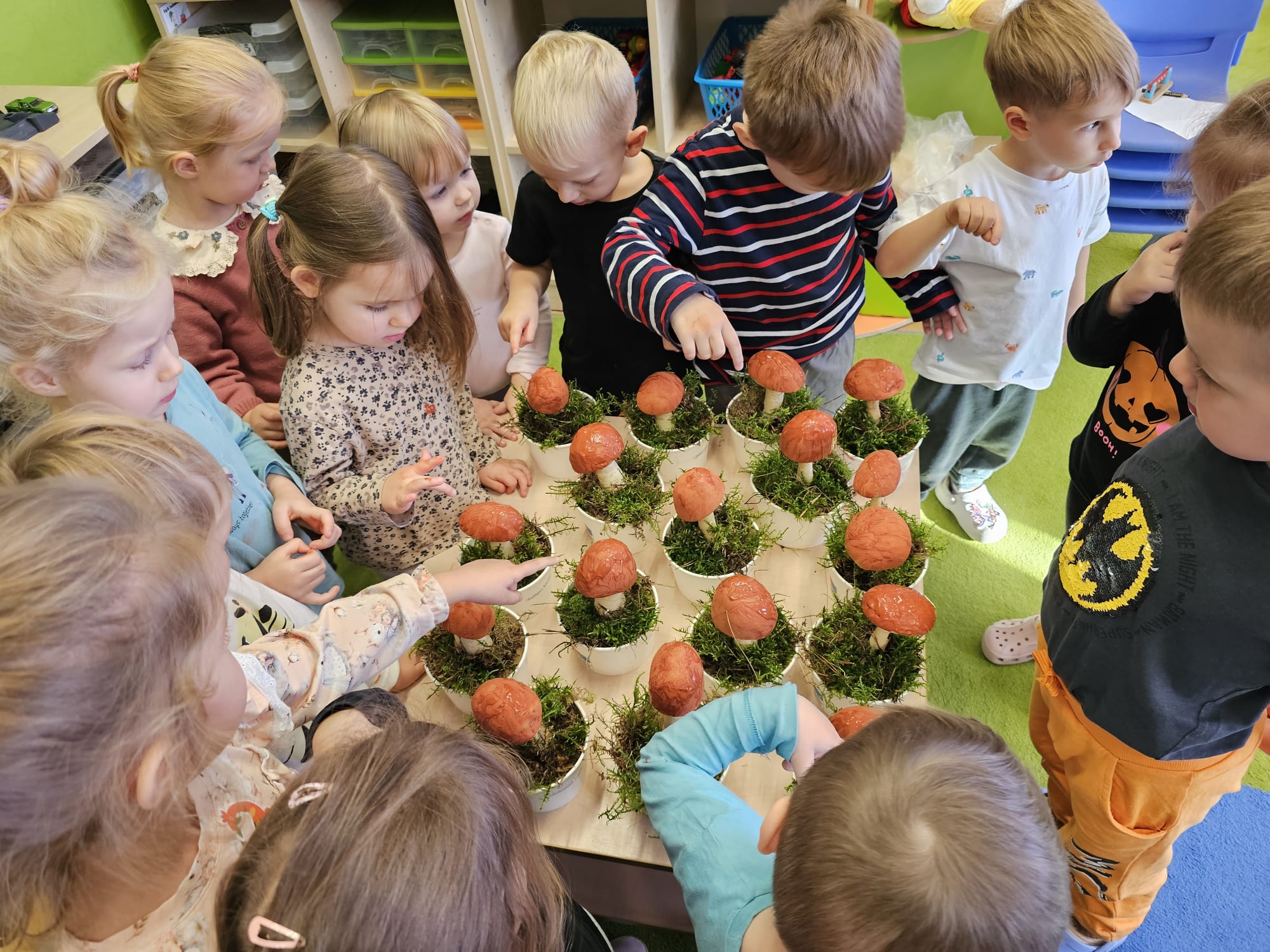 Przedszkolaki z grupy I wyruszyły w niezwykłą podróż do „Królestwa grzybów”. Maluchy poznały różne gatunki grzybów, dowiedziały się , gdzie rosną i które z nich można spotkać w lesie. Z wielkim zaangażowaniem układały grzybowe puzzle, a później tworzyły własne grzybki z ziemniaka i pietruszki- było dużo śmiechu, radości i pomysłowych prac. Zajęcia były doskonałą okazją do rozwijania ciekawości przyrodniczej , wyobraźni oraz zdolności manualnych. Nasze przedszkolaki po raz kolejny udowodniły, że nauka przez zabawę to najlepszy sposób poznawania świata.