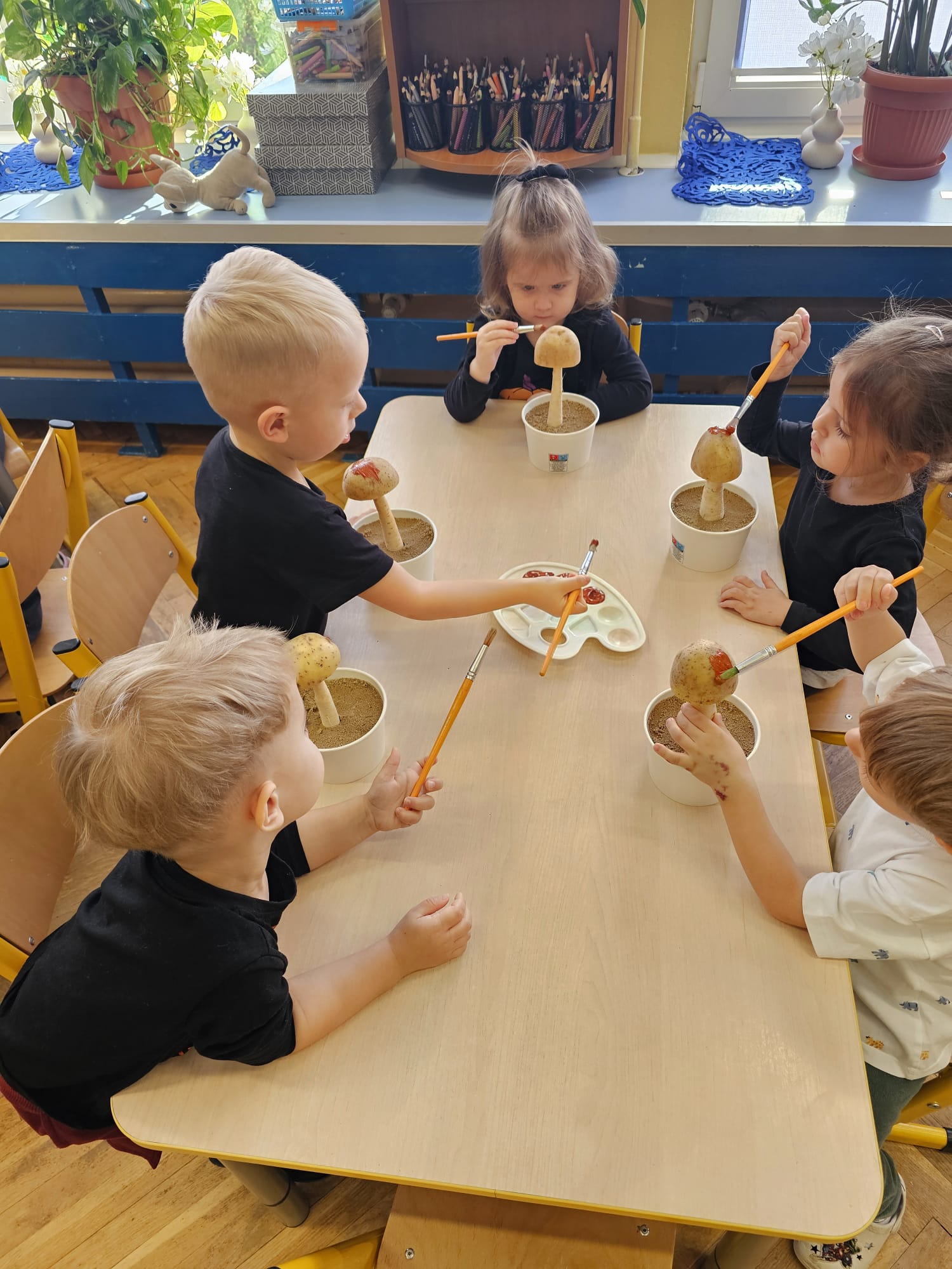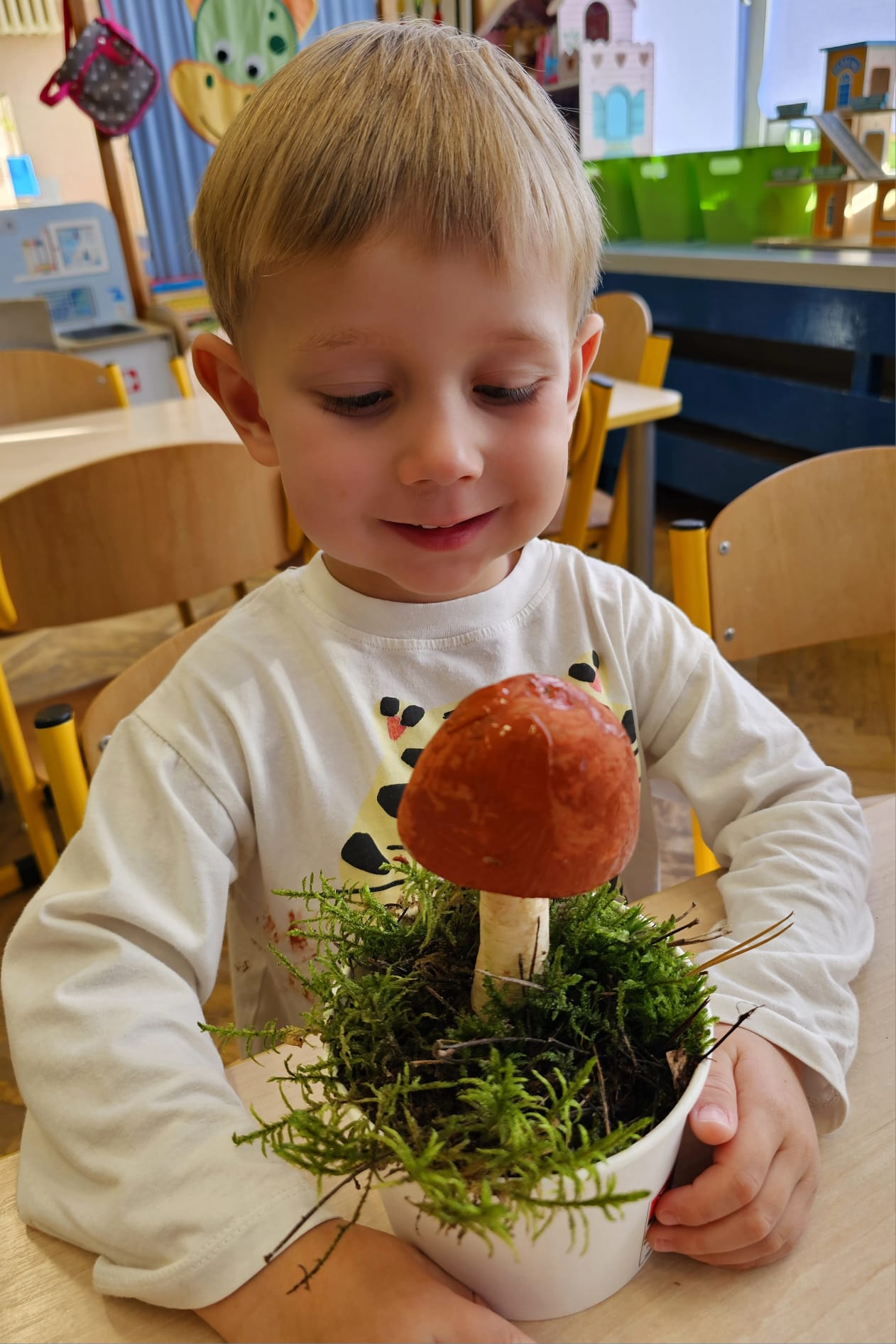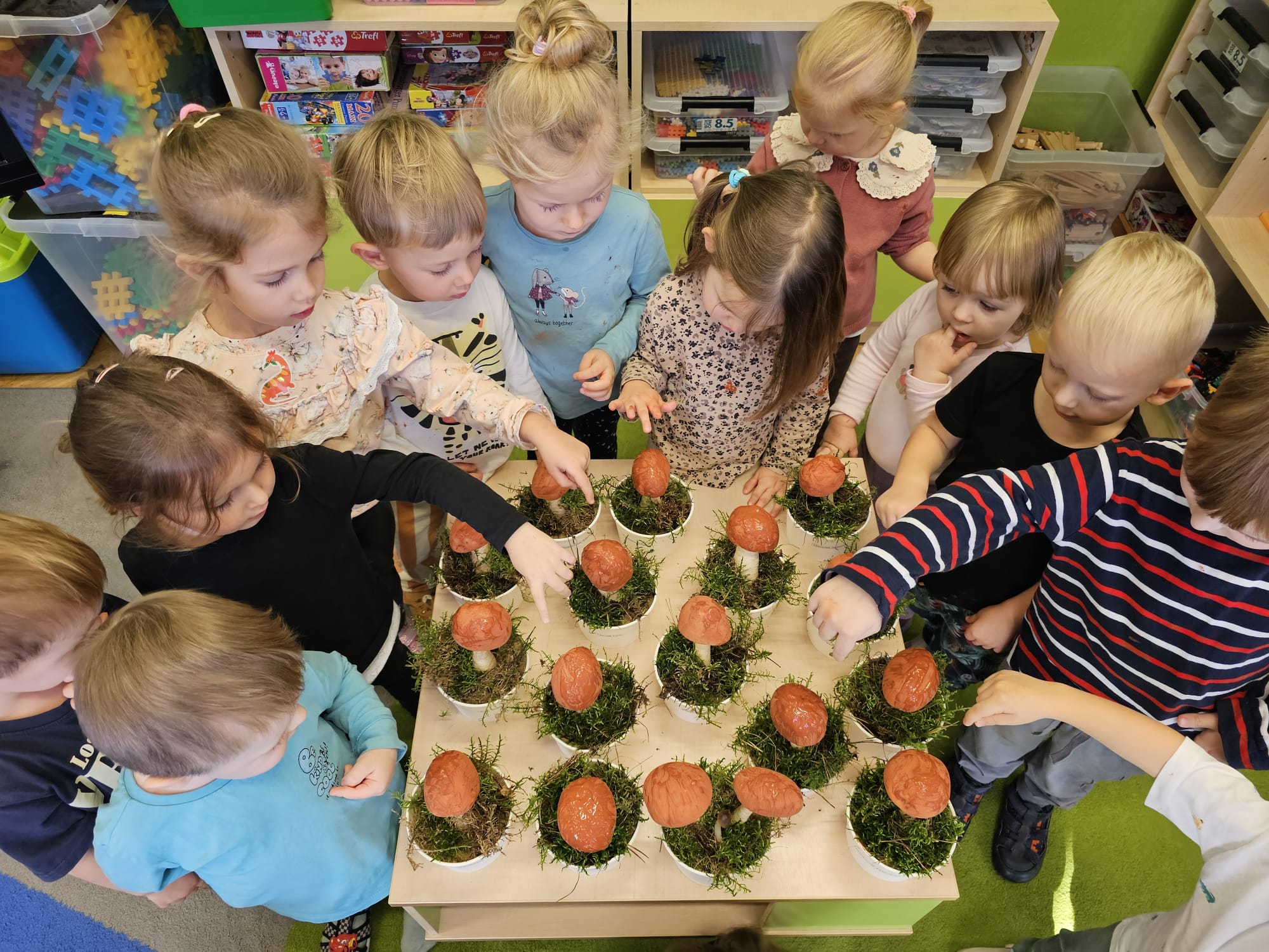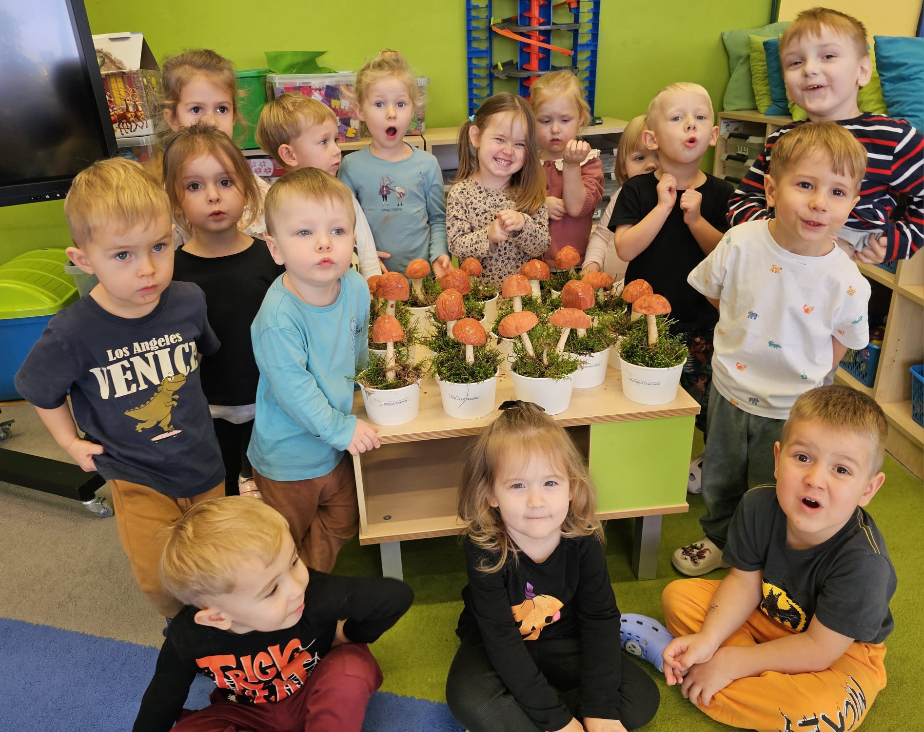 Przedszkolaki z grupy I wyruszyły w niezwykłą podróż do „Królestwa grzybów”. Maluchy poznały różne gatunki grzybów, dowiedziały się , gdzie rosną i które z nich można spotkać w lesie. Z wielkim zaangażowaniem układały grzybowe puzzle, a później tworzyły własne grzybki z ziemniaka i pietruszki- było dużo śmiechu, radości i pomysłowych prac. Zajęcia były doskonałą okazją do rozwijania ciekawości przyrodniczej , wyobraźni oraz zdolności manualnych. Nasze przedszkolaki po raz kolejny udowodniły, że nauka przez zabawę to najlepszy sposób poznawania świata.