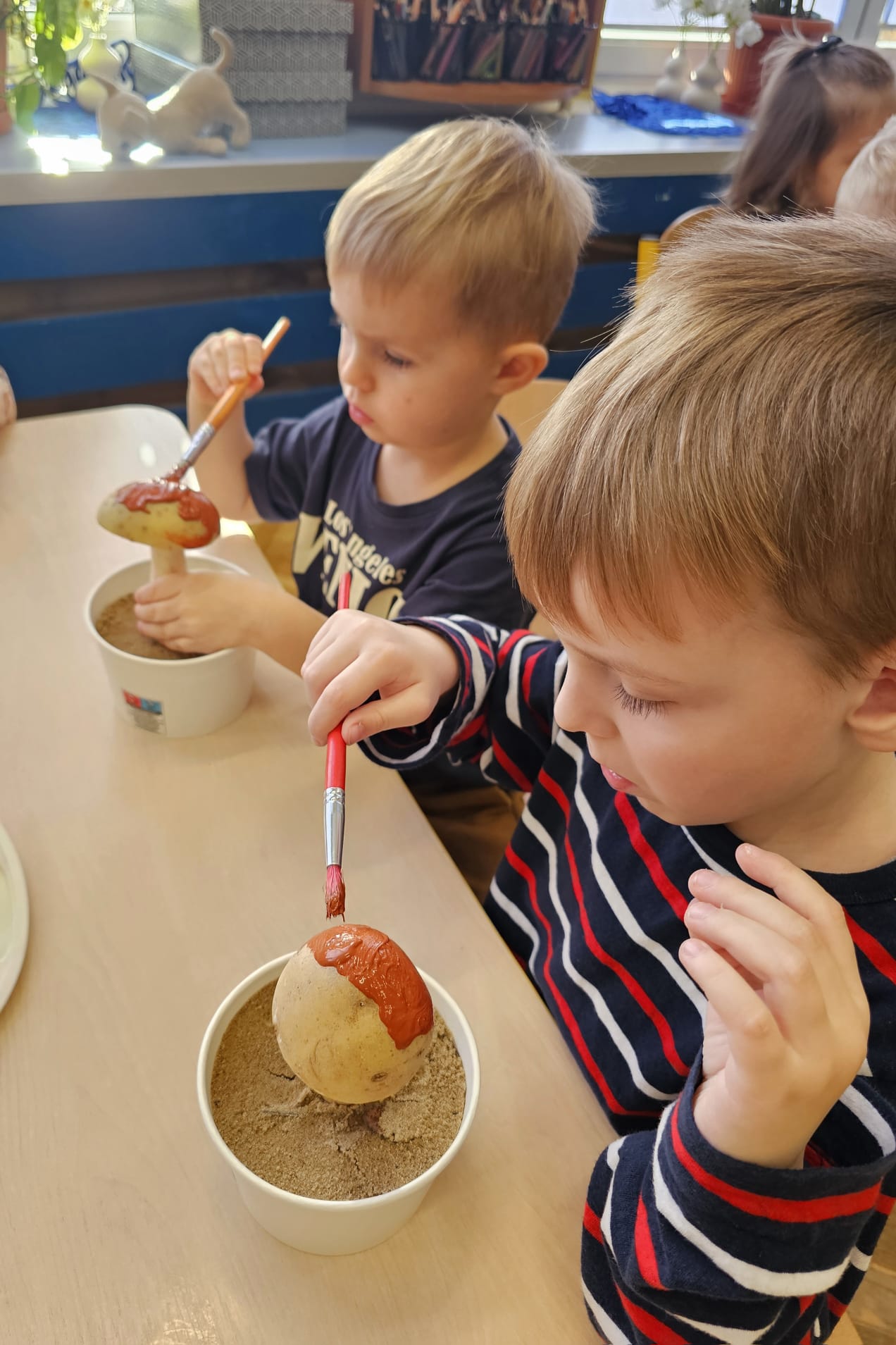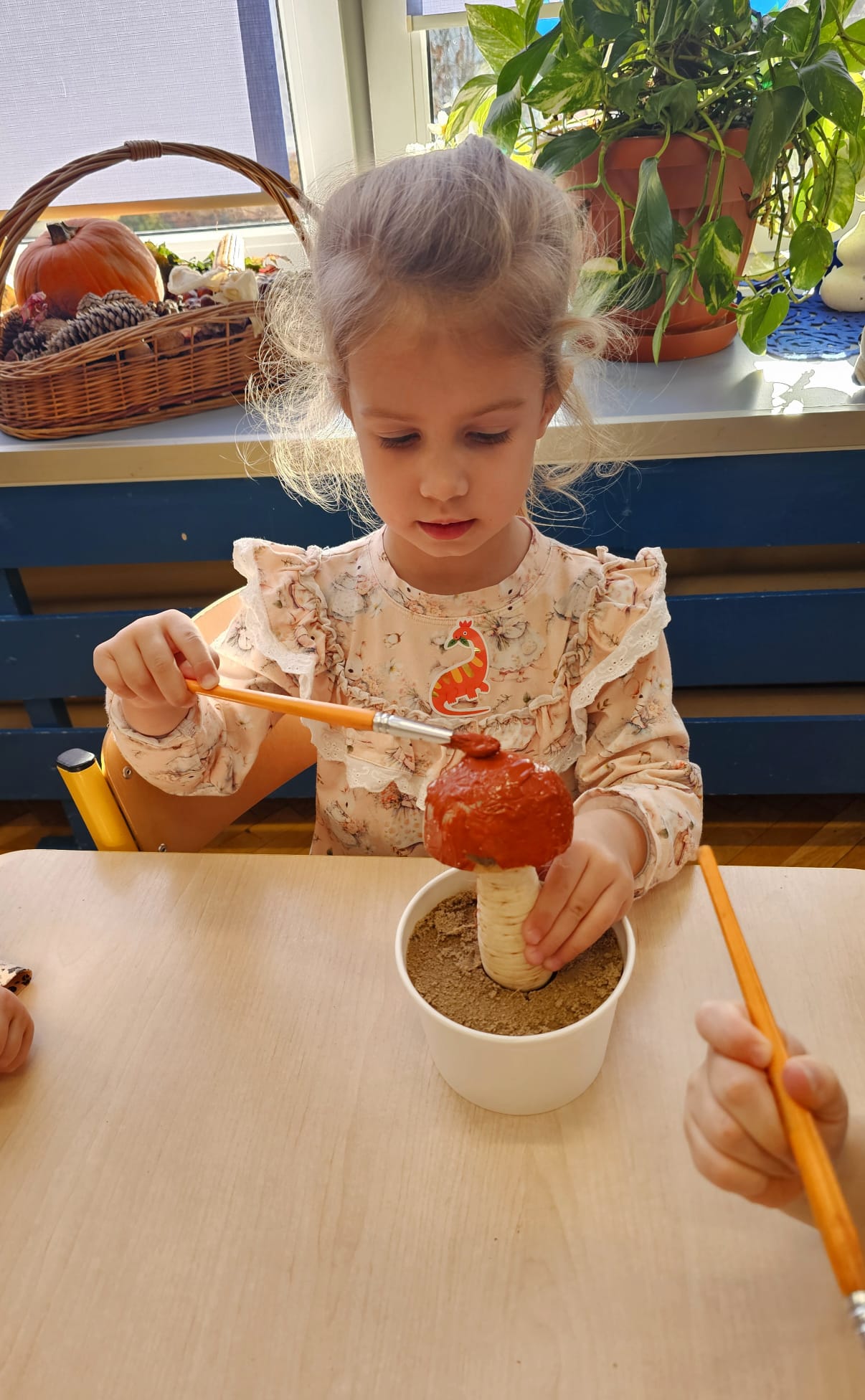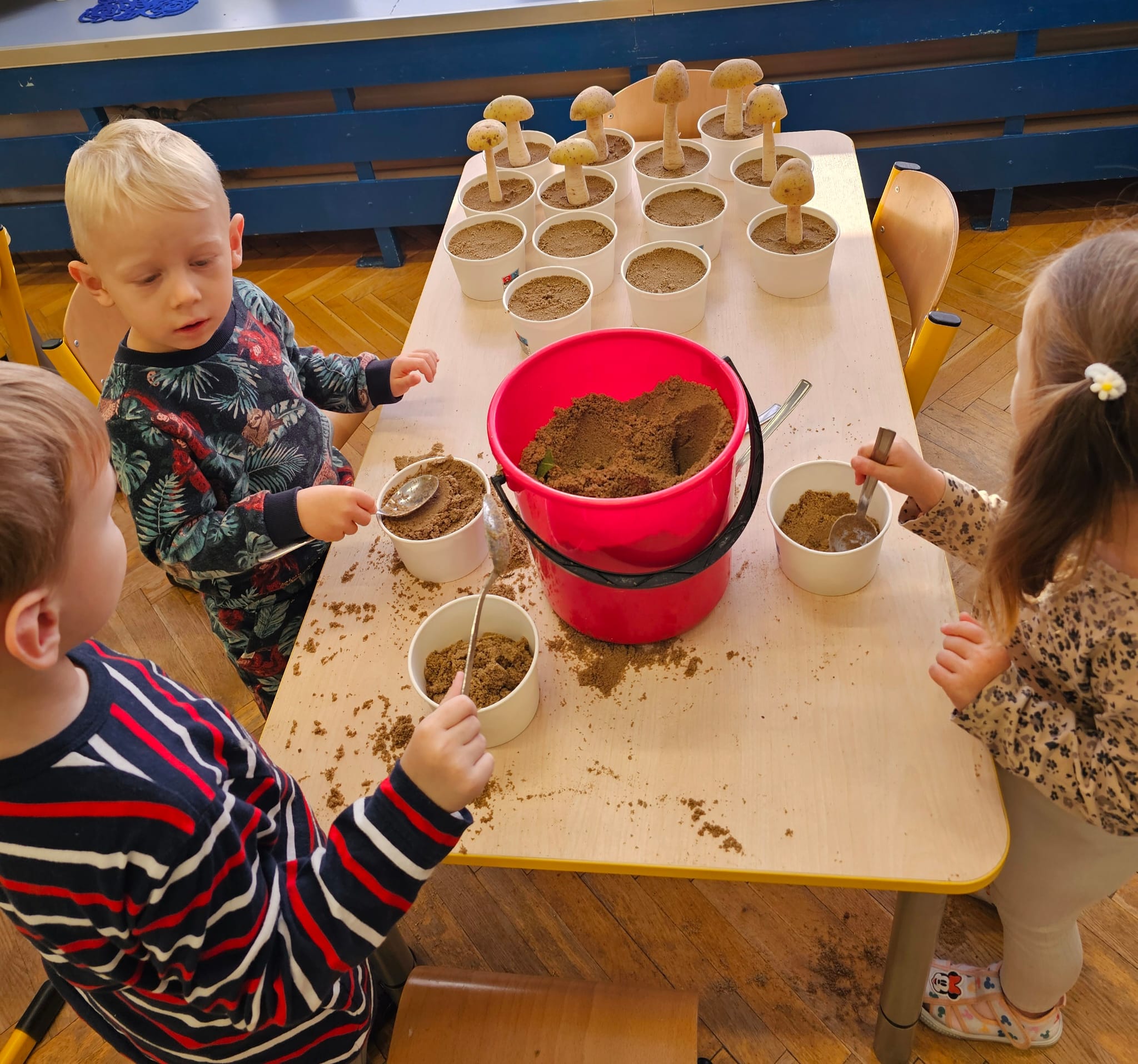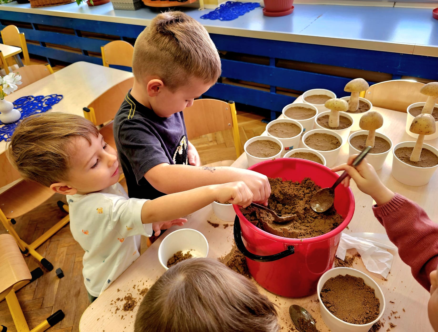 Przedszkolaki z grupy I wyruszyły w niezwykłą podróż do „Królestwa grzybów”. Maluchy poznały różne gatunki grzybów, dowiedziały się , gdzie rosną i które z nich można spotkać w lesie. Z wielkim zaangażowaniem układały grzybowe puzzle, a później tworzyły własne grzybki z ziemniaka i pietruszki- było dużo śmiechu, radości i pomysłowych prac. Zajęcia były doskonałą okazją do rozwijania ciekawości przyrodniczej , wyobraźni oraz zdolności manualnych. Nasze przedszkolaki po raz kolejny udowodniły, że nauka przez zabawę to najlepszy sposób poznawania świata.
