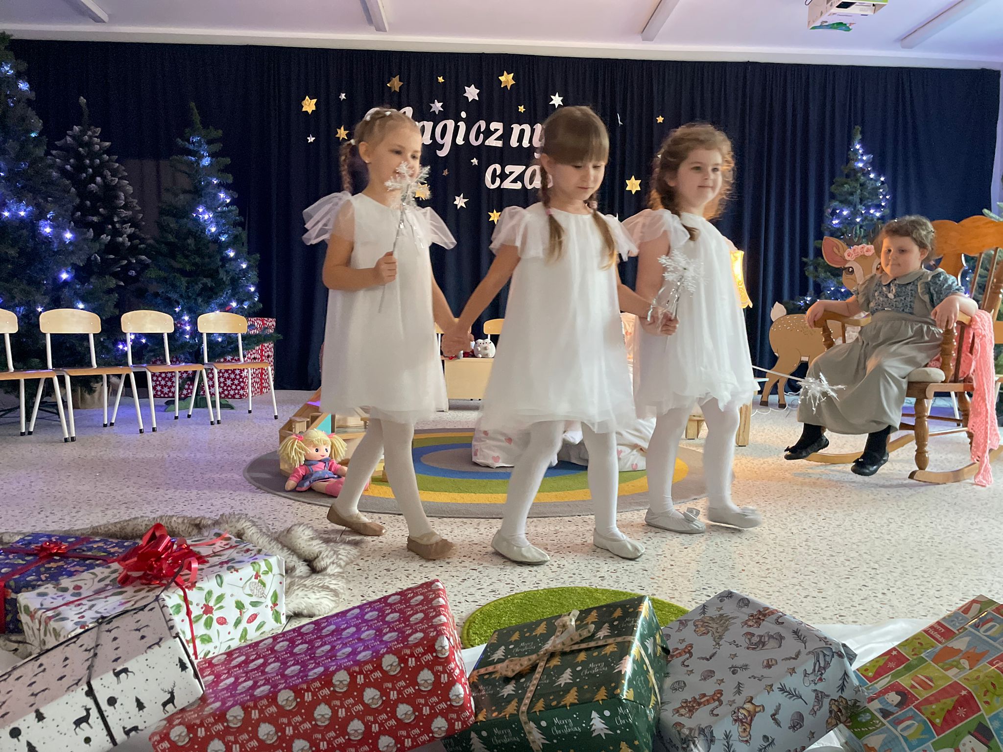Okres świąteczny skłania nas do refleksji nad własnym życiem. Powinniśmy doceniać obecność drugiego człowieka. Każdy powinien być obdarowany ciepłem i dobrym słowem. Takie jest najważniejsze przesłanie Świąt Bożego Narodzenia. I to przesłanie dzieci przekazały wszystkim obecnym podczas przedstawienia bożonarodzeniowego pt. „Gwiazdkowy prezent”. Było pełno radości, uśmiechu i wzruszeń. Wszyscy ulegli magii występów przedszkolaków.