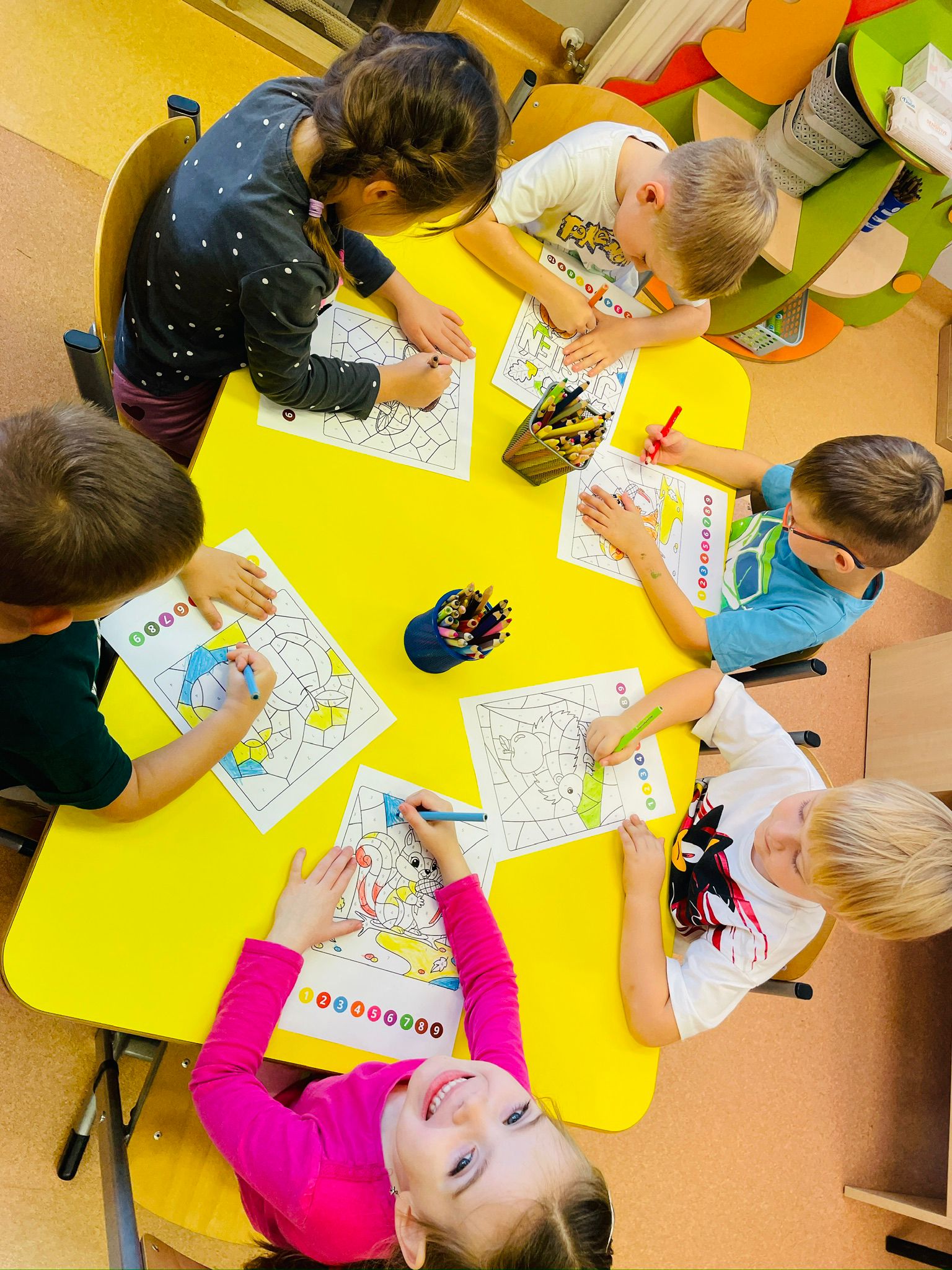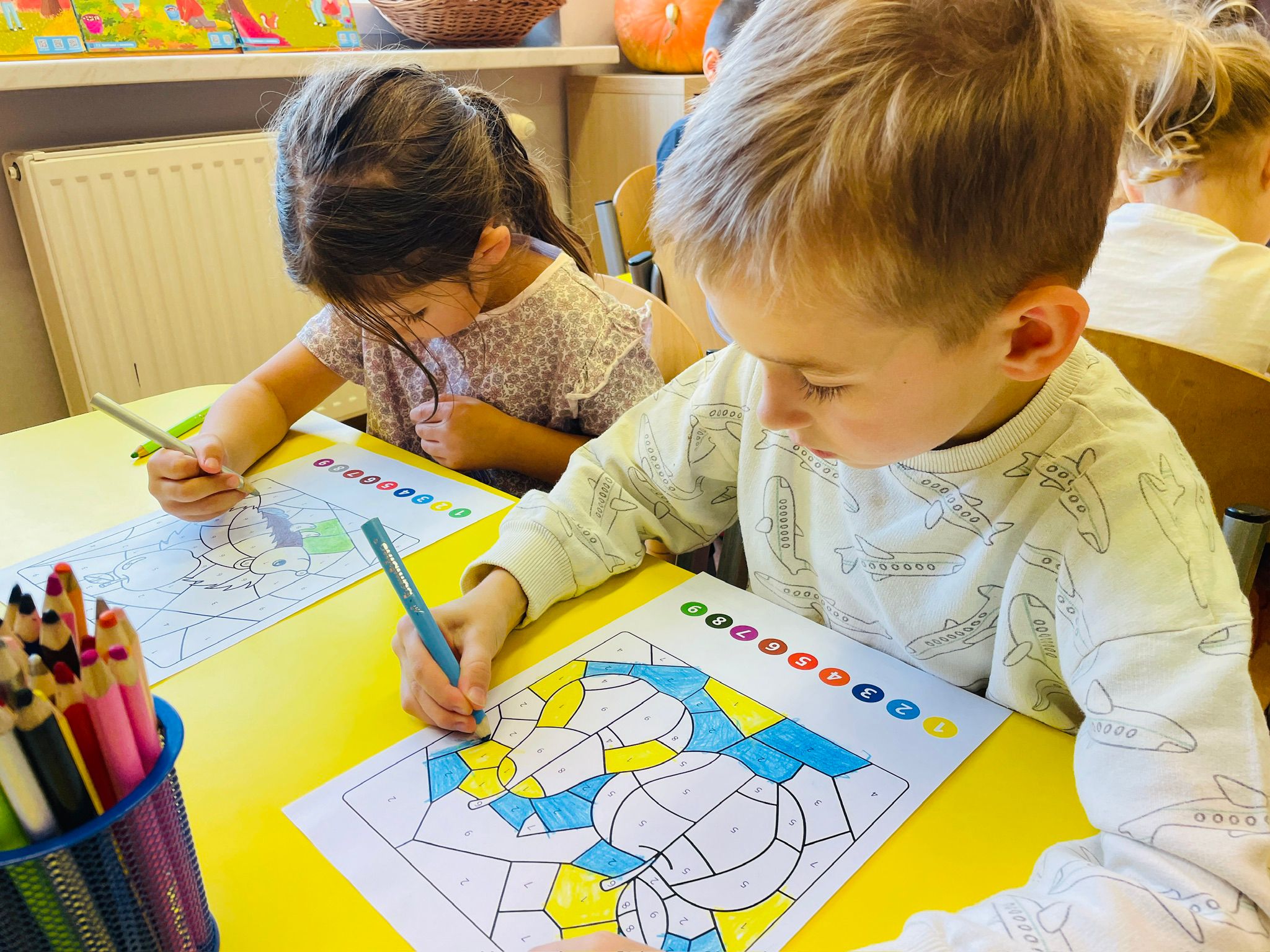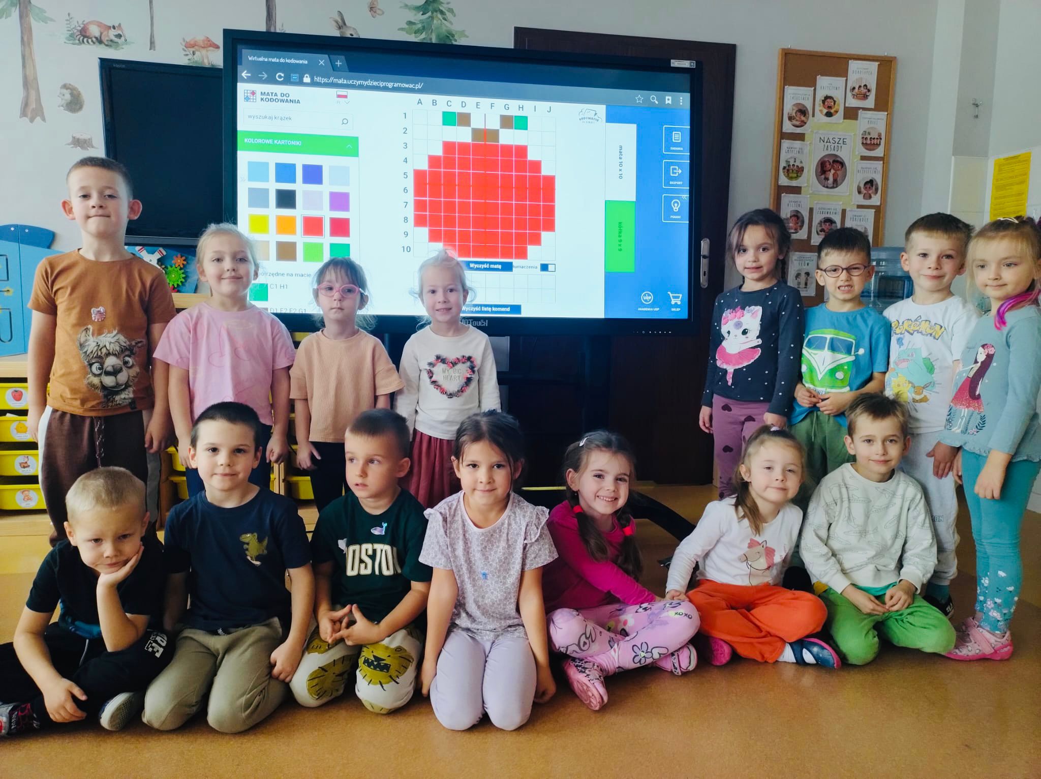 Już kolejny raz nasze dzieci uczestniczyły w różnorodnych działaniach rozwijających logiczne i kreatywne myślenie w ramach Europejskiego Tygodnia Kodowania CodeWeek. Podczas zajęć rozwiązywały szyfry na macie, planując sekwencje ruchów i kierunków. Udało nam się również wykorzystać tablicę interaktywną do rozwiązywania zagadek i łamigłówek, co nadało kodowaniu atrakcyjną cyfrową formę. Okazuje się nawet, że kodować można również twórczo- podczas kolorowania według określonego wzoru. Wszystkie nasze działania miały na celu rozwijanie umiejętności logicznego myślenia, współpracy w grupie, rozbudzanie ciekawości poznawczej oraz pokazanie, że kodowanie może być przyjemne, ciekawe i dostępne dla każdego dziecka.