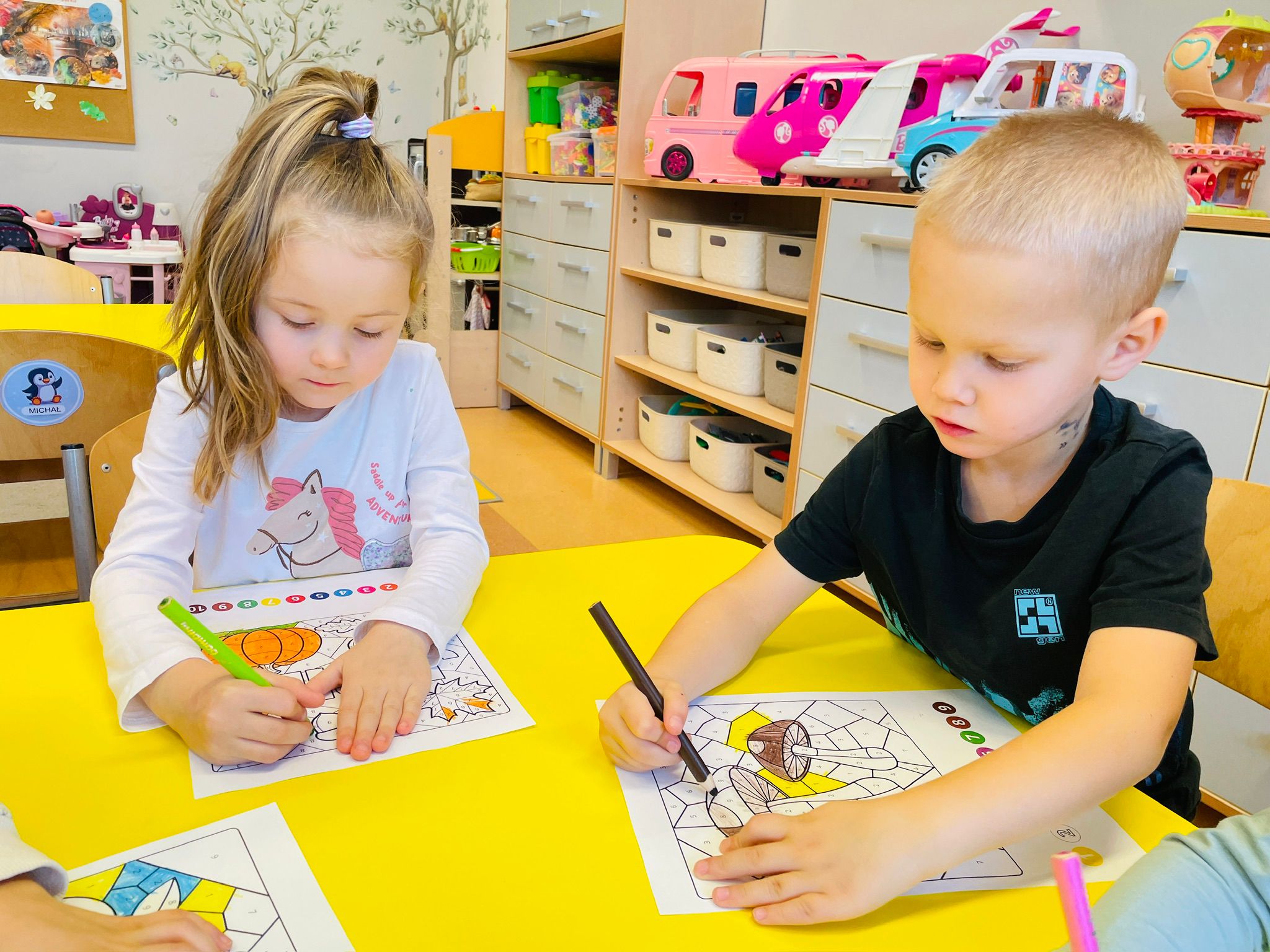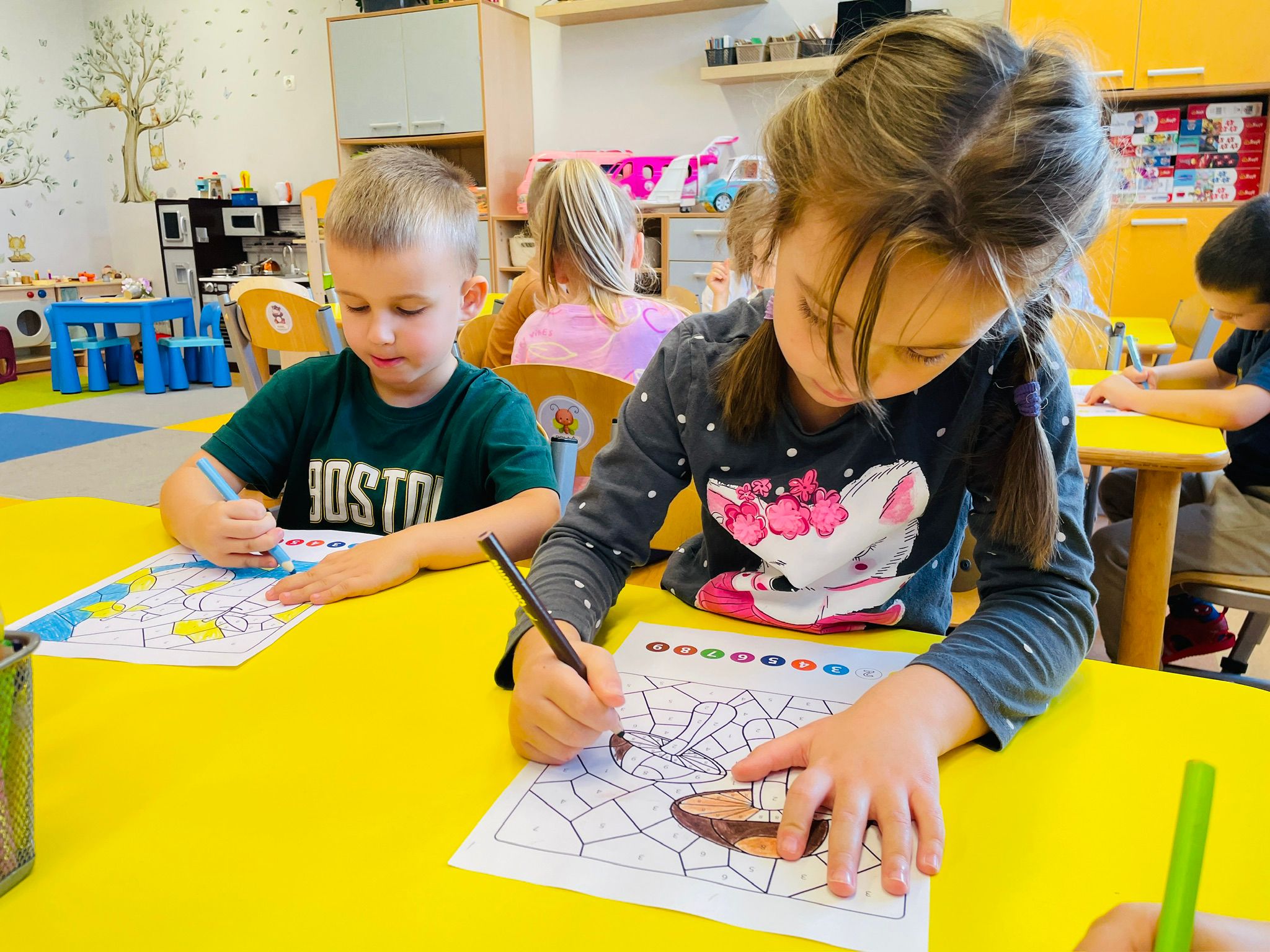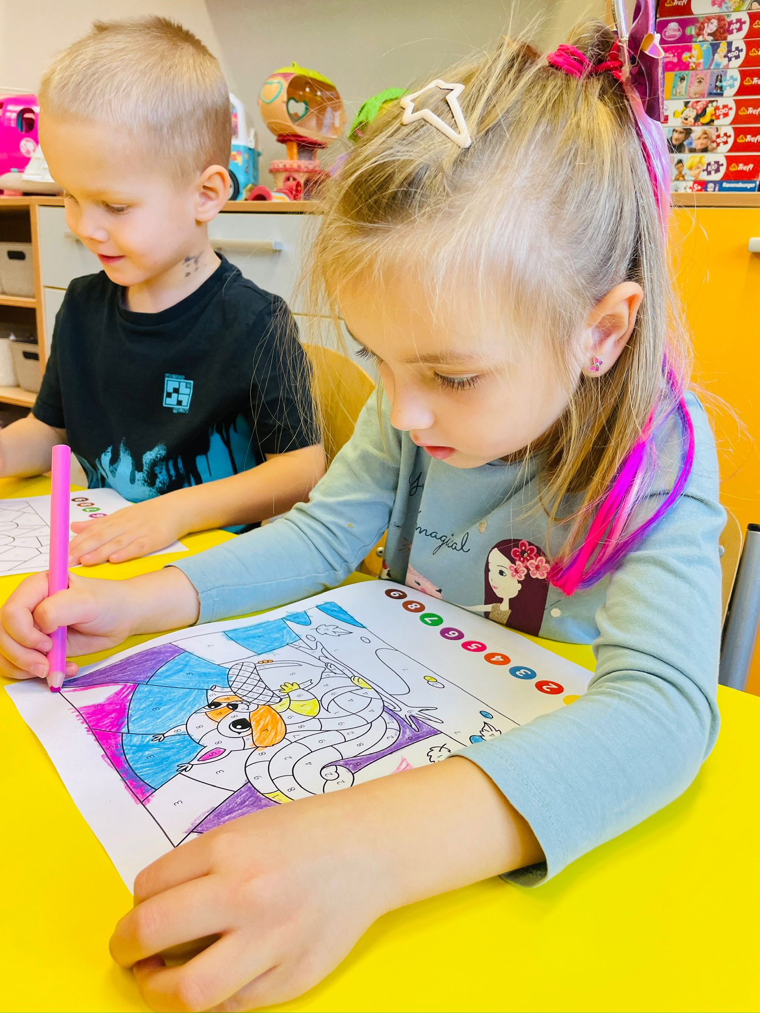 Już kolejny raz nasze dzieci uczestniczyły w różnorodnych działaniach rozwijających logiczne i kreatywne myślenie w ramach Europejskiego Tygodnia Kodowania CodeWeek. Podczas zajęć rozwiązywały szyfry na macie, planując sekwencje ruchów i kierunków. Udało nam się również wykorzystać tablicę interaktywną do rozwiązywania zagadek i łamigłówek, co nadało kodowaniu atrakcyjną cyfrową formę. Okazuje się nawet, że kodować można również twórczo- podczas kolorowania według określonego wzoru. Wszystkie nasze działania miały na celu rozwijanie umiejętności logicznego myślenia, współpracy w grupie, rozbudzanie ciekawości poznawczej oraz pokazanie, że kodowanie może być przyjemne, ciekawe i dostępne dla każdego dziecka.