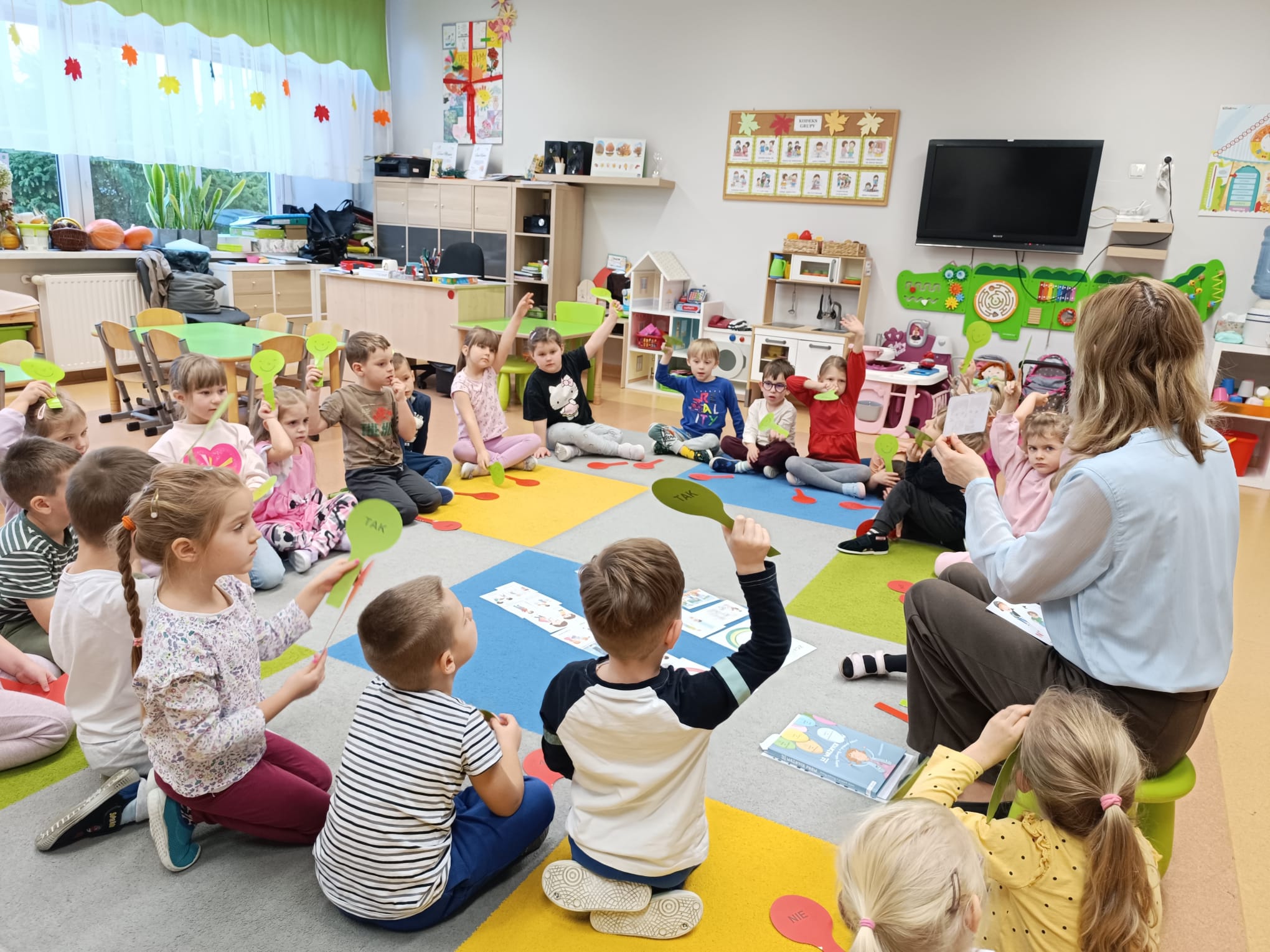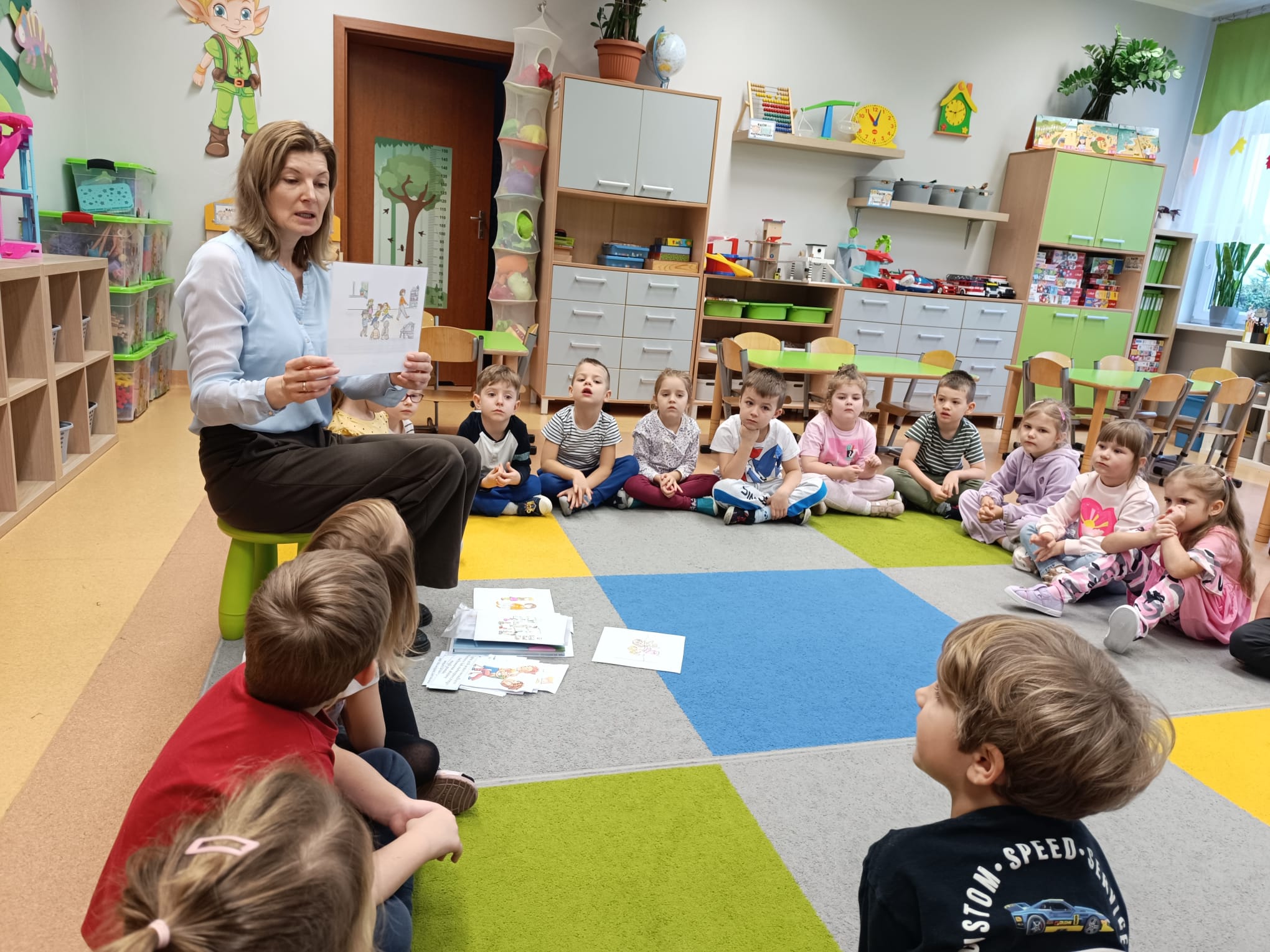 W dzisiejszym dniu dzieci z grupy XII uczestniczyły w zajęciach podczas których wysłuchały opowiadań z książki „12 ważnych praw – polscy autorzy o prawach dzieci” w ramach społecznej kampanii CPCD. Zajęcia, oparte na standardach ochrony małoletnich, pozwoliły dzieciom zrozumieć, jak reagować w sytuacjach niebezpiecznych oraz jak dbać o dobre relacje z rówieśnikami. Dzieci bardzo aktywnie uczestniczyły w zajęciach i chętnie dzieliły się swoimi doświadczeniami. Szczególnie dobrze zareagowały na historyjki, które pomogły im lepiej zrozumieć omawiane zasady. Na zakończenie zajęć dzieci wspólnie wykonały plakat, który zawierał najważniejsze zasady dotyczące ochrony małoletnich.