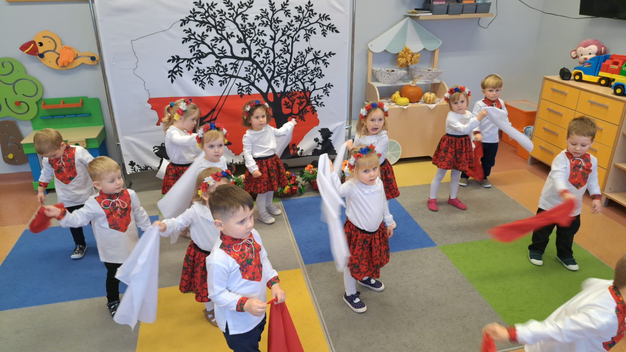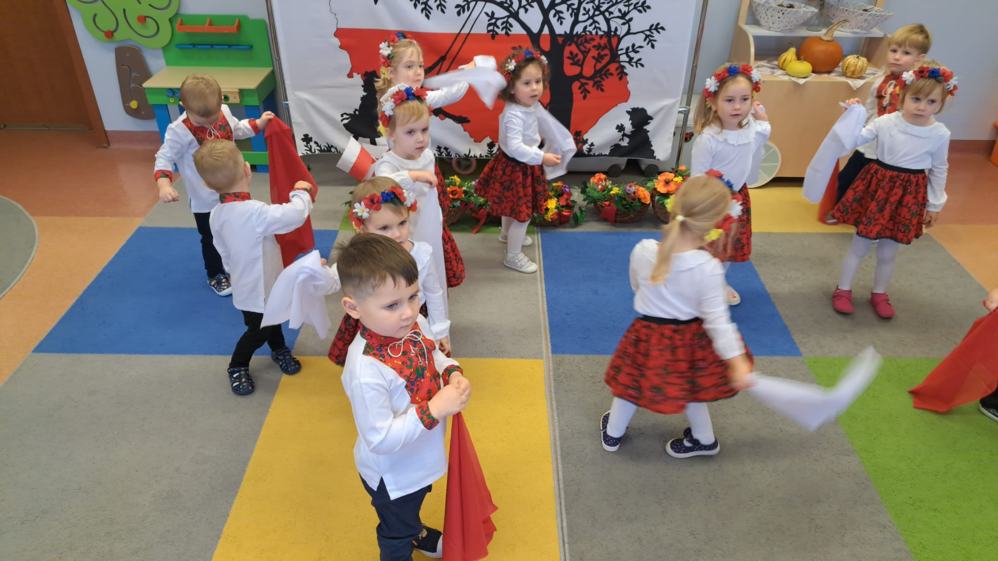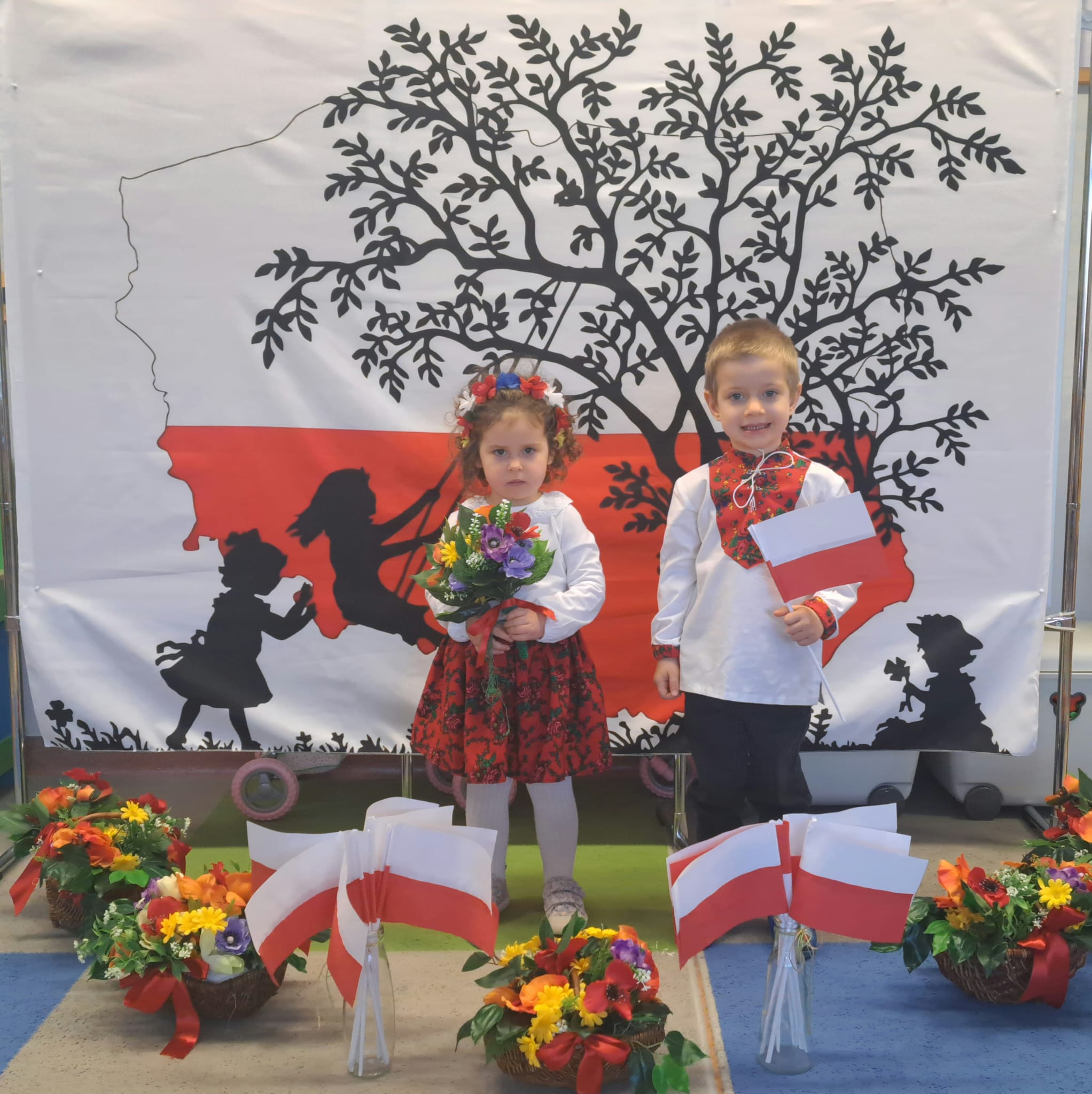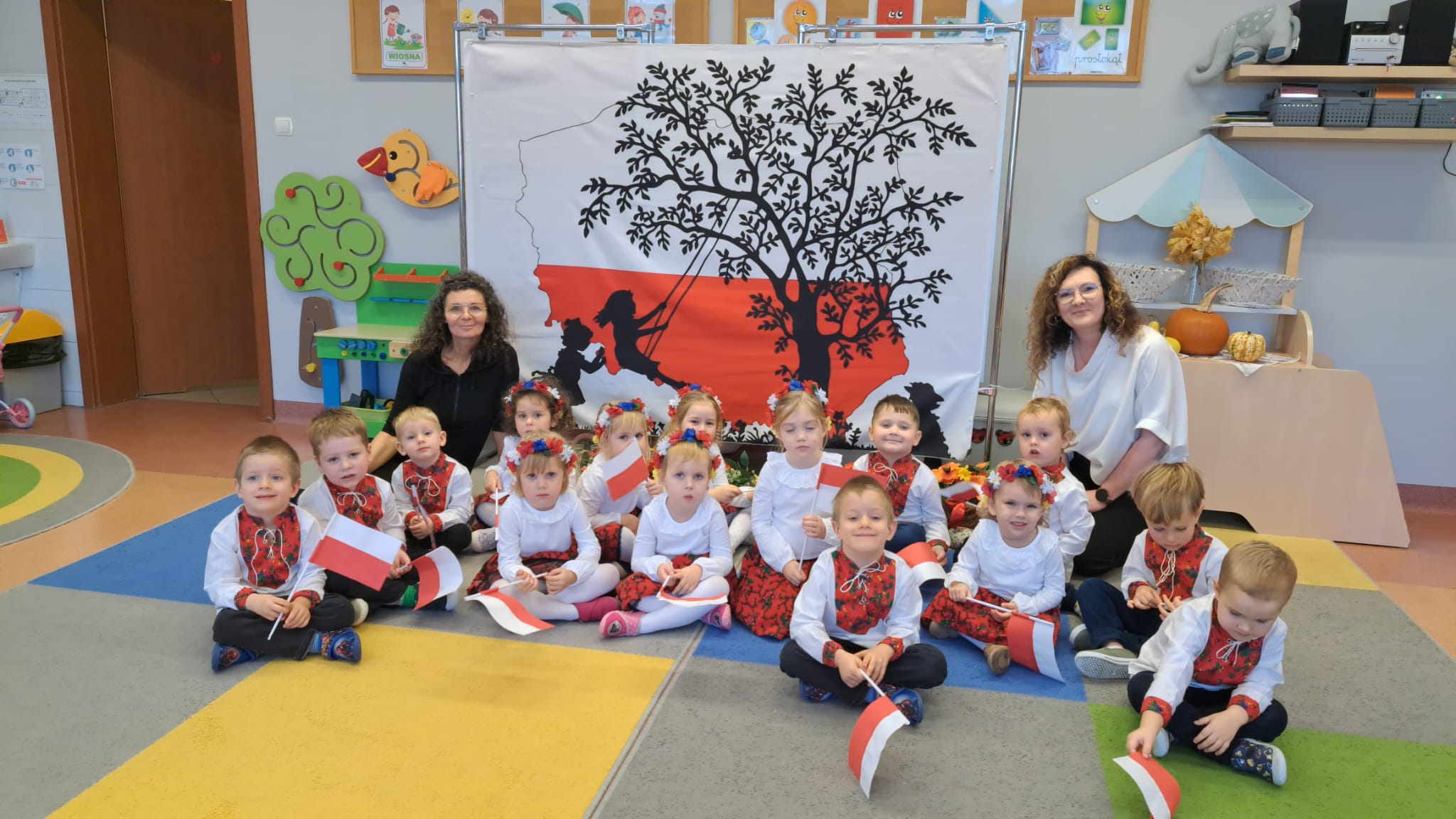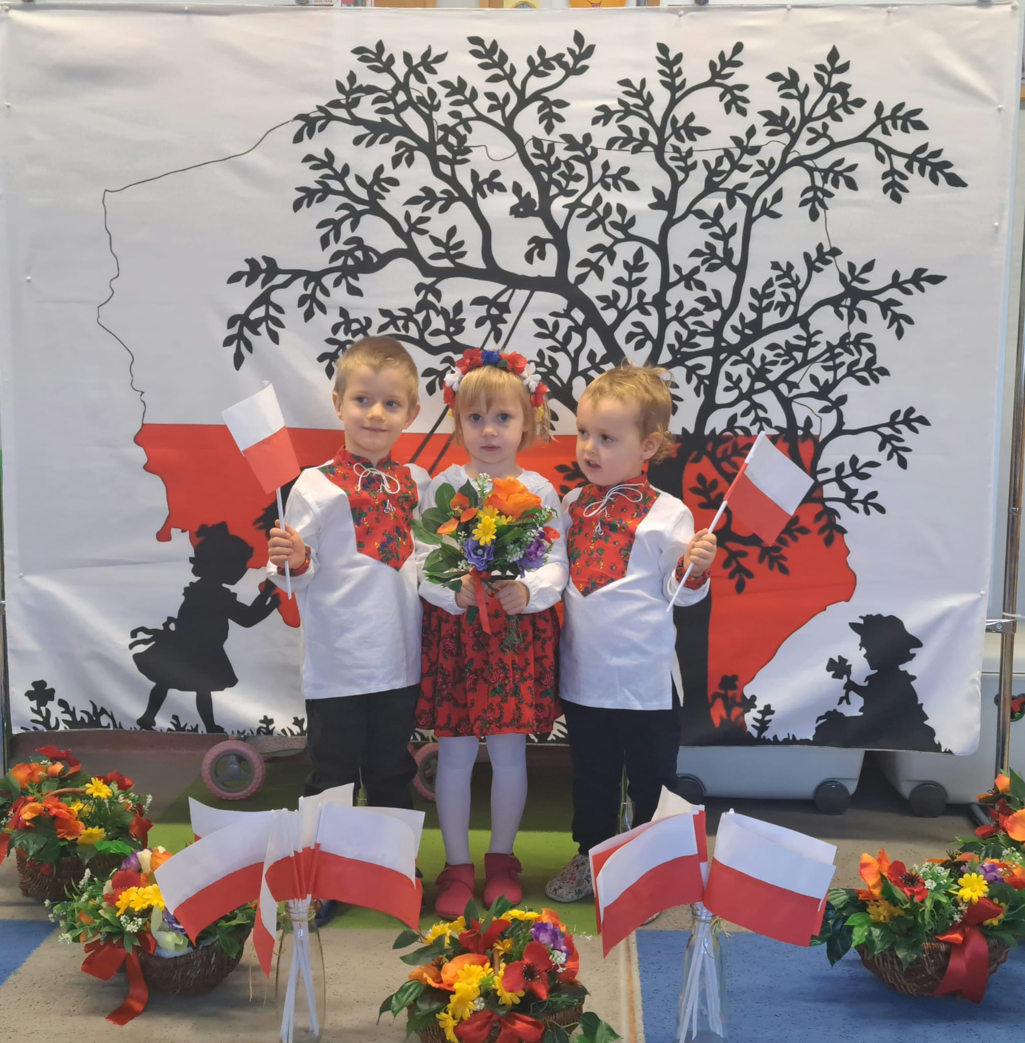 Listopad to jeden z tych miesięcy w roku, kiedy częściej niż zwykle myślimy o patriotyzmie, Ojczyźnie, polskiej historii. A to za sprawą 11 listopada - Święta Niepodległości, które obchodzimy w przedszkolu co roku dla upamiętnienia rocznicy odzyskania przez Polskę niepodległości w 1918 roku po 123 latach rozbiorów. To nadchodzące święto stało się doskonałą okazją, aby już od najmłodszych lat uczyć nasze dzieci patriotyzmu, dumy z tego, że są Polakami, szacunku do własnej Ojczyzny, do symboli narodowych. Dziś nasze maluszki przepięknie wystrojone z wielkim przejęciem i radością po raz pierwszy uroczyście świętowały ten wyjątkowy dla Nas – Polaków dzień…