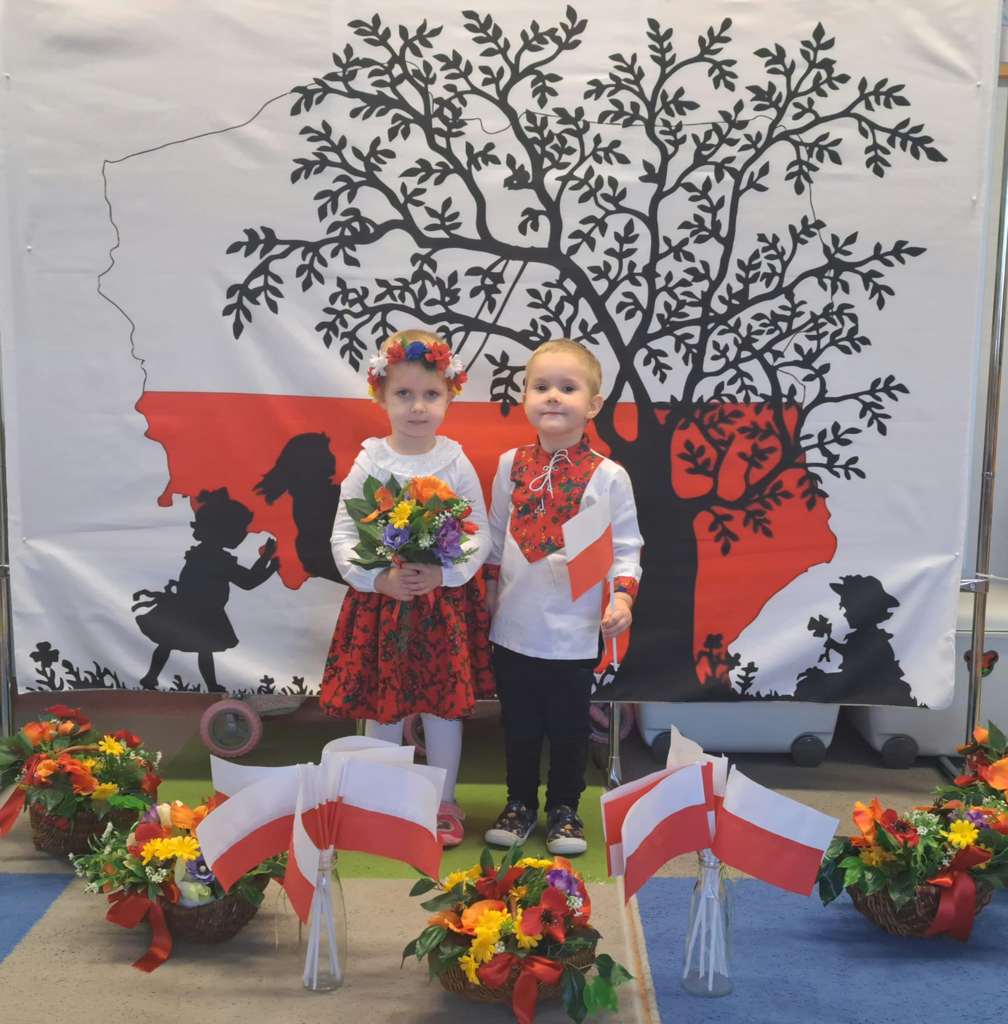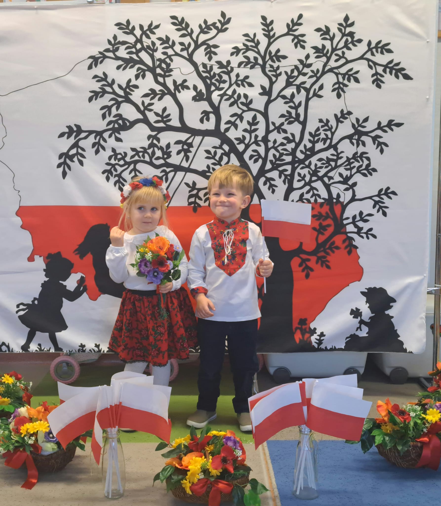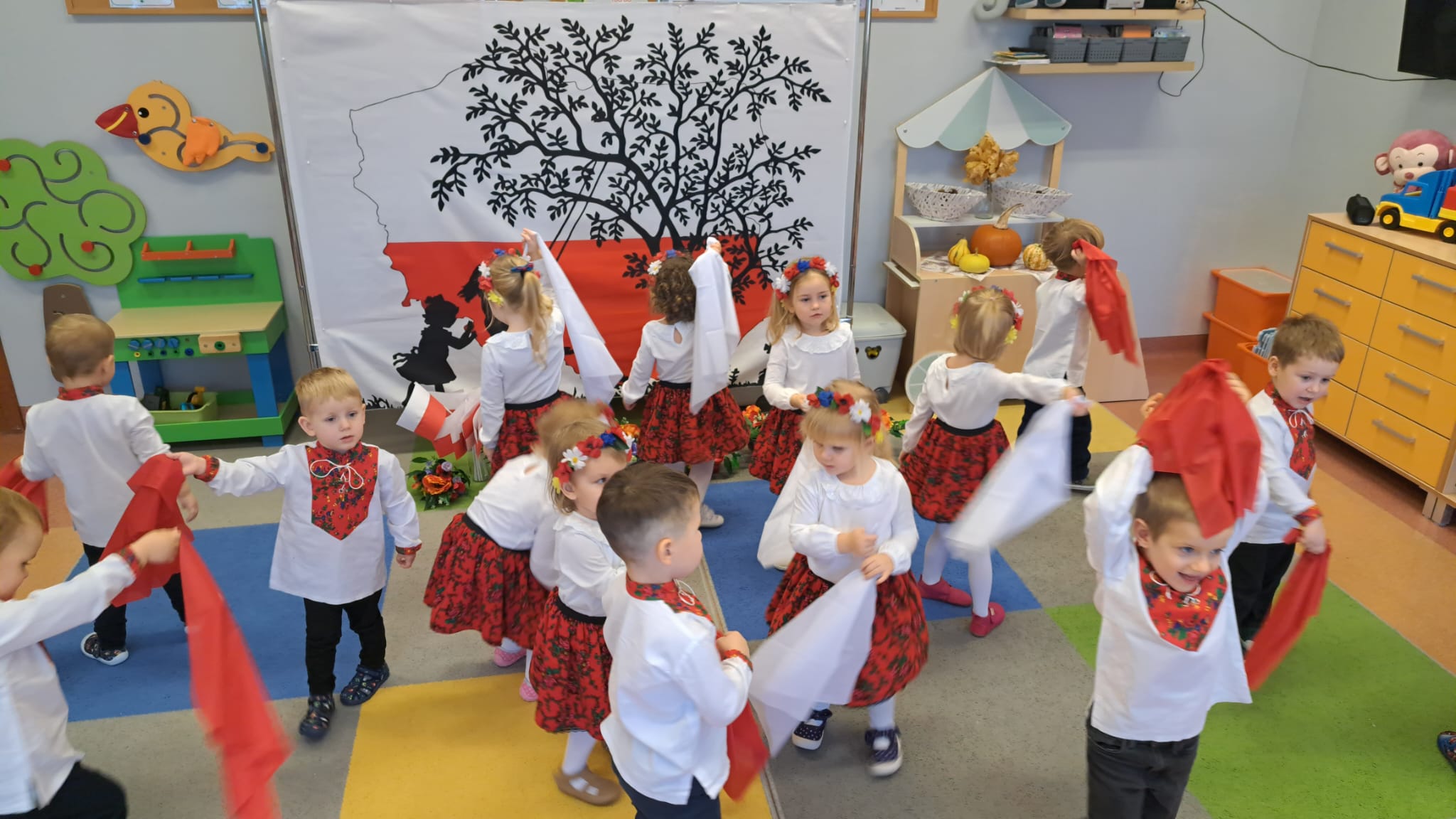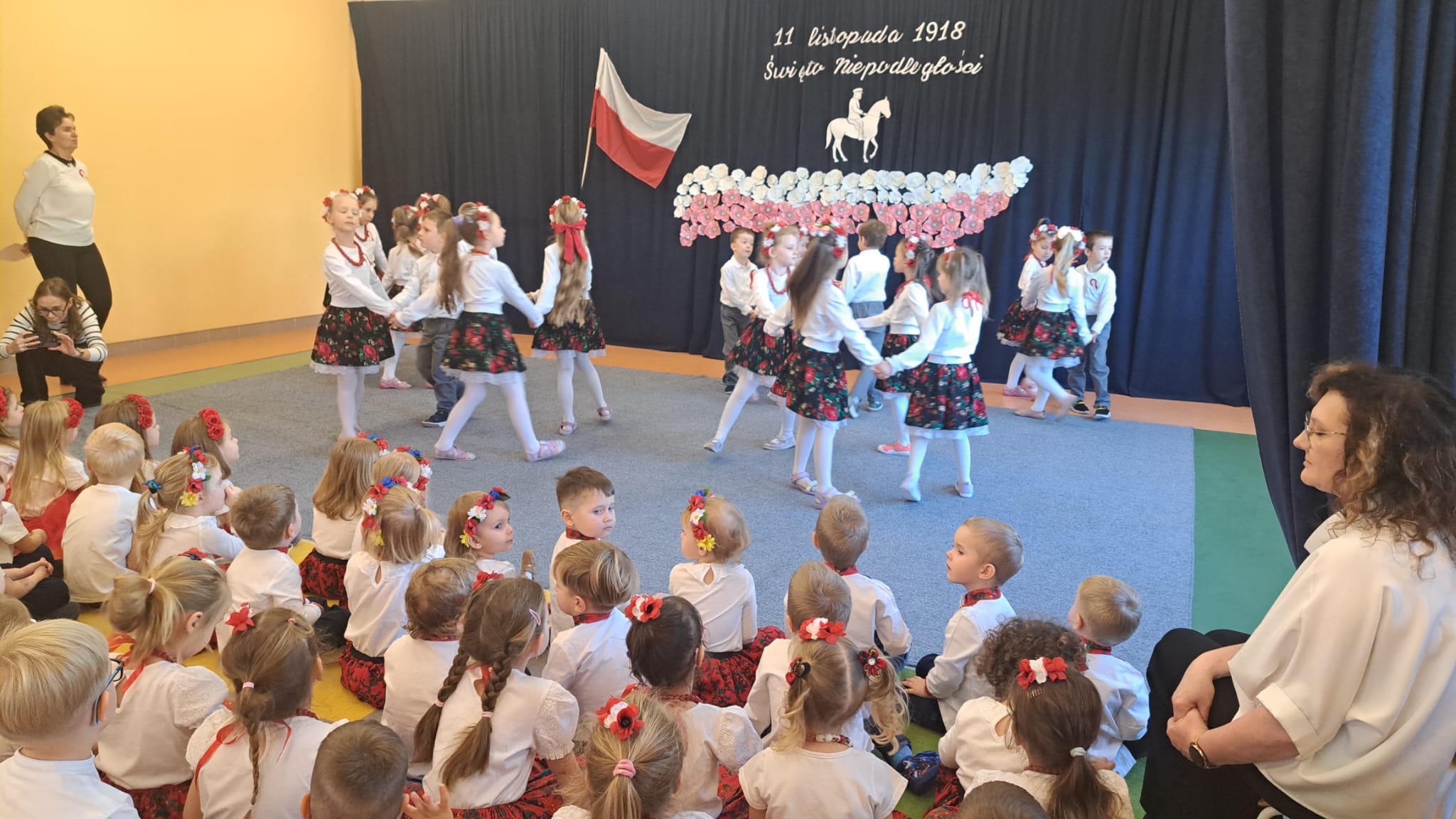 Listopad to jeden z tych miesięcy w roku, kiedy częściej niż zwykle myślimy o patriotyzmie, Ojczyźnie, polskiej historii. A to za sprawą 11 listopada - Święta Niepodległości, które obchodzimy w przedszkolu co roku dla upamiętnienia rocznicy odzyskania przez Polskę niepodległości w 1918 roku po 123 latach rozbiorów. To nadchodzące święto stało się doskonałą okazją, aby już od najmłodszych lat uczyć nasze dzieci patriotyzmu, dumy z tego, że są Polakami, szacunku do własnej Ojczyzny, do symboli narodowych. Dziś nasze maluszki przepięknie wystrojone z wielkim przejęciem i radością po raz pierwszy uroczyście świętowały ten wyjątkowy dla Nas – Polaków dzień…