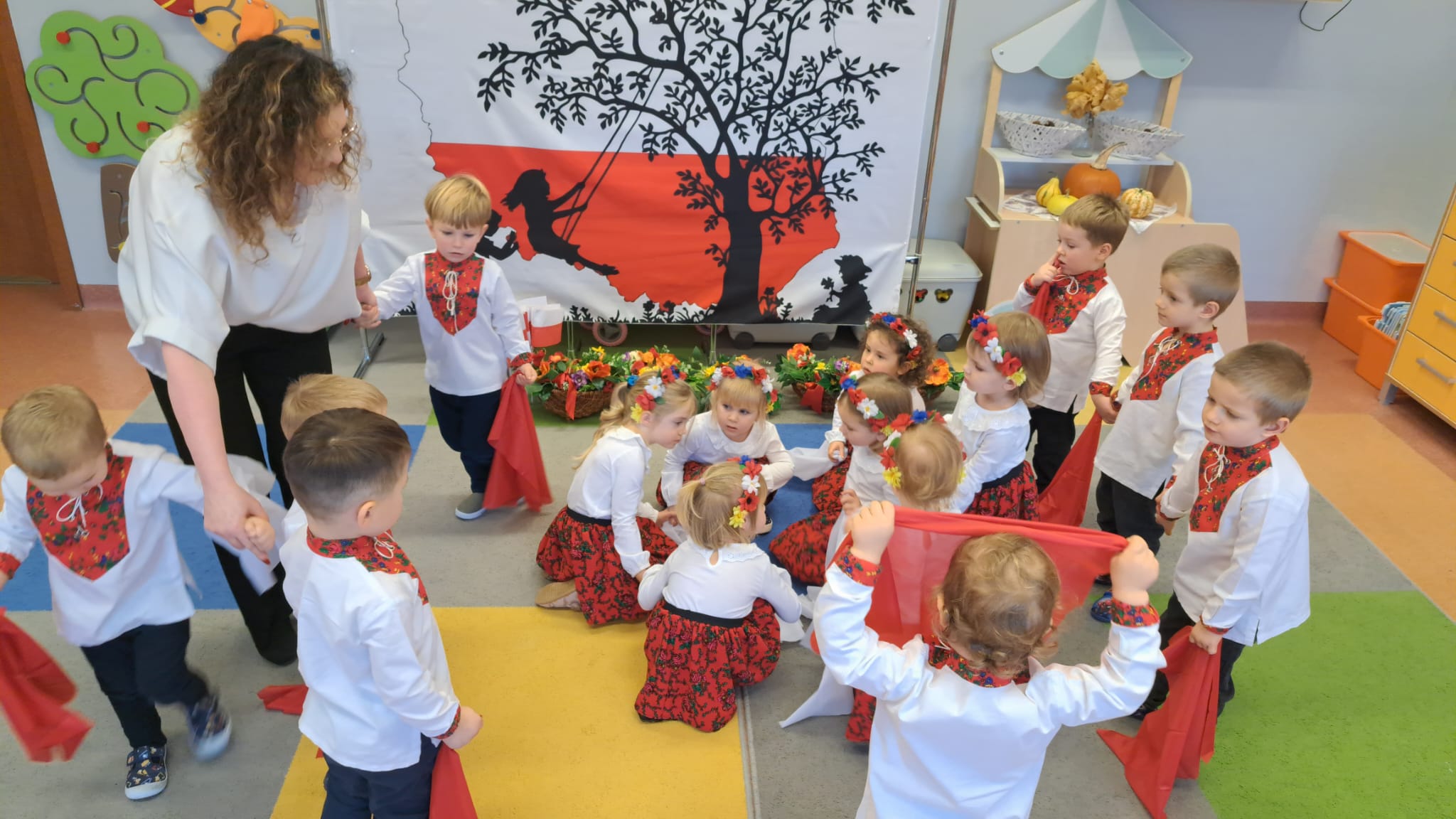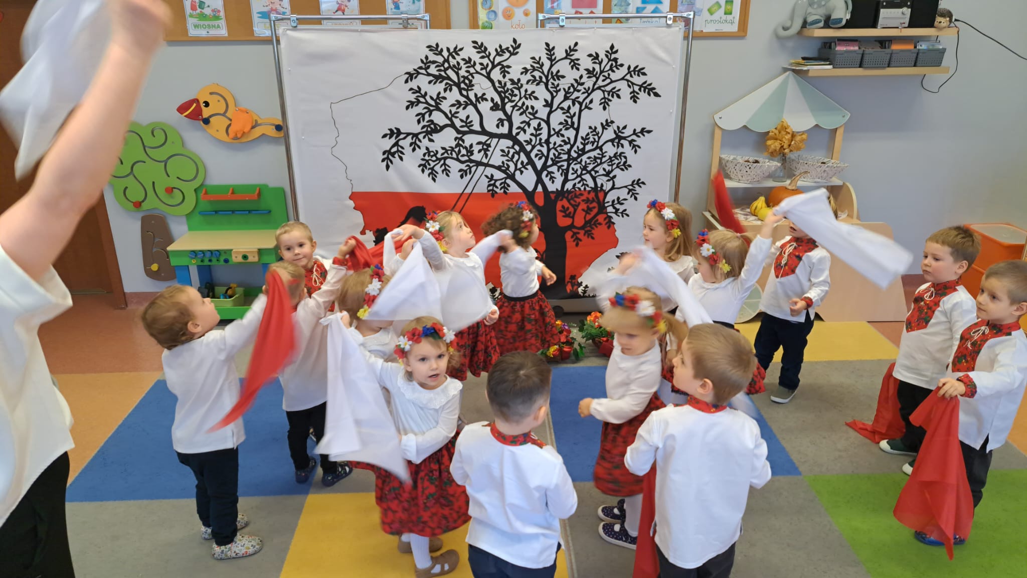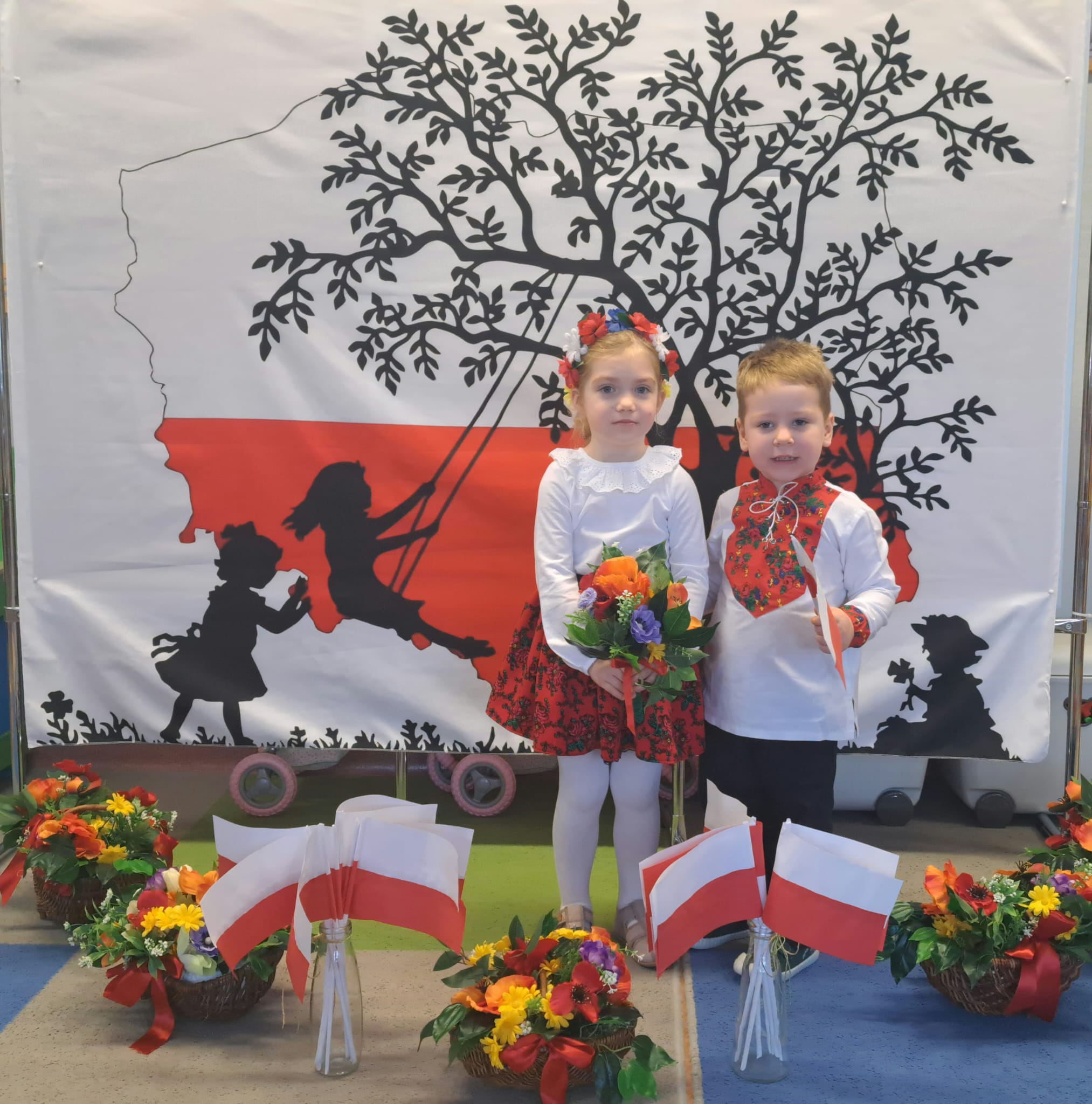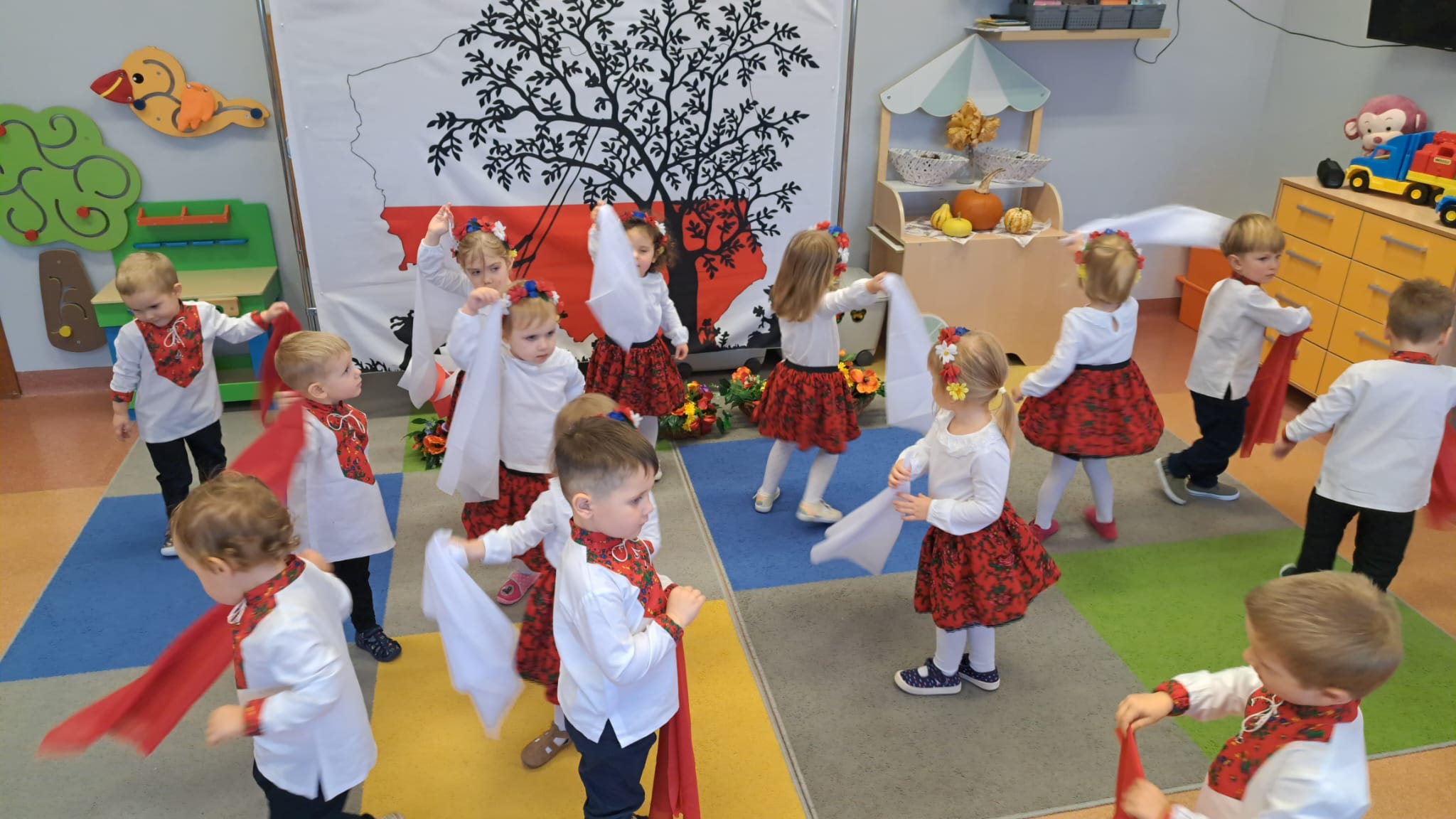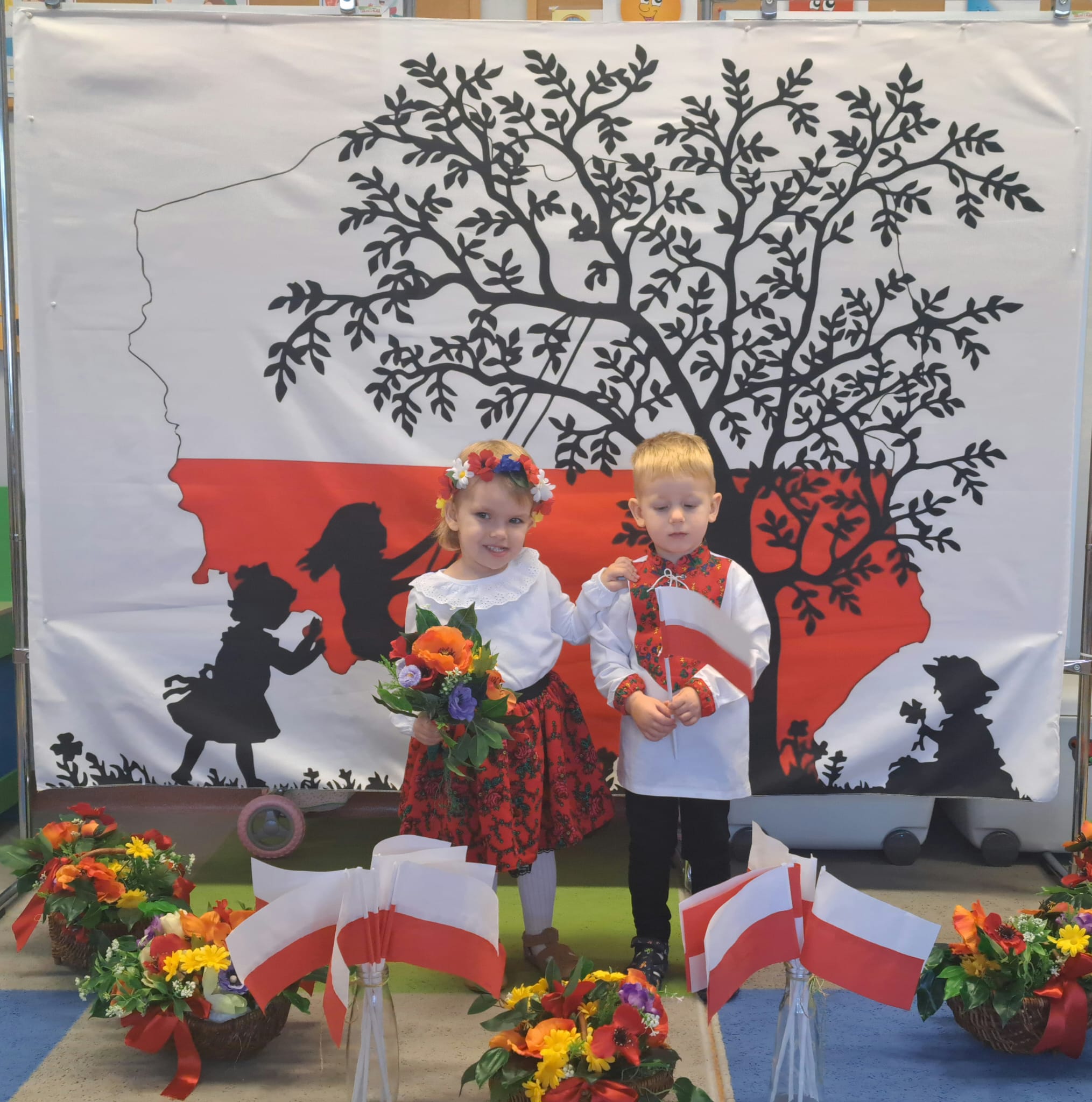 Listopad to jeden z tych miesięcy w roku, kiedy częściej niż zwykle myślimy o patriotyzmie, Ojczyźnie, polskiej historii. A to za sprawą 11 listopada - Święta Niepodległości, które obchodzimy w przedszkolu co roku dla upamiętnienia rocznicy odzyskania przez Polskę niepodległości w 1918 roku po 123 latach rozbiorów. To nadchodzące święto stało się doskonałą okazją, aby już od najmłodszych lat uczyć nasze dzieci patriotyzmu, dumy z tego, że są Polakami, szacunku do własnej Ojczyzny, do symboli narodowych. Dziś nasze maluszki przepięknie wystrojone z wielkim przejęciem i radością po raz pierwszy uroczyście świętowały ten wyjątkowy dla Nas – Polaków dzień…