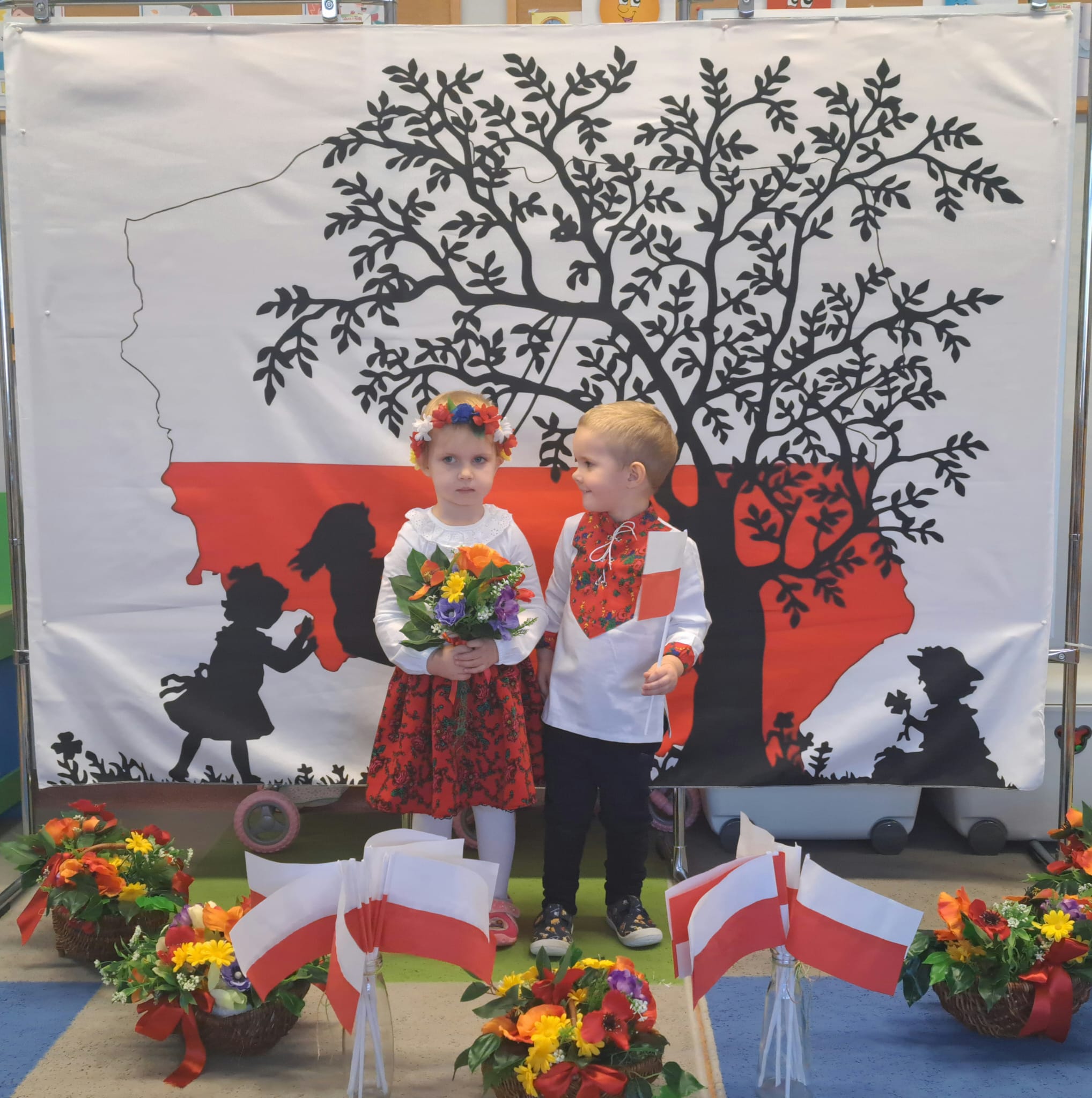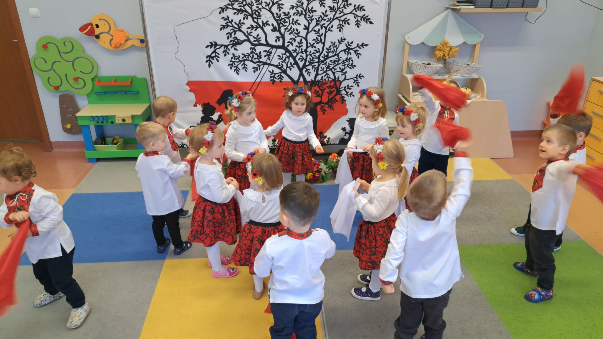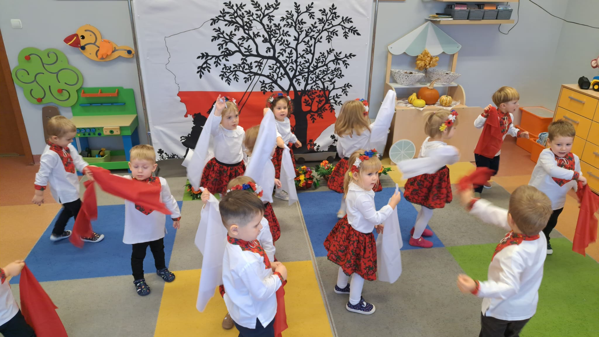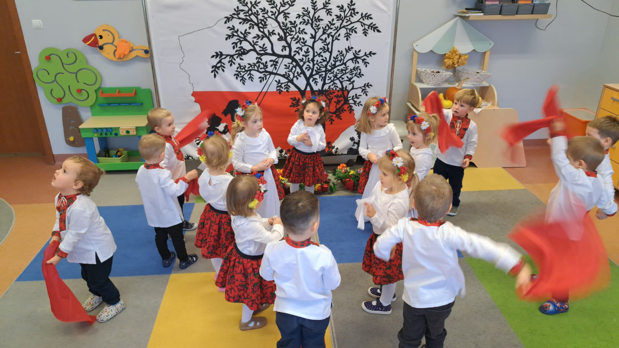 Listopad to jeden z tych miesięcy w roku, kiedy częściej niż zwykle myślimy o patriotyzmie, Ojczyźnie, polskiej historii. A to za sprawą 11 listopada - Święta Niepodległości, które obchodzimy w przedszkolu co roku dla upamiętnienia rocznicy odzyskania przez Polskę niepodległości w 1918 roku po 123 latach rozbiorów. To nadchodzące święto stało się doskonałą okazją, aby już od najmłodszych lat uczyć nasze dzieci patriotyzmu, dumy z tego, że są Polakami, szacunku do własnej Ojczyzny, do symboli narodowych. Dziś nasze maluszki przepięknie wystrojone z wielkim przejęciem i radością po raz pierwszy uroczyście świętowały ten wyjątkowy dla Nas – Polaków dzień…