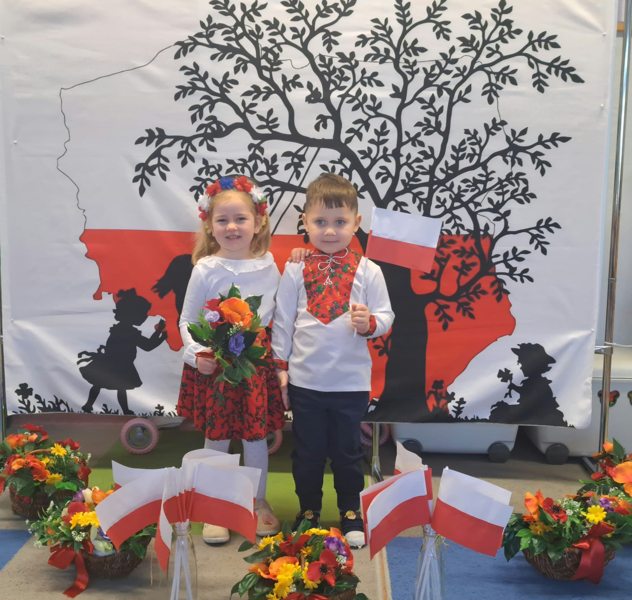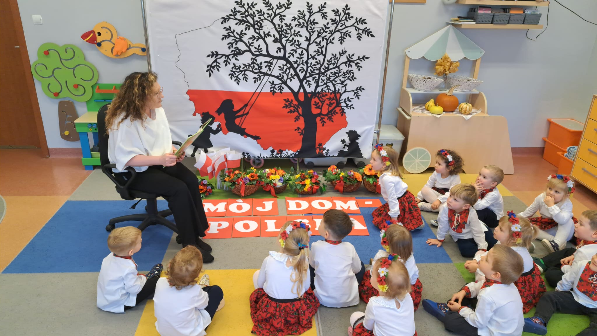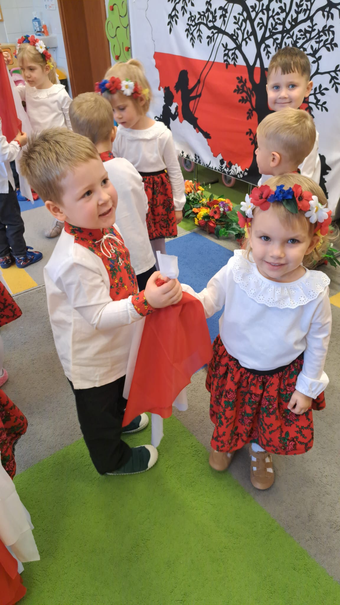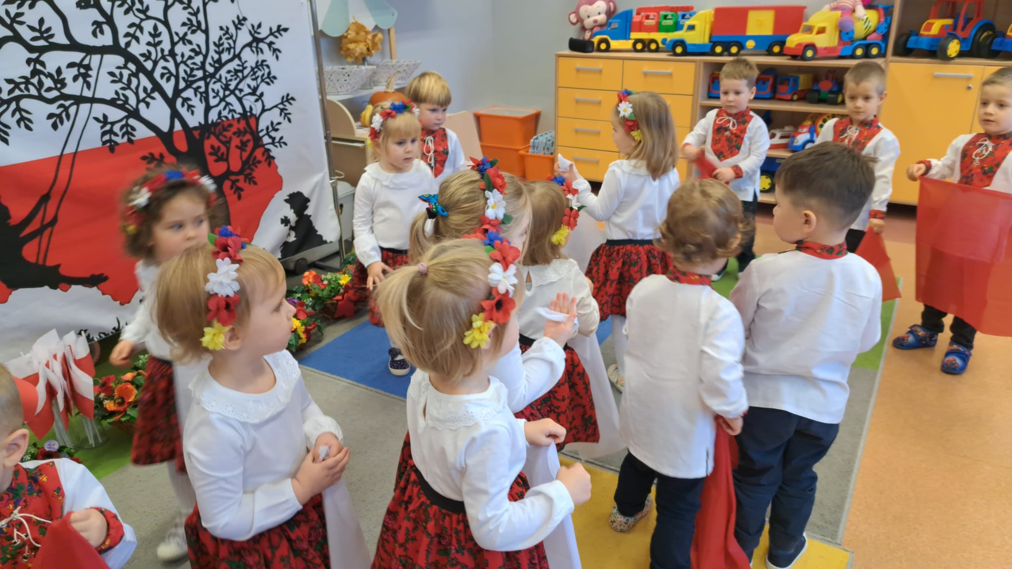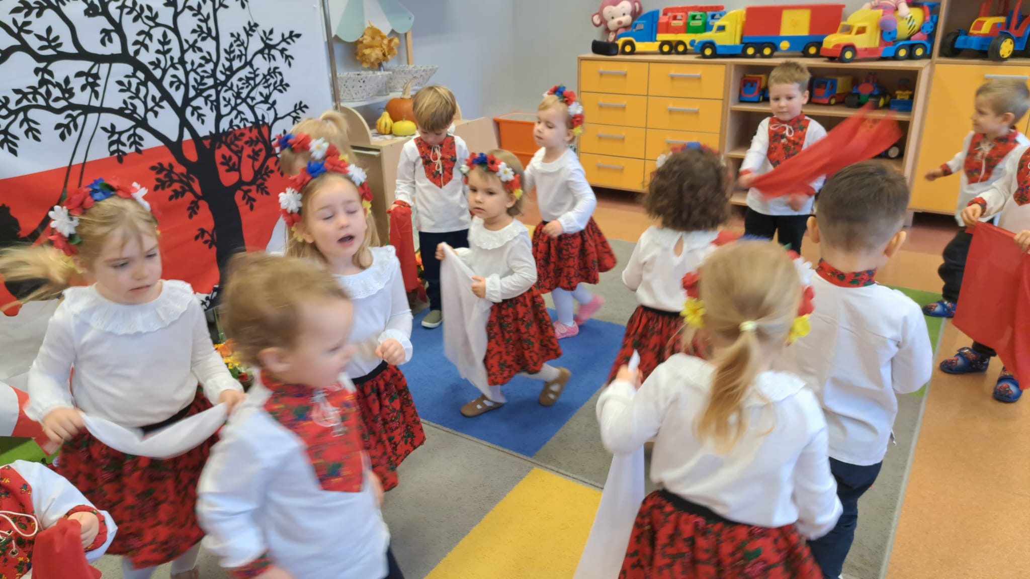 Listopad to jeden z tych miesięcy w roku, kiedy częściej niż zwykle myślimy o patriotyzmie, Ojczyźnie, polskiej historii. A to za sprawą 11 listopada - Święta Niepodległości, które obchodzimy w przedszkolu co roku dla upamiętnienia rocznicy odzyskania przez Polskę niepodległości w 1918 roku po 123 latach rozbiorów. To nadchodzące święto stało się doskonałą okazją, aby już od najmłodszych lat uczyć nasze dzieci patriotyzmu, dumy z tego, że są Polakami, szacunku do własnej Ojczyzny, do symboli narodowych. Dziś nasze maluszki przepięknie wystrojone z wielkim przejęciem i radością po raz pierwszy uroczyście świętowały ten wyjątkowy dla Nas – Polaków dzień…