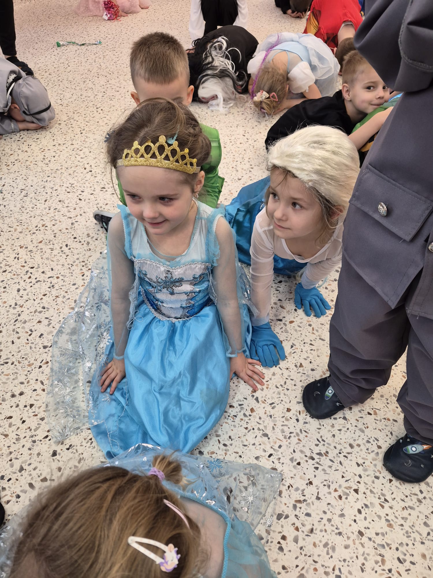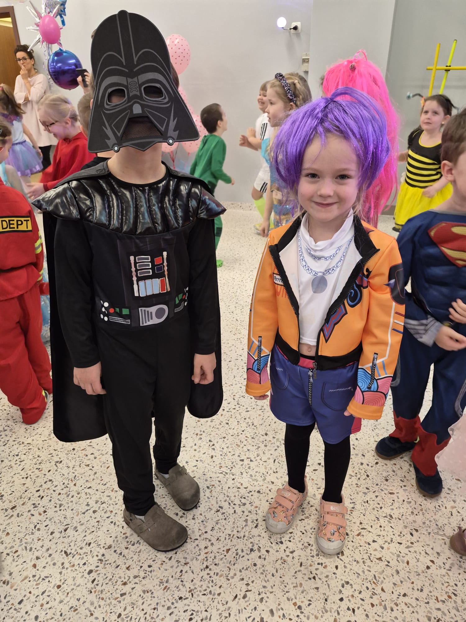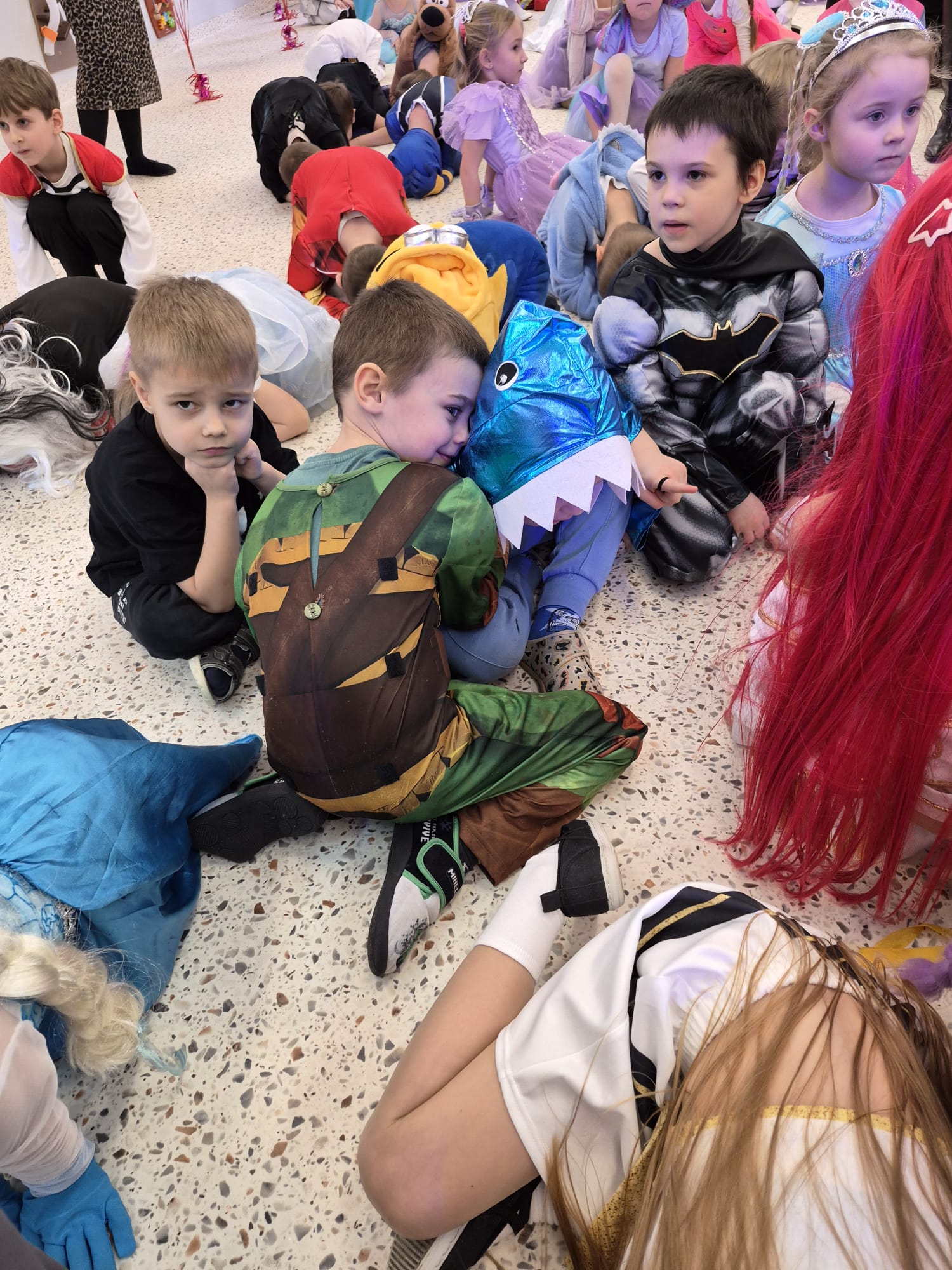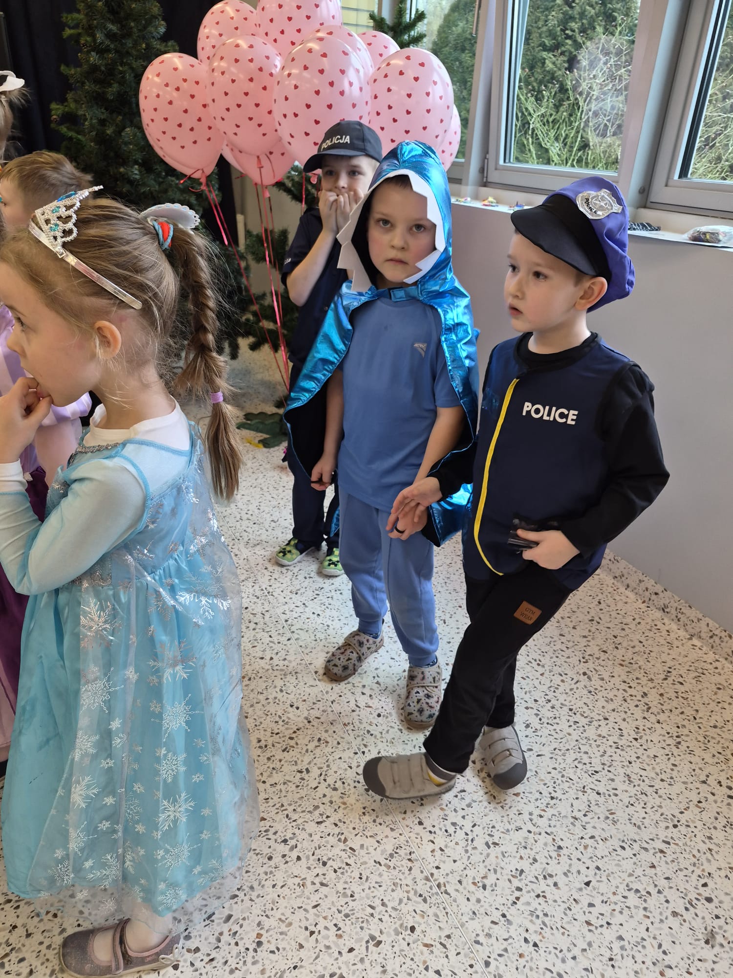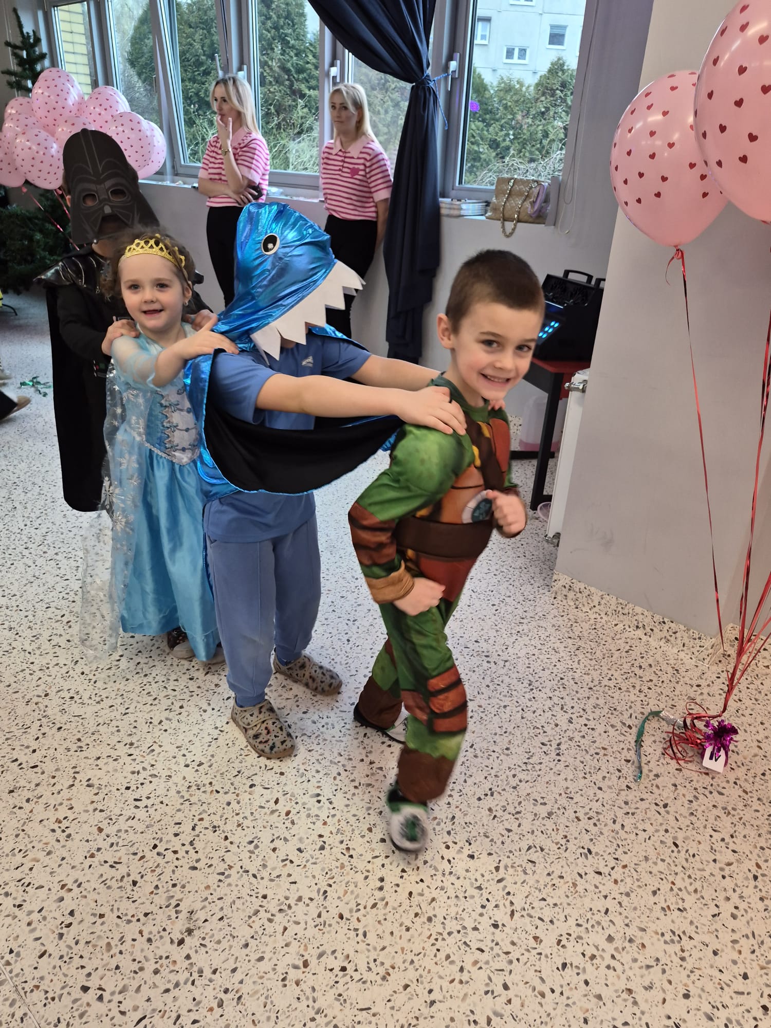 Tego dnia przedszkolna sala gimnastyczna zamieniła się w barwną, pełną karnawałowych dekoracji przestrzeń. Dzieci przyszły w przepięknych, pomysłowych strojach – można było spotkać księżniczki, policjantów, superbohaterów, zwierzątka oraz wiele bajkowych postaci. Wspólne tańce przy muzyce, zabawy integracyjne oraz konkursy sprawiły, że atmosfera była niezwykle radosna i pełna energii.