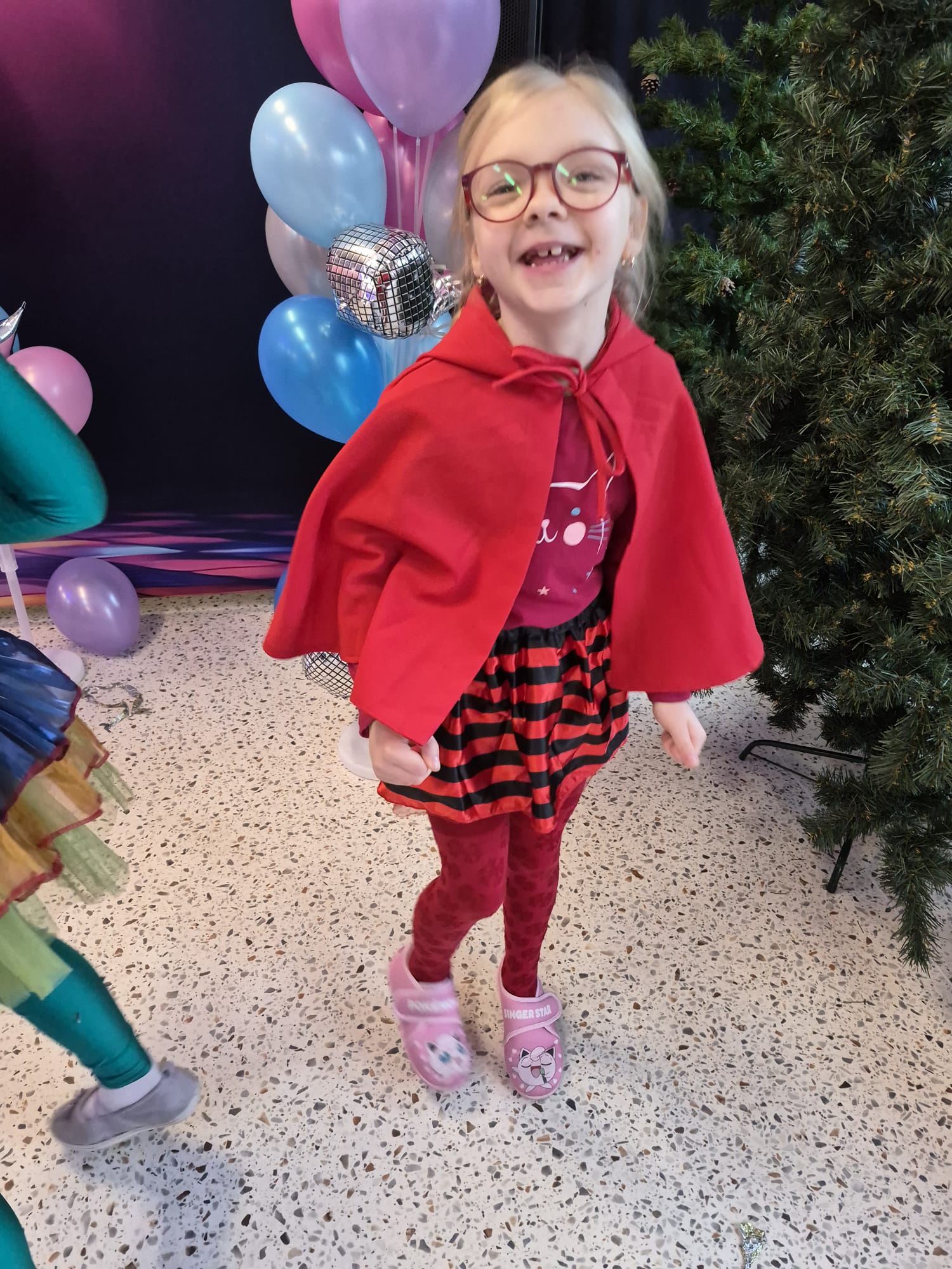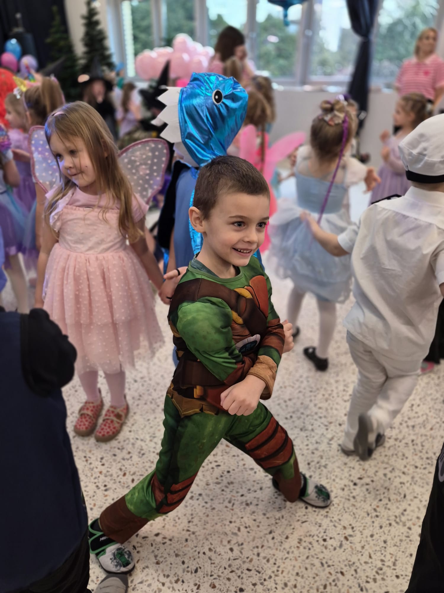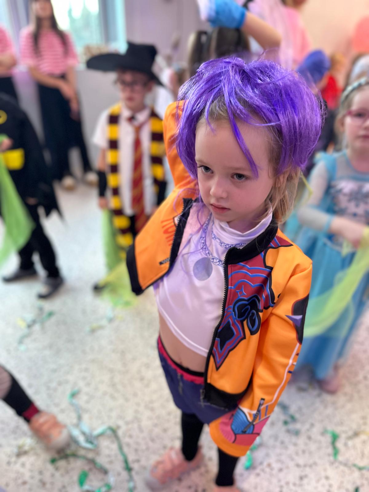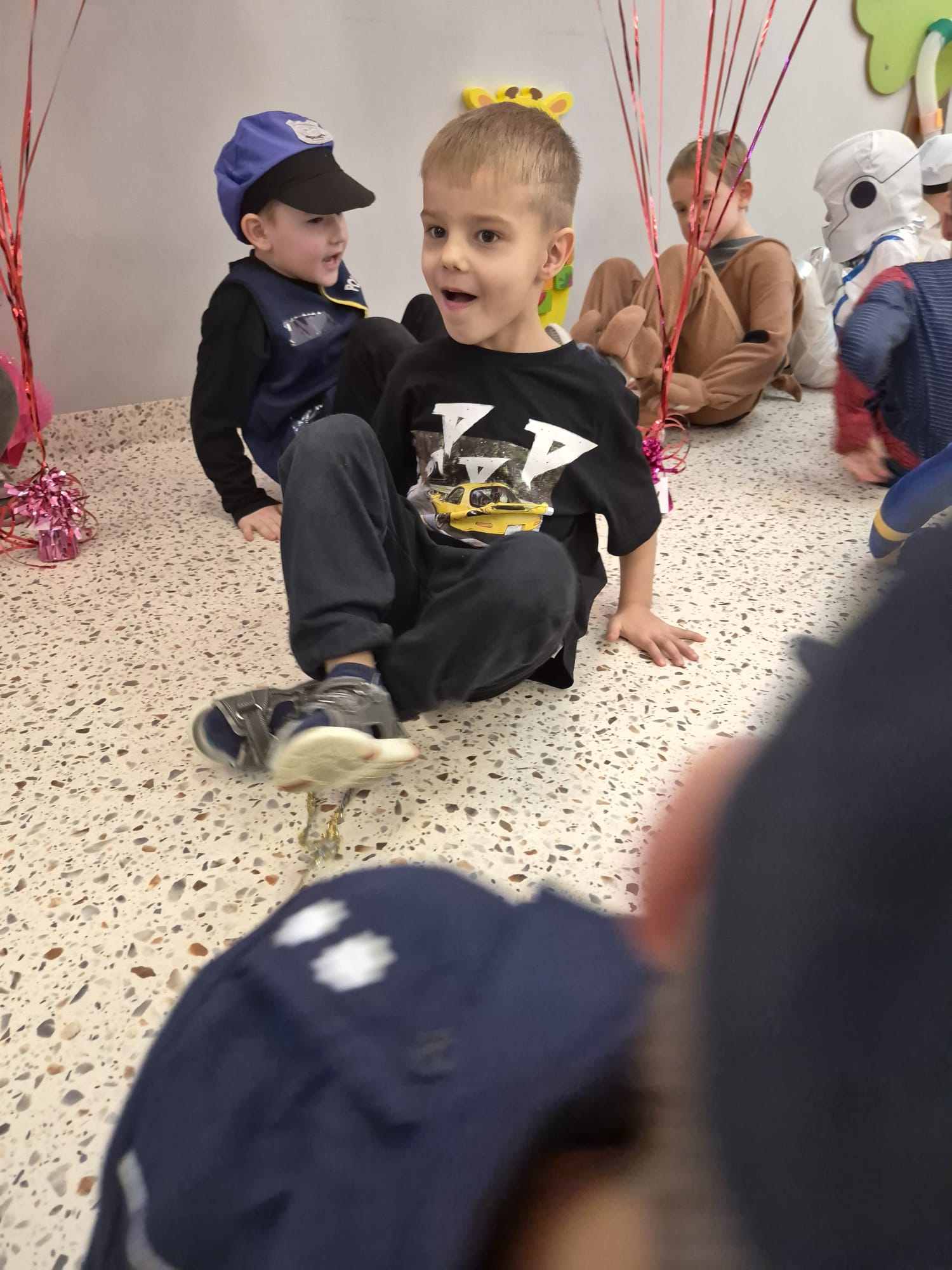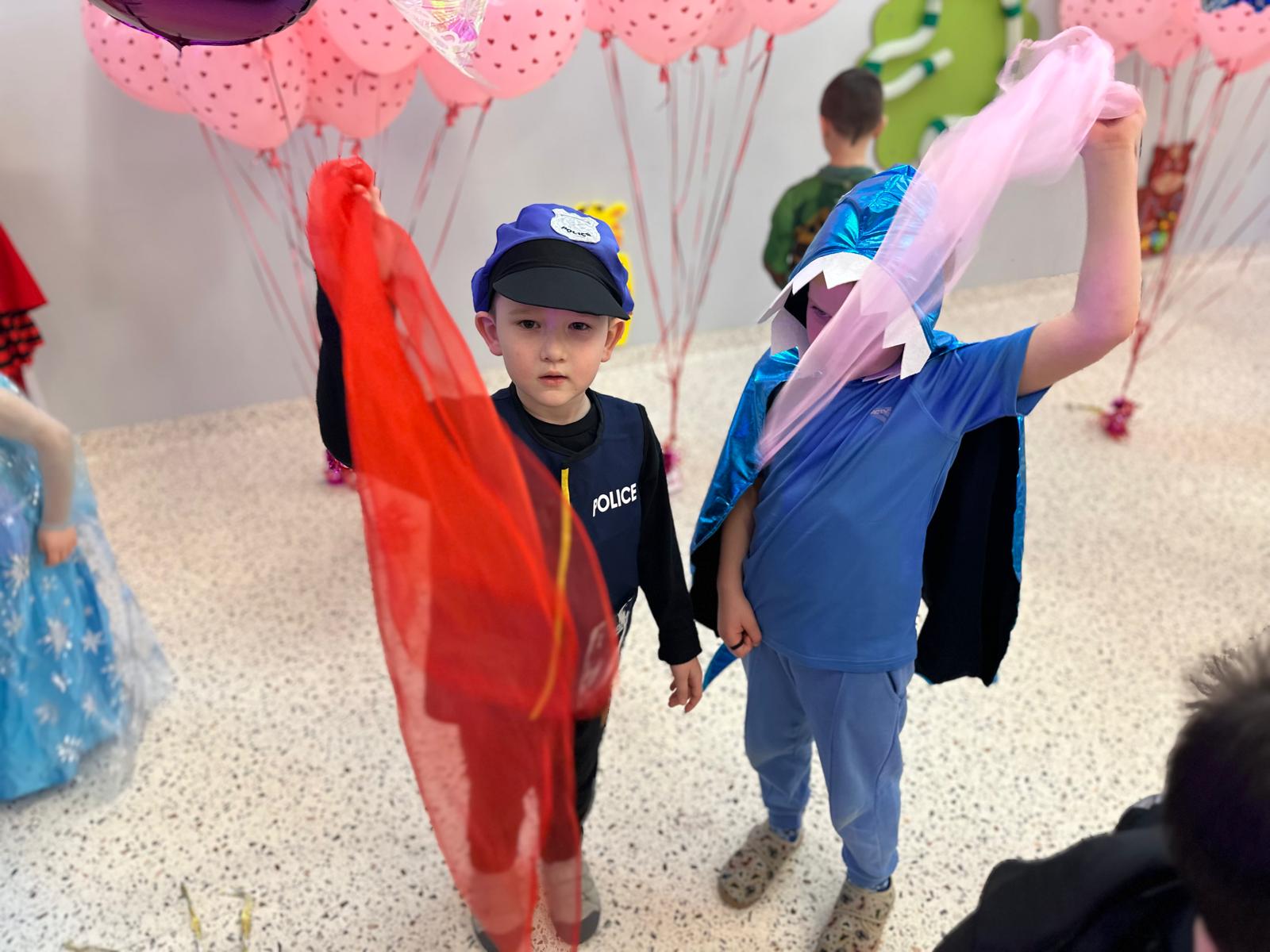 Tego dnia przedszkolna sala gimnastyczna zamieniła się w barwną, pełną karnawałowych dekoracji przestrzeń. Dzieci przyszły w przepięknych, pomysłowych strojach – można było spotkać księżniczki, policjantów, superbohaterów, zwierzątka oraz wiele bajkowych postaci. Wspólne tańce przy muzyce, zabawy integracyjne oraz konkursy sprawiły, że atmosfera była niezwykle radosna i pełna energii.