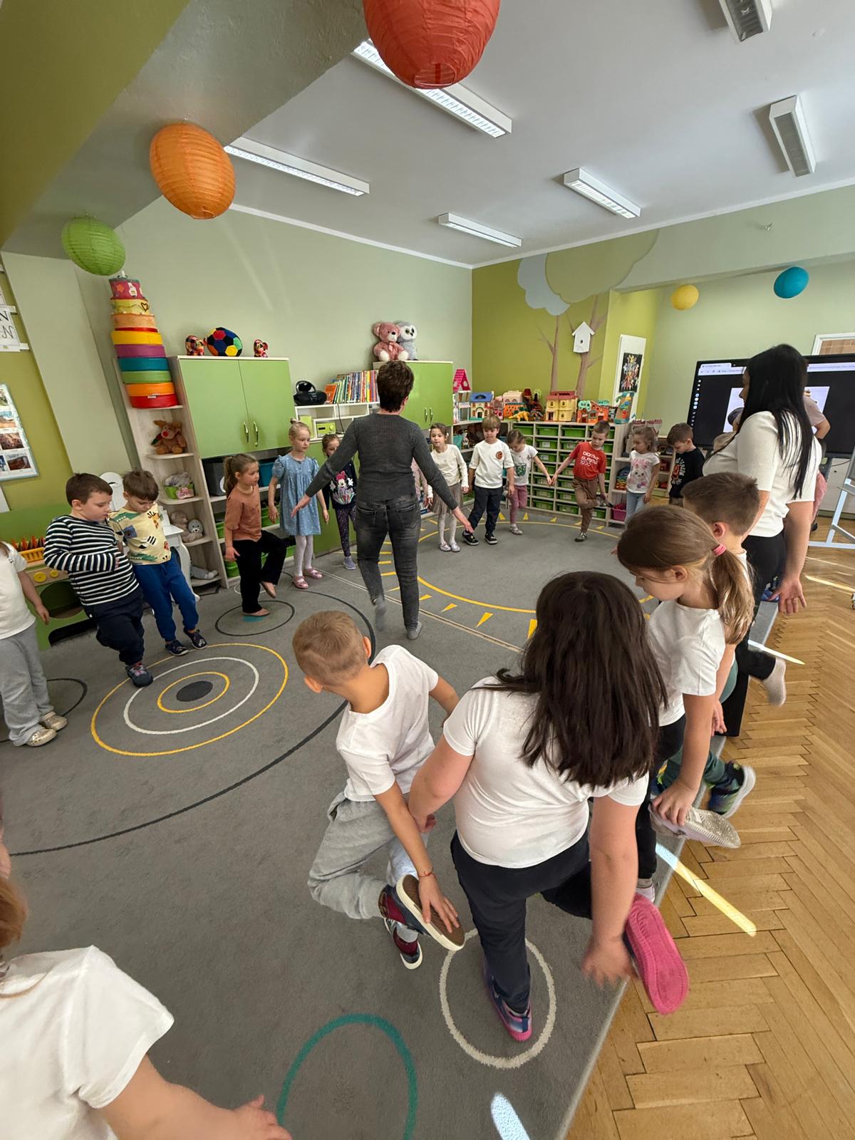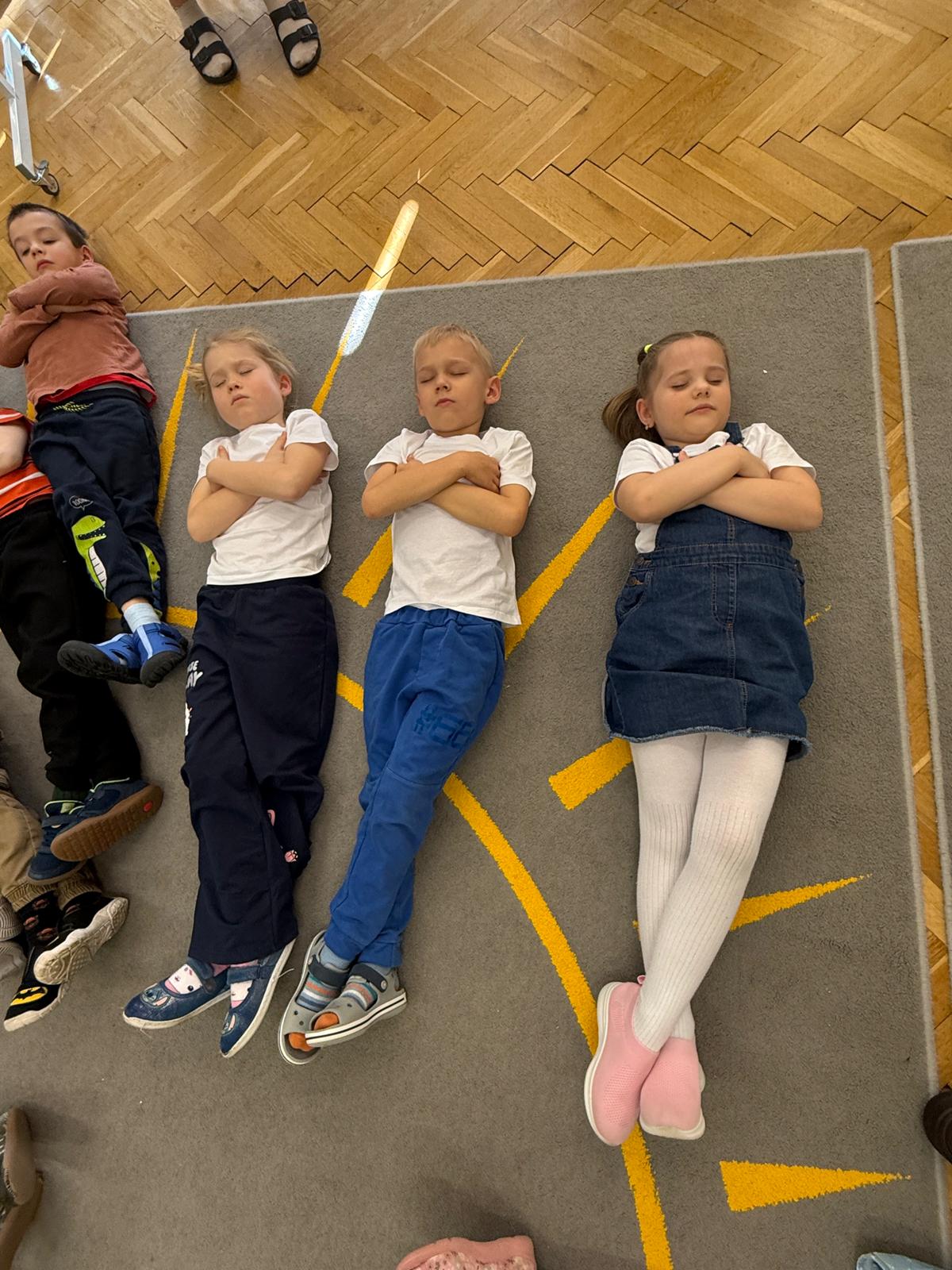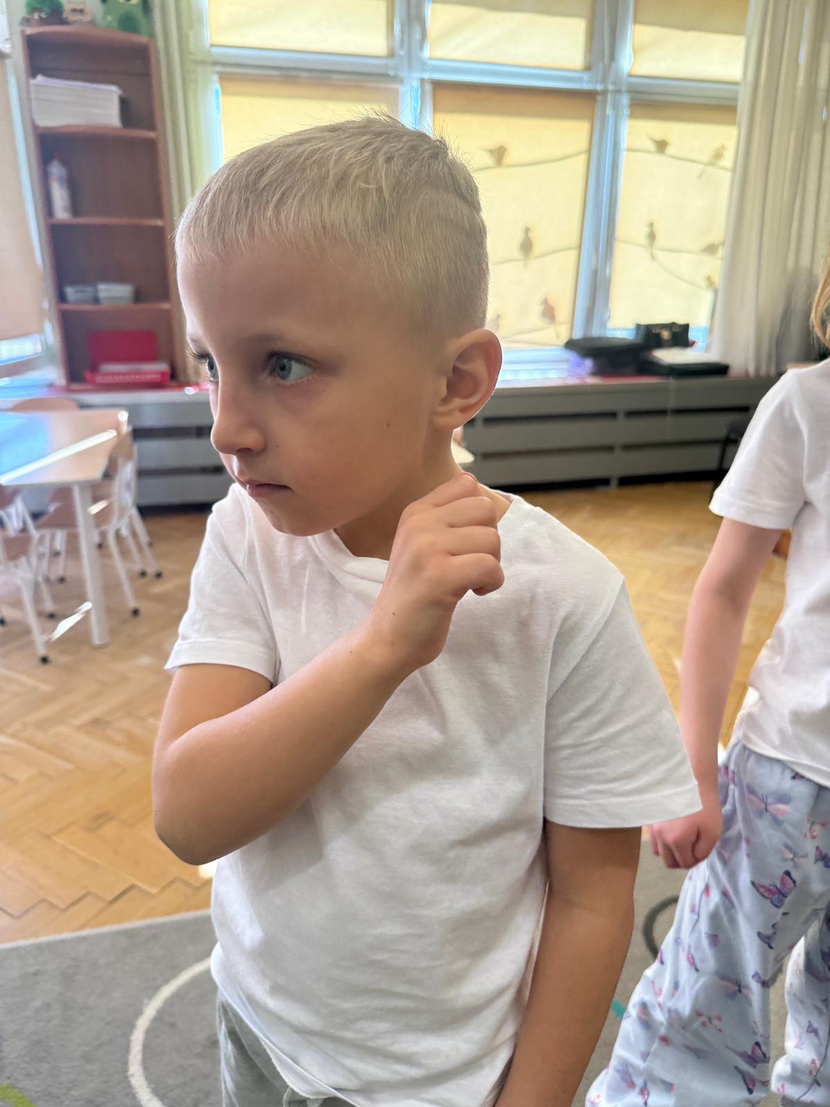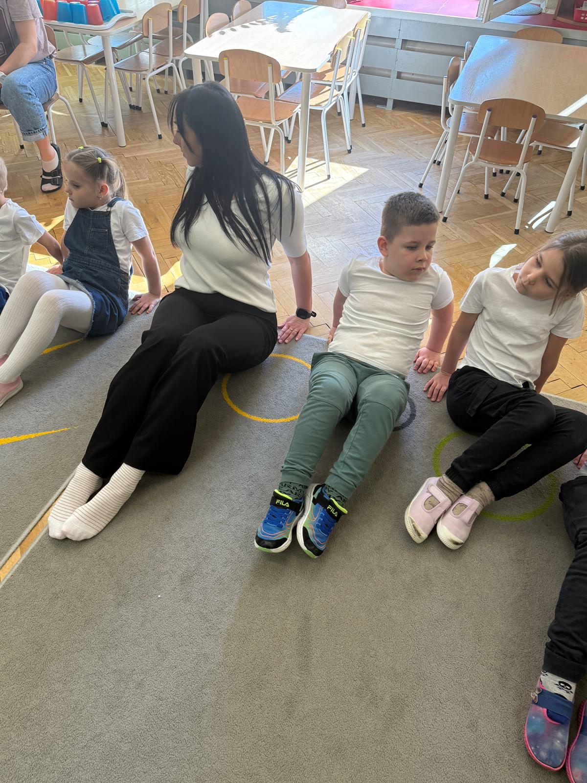 W grupie IV i VI odbyły się zajęcia koleżeńskie oparte na metodzie Kinezjologii Edukacyjnej, inaczej zwanej Gimnastyki Mózgu, opracowanej przez Paula Dennisona. Głównym celem tej metody jest: wspieranie integracji pracy obu półkul mózgowych; poprawa koncentracji i uwagi dzieci; rozwijanie koordynacji wzrokowo-ruchowej; usprawnianie motoryki dużej i małej; redukowanie napięcia i stresu u dzieci; wspieranie procesów uczenia się (czytania, pisania, liczenia); rozwijanie orientacji w schemacie własnego ciała. Zajęcia rozpoczęły się od krótkiego wprowadzenia i rozmowy z dziećmi o tym, dlaczego ruch jest ważny dla naszego mózgu. Następnie dzieci wykonywały serię prostych ćwiczeń ruchowych charakterystycznych dla gimnastyki mózgu. Wśród nich znalazły się m.in. ruchy naprzemienne, leniwe ósemki, ćwiczenie „słoń", punkty na myślenie czy pozycja Cooka. Zajęcia miały formę zabawy ruchowej, dzięki czemu dzieci chętnie i aktywnie w nich uczestniczyły zwracając szczególną uwagę na oddech, koncentrację oraz płynność ruchów. Ćwiczenia sprawiły dzieciom wiele radości, a jednocześnie przyniosły pozytywne efekty: pomogły im się wyciszyć, lepiej skupić uwagę i rozwinąć sprawność ruchową. Zajęcia pokazały, że proste ćwiczenia ruchowe mogą w ciekawy sposób wspierać rozwój dziecka i przygotowywać je do dalszej nauki.