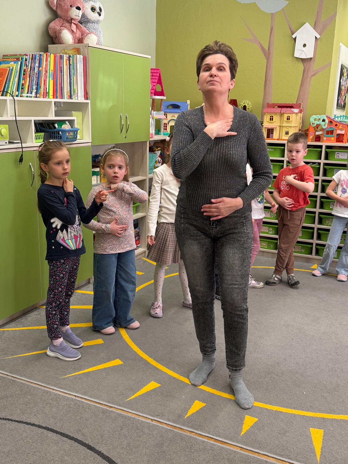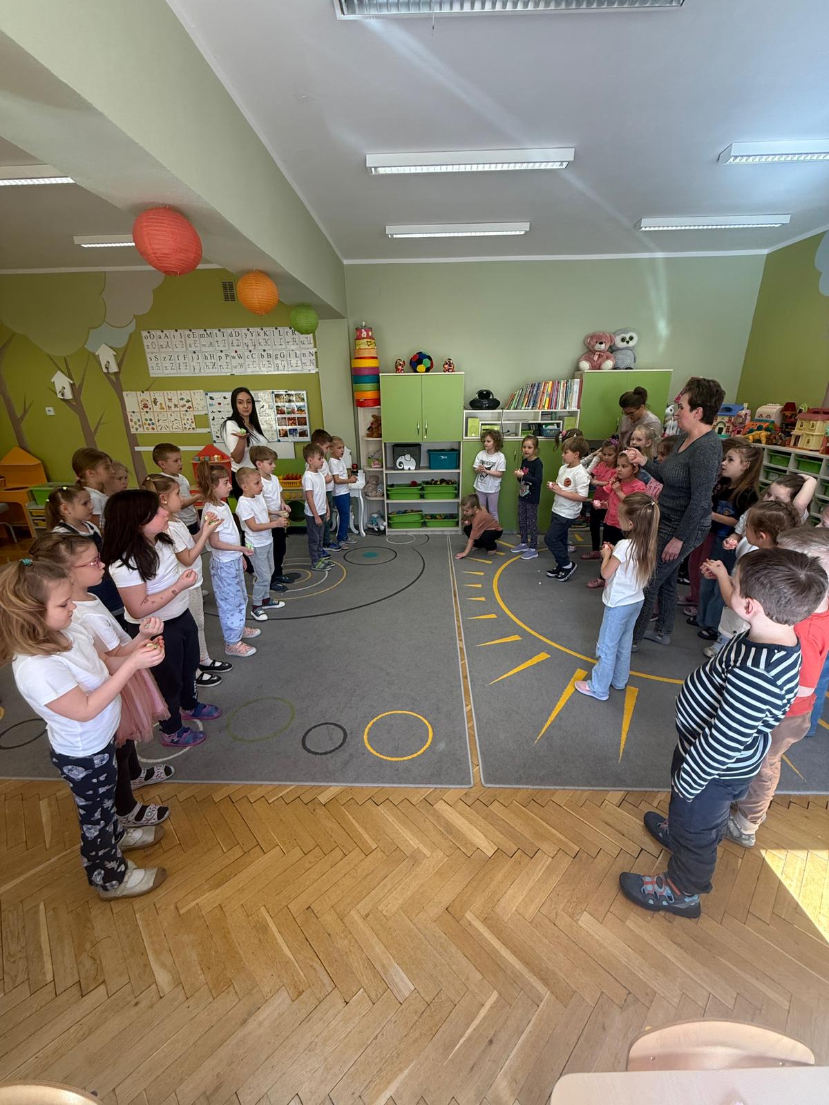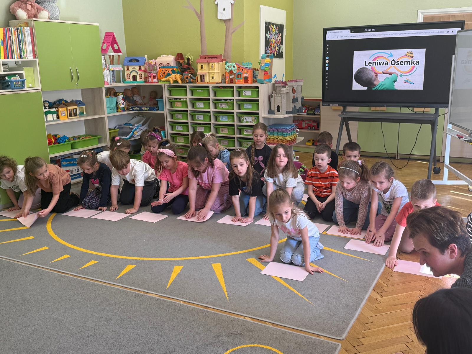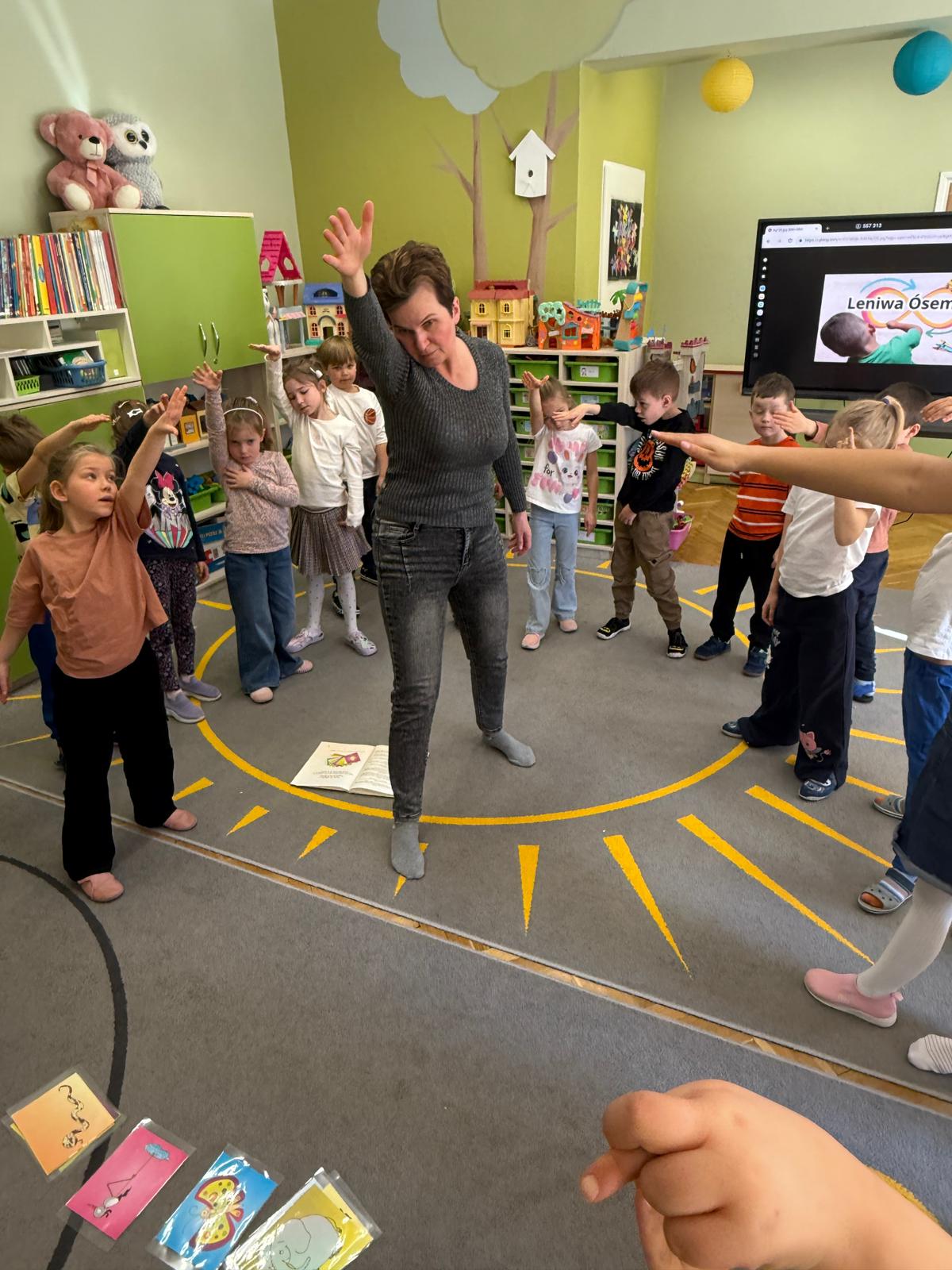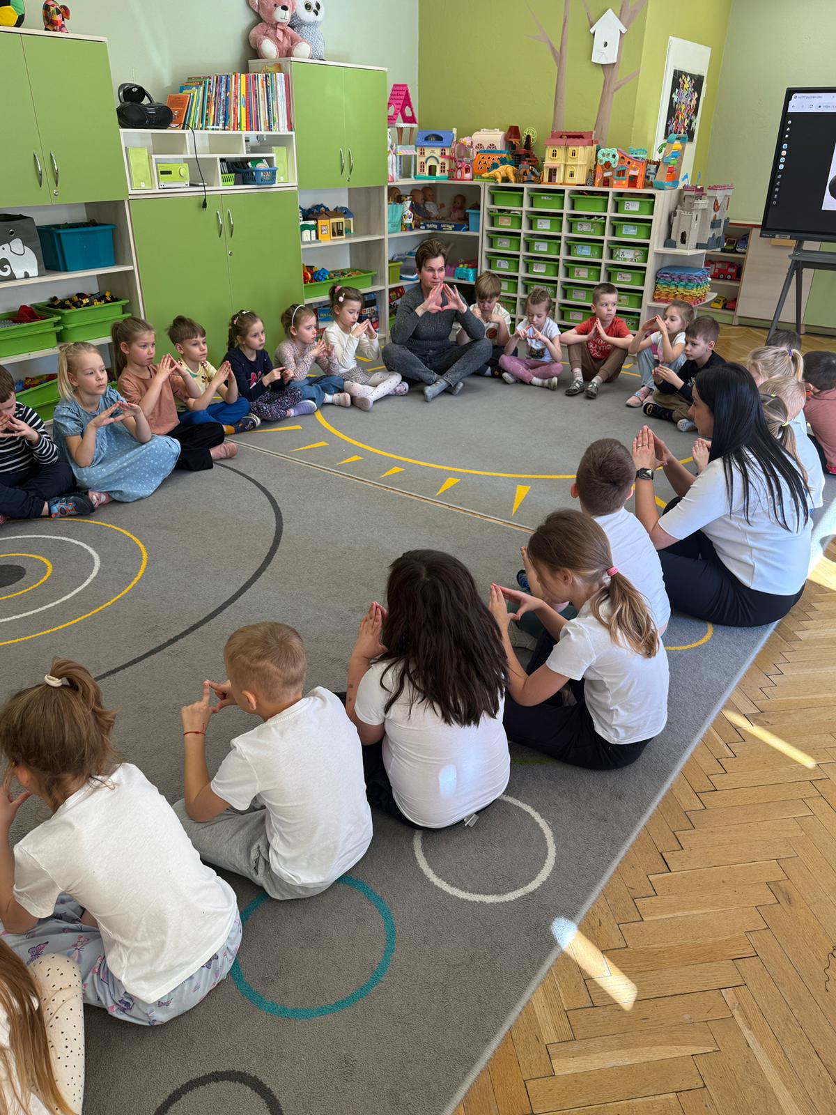 W grupie IV i VI odbyły się zajęcia koleżeńskie oparte na metodzie Kinezjologii Edukacyjnej, inaczej zwanej Gimnastyki Mózgu, opracowanej przez Paula Dennisona. Głównym celem tej metody jest: wspieranie integracji pracy obu półkul mózgowych; poprawa koncentracji i uwagi dzieci; rozwijanie koordynacji wzrokowo-ruchowej; usprawnianie motoryki dużej i małej; redukowanie napięcia i stresu u dzieci; wspieranie procesów uczenia się (czytania, pisania, liczenia); rozwijanie orientacji w schemacie własnego ciała. Zajęcia rozpoczęły się od krótkiego wprowadzenia i rozmowy z dziećmi o tym, dlaczego ruch jest ważny dla naszego mózgu. Następnie dzieci wykonywały serię prostych ćwiczeń ruchowych charakterystycznych dla gimnastyki mózgu. Wśród nich znalazły się m.in. ruchy naprzemienne, leniwe ósemki, ćwiczenie „słoń", punkty na myślenie czy pozycja Cooka. Zajęcia miały formę zabawy ruchowej, dzięki czemu dzieci chętnie i aktywnie w nich uczestniczyły zwracając szczególną uwagę na oddech, koncentrację oraz płynność ruchów. Ćwiczenia sprawiły dzieciom wiele radości, a jednocześnie przyniosły pozytywne efekty: pomogły im się wyciszyć, lepiej skupić uwagę i rozwinąć sprawność ruchową. Zajęcia pokazały, że proste ćwiczenia ruchowe mogą w ciekawy sposób wspierać rozwój dziecka i przygotowywać je do dalszej nauki.