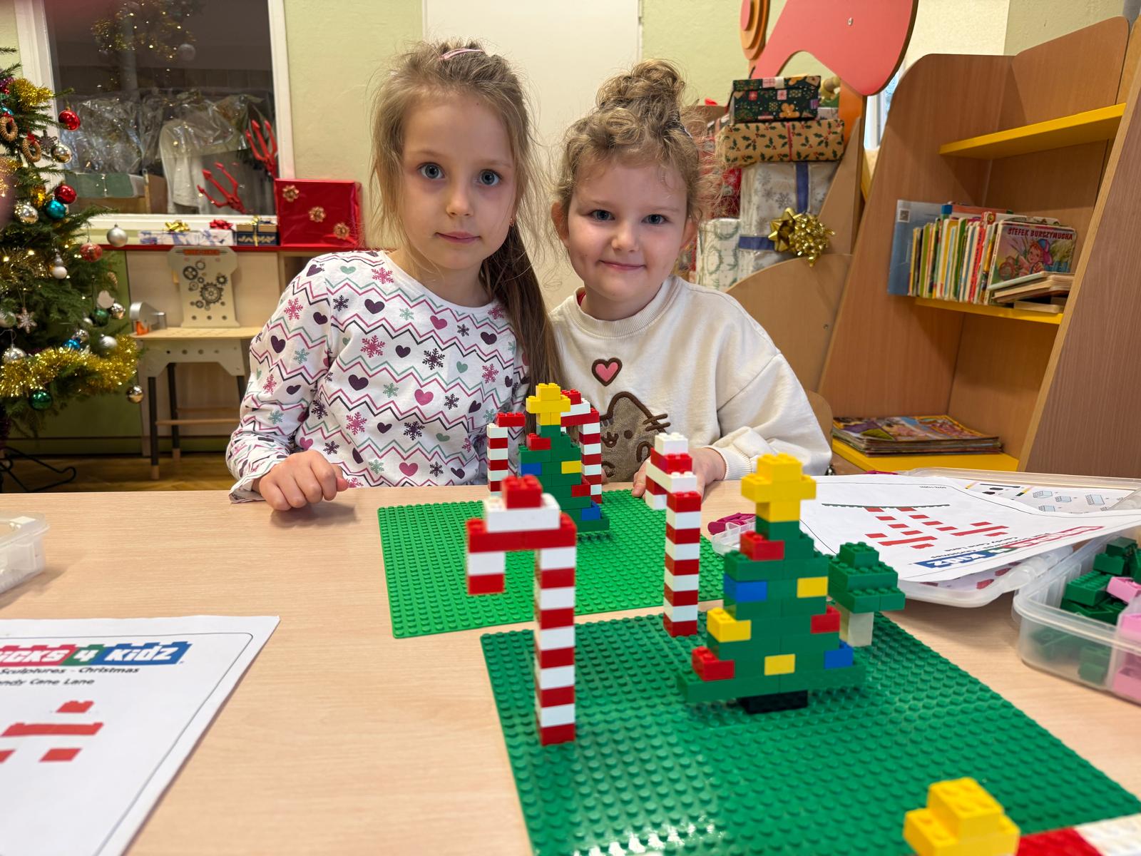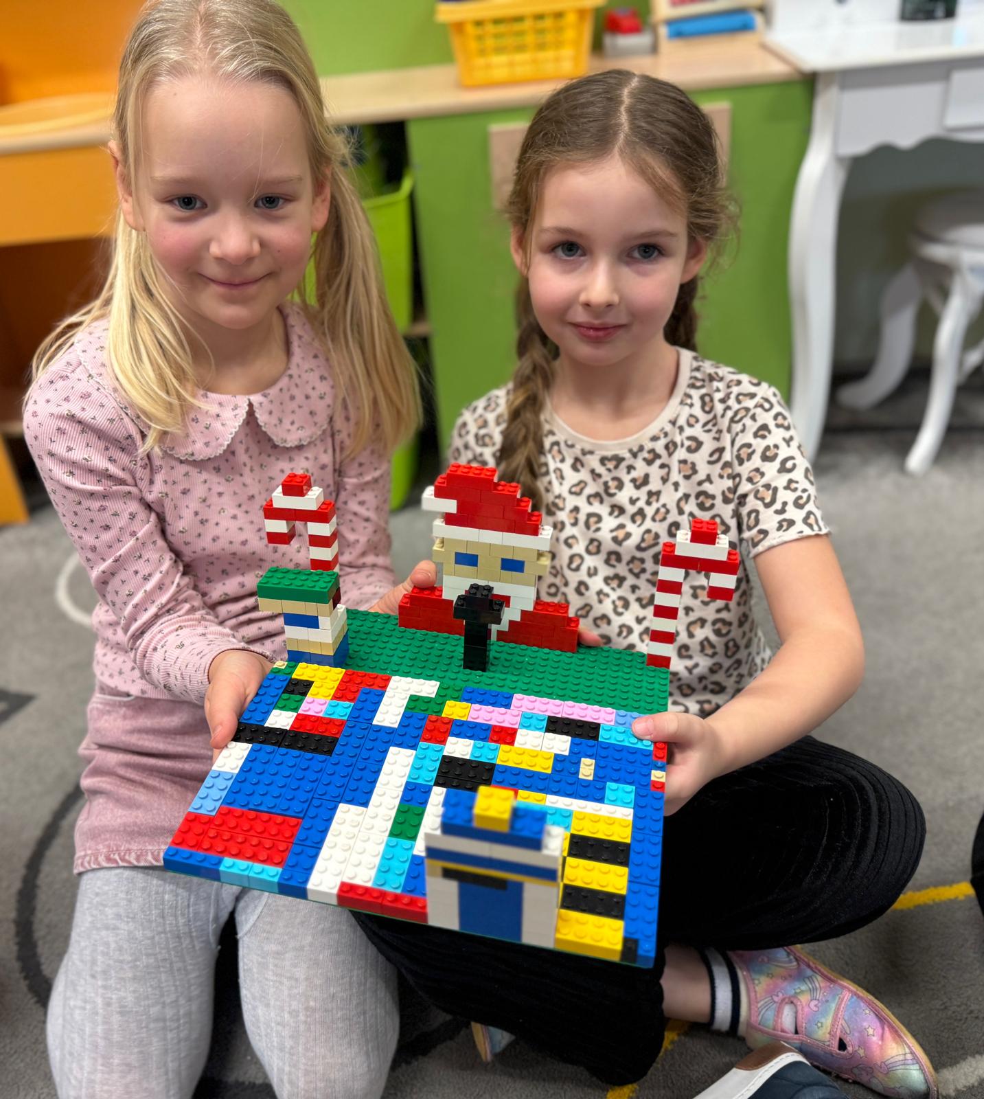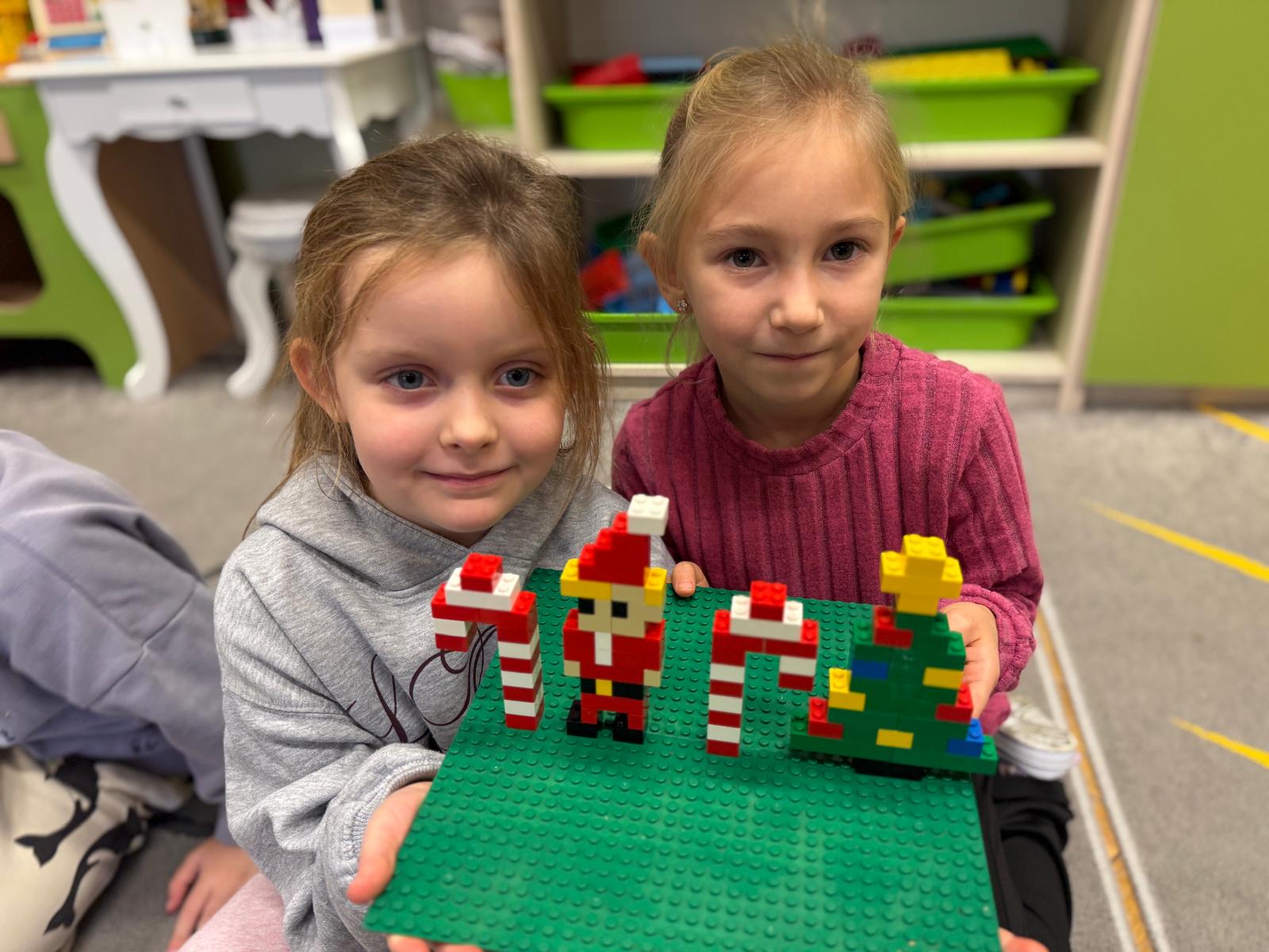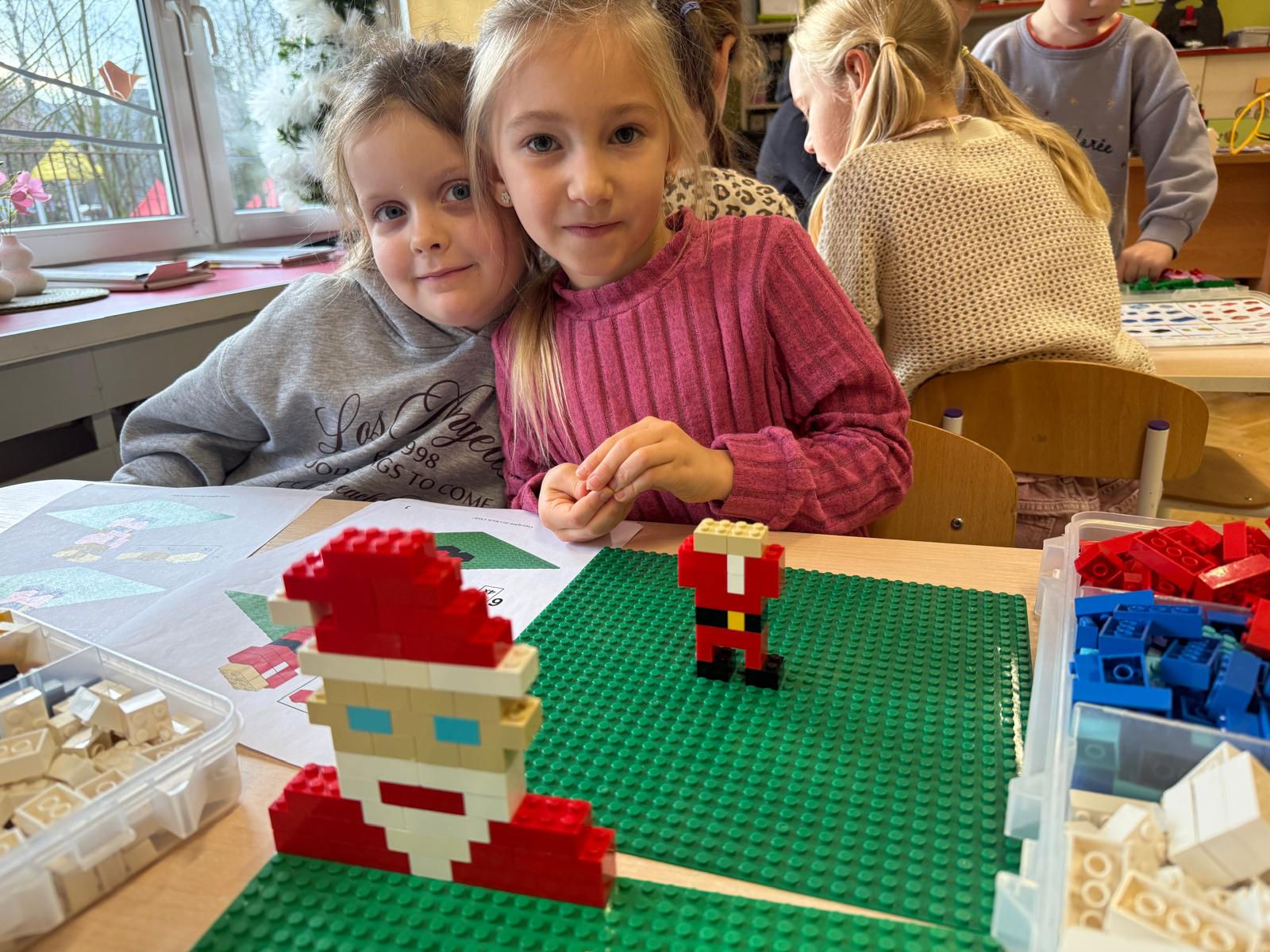 W naszej grupie odbyły się niezwykłe warsztaty, które wprowadziły dzieci w świąteczny klimat i pozwoliły im twórczo przygotować się do nadchodzących Świąt Bożego Narodzenia. Celem spotkania było rozwijanie kreatywności dzieci, poszerzanie ich wiedzy o tradycjach bożonarodzeniowych oraz kształtowanie umiejętności konstrukcyjnych poprzez budowanie modeli z klocków LEGO. Podczas zajęć dzieci z zaangażowaniem opowiadały o Świętach Bożego Narodzenia, wieczerzy wigilijnej, potrawach, zwyczajach i rodzinnych tradycjach. Wspólna rozmowa pozwoliła im lepiej zrozumieć sens świątecznych obrzędów i podzielić się własnymi doświadczeniami. Następnie przedszkolaki zamieniły się w małych konstruktorów Fabryki Świętego Mikołaja. Z klocków LEGO budowały choinki, Mikołaja, bałwana, sanie, renifery oraz inne elementy związane ze świętami. Każde dziecko miało okazję stworzyć własny, niepowtarzalny model, wykazując się wyobraźnią i kreatywnością. Warsztaty przyniosły wiele radości, a dzieci utrwaliły wiedzę o tradycjach bożonarodzeniowych, rozwinęły umiejętności konstrukcyjne i współpracy, a także wzbogaciły swoją wyobraźnię przestrzenną. Spotkanie pozwoliło im poczuć magię świąt i z dumą prezentować swoje wyjątkowe prace.