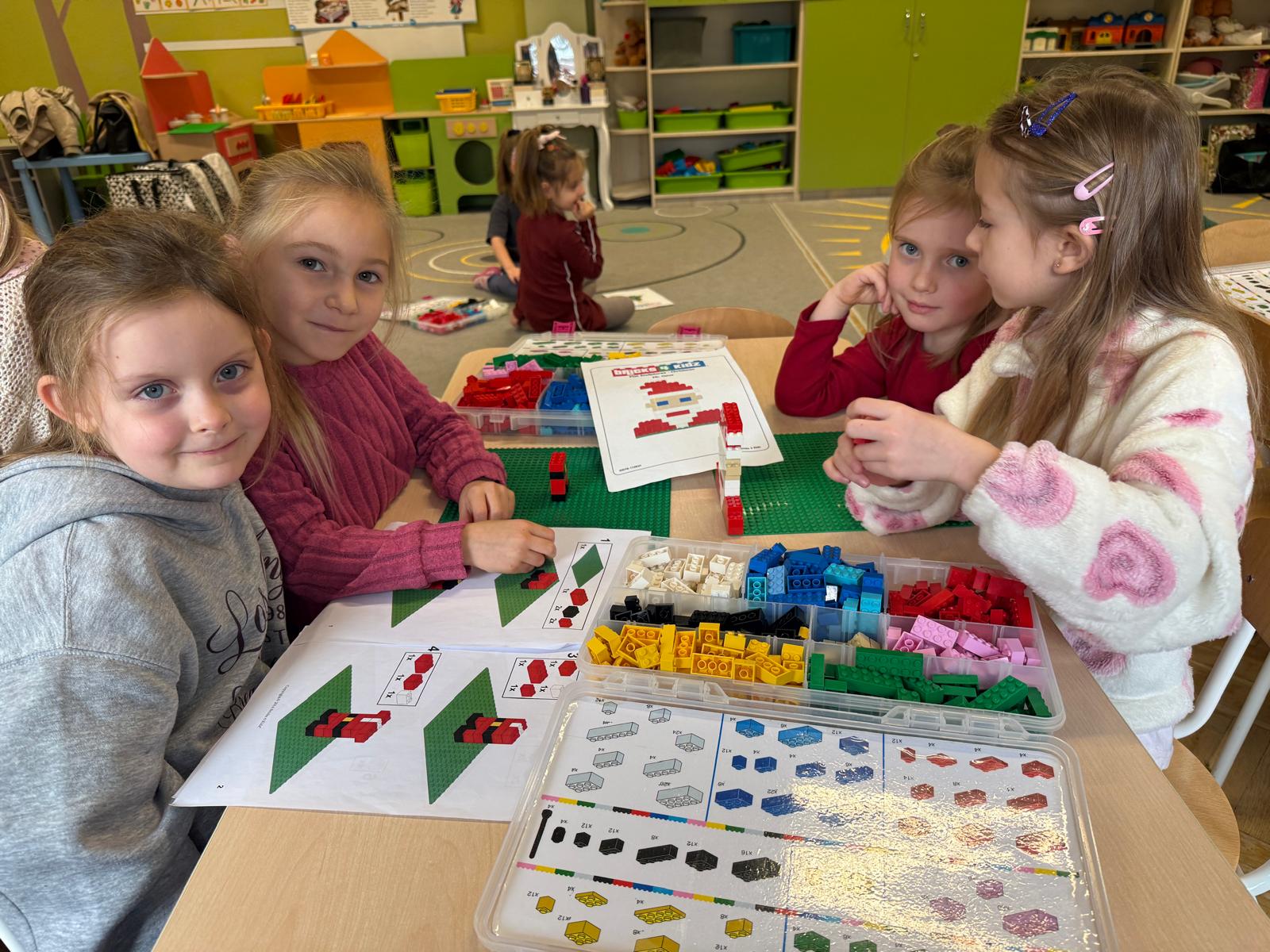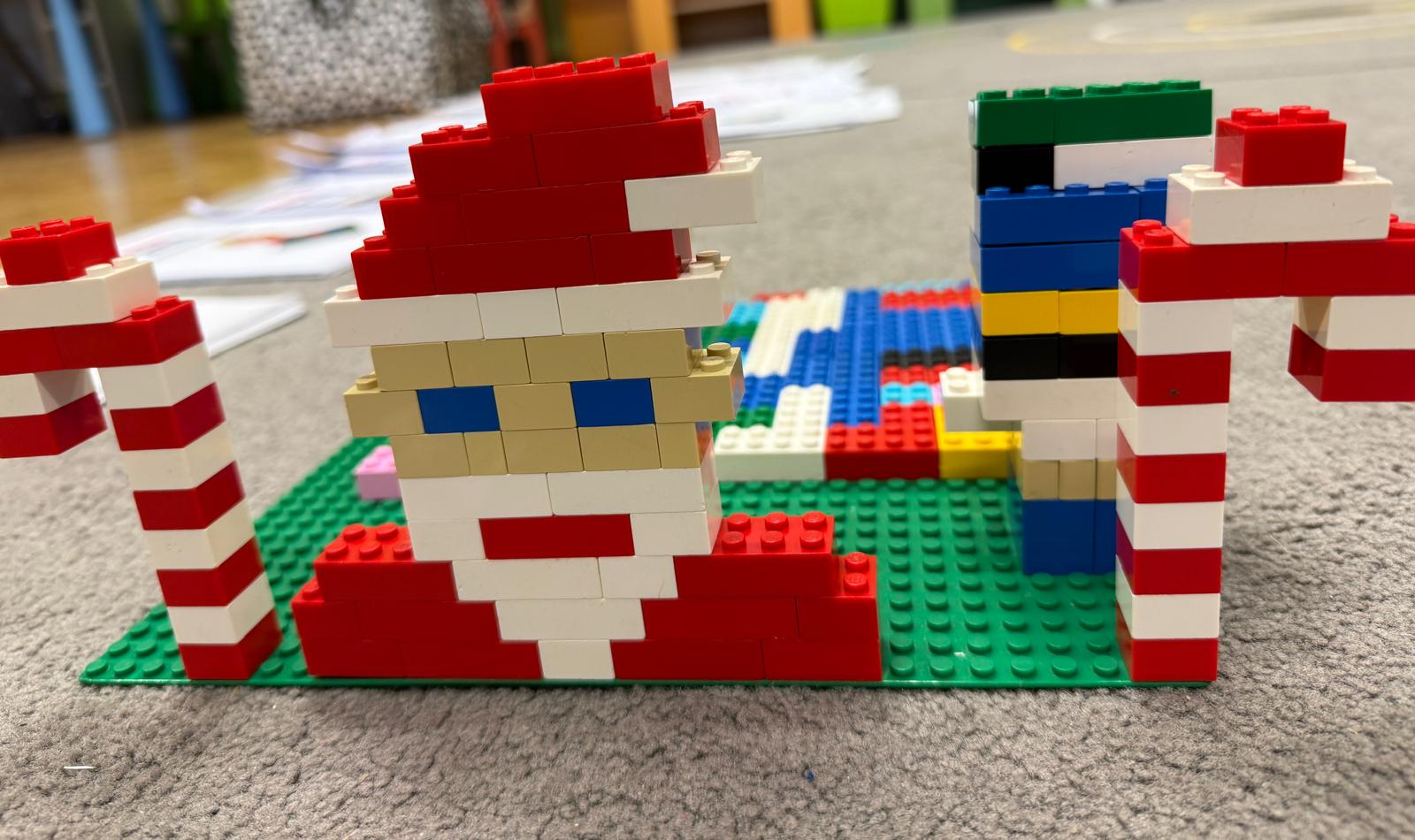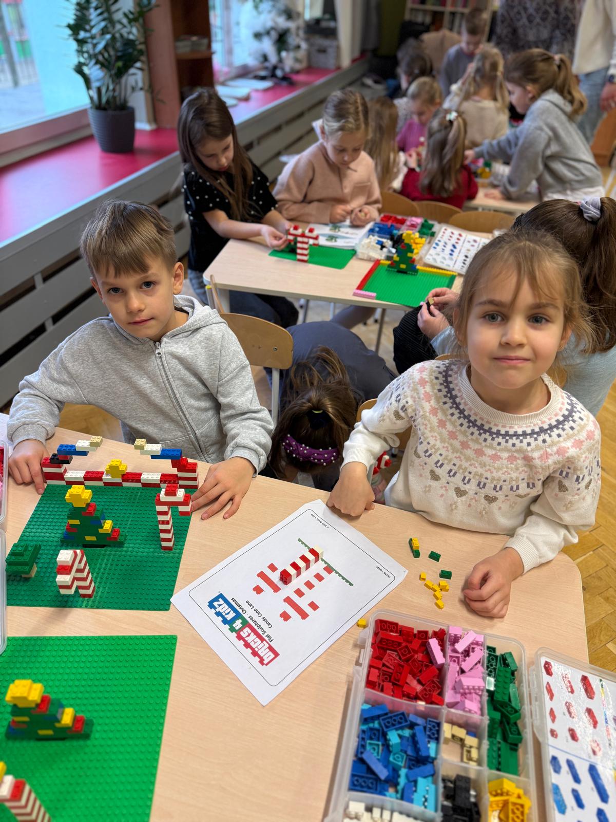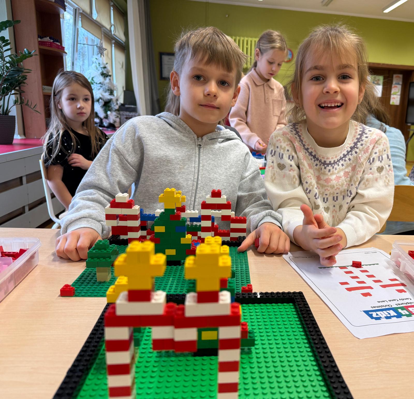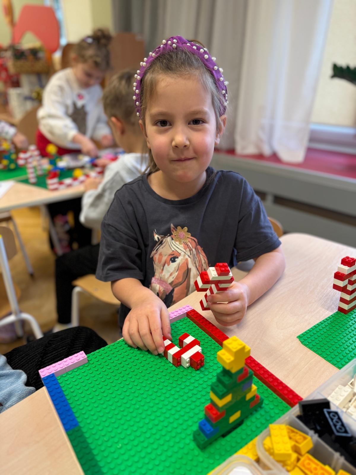W naszej grupie odbyły się niezwykłe warsztaty, które wprowadziły dzieci w świąteczny klimat i pozwoliły im twórczo przygotować się do nadchodzących Świąt Bożego Narodzenia. Celem spotkania było rozwijanie kreatywności dzieci, poszerzanie ich wiedzy o tradycjach bożonarodzeniowych oraz kształtowanie umiejętności konstrukcyjnych poprzez budowanie modeli z klocków LEGO. Podczas zajęć dzieci z zaangażowaniem opowiadały o Świętach Bożego Narodzenia, wieczerzy wigilijnej, potrawach, zwyczajach i rodzinnych tradycjach. Wspólna rozmowa pozwoliła im lepiej zrozumieć sens świątecznych obrzędów i podzielić się własnymi doświadczeniami. Następnie przedszkolaki zamieniły się w małych konstruktorów Fabryki Świętego Mikołaja. Z klocków LEGO budowały choinki, Mikołaja, bałwana, sanie, renifery oraz inne elementy związane ze świętami. Każde dziecko miało okazję stworzyć własny, niepowtarzalny model, wykazując się wyobraźnią i kreatywnością. Warsztaty przyniosły wiele radości, a dzieci utrwaliły wiedzę o tradycjach bożonarodzeniowych, rozwinęły umiejętności konstrukcyjne i współpracy, a także wzbogaciły swoją wyobraźnię przestrzenną. Spotkanie pozwoliło im poczuć magię świąt i z dumą prezentować swoje wyjątkowe prace.