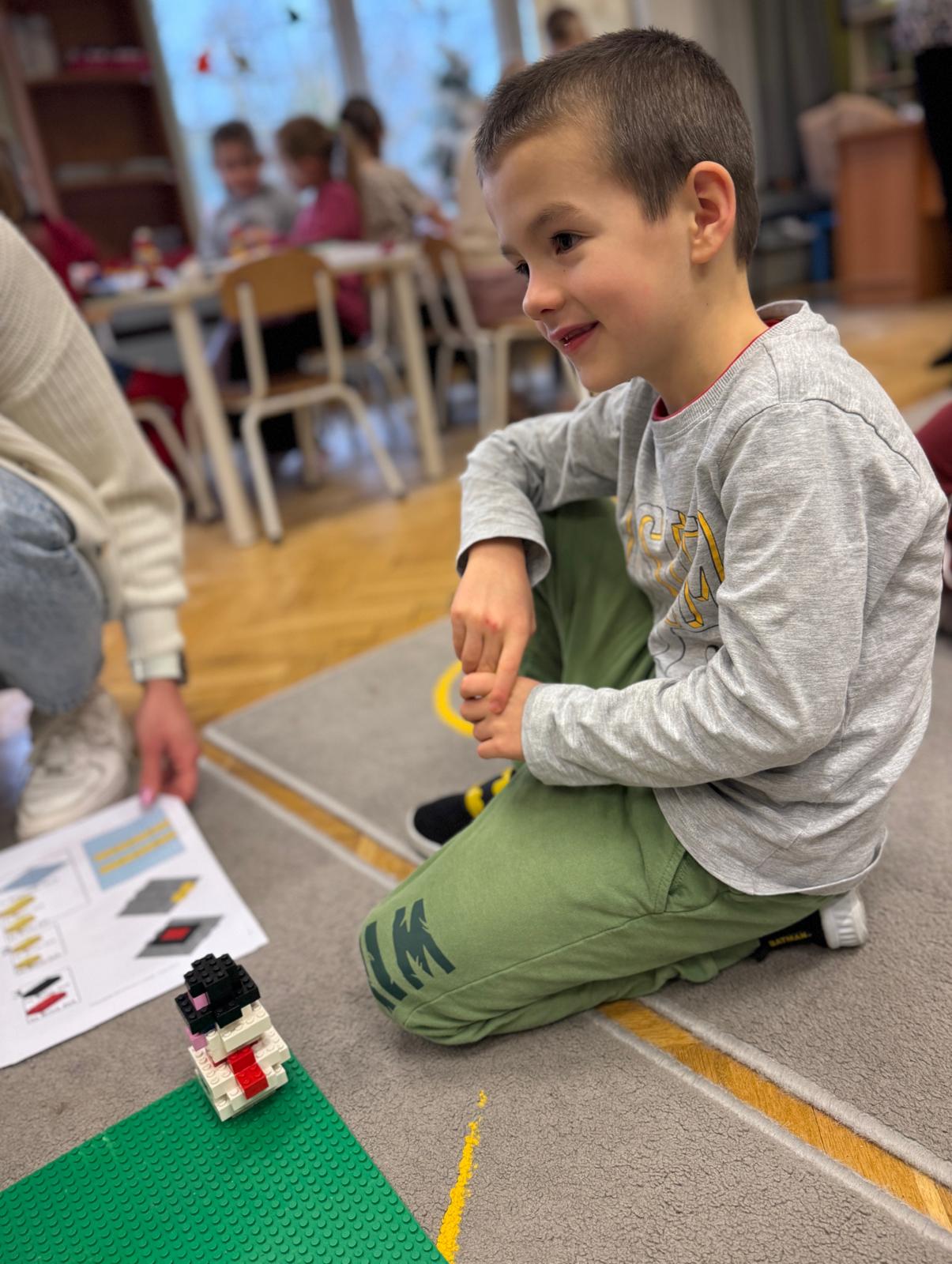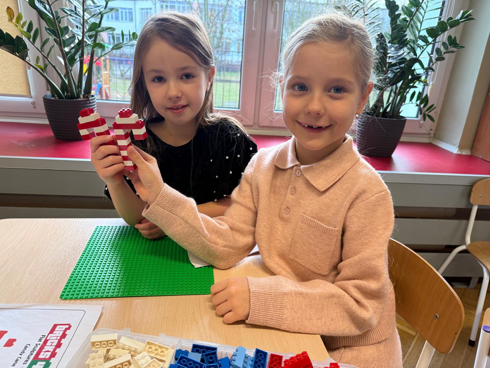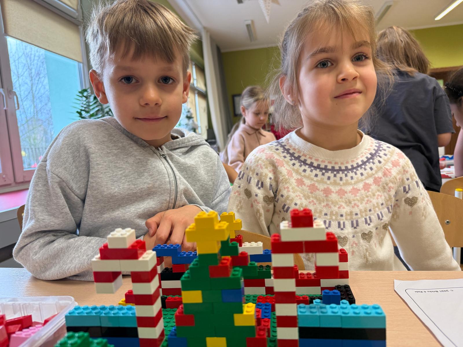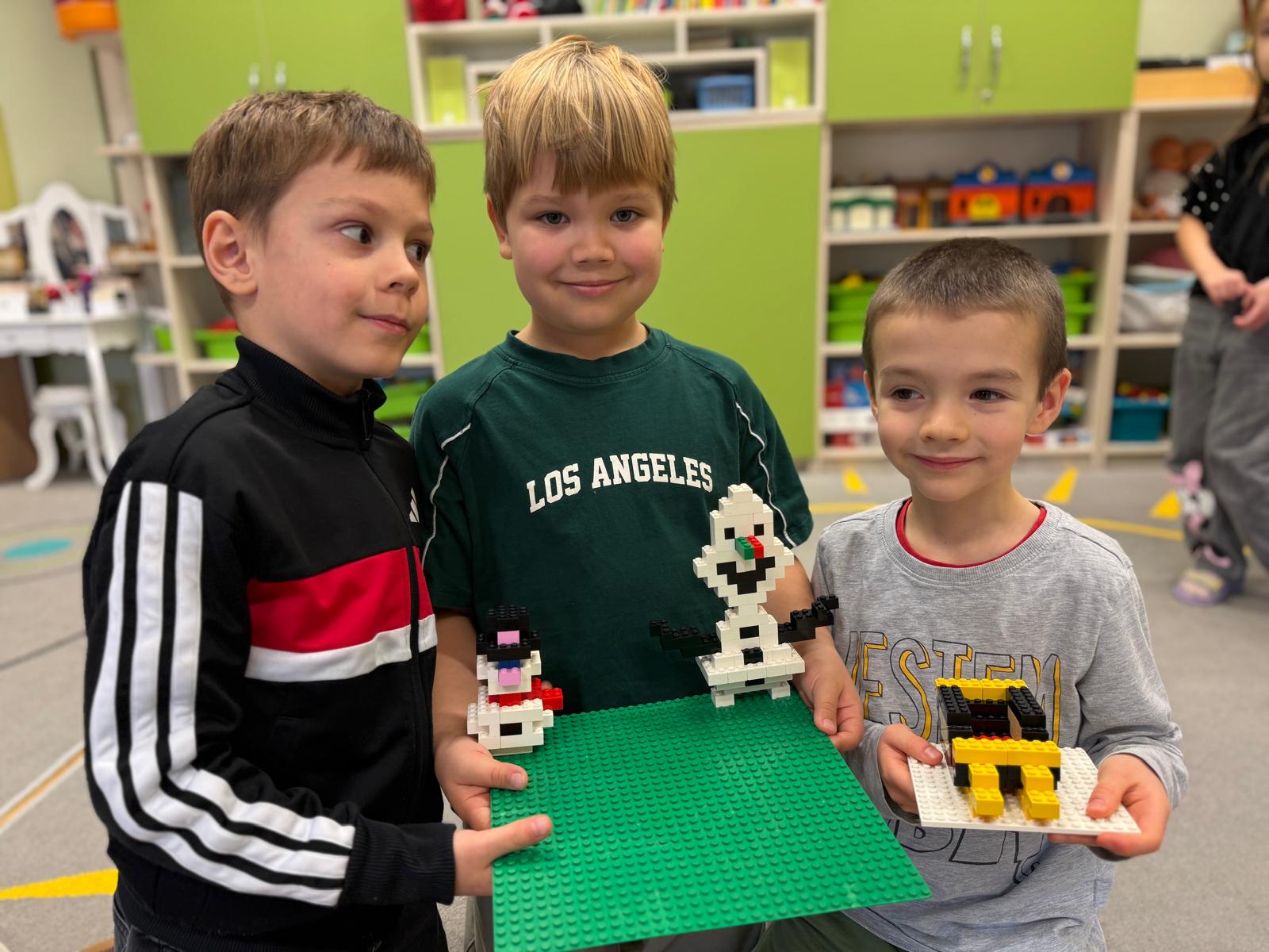 W naszej grupie odbyły się niezwykłe warsztaty, które wprowadziły dzieci w świąteczny klimat i pozwoliły im twórczo przygotować się do nadchodzących Świąt Bożego Narodzenia. Celem spotkania było rozwijanie kreatywności dzieci, poszerzanie ich wiedzy o tradycjach bożonarodzeniowych oraz kształtowanie umiejętności konstrukcyjnych poprzez budowanie modeli z klocków LEGO. Podczas zajęć dzieci z zaangażowaniem opowiadały o Świętach Bożego Narodzenia, wieczerzy wigilijnej, potrawach, zwyczajach i rodzinnych tradycjach. Wspólna rozmowa pozwoliła im lepiej zrozumieć sens świątecznych obrzędów i podzielić się własnymi doświadczeniami. Następnie przedszkolaki zamieniły się w małych konstruktorów Fabryki Świętego Mikołaja. Z klocków LEGO budowały choinki, Mikołaja, bałwana, sanie, renifery oraz inne elementy związane ze świętami. Każde dziecko miało okazję stworzyć własny, niepowtarzalny model, wykazując się wyobraźnią i kreatywnością. Warsztaty przyniosły wiele radości, a dzieci utrwaliły wiedzę o tradycjach bożonarodzeniowych, rozwinęły umiejętności konstrukcyjne i współpracy, a także wzbogaciły swoją wyobraźnię przestrzenną. Spotkanie pozwoliło im poczuć magię świąt i z dumą prezentować swoje wyjątkowe prace.
