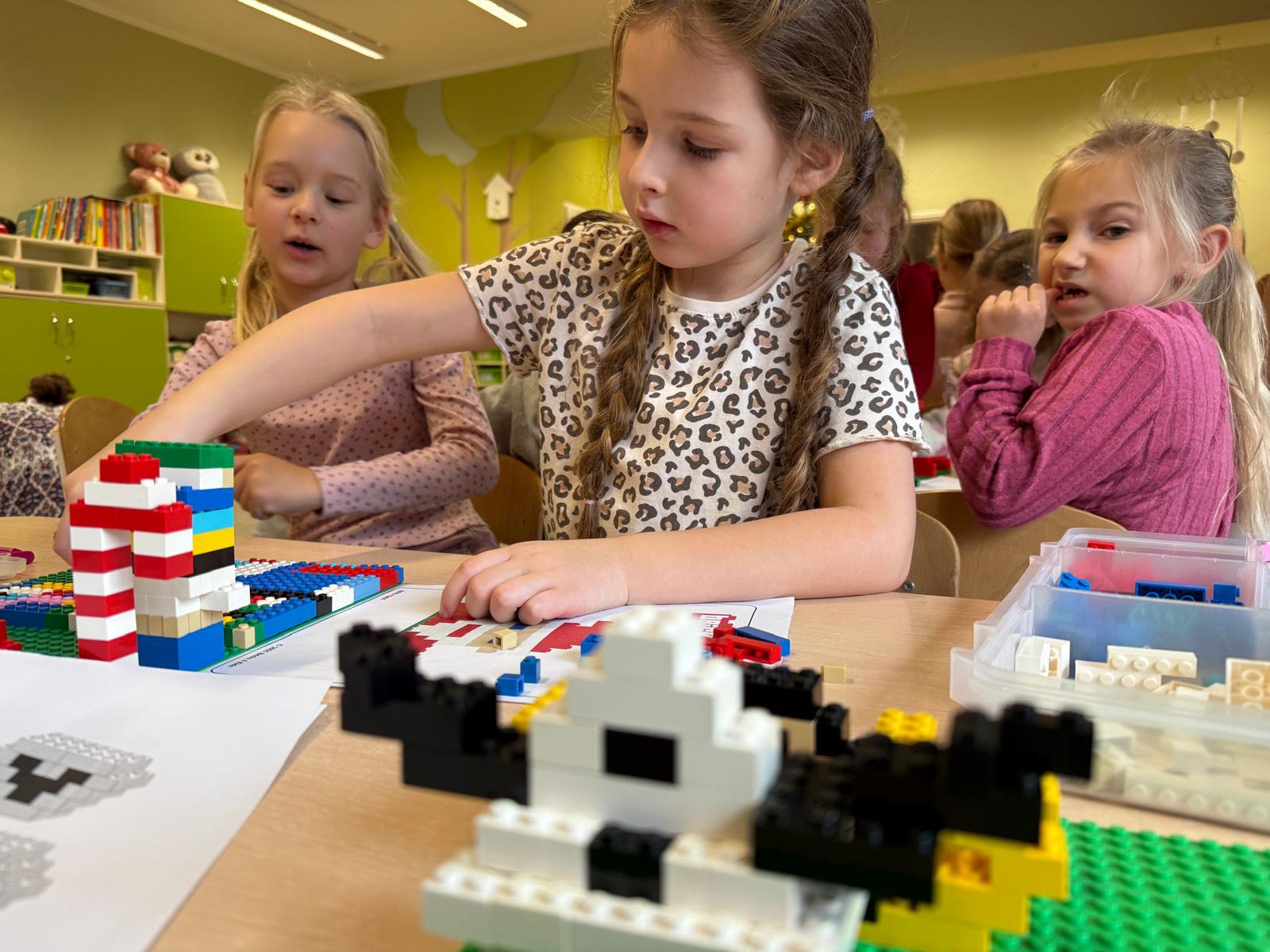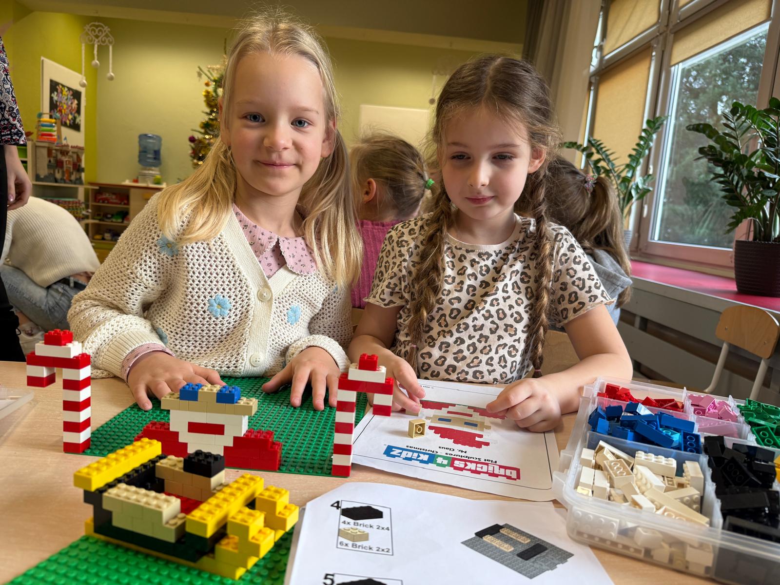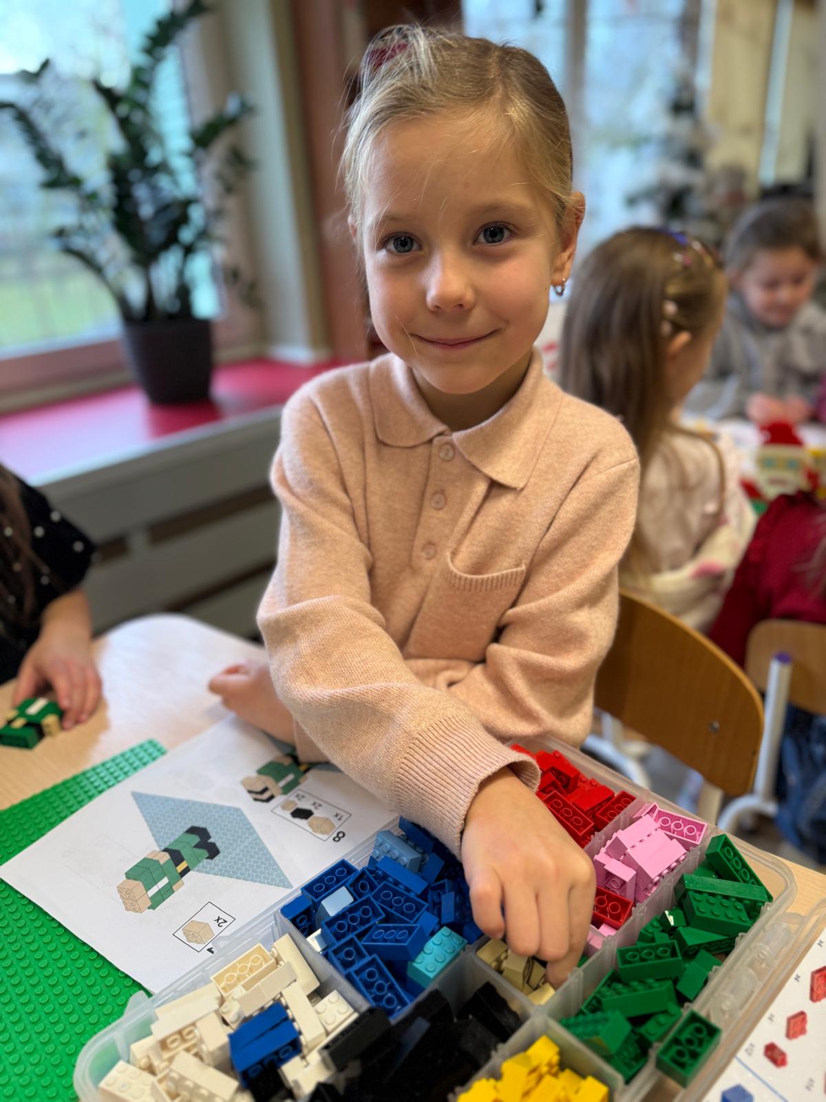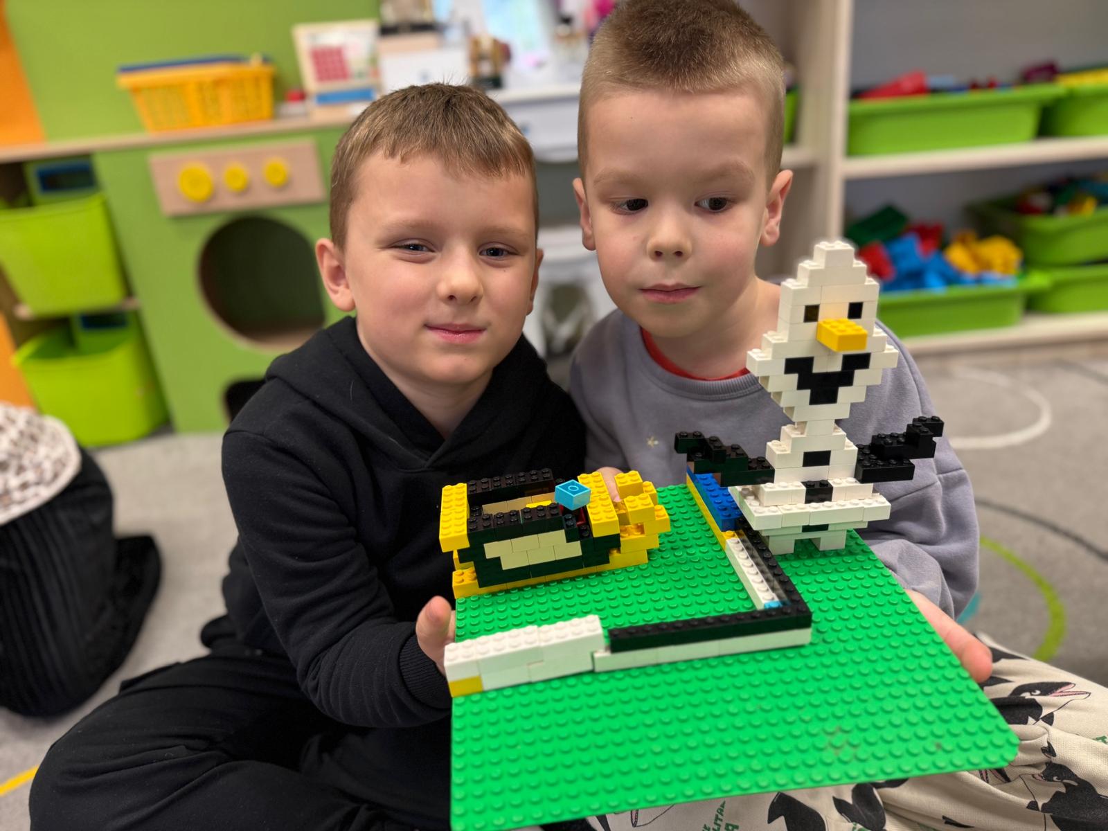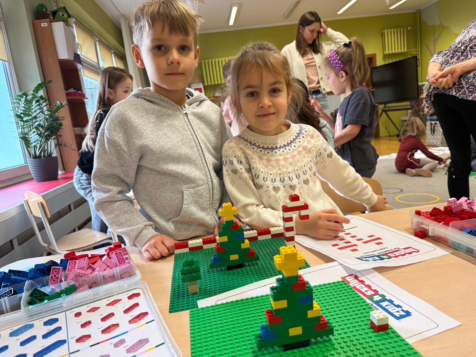 W naszej grupie odbyły się niezwykłe warsztaty, które wprowadziły dzieci w świąteczny klimat i pozwoliły im twórczo przygotować się do nadchodzących Świąt Bożego Narodzenia. Celem spotkania było rozwijanie kreatywności dzieci, poszerzanie ich wiedzy o tradycjach bożonarodzeniowych oraz kształtowanie umiejętności konstrukcyjnych poprzez budowanie modeli z klocków LEGO. Podczas zajęć dzieci z zaangażowaniem opowiadały o Świętach Bożego Narodzenia, wieczerzy wigilijnej, potrawach, zwyczajach i rodzinnych tradycjach. Wspólna rozmowa pozwoliła im lepiej zrozumieć sens świątecznych obrzędów i podzielić się własnymi doświadczeniami. Następnie przedszkolaki zamieniły się w małych konstruktorów Fabryki Świętego Mikołaja. Z klocków LEGO budowały choinki, Mikołaja, bałwana, sanie, renifery oraz inne elementy związane ze świętami. Każde dziecko miało okazję stworzyć własny, niepowtarzalny model, wykazując się wyobraźnią i kreatywnością. Warsztaty przyniosły wiele radości, a dzieci utrwaliły wiedzę o tradycjach bożonarodzeniowych, rozwinęły umiejętności konstrukcyjne i współpracy, a także wzbogaciły swoją wyobraźnię przestrzenną. Spotkanie pozwoliło im poczuć magię świąt i z dumą prezentować swoje wyjątkowe prace.