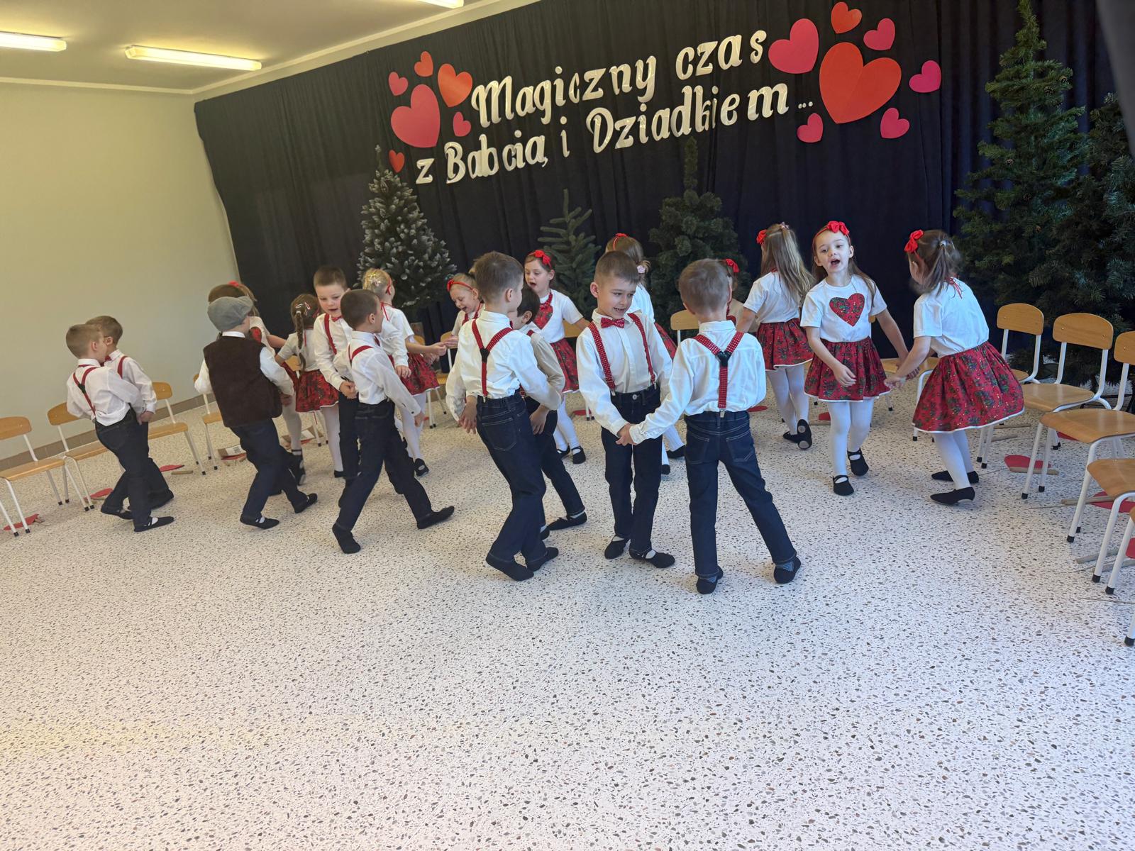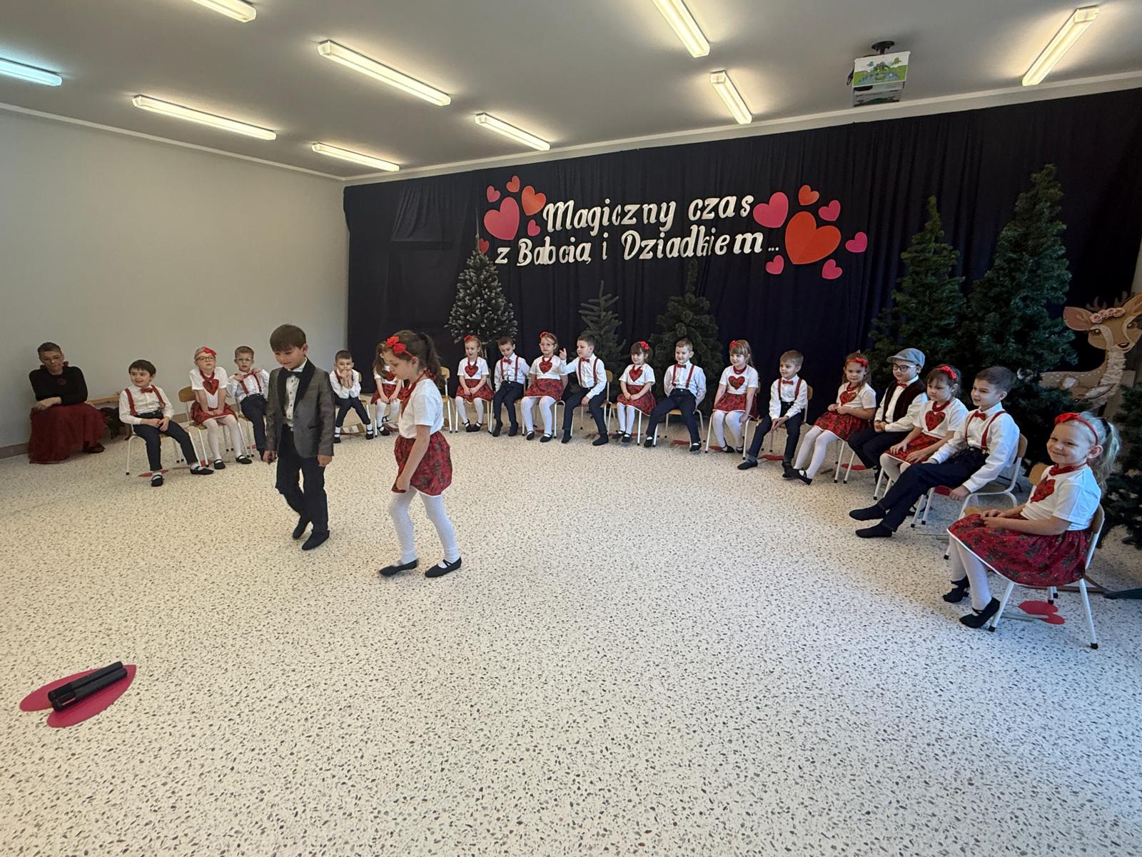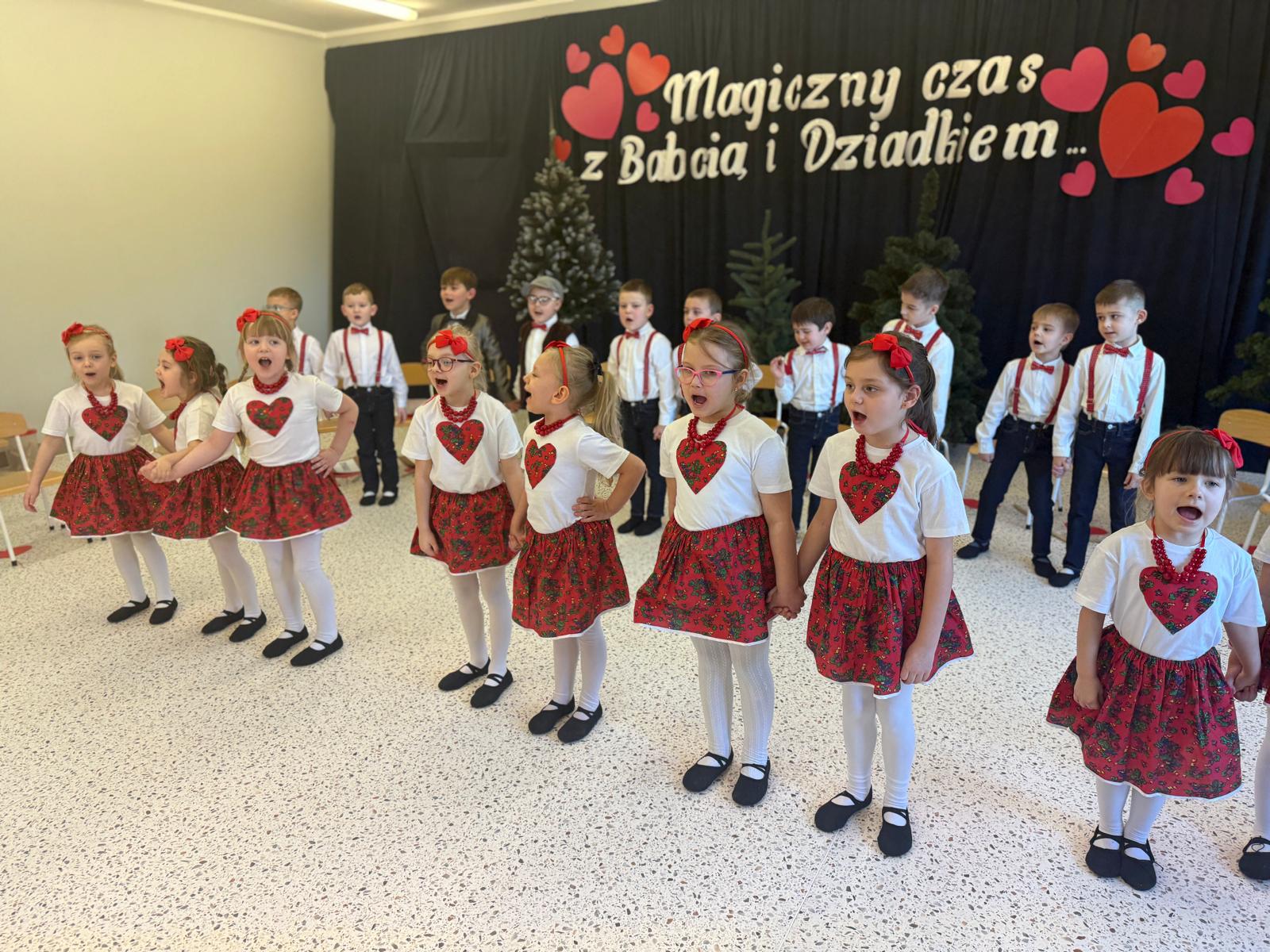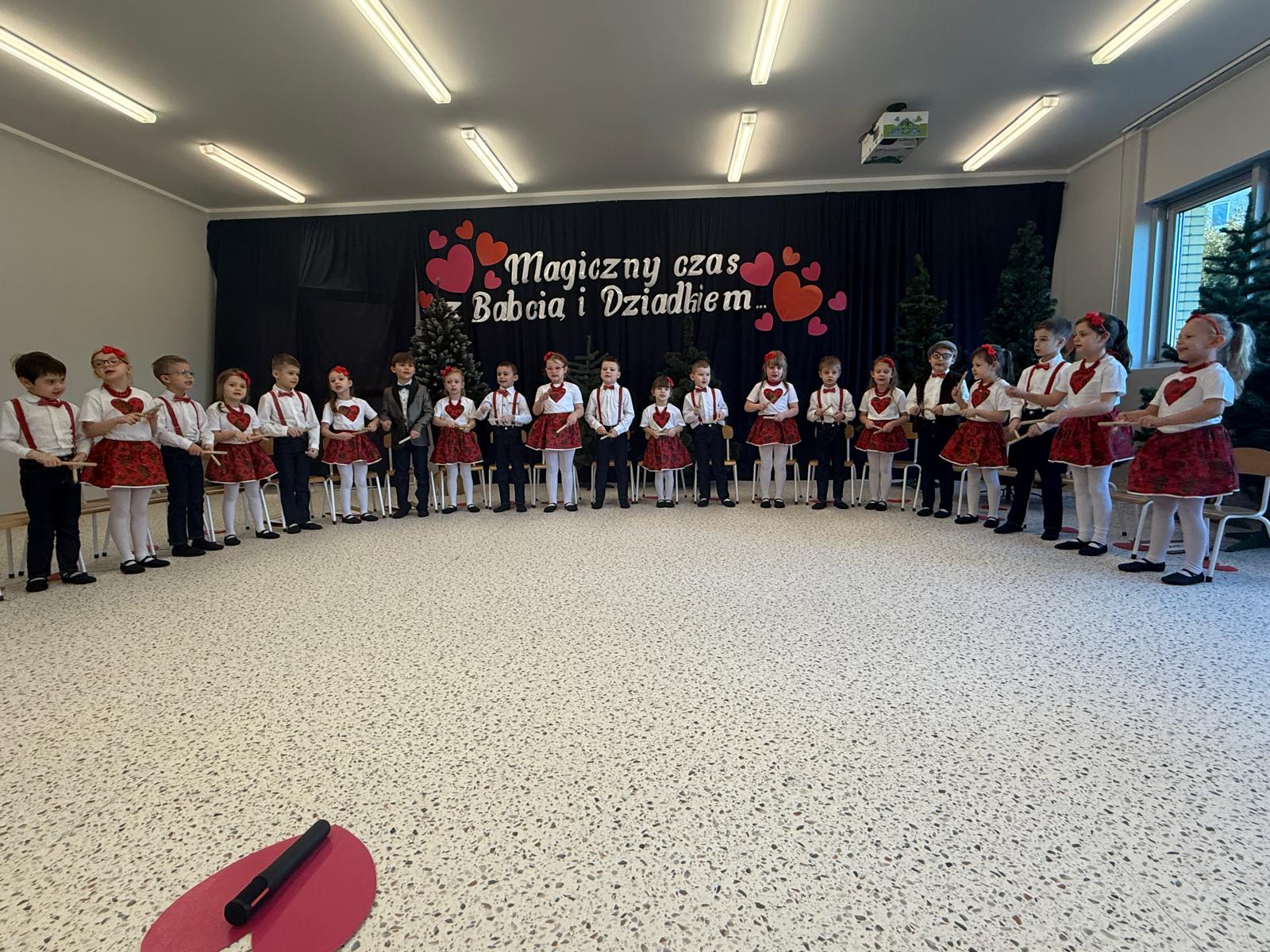 Uroczystość przebiegała w ciepłej, rodzinnej atmosferze, pełnej uśmiechów, braw i wzruszeń. Występy dzieci były wyrazem wdzięczności, miłości i szacunku dla seniorów, którzy z dumą i radością podziwiali talenty swoich wnucząt. Na zakończenie dzieci wręczyły pamiątkowe upominki oraz złożyły serdeczne życzenia.