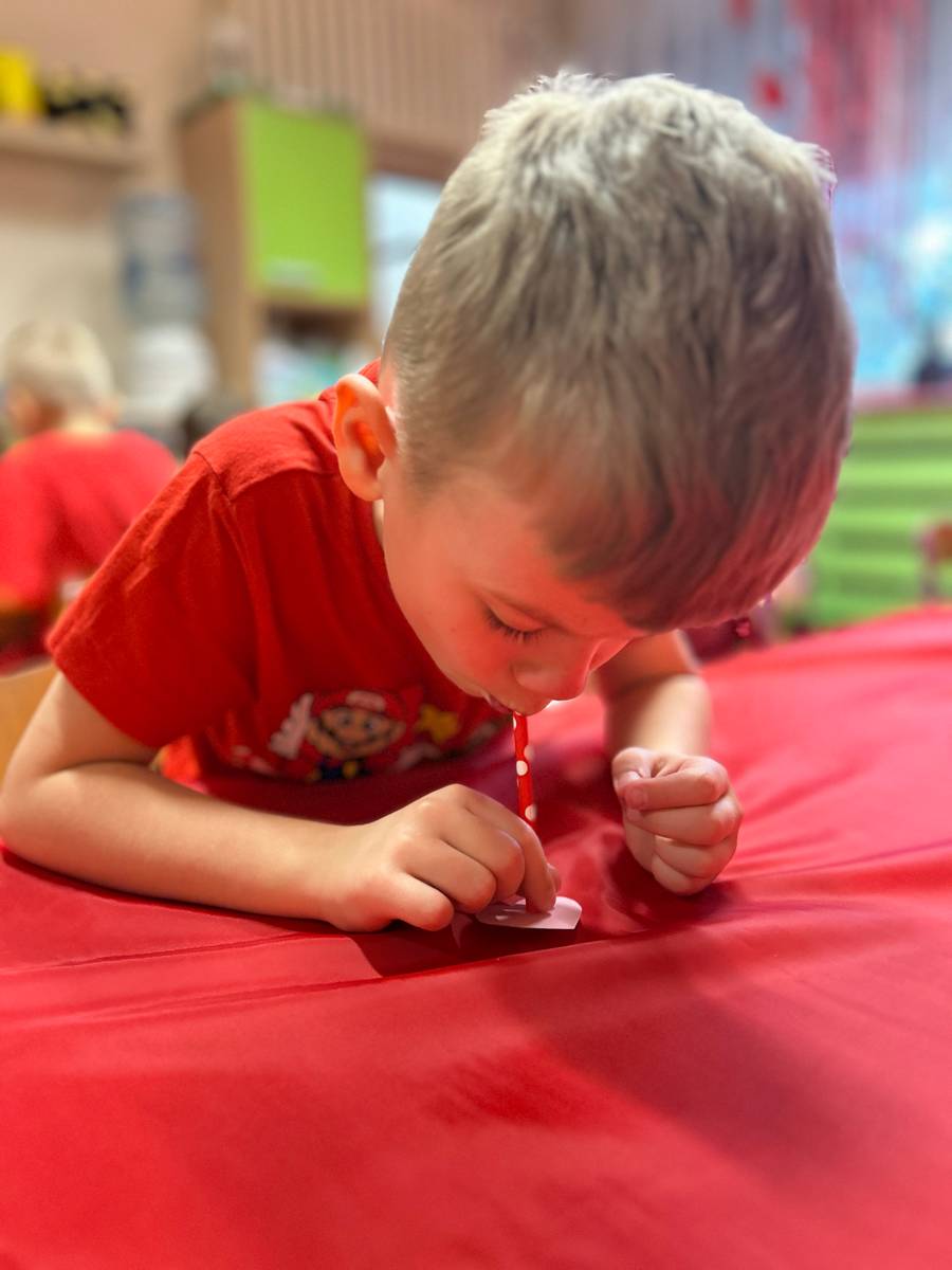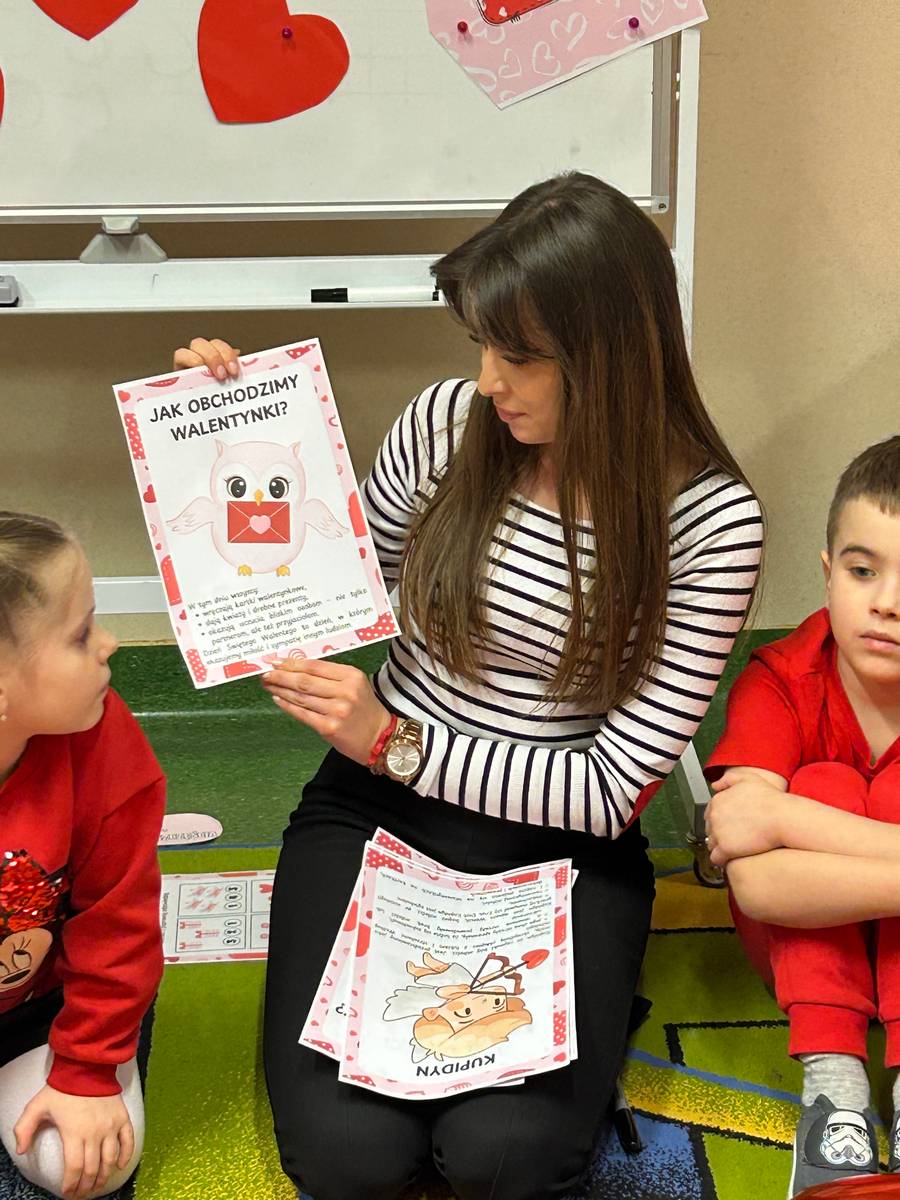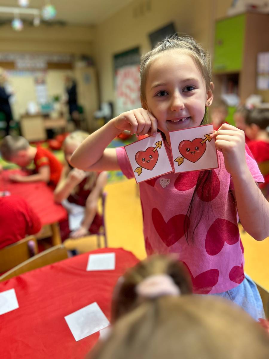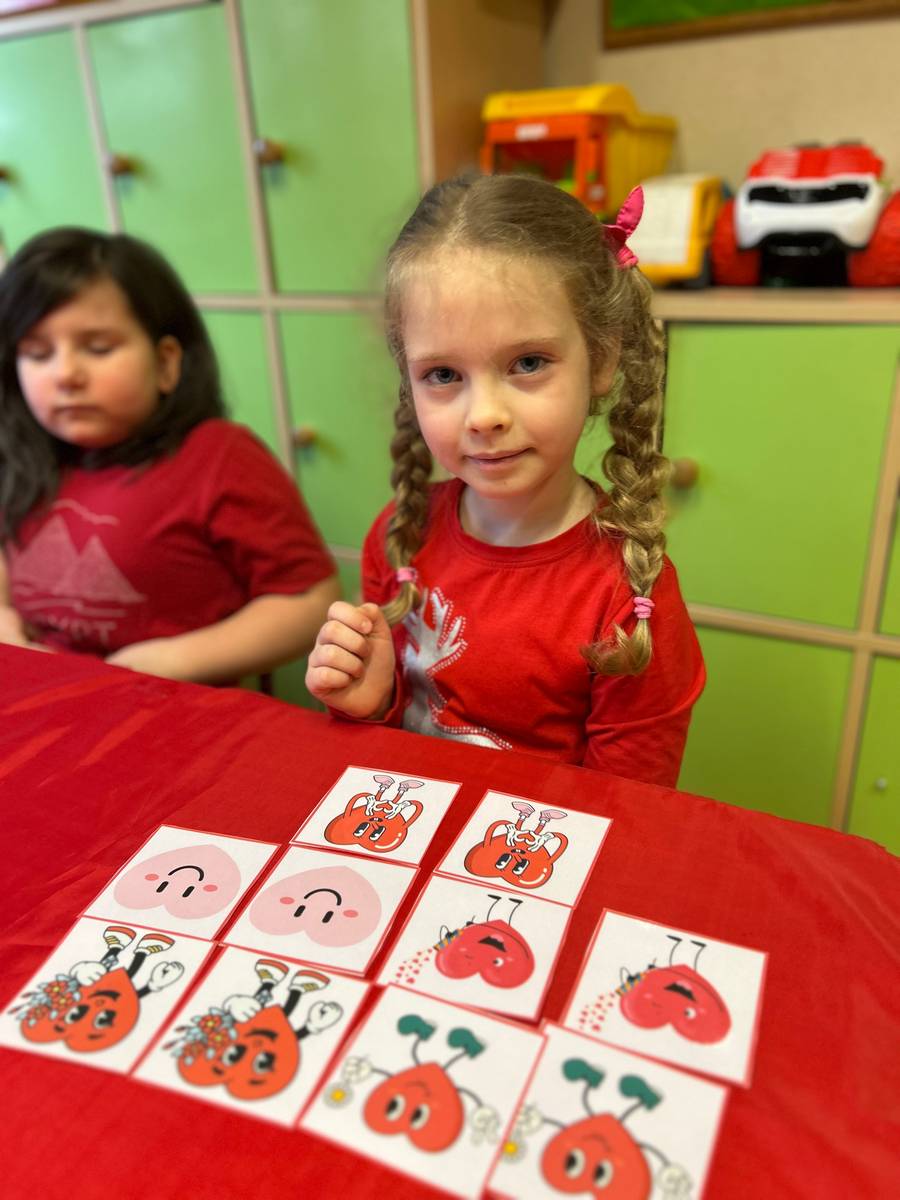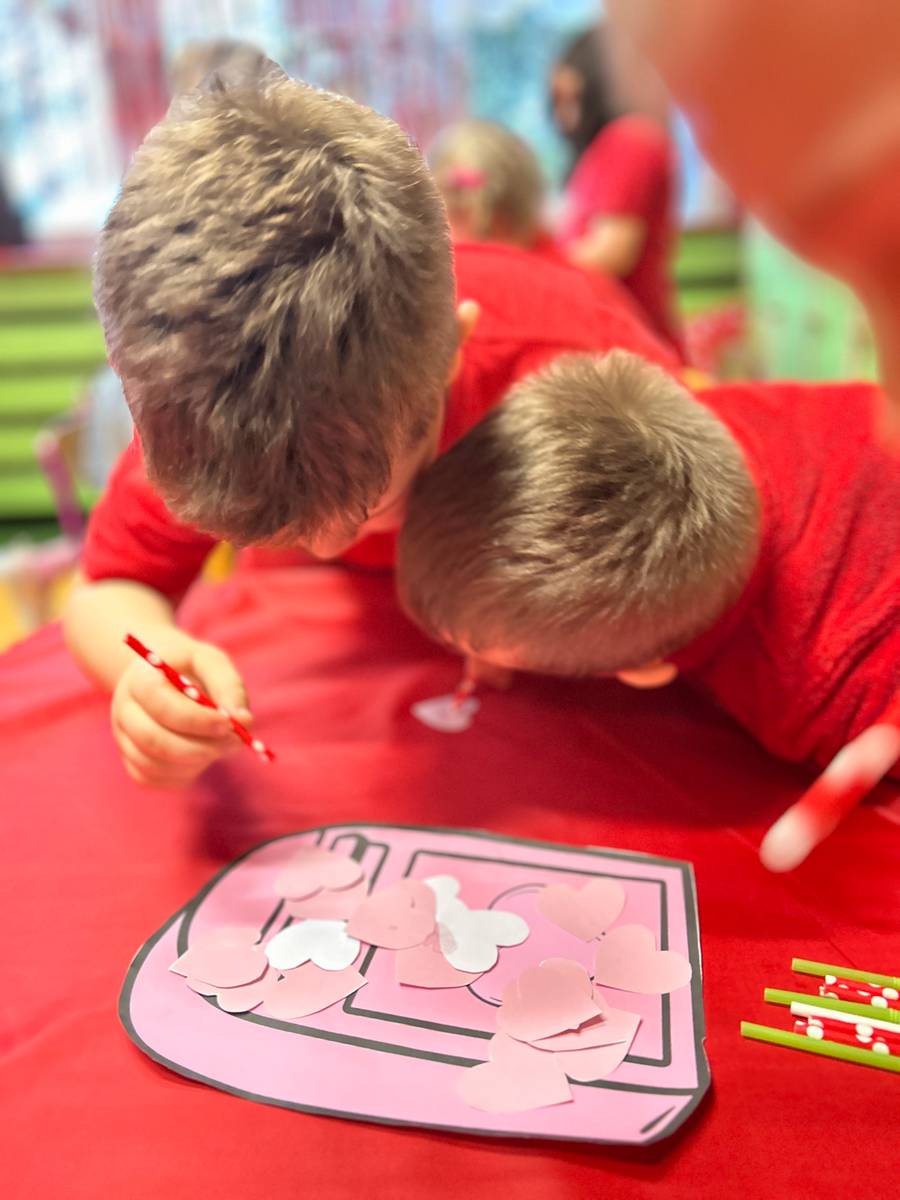 Walentynkowy dzień upłynął pod znakiem wspólnych rozmów, zabawy i odkrywania czym jest miłość w dziecięcym świecie. Zaczęliśmy od rozmowy w kręgu, podczas której dzieci dzieliły się swoimi skojarzeniami- mówiły, że miłość to przytulanie, pomaganie, dzielenie się zabawkami. Podczas walentynkowych zajęć rozmawialiśmy także o tym, skąd wzięło się to wyjątkowe święto oraz dlaczego serce jest symbolem miłości. Następnie przedszkolaki z wielkim zaangażowaniem rozwiązywały walentynkowe zadania, które prowadziły je przez "serduszkowe" wyzwania, ćwicząc spostrzegawczość, współpracę i logiczne myślenie.